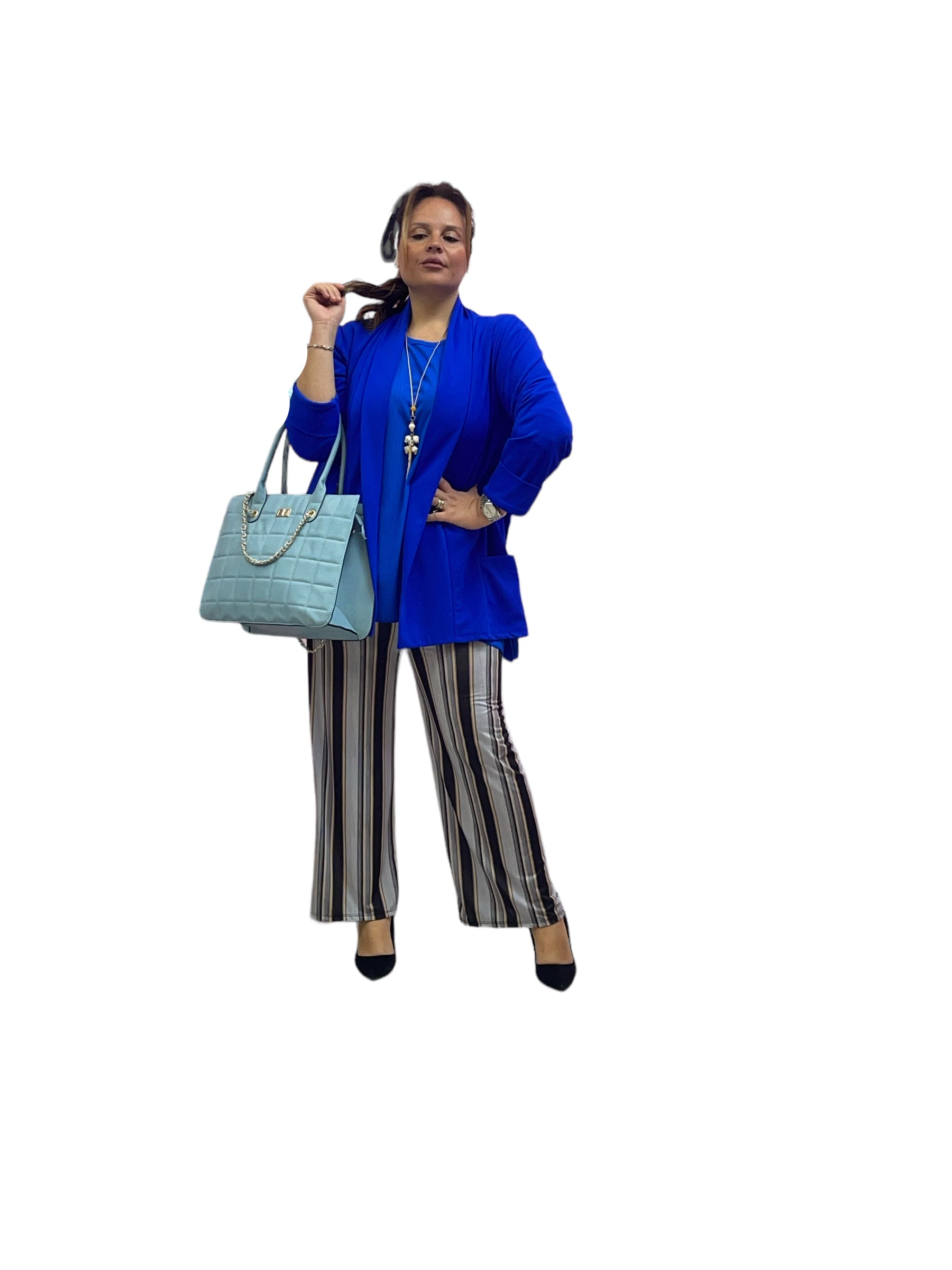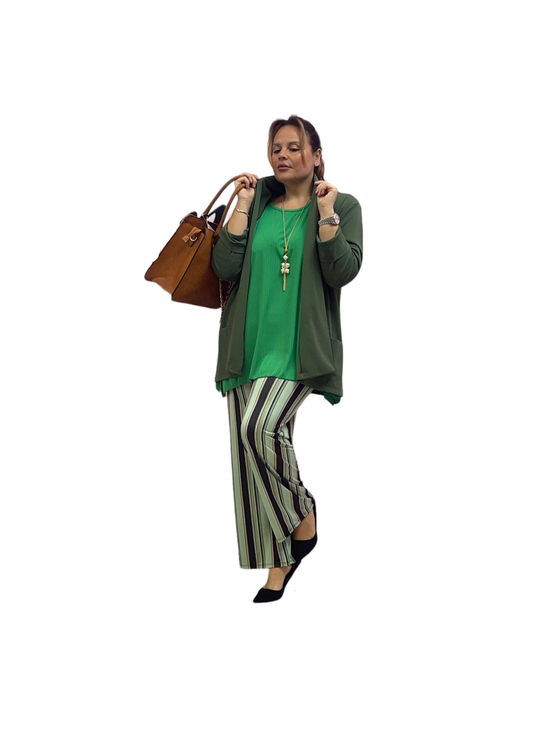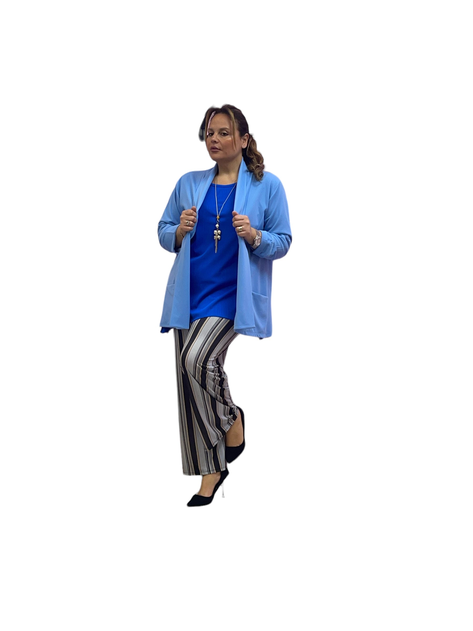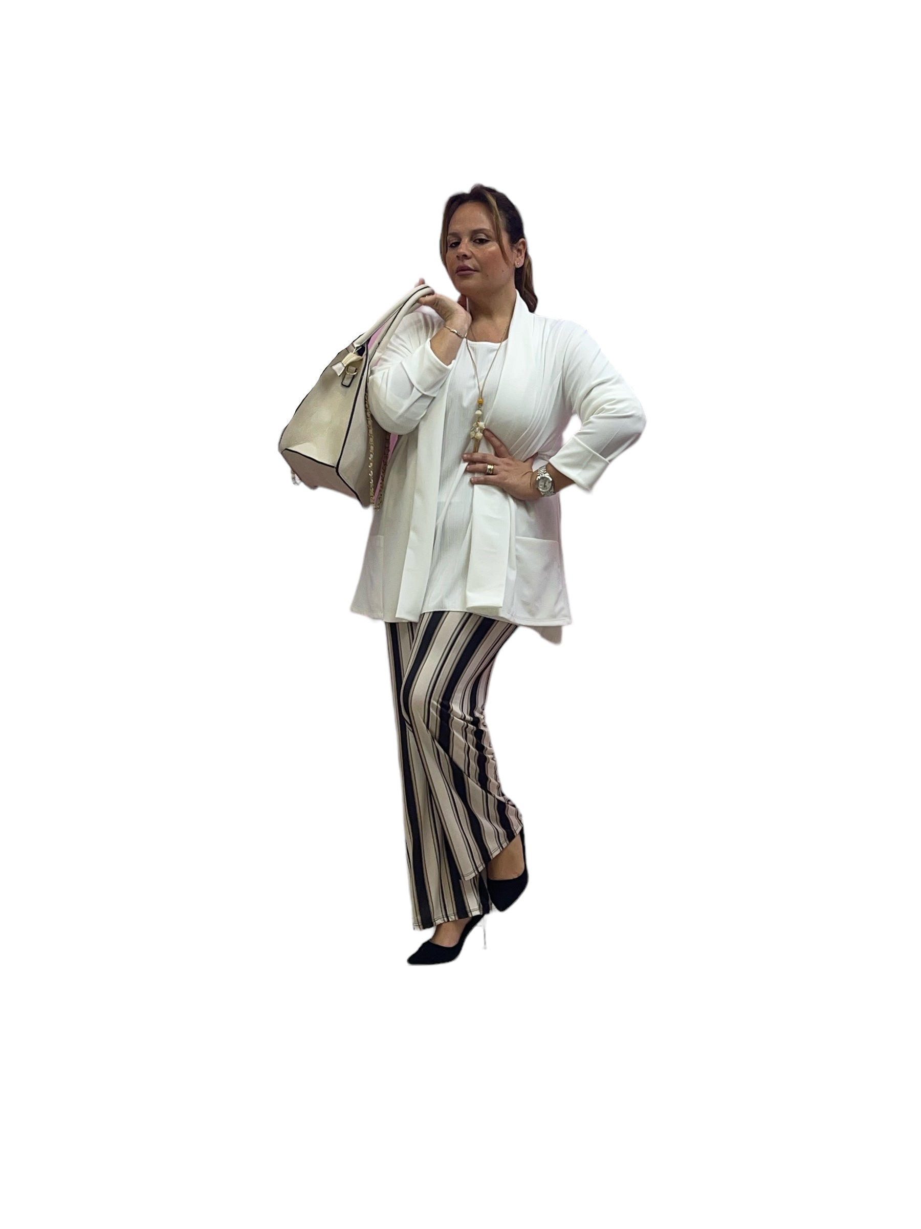 Pantaloni palazzo in jersey rigati con elastico in vita