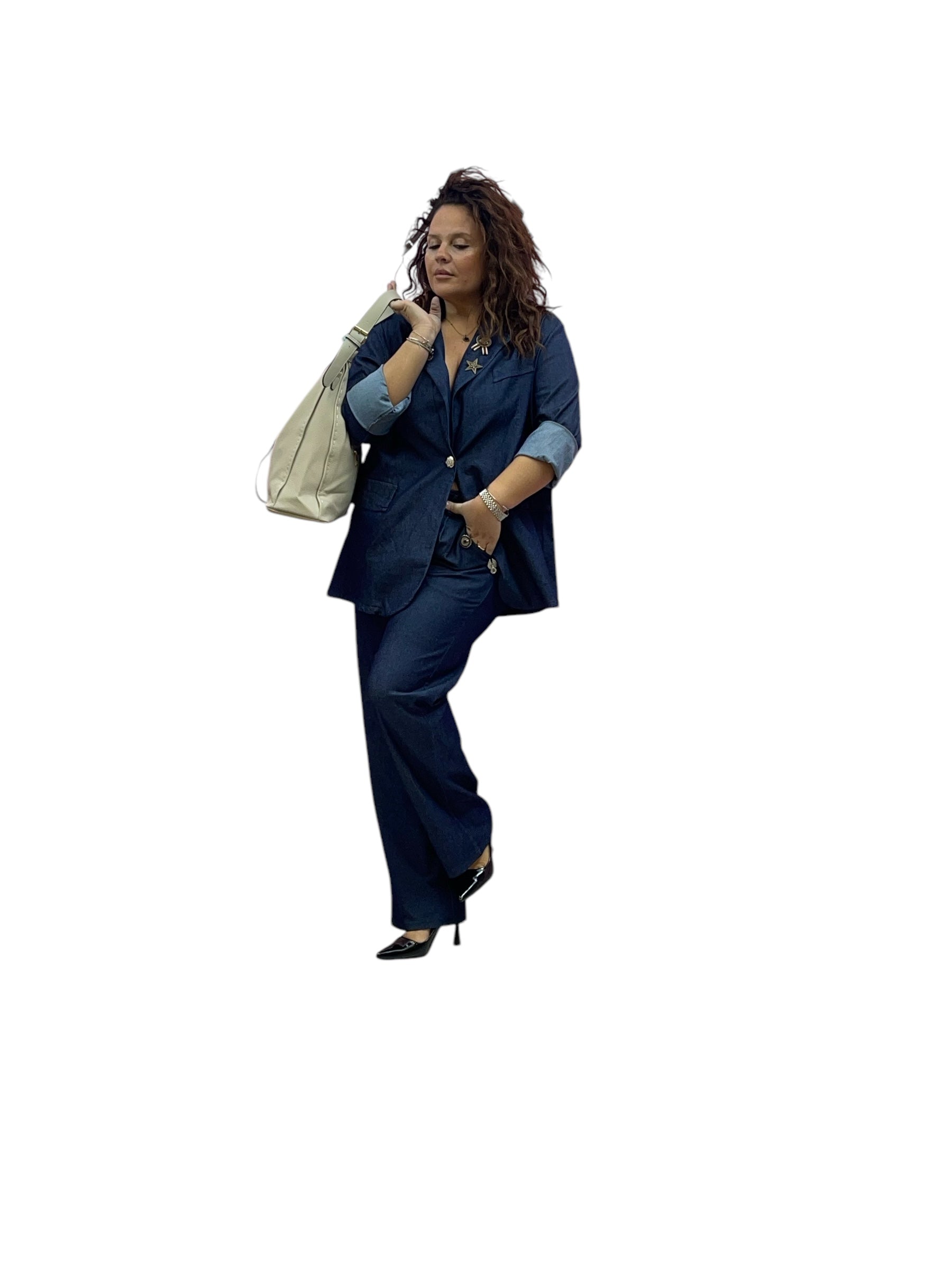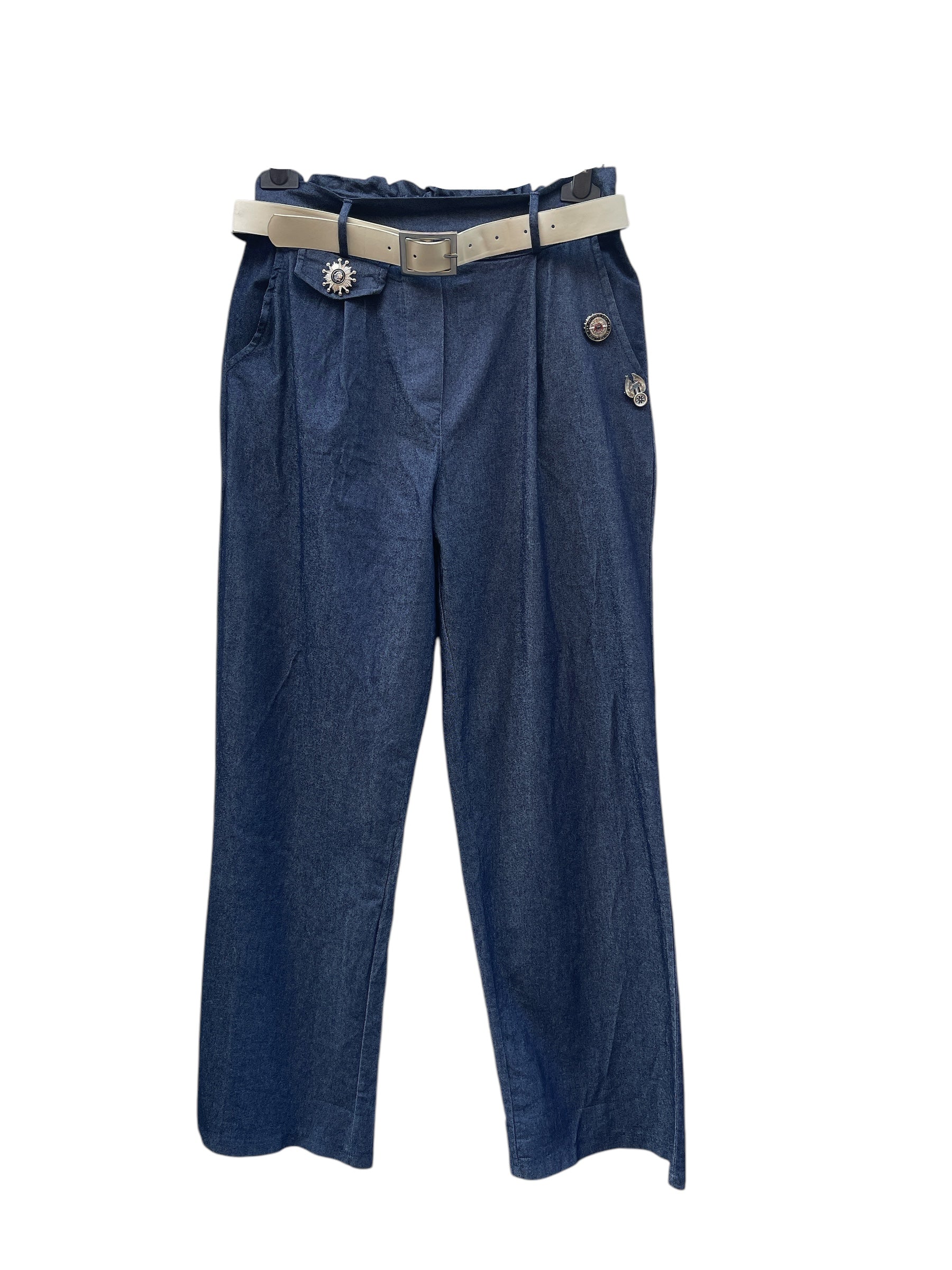 Pantaloni palazzo jeans con tasca america ,cintura ed elastico in vita
