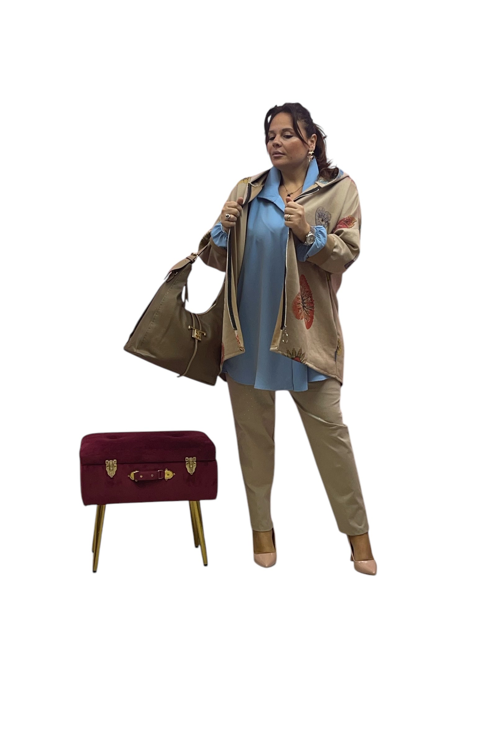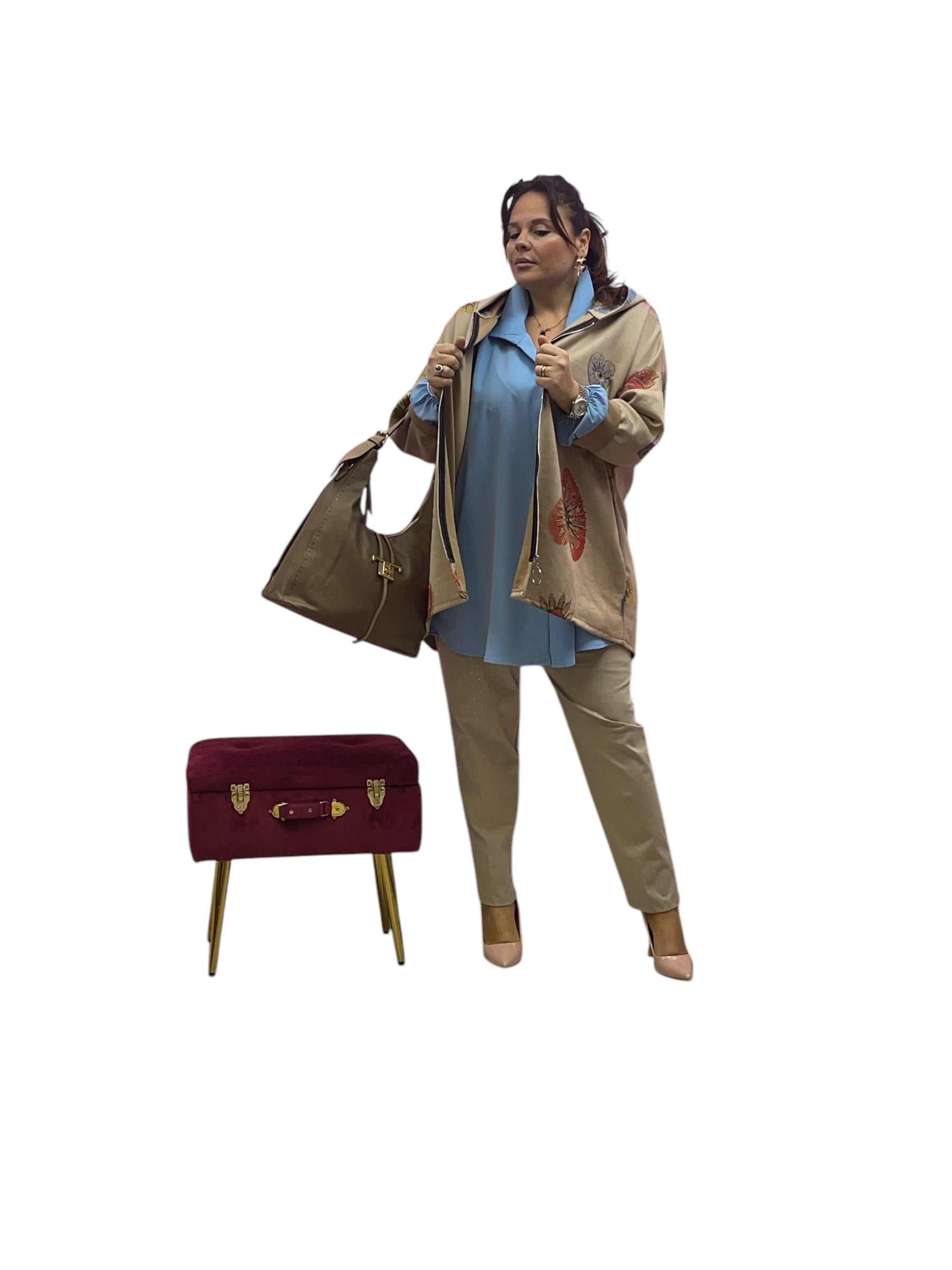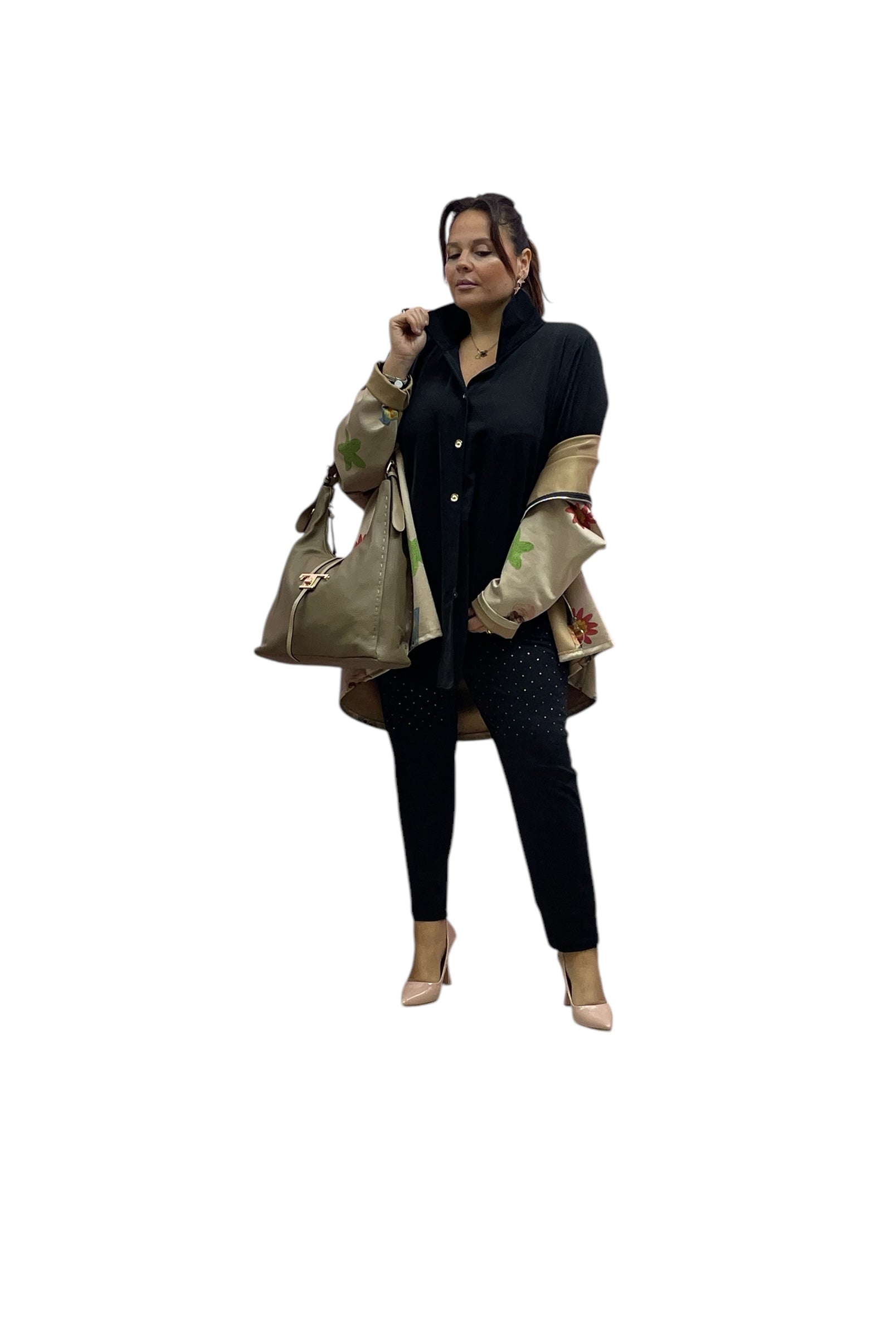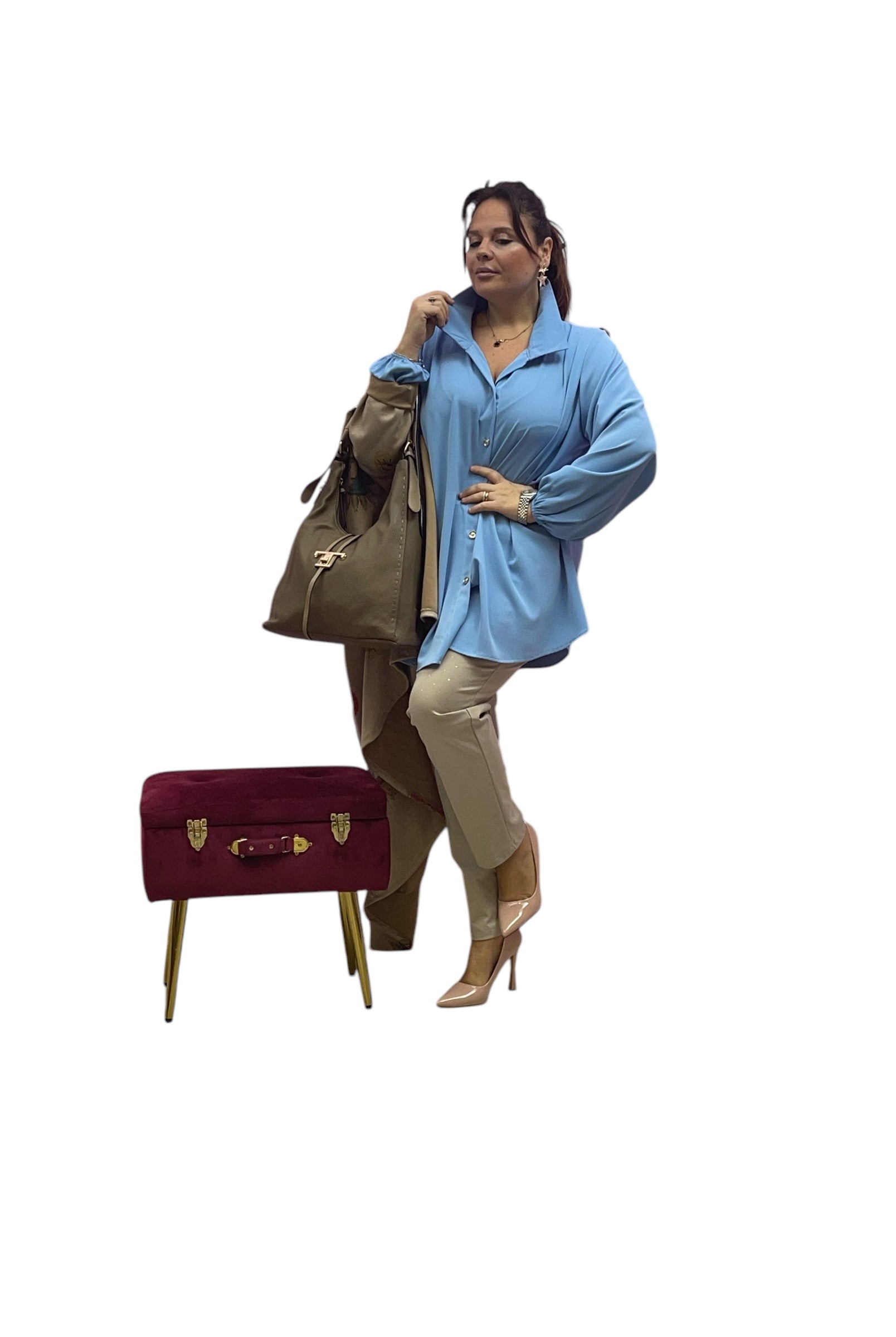 Pantaloni over punto milano morbido con elastico in vita e brillantini