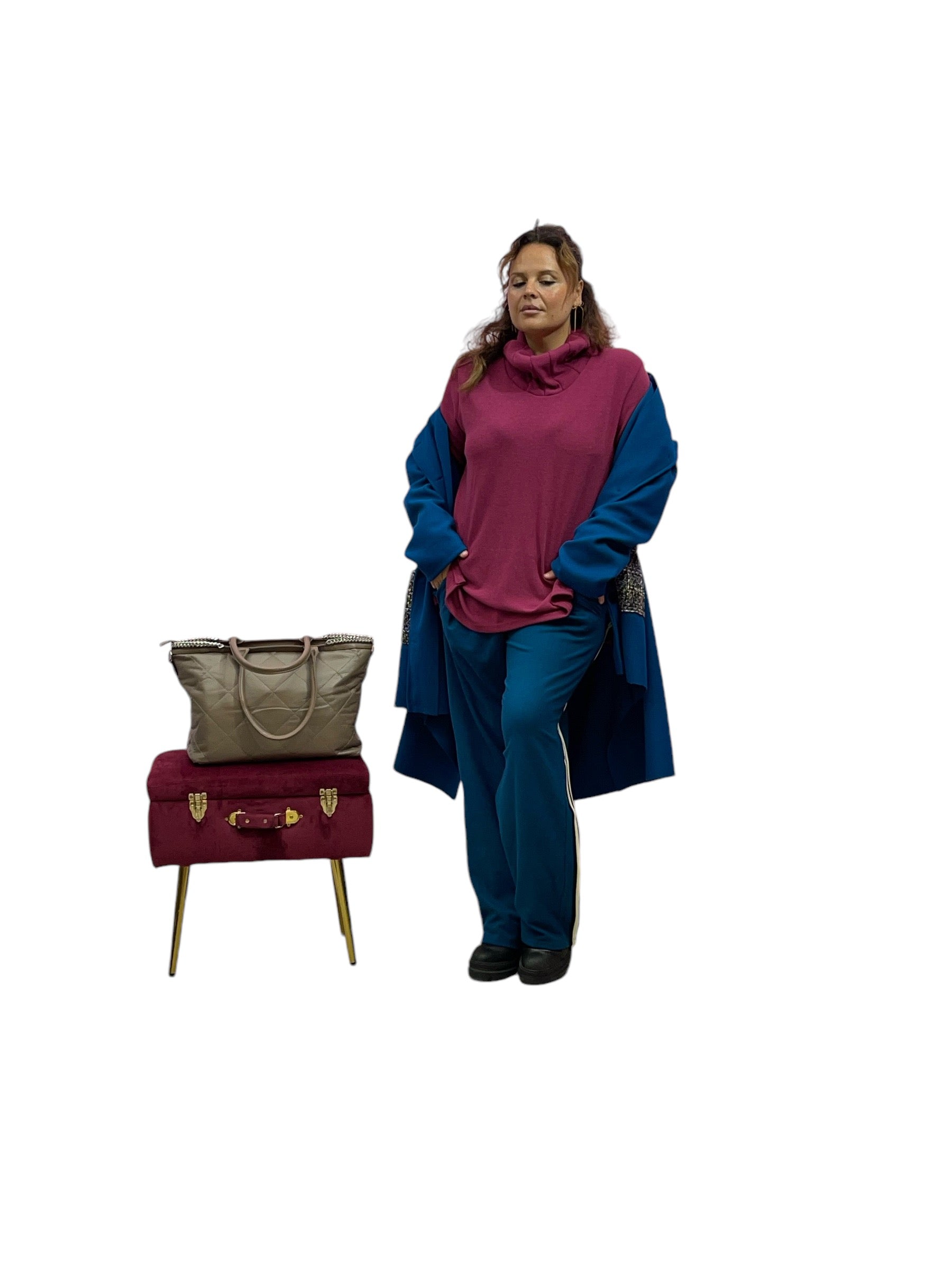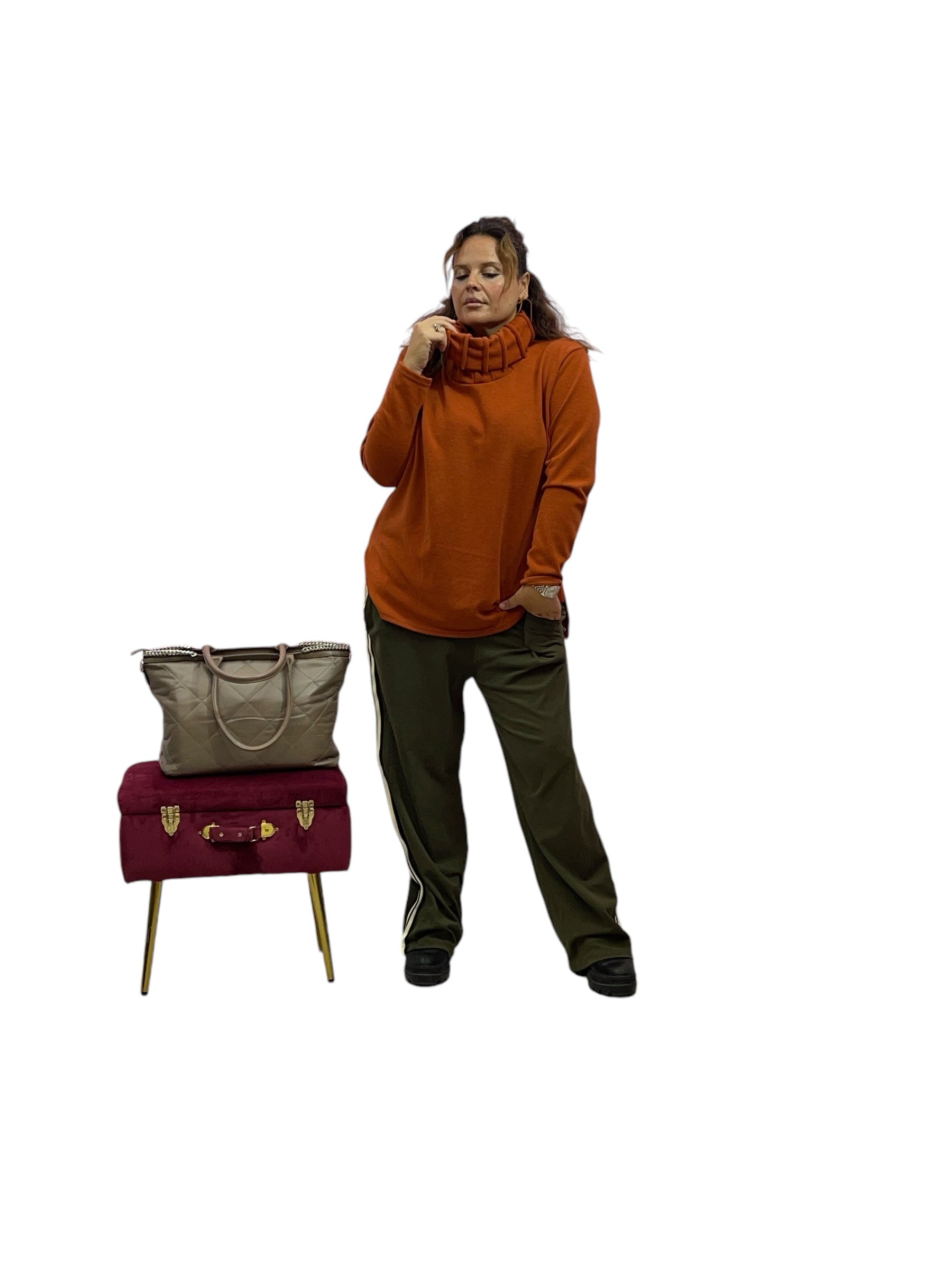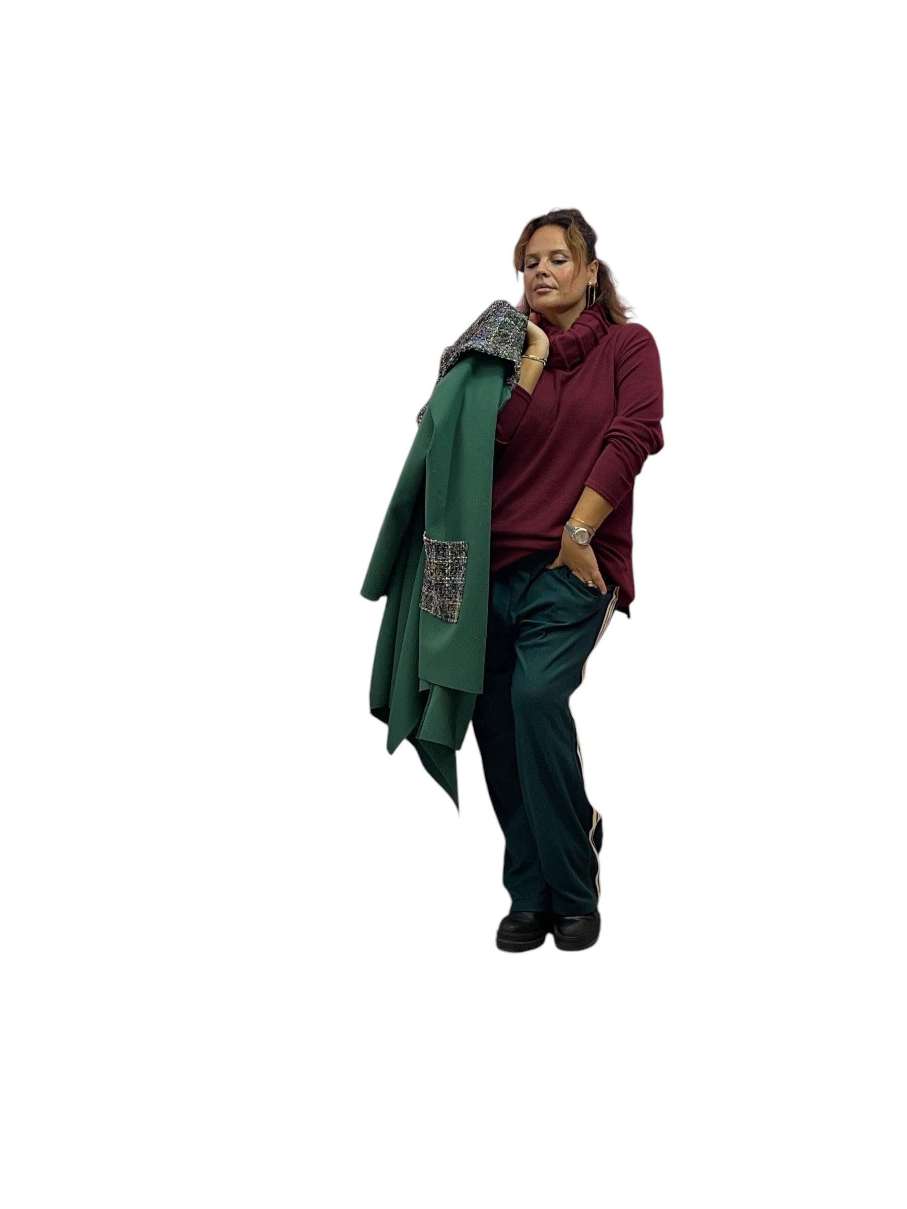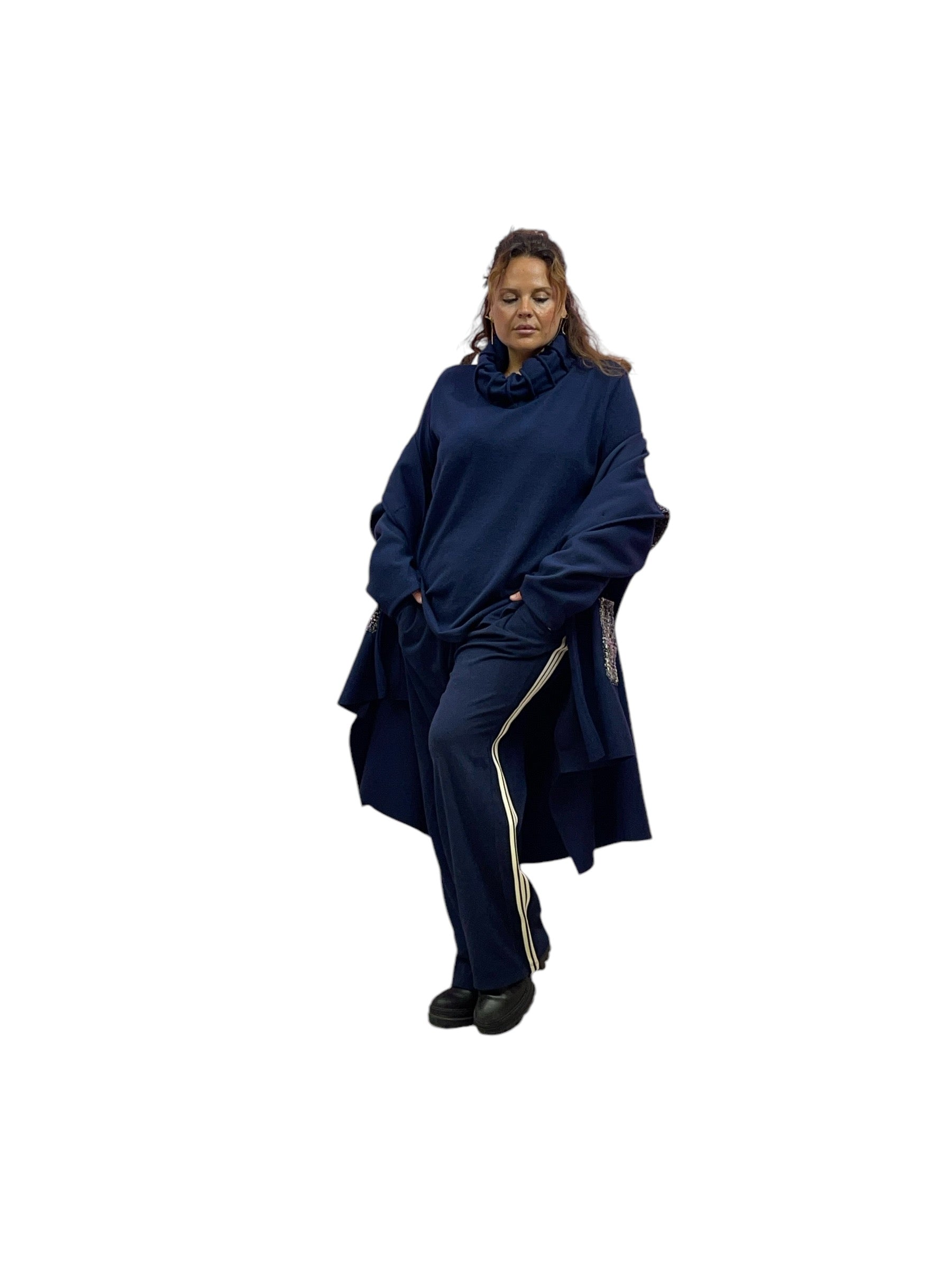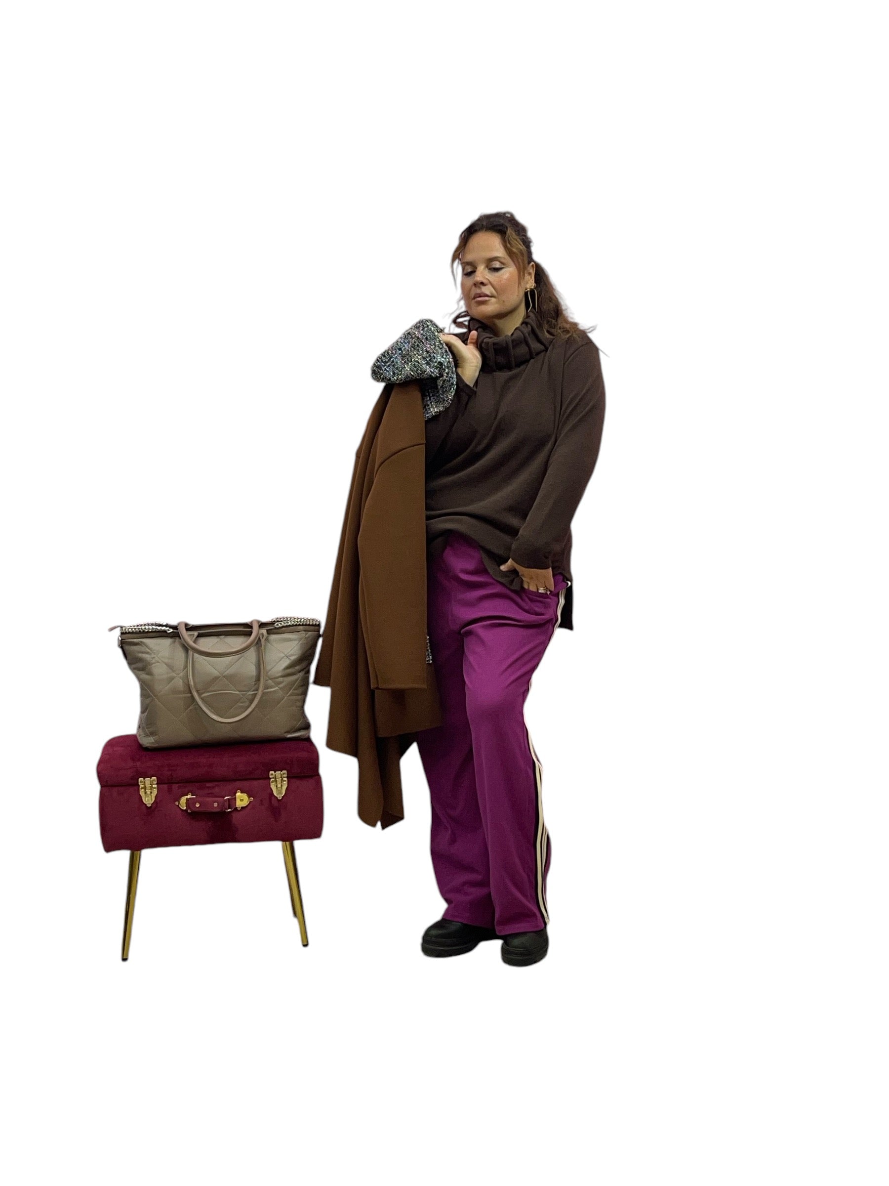 Pantaloni over palazzo in felpa con bande laterali,tasche america elastico in vita