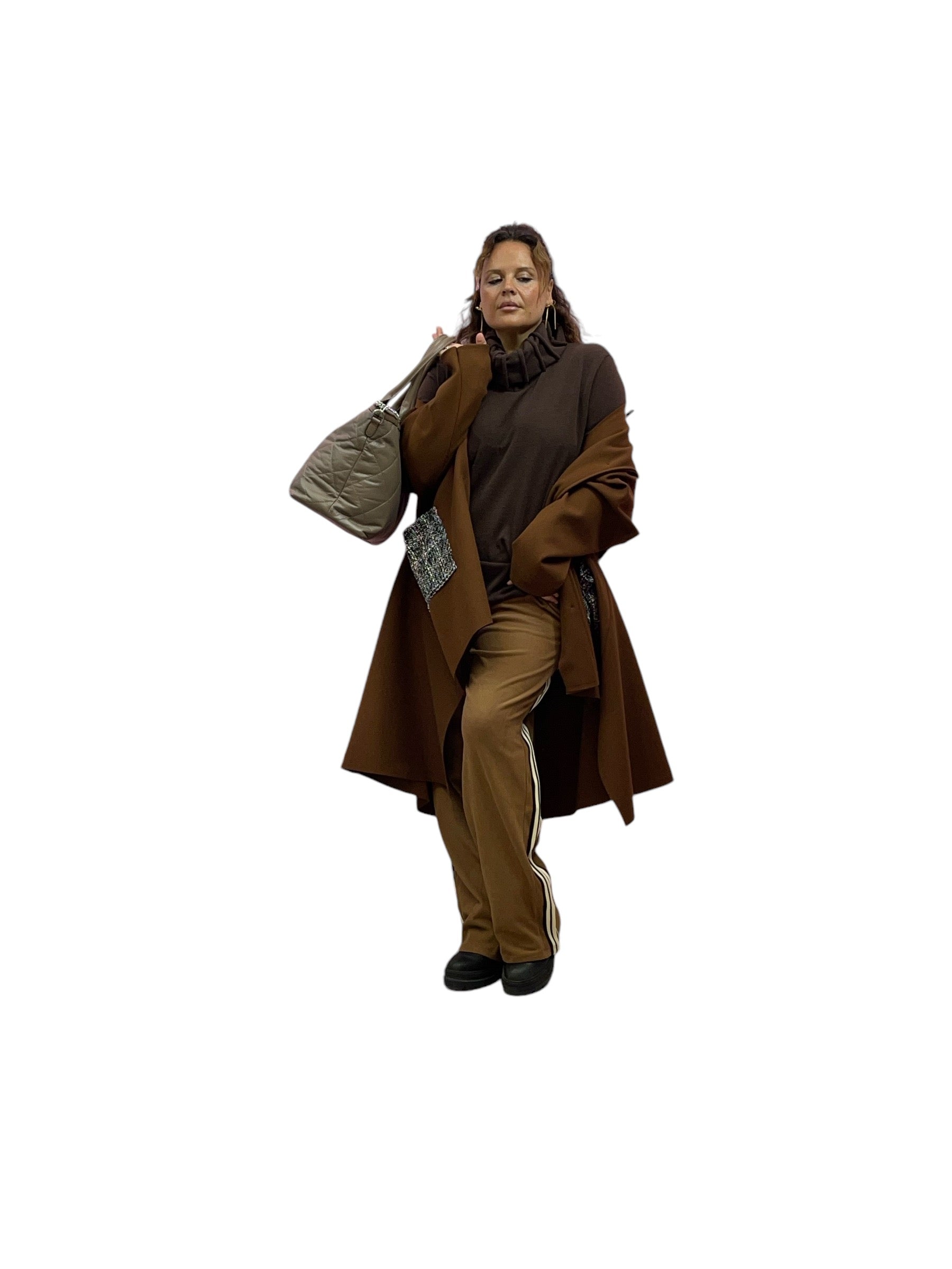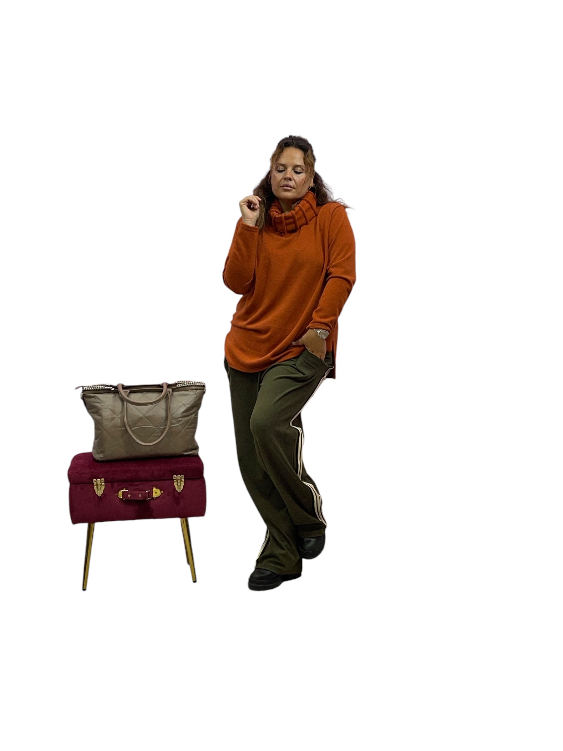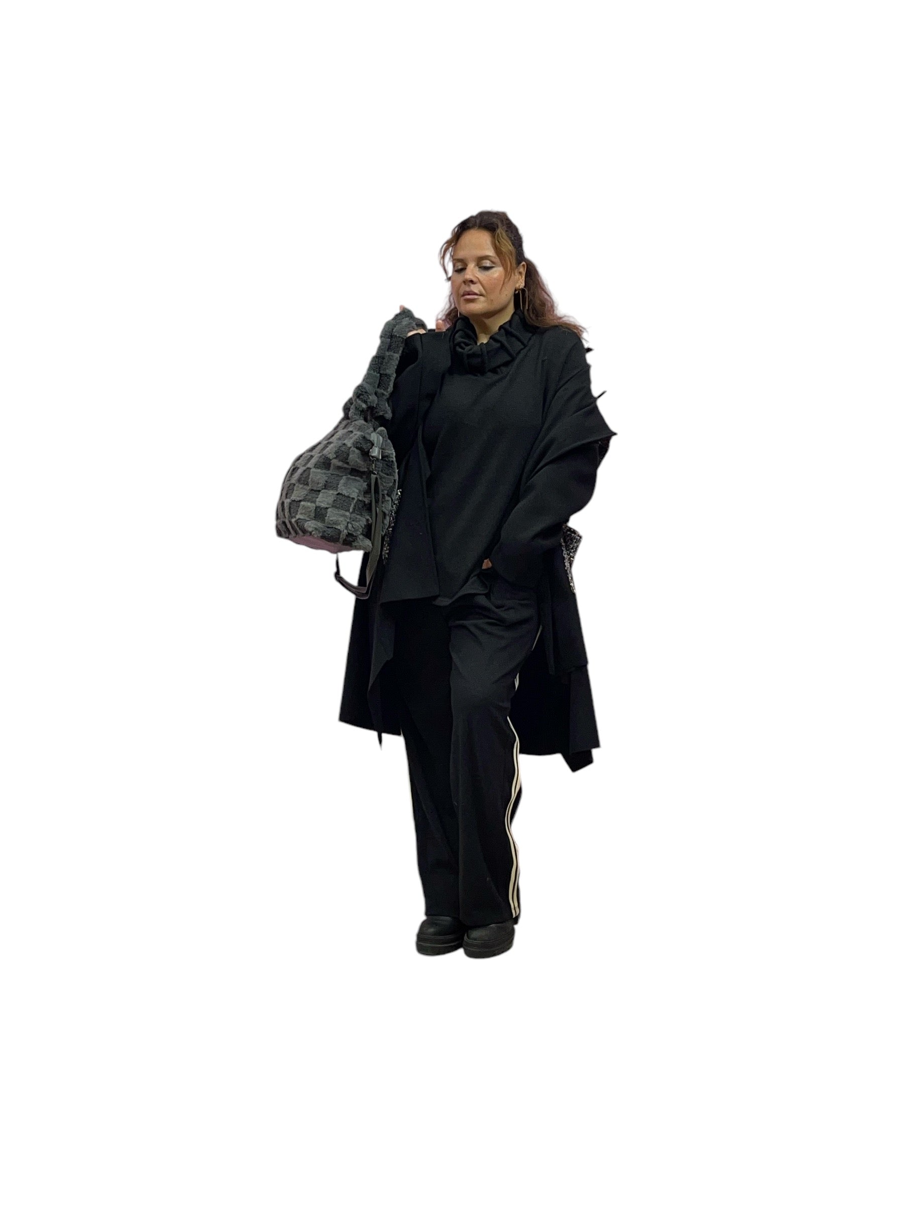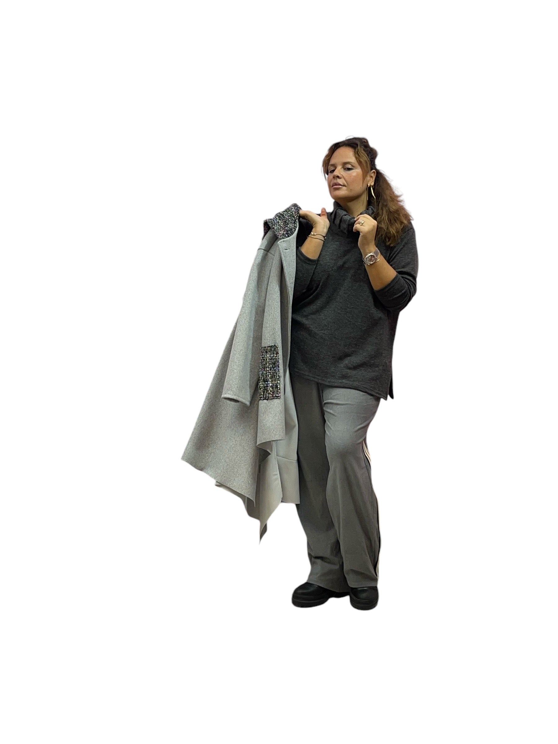 Pantaloni over palazzo in felpa con bande laterali,tasche america elastico in vita