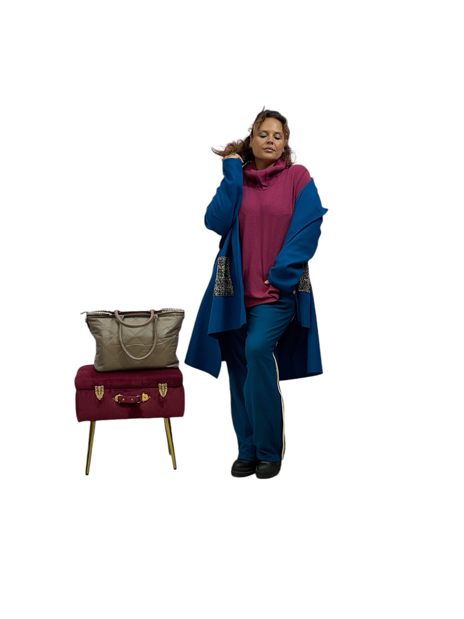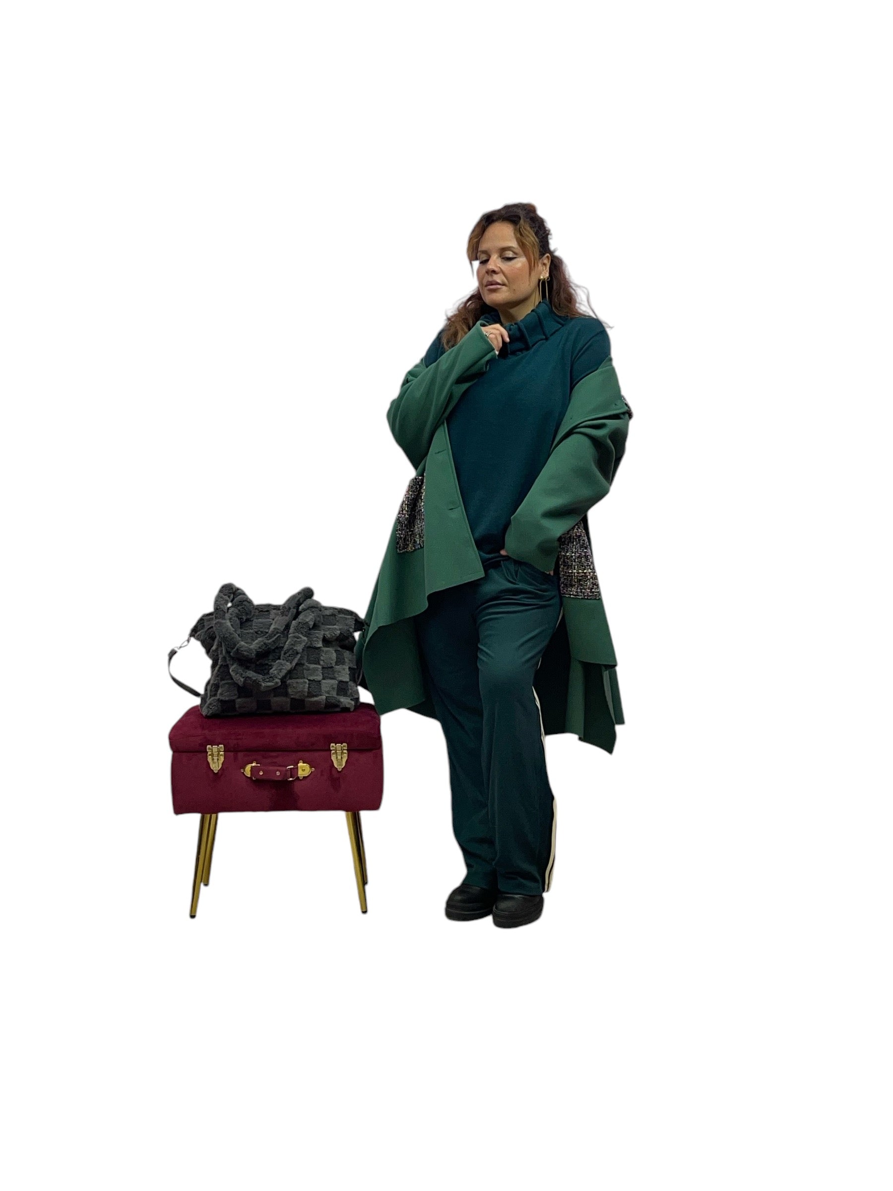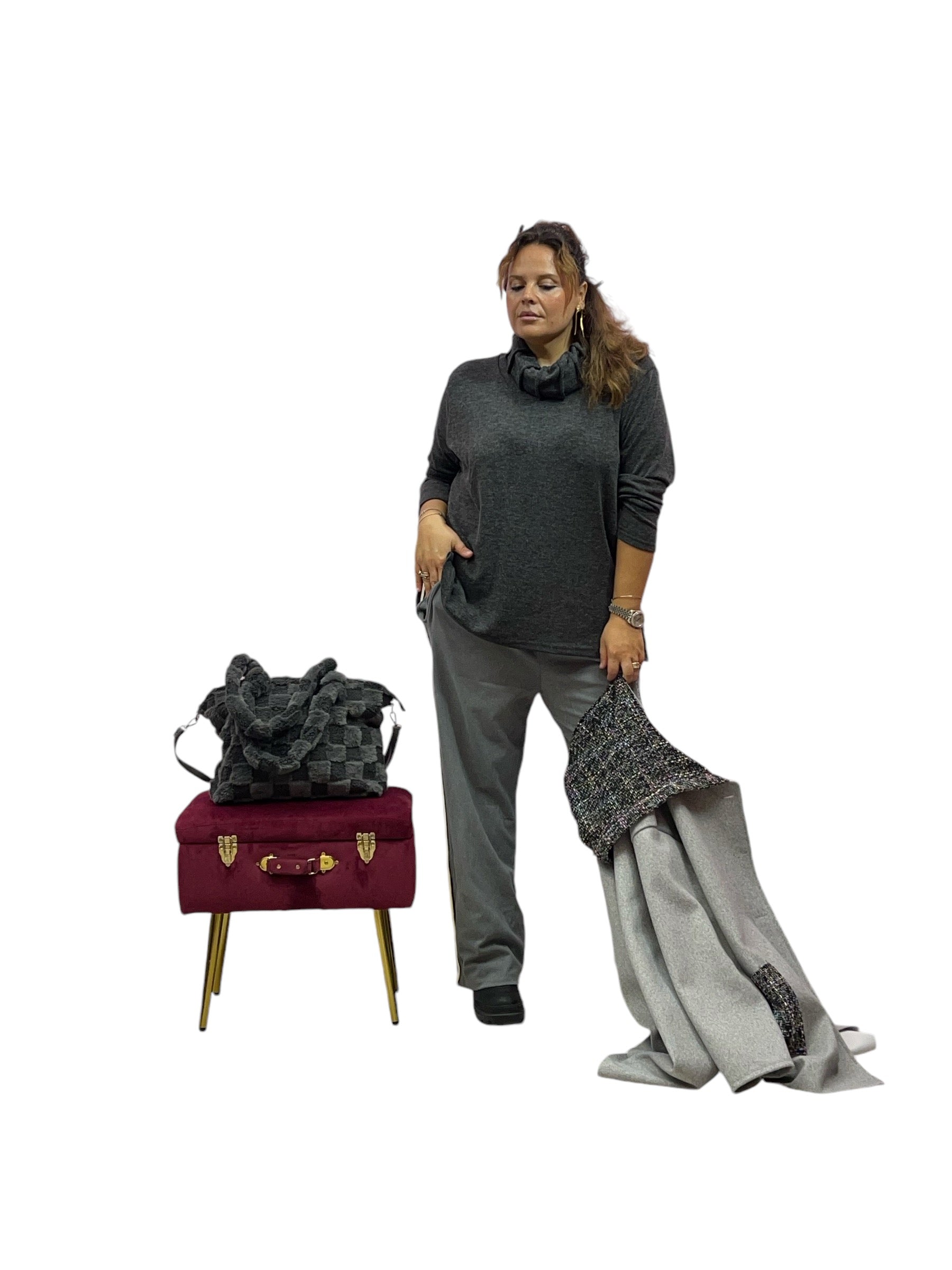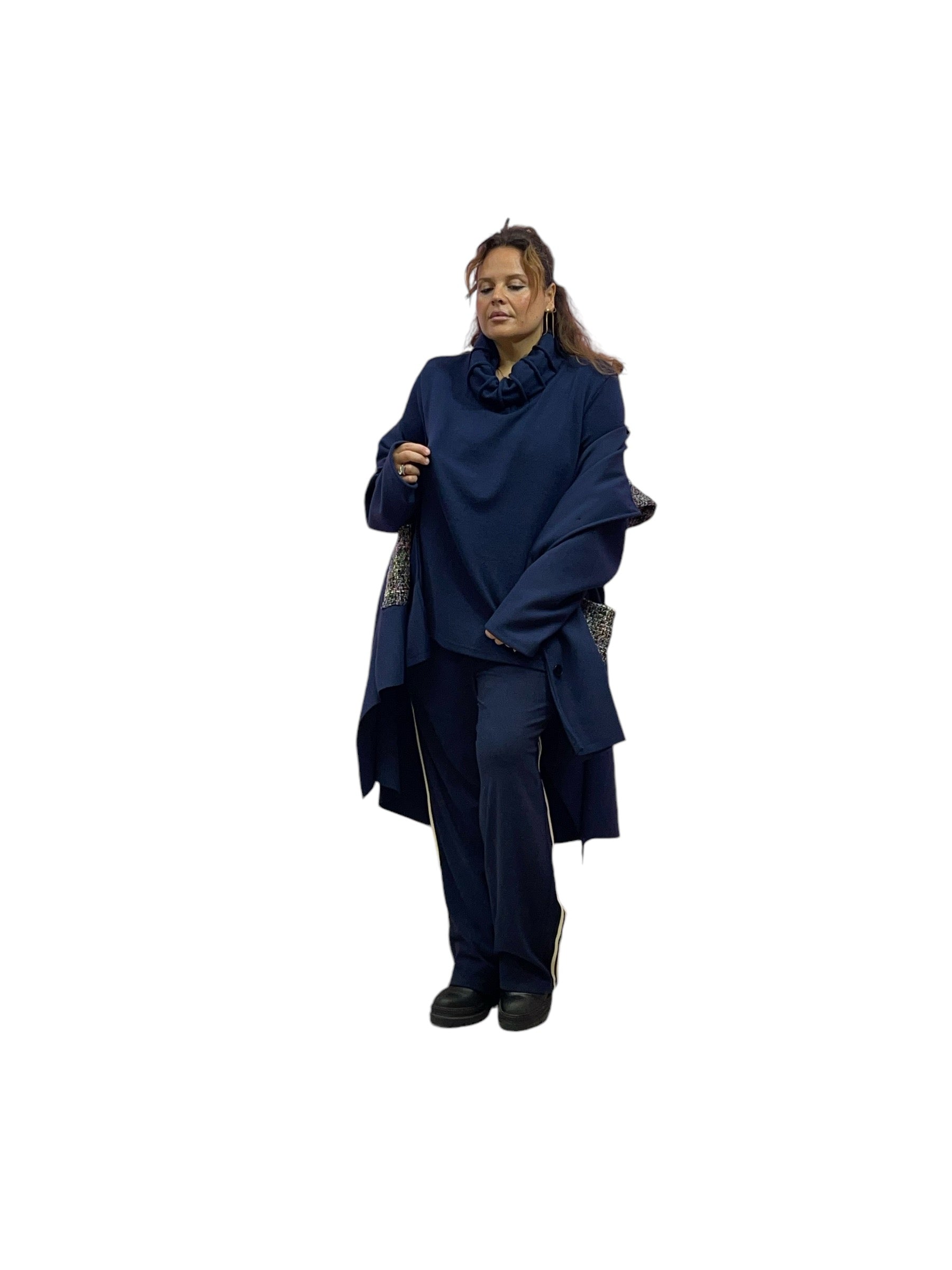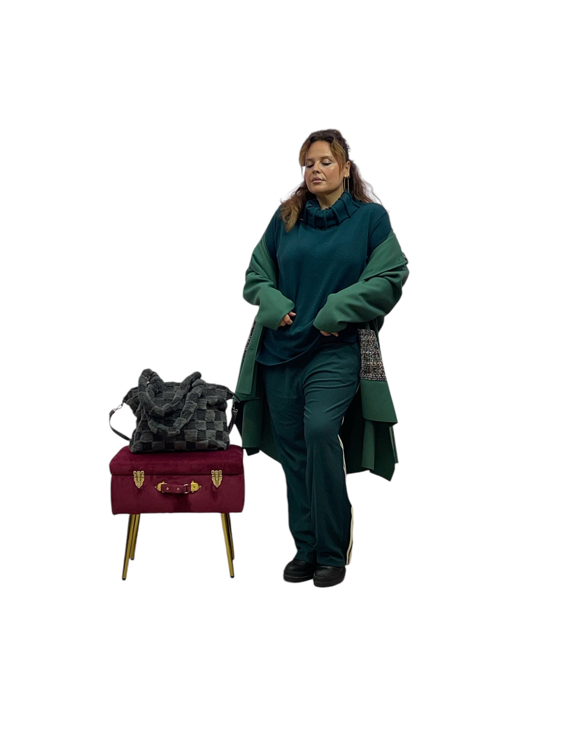 Pantaloni over palazzo in felpa con bande laterali,tasche america elastico in vita