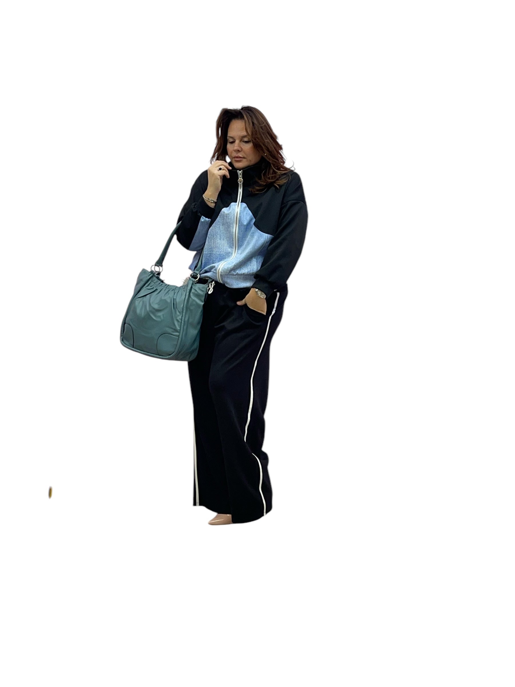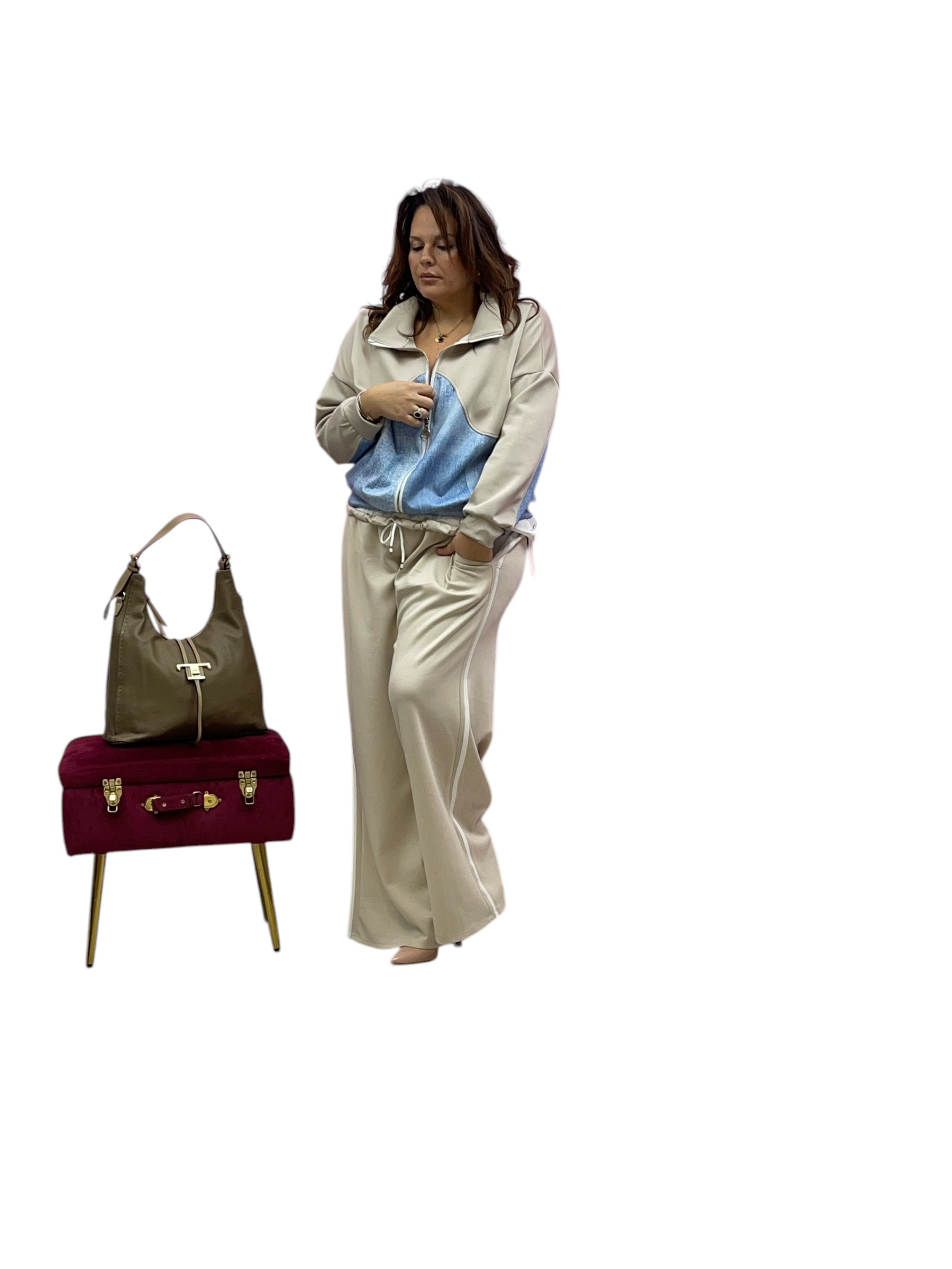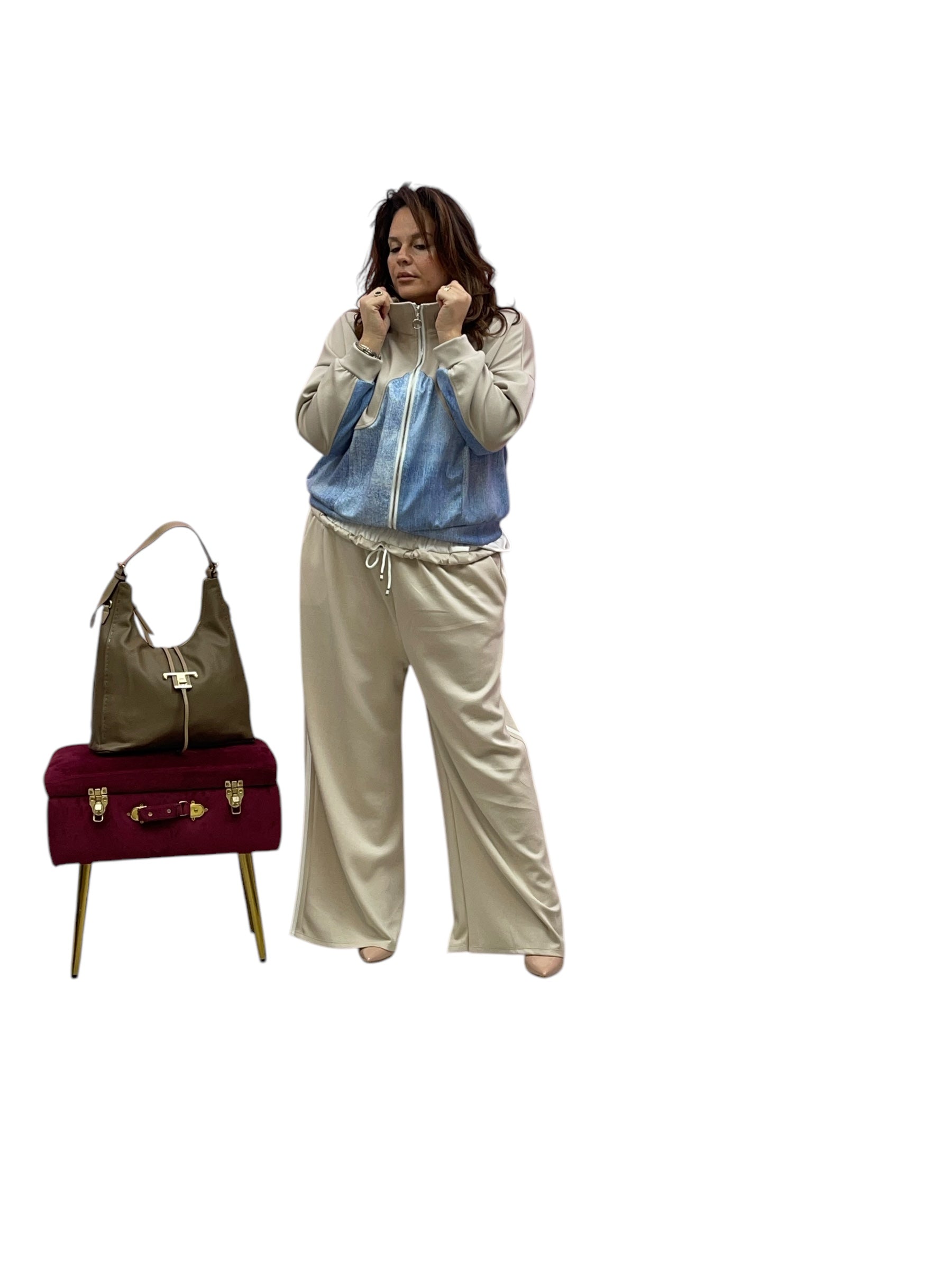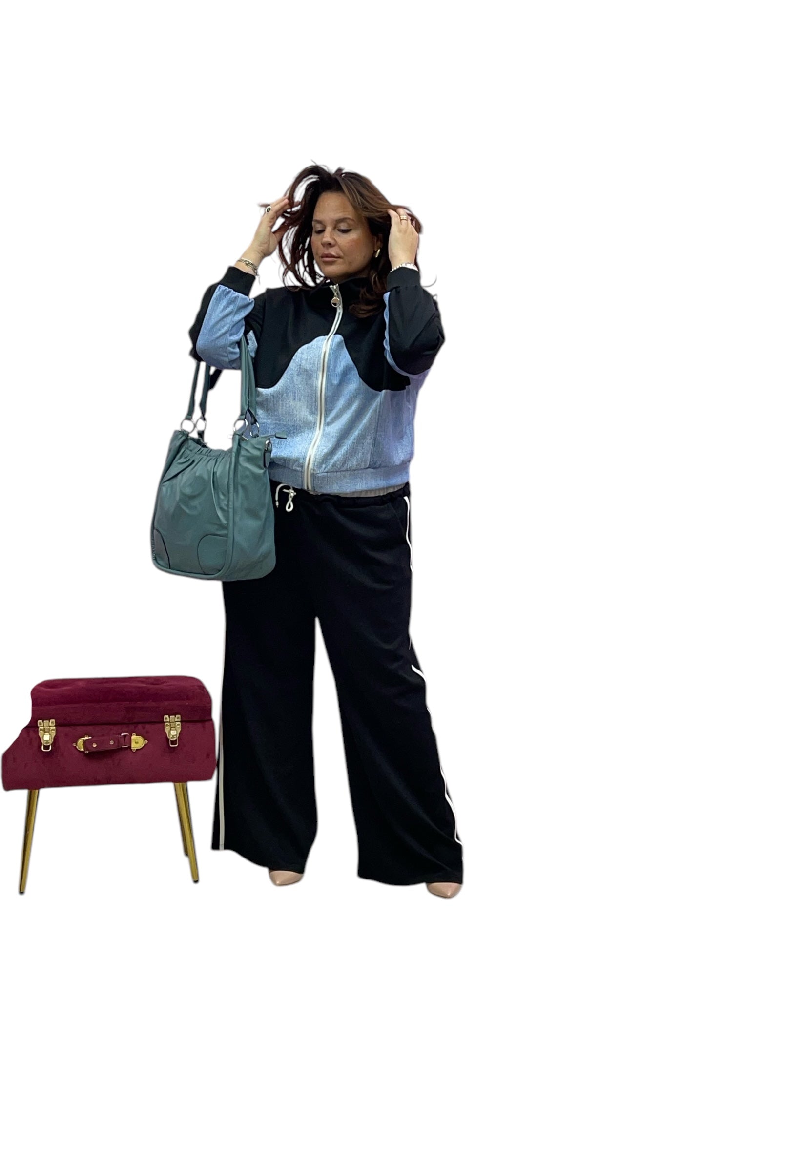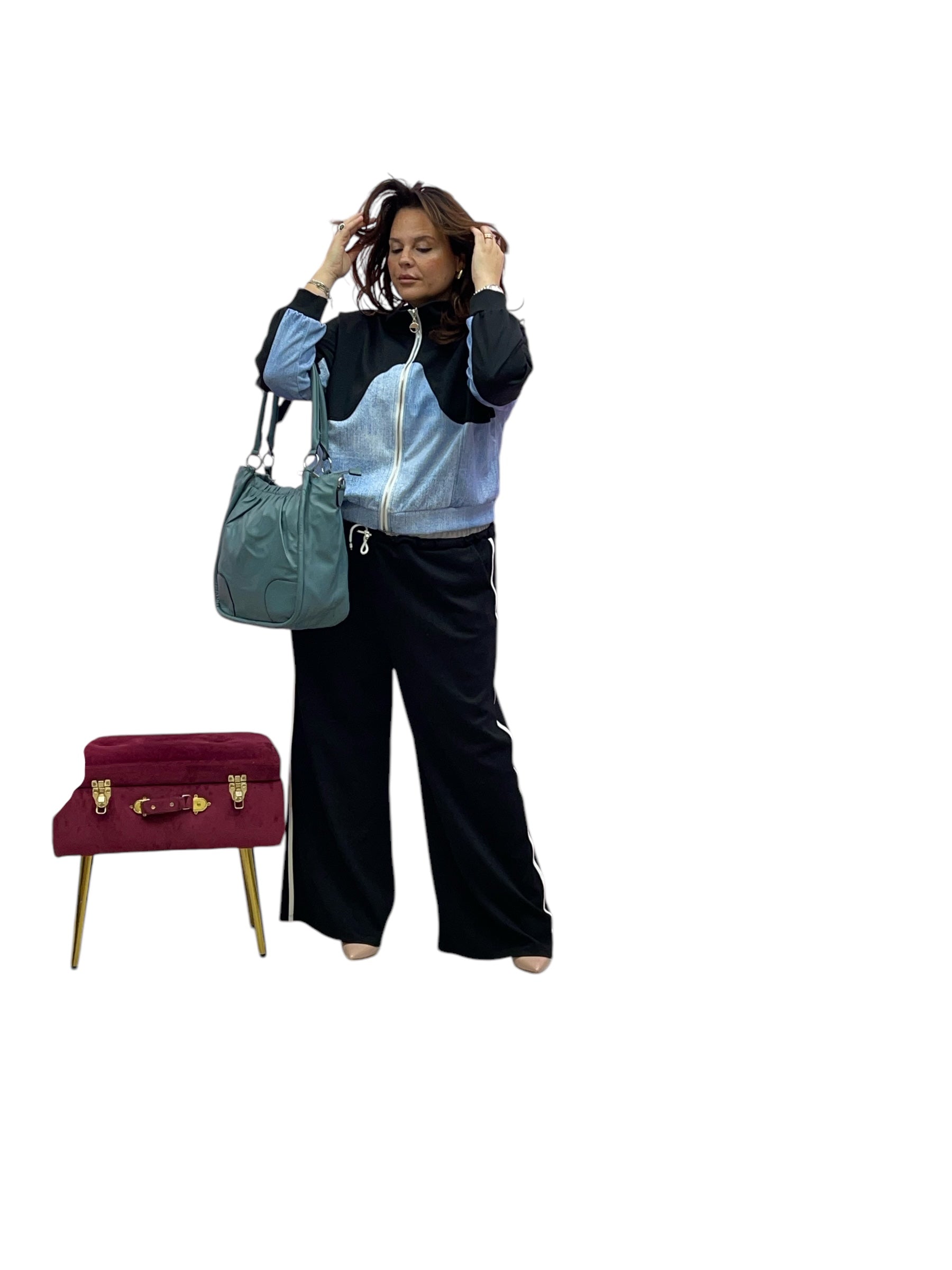 Pantaloni palazzo morbidi in felpa con banda laterale ed elastico in vita