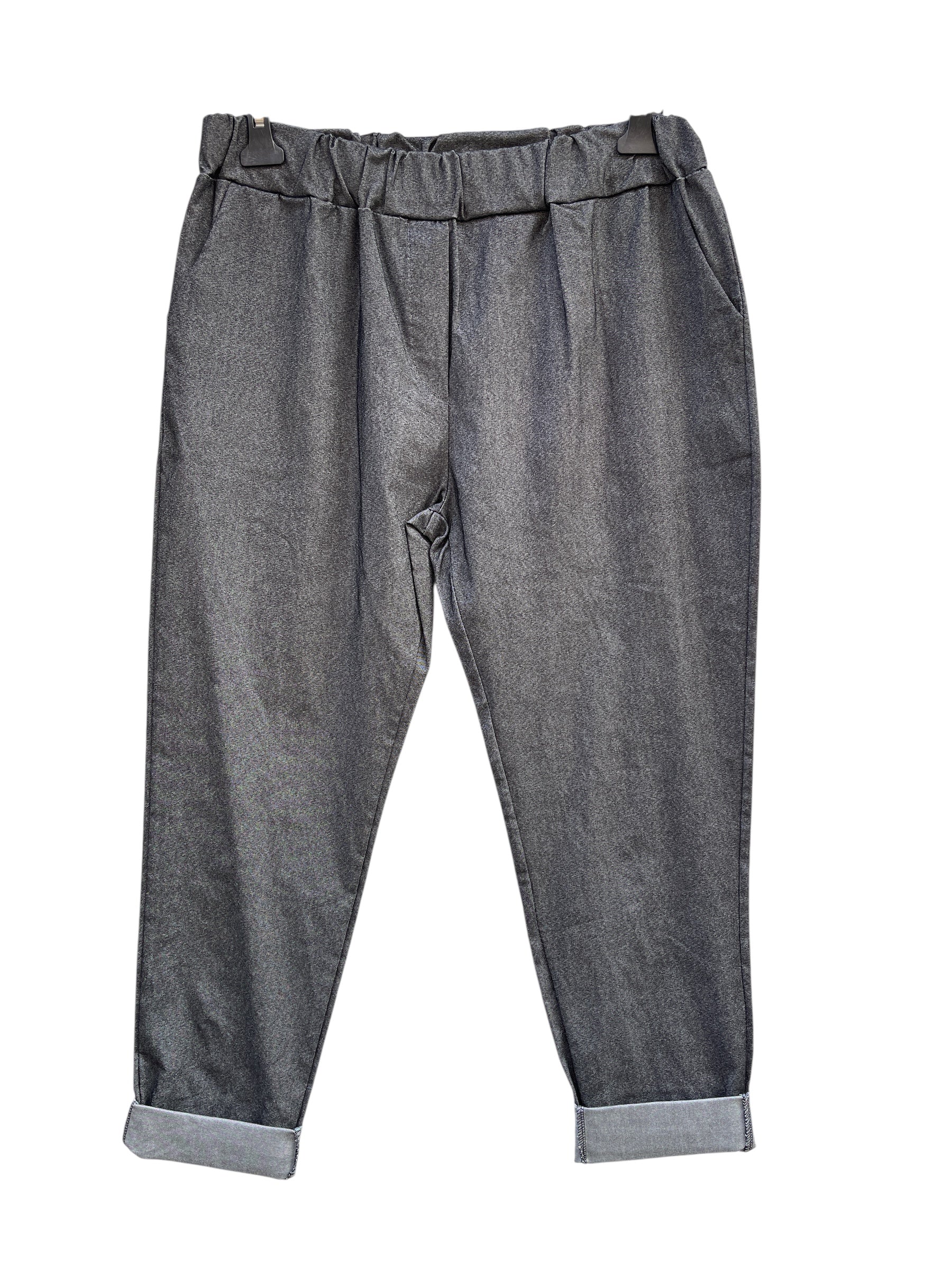 Pantaloni over 5 tasche con elastico in vita e tasca america