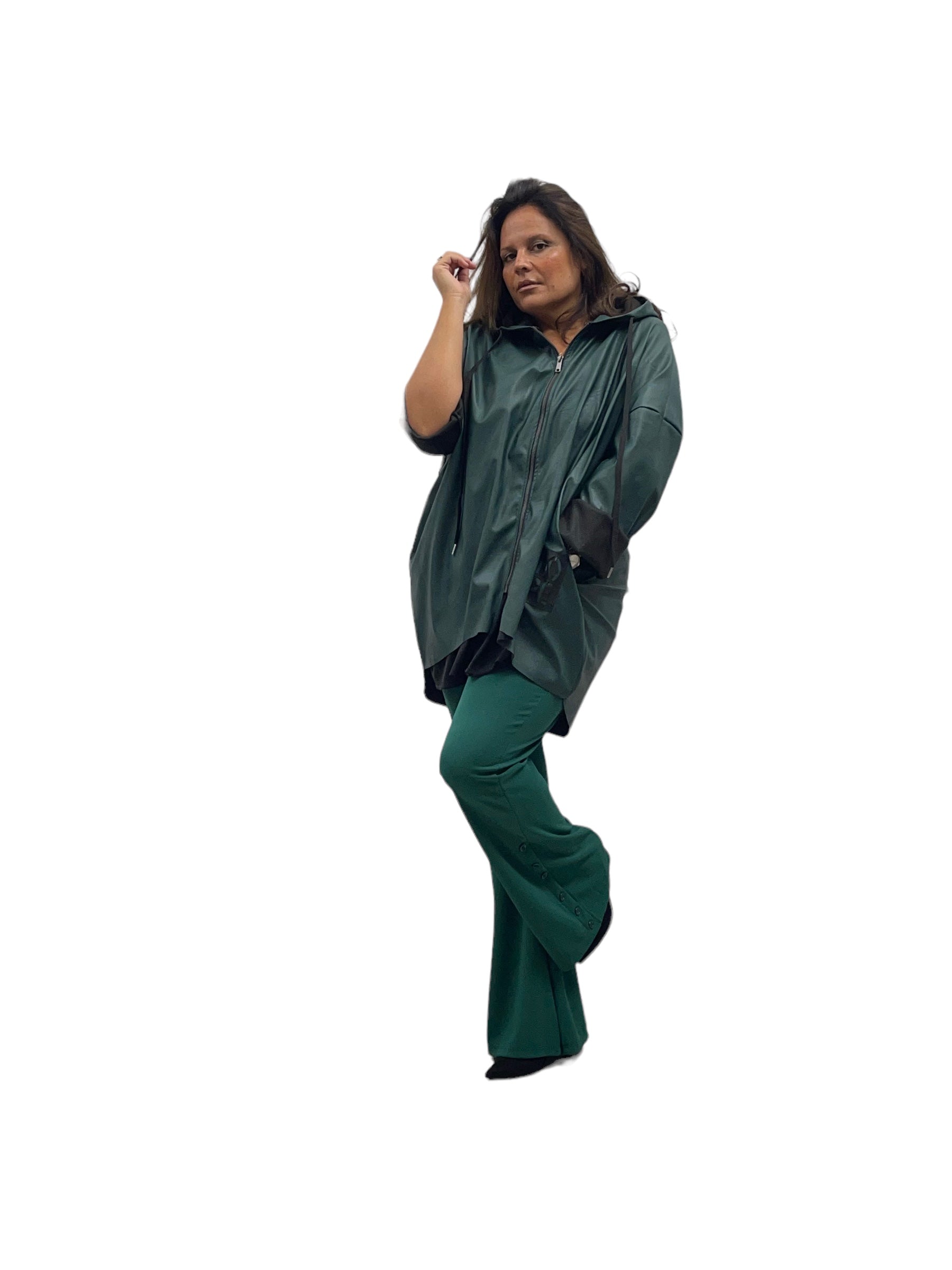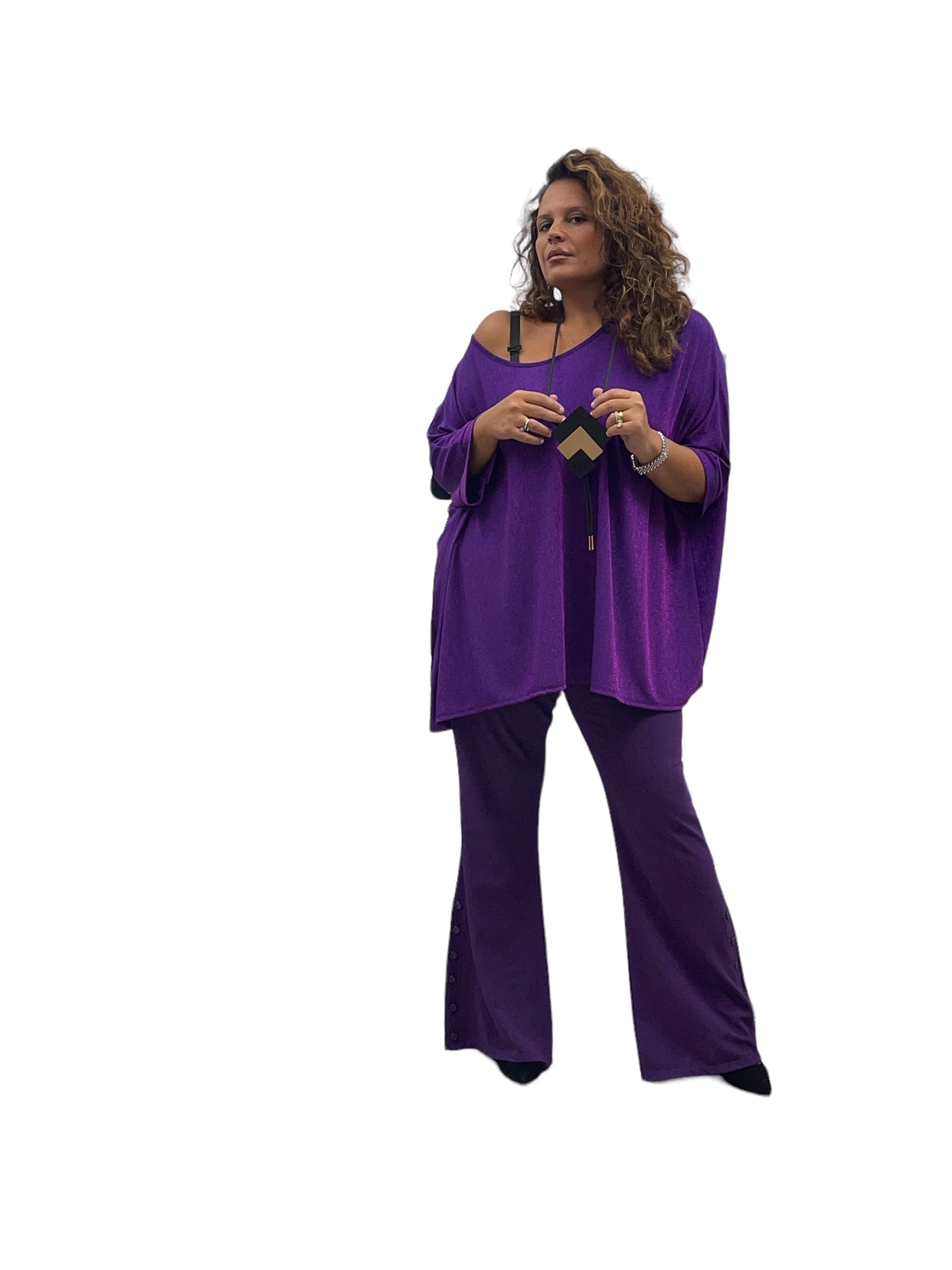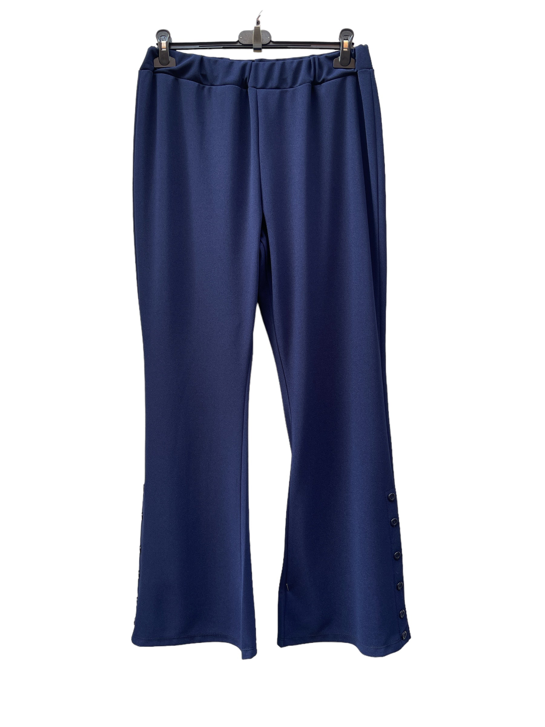 Pantaloni over a zampa con bottoncini alla caviglia ed elastico in vita