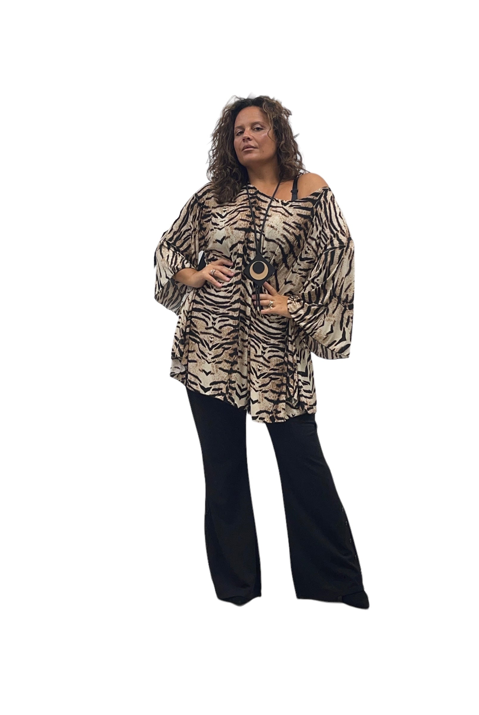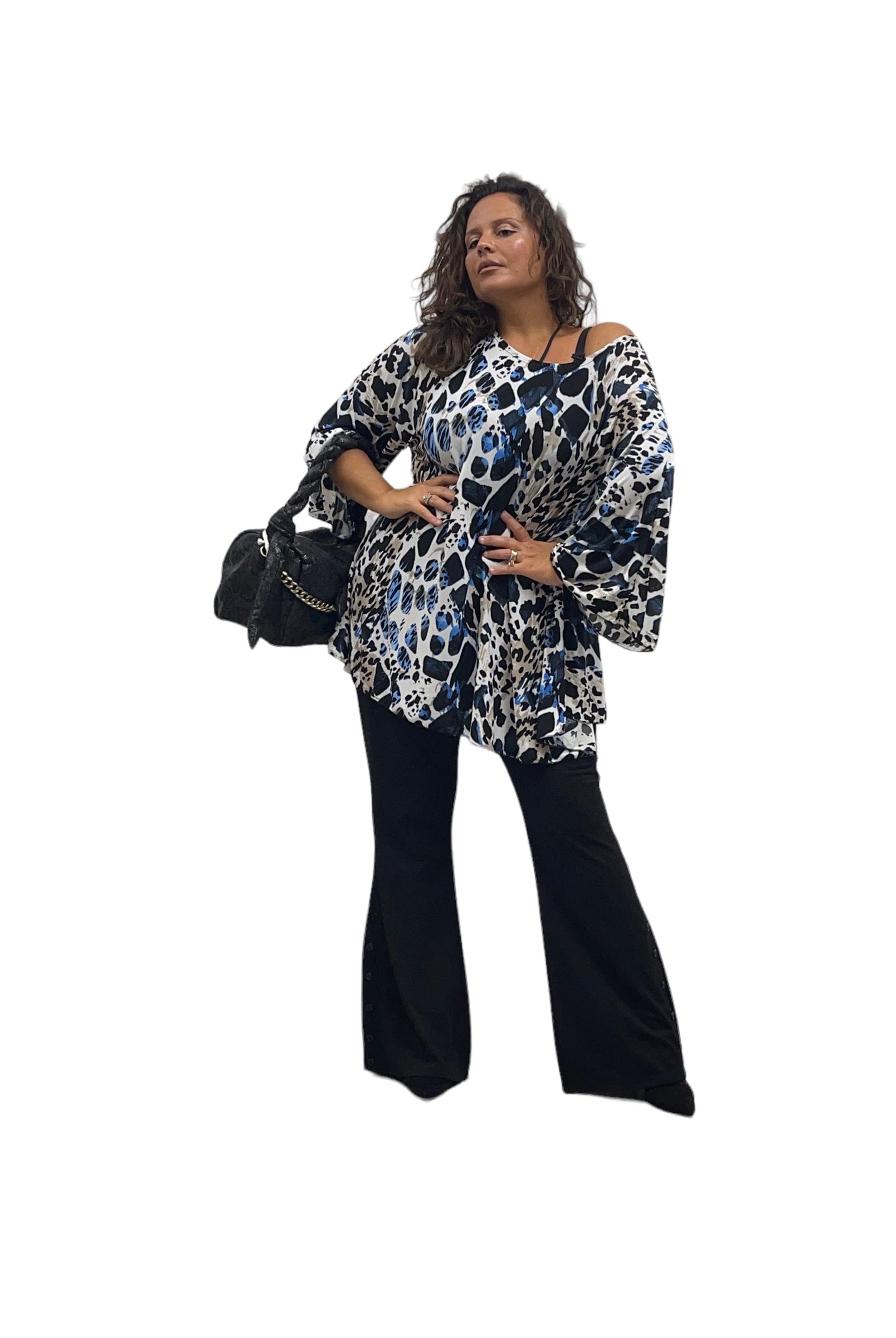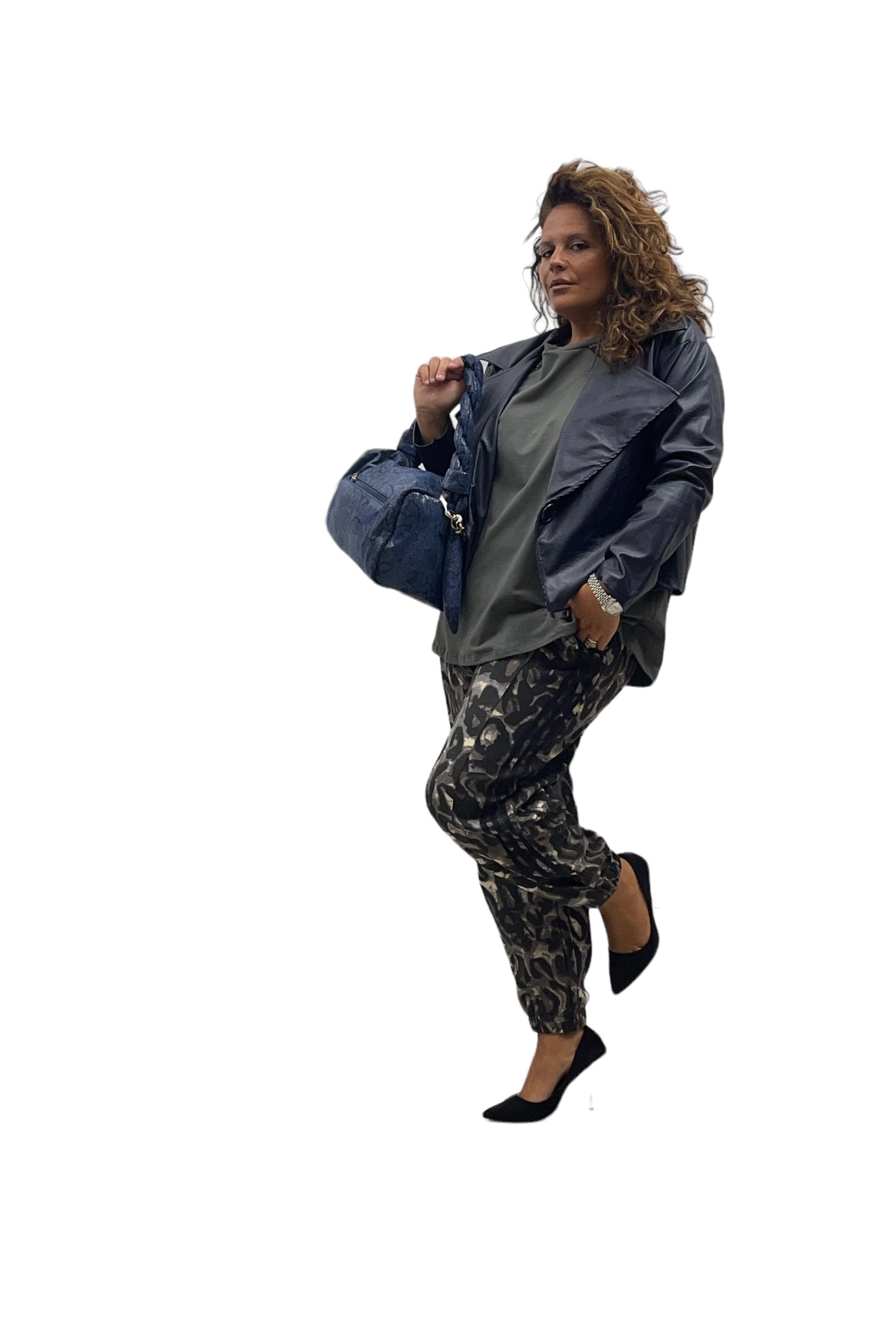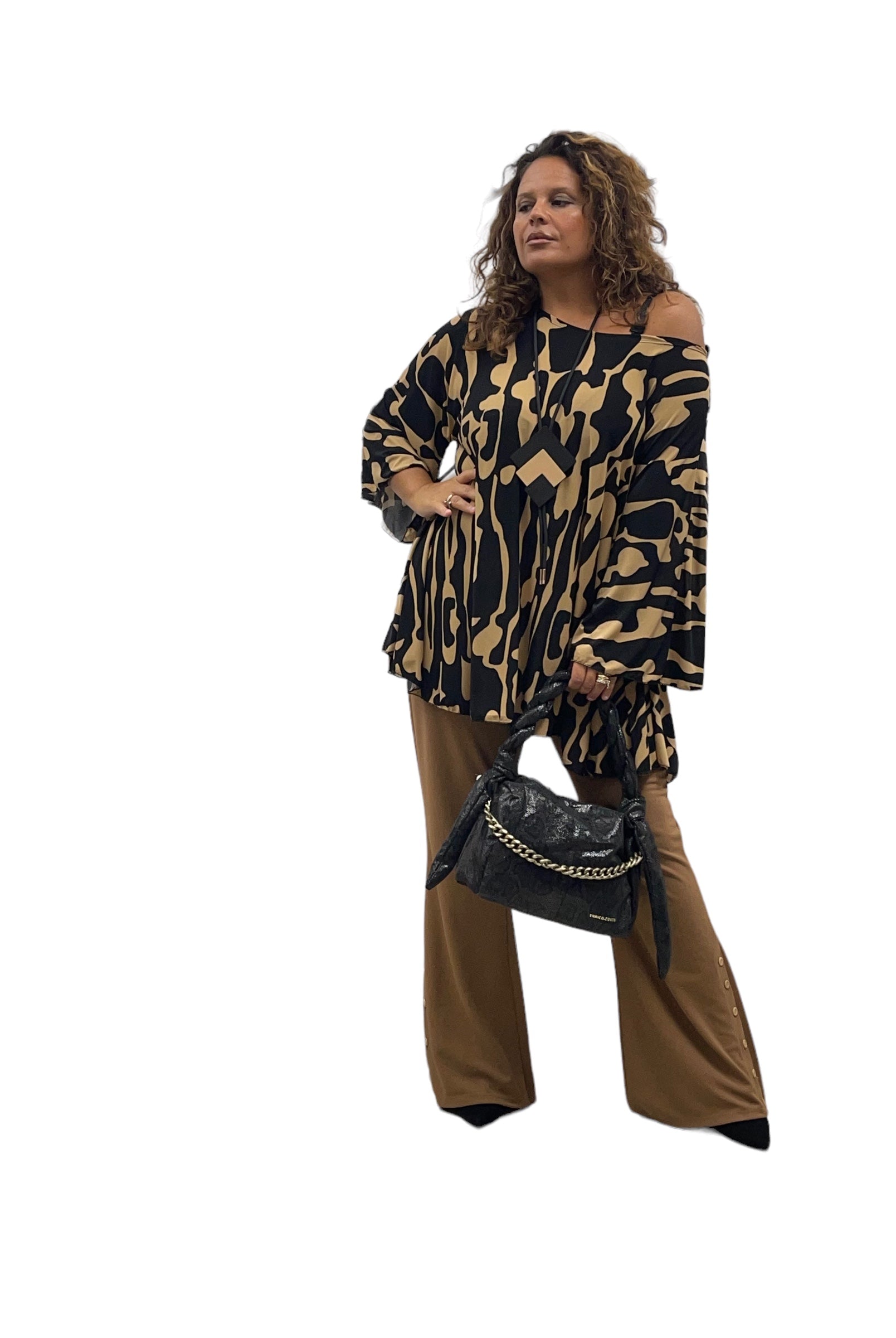 Pantaloni over a zampa con bottoncini alla caviglia ed elastico in vita