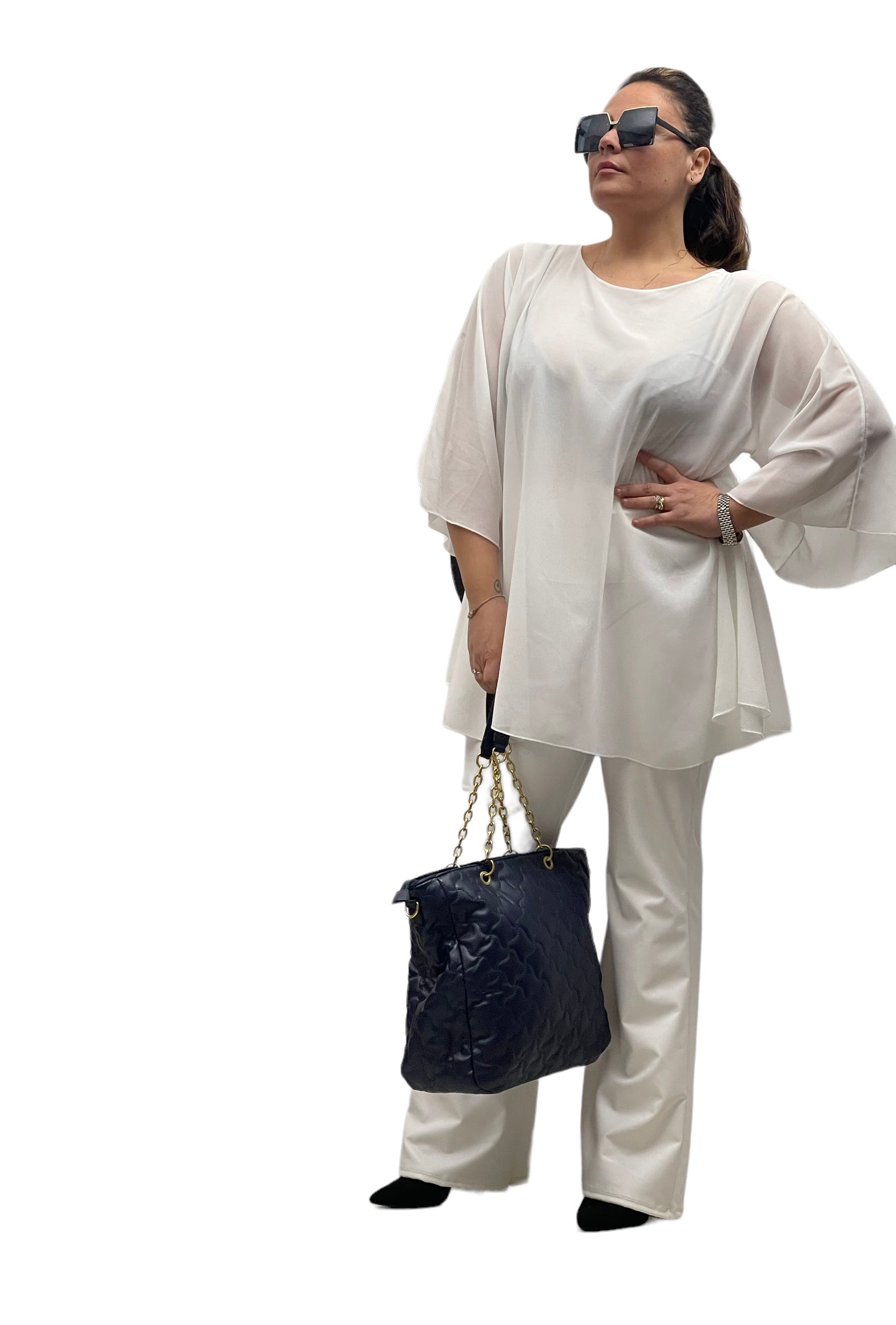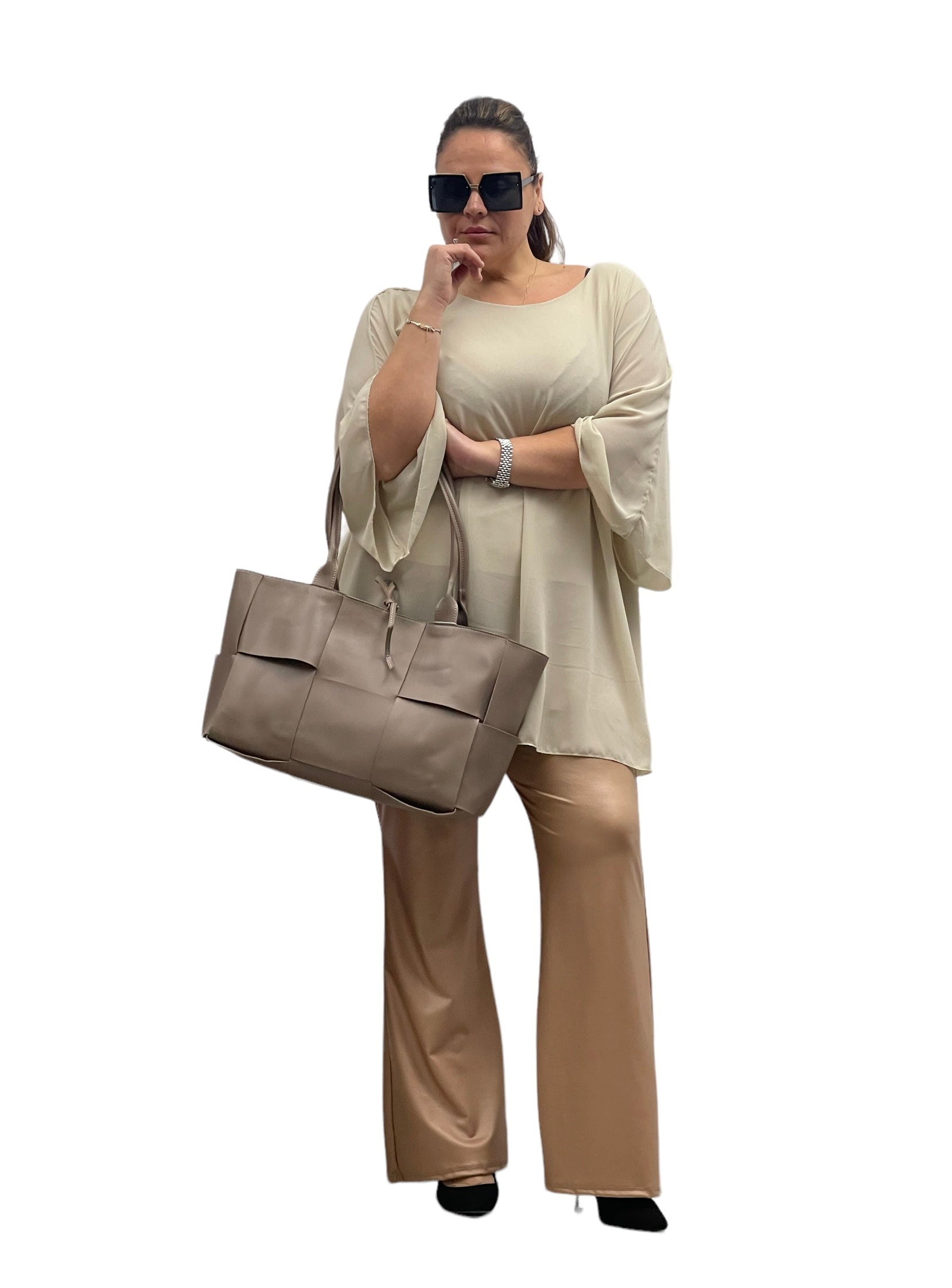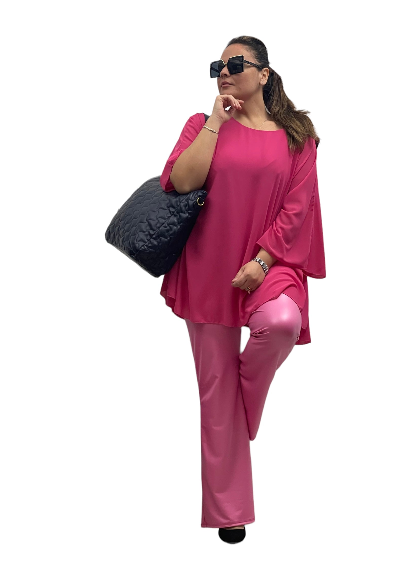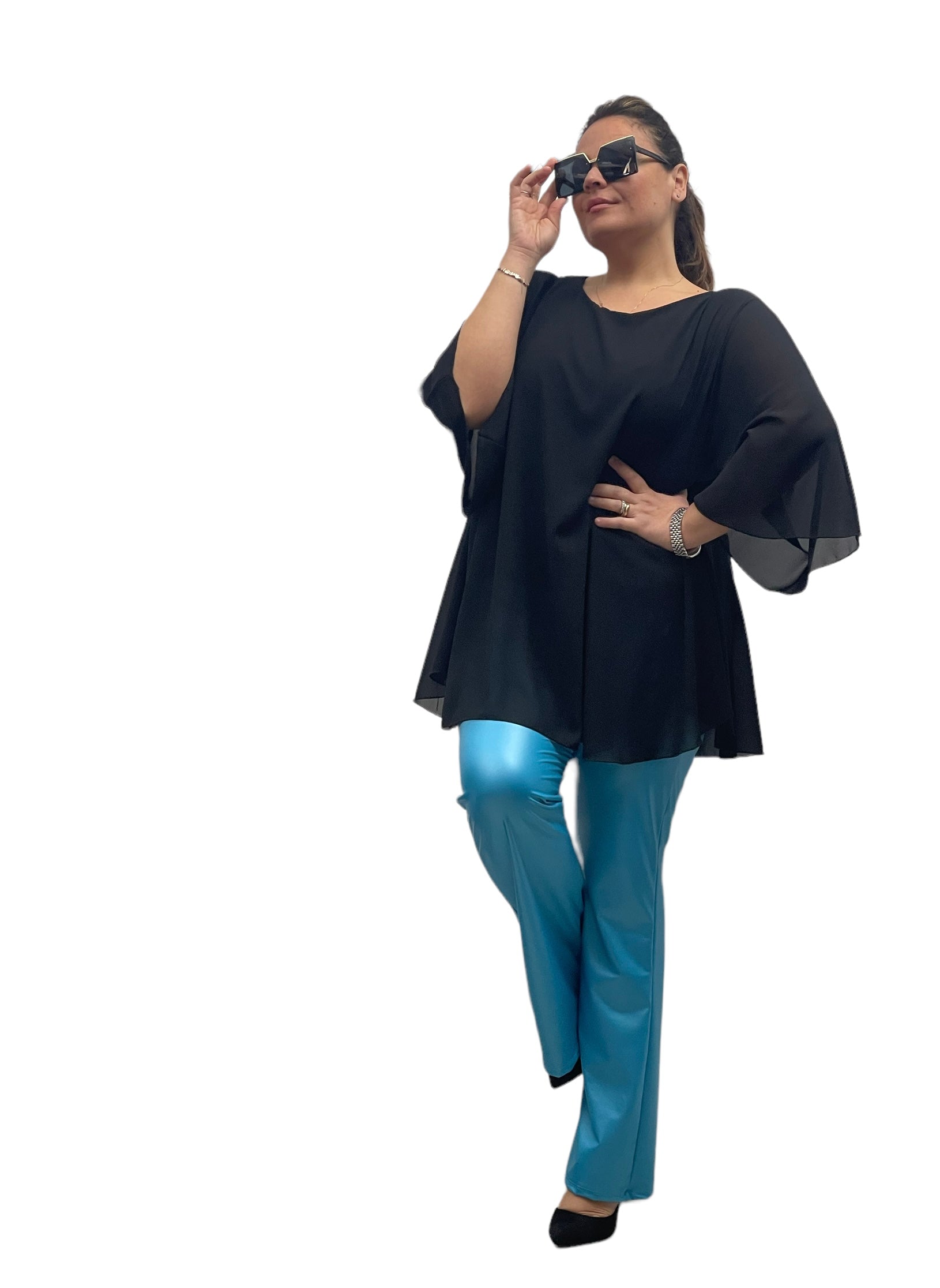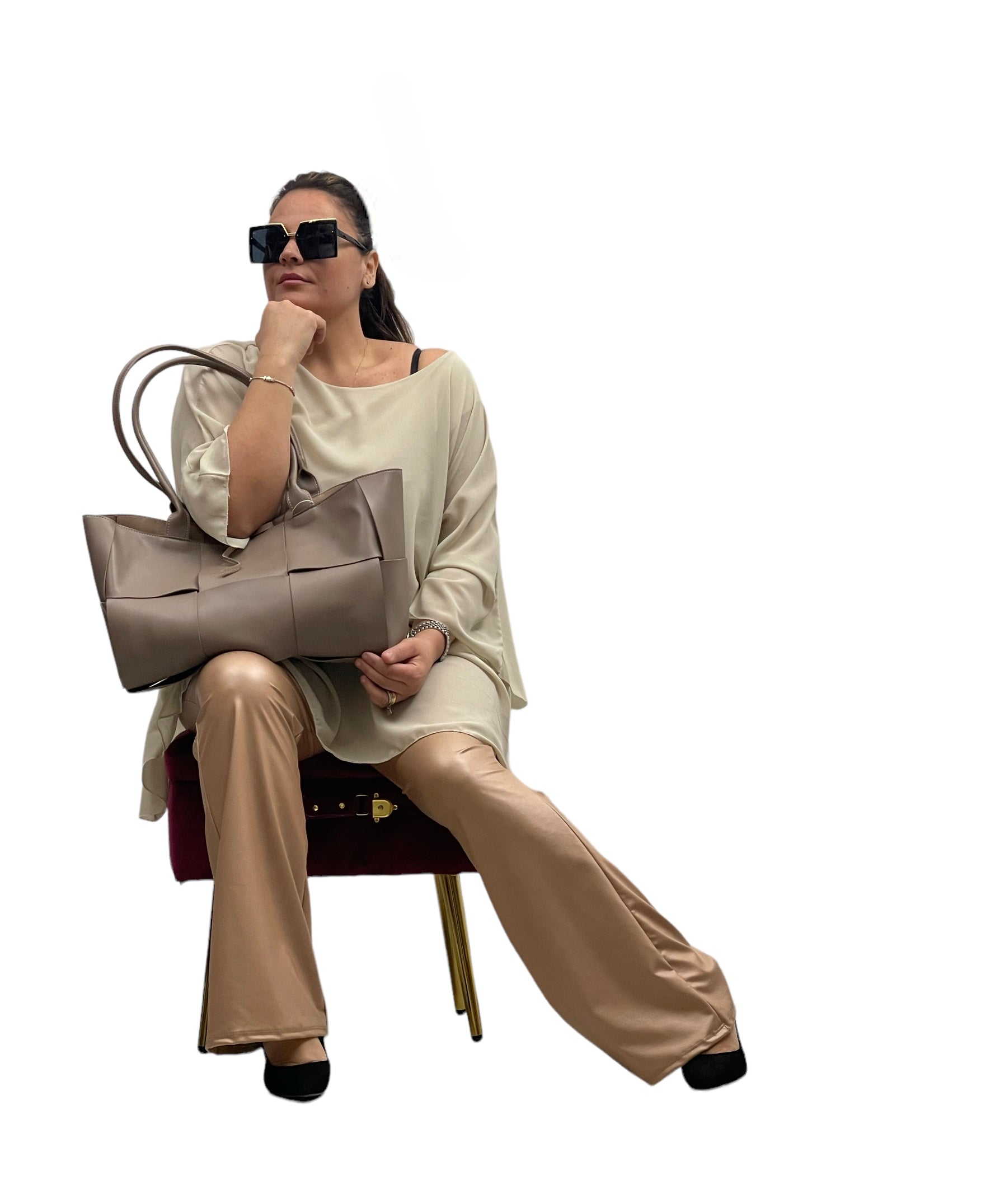 Pantaloni over a zampa in ecopelle con elastico in vita