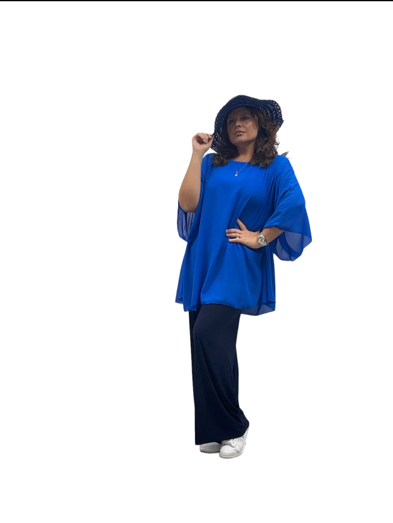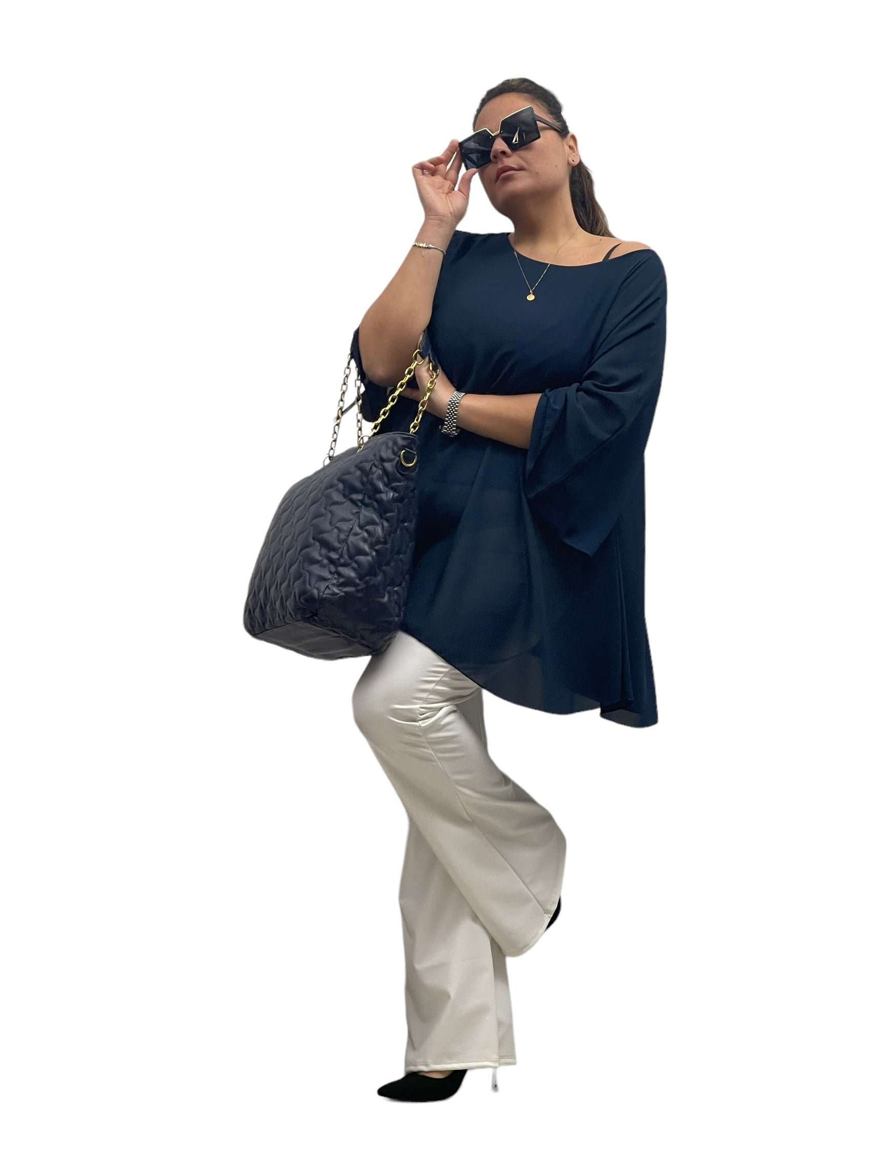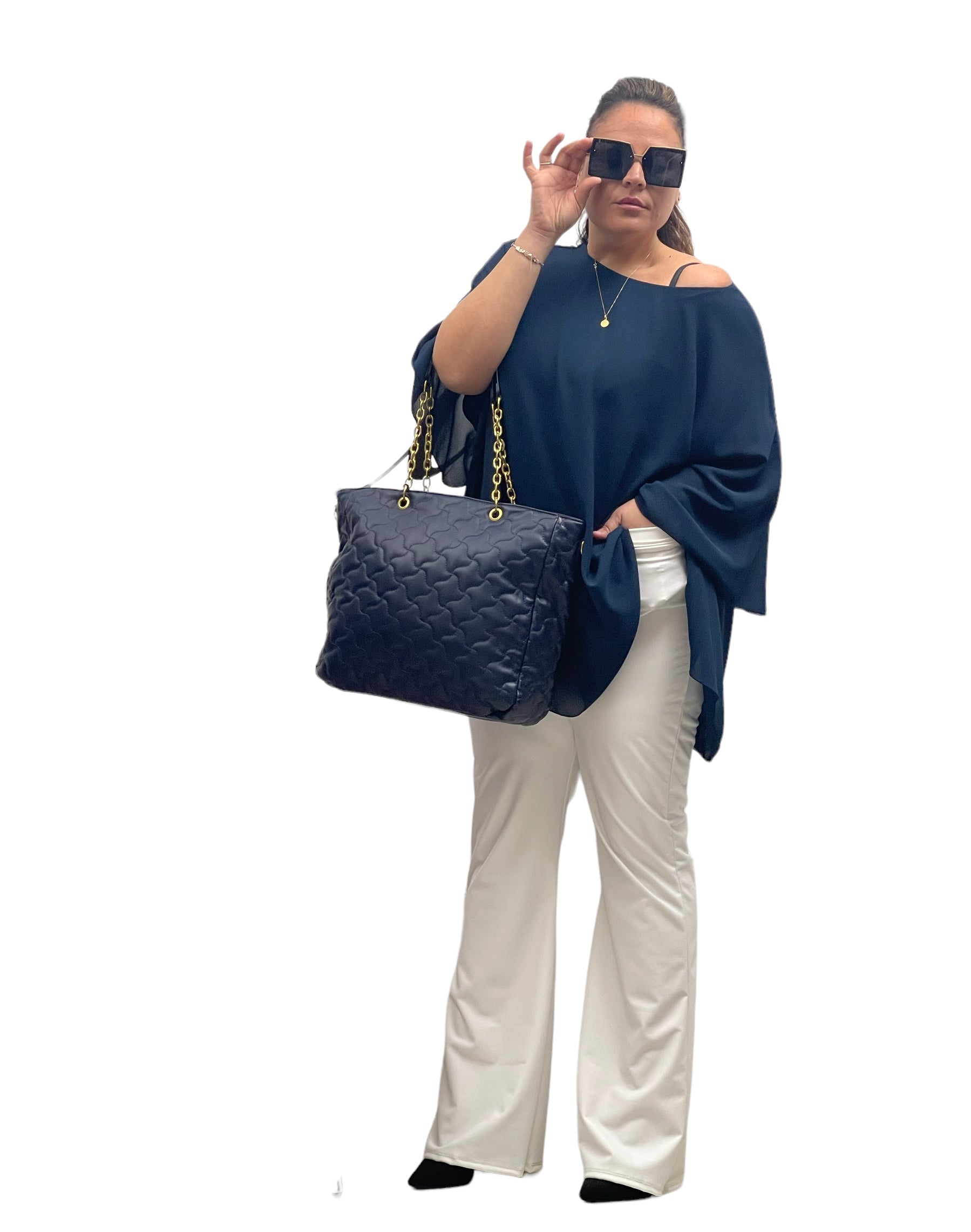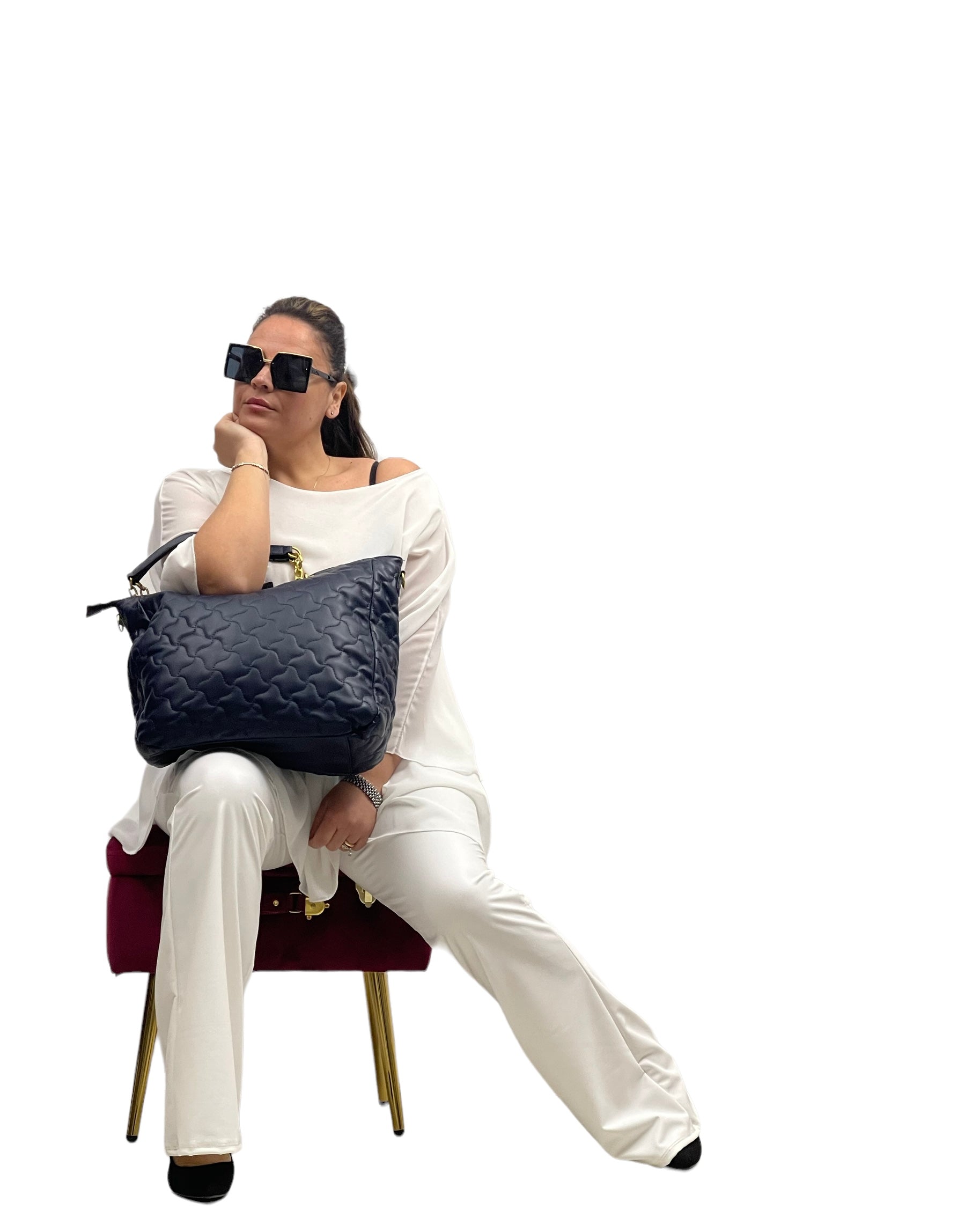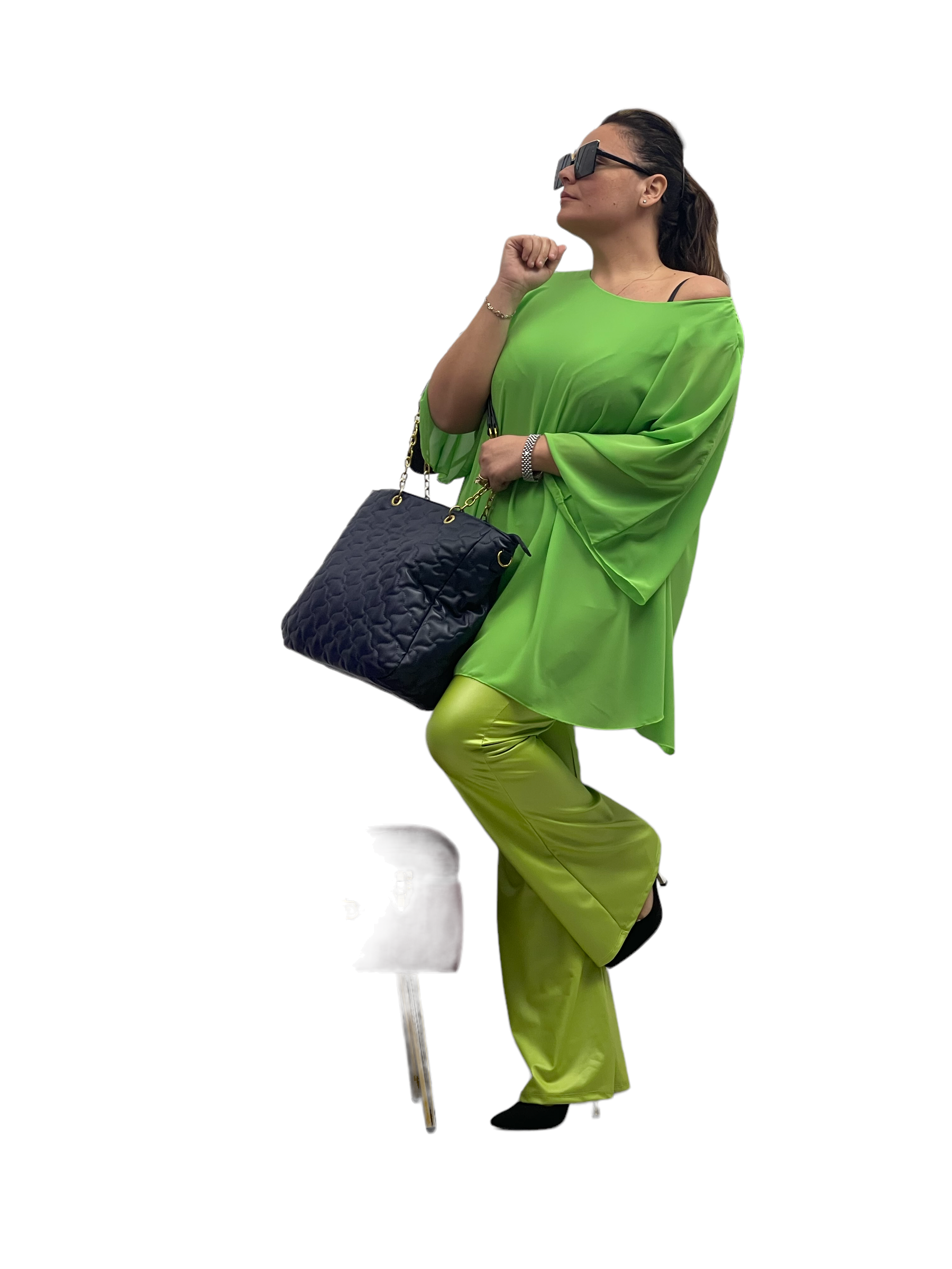 Pantaloni over a zampa in ecopelle con elastico in vita