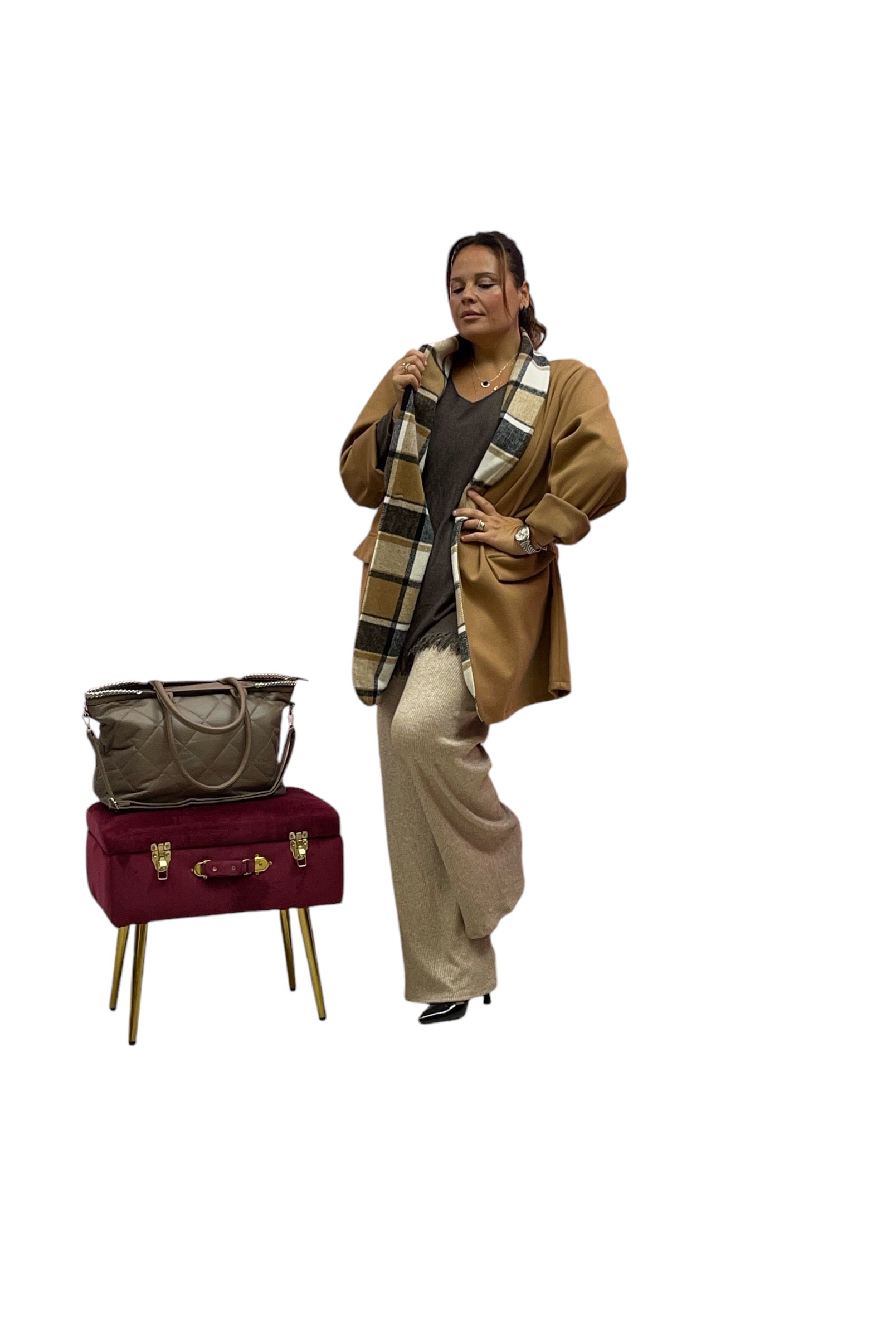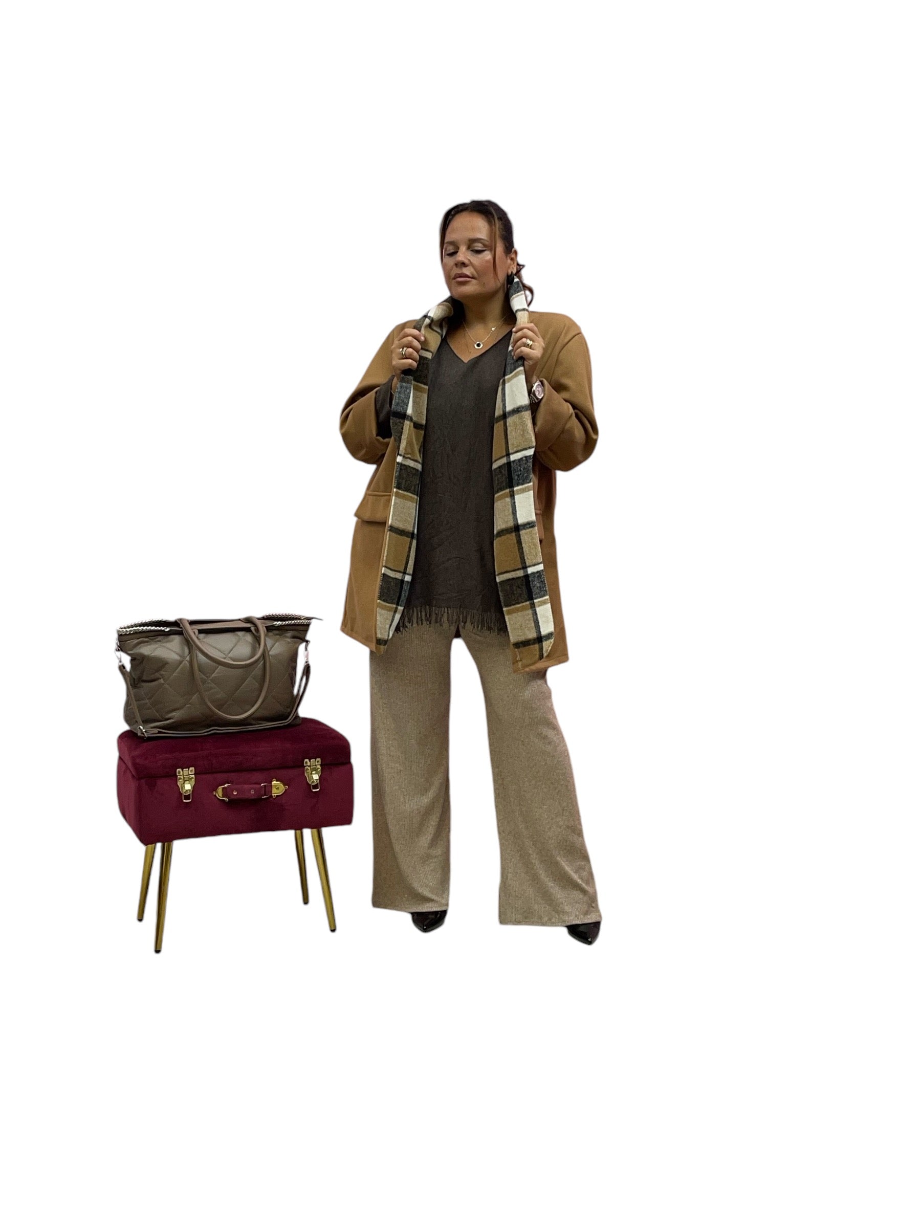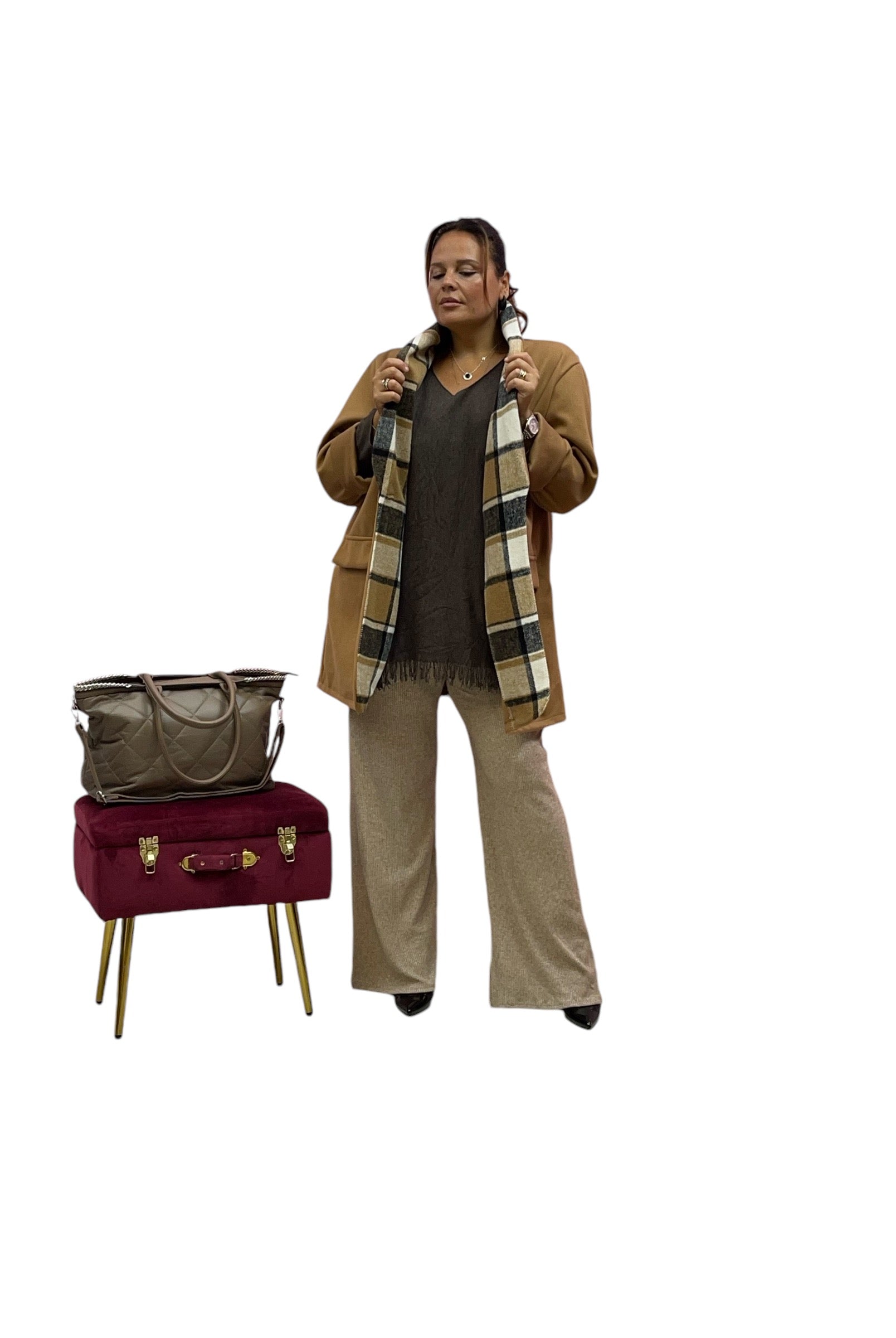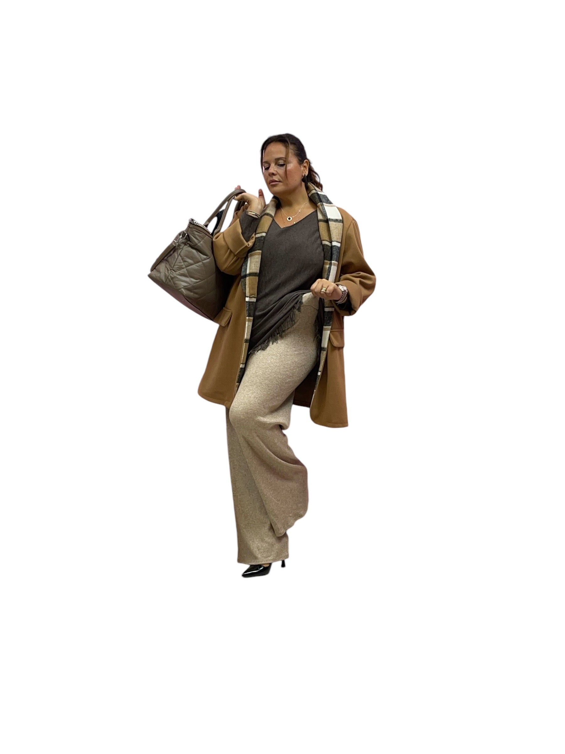Pantaloni palazzo morbidi effetto a costine con elastico in vita tessuto brillantinato