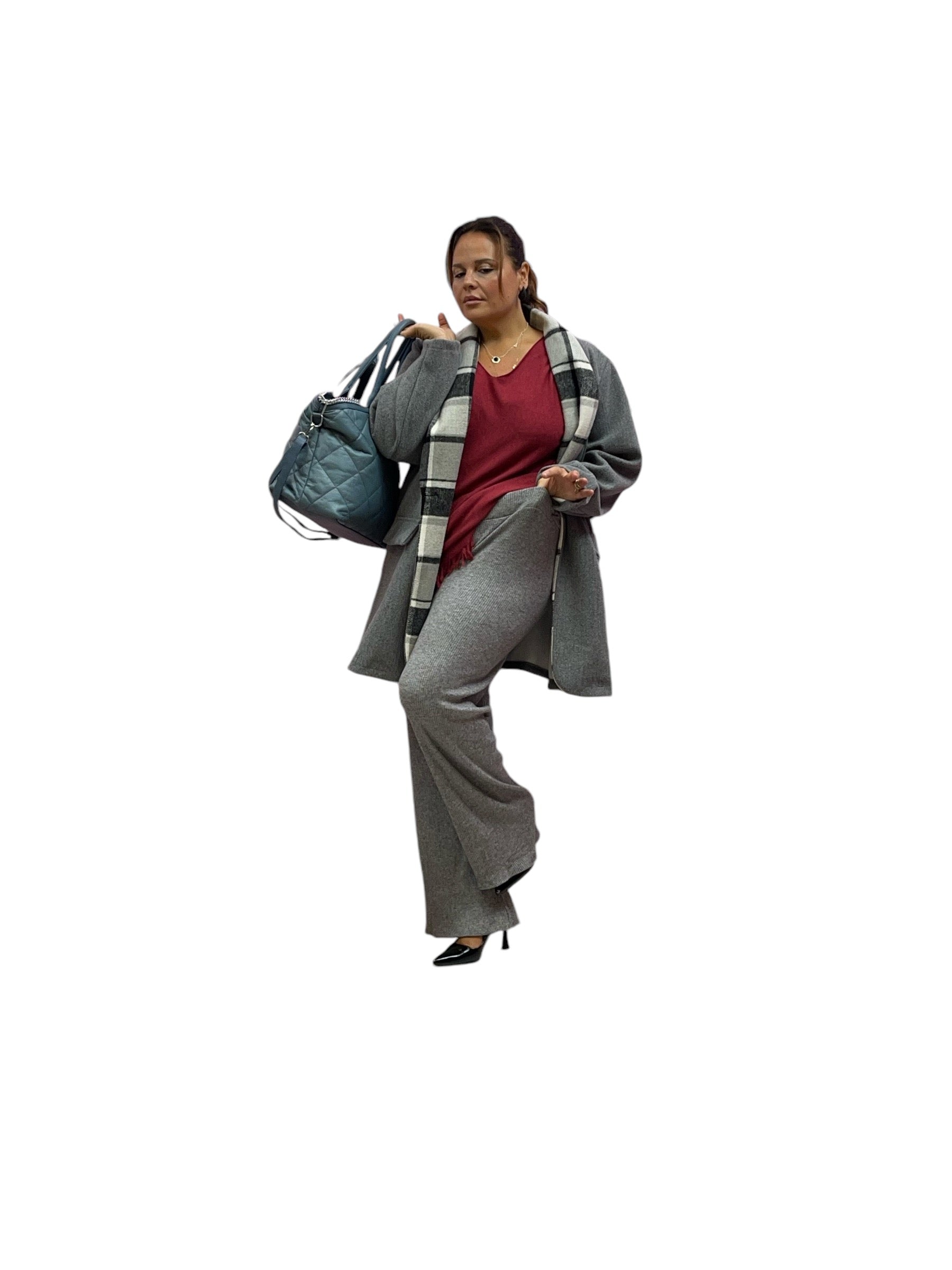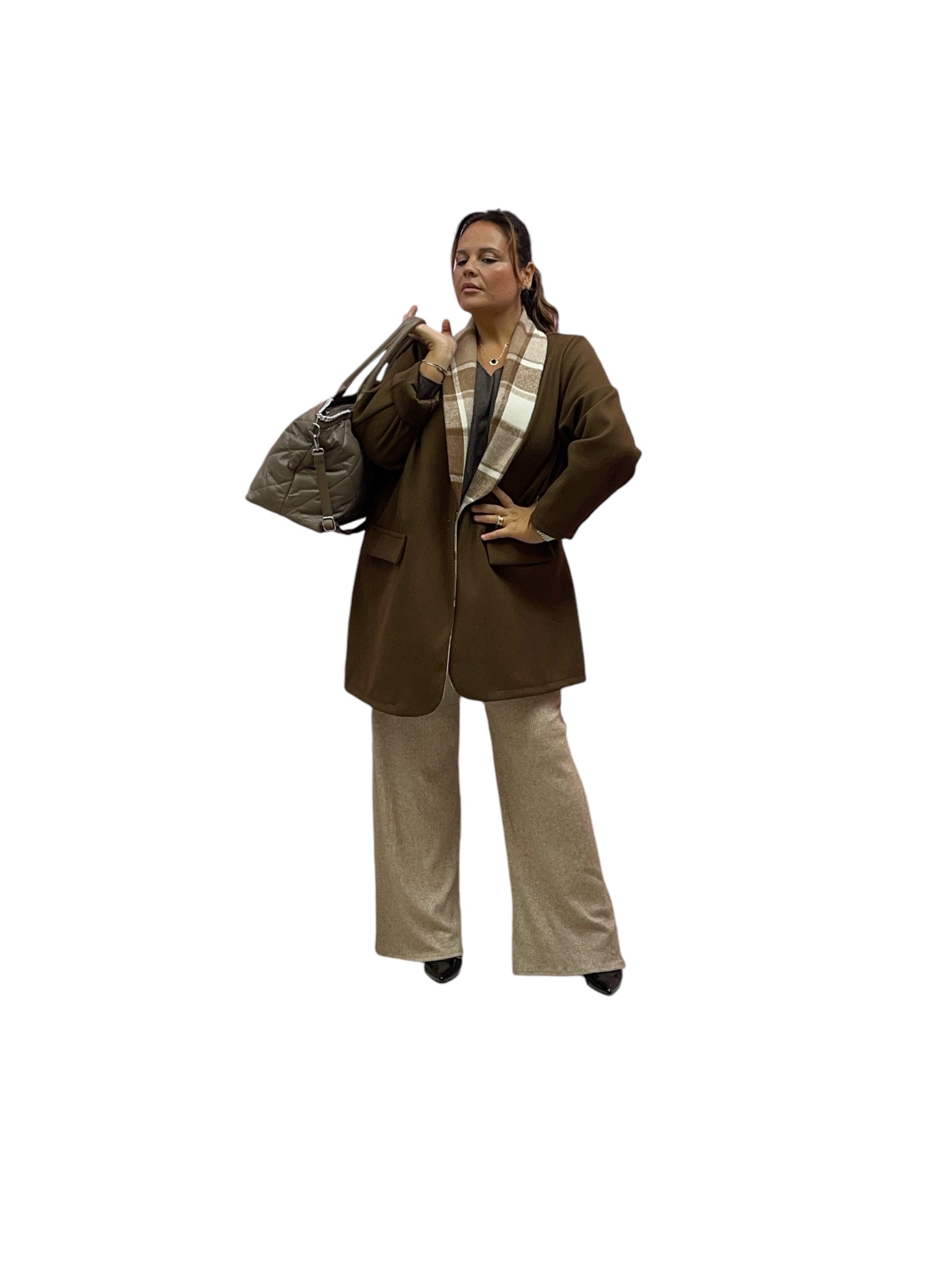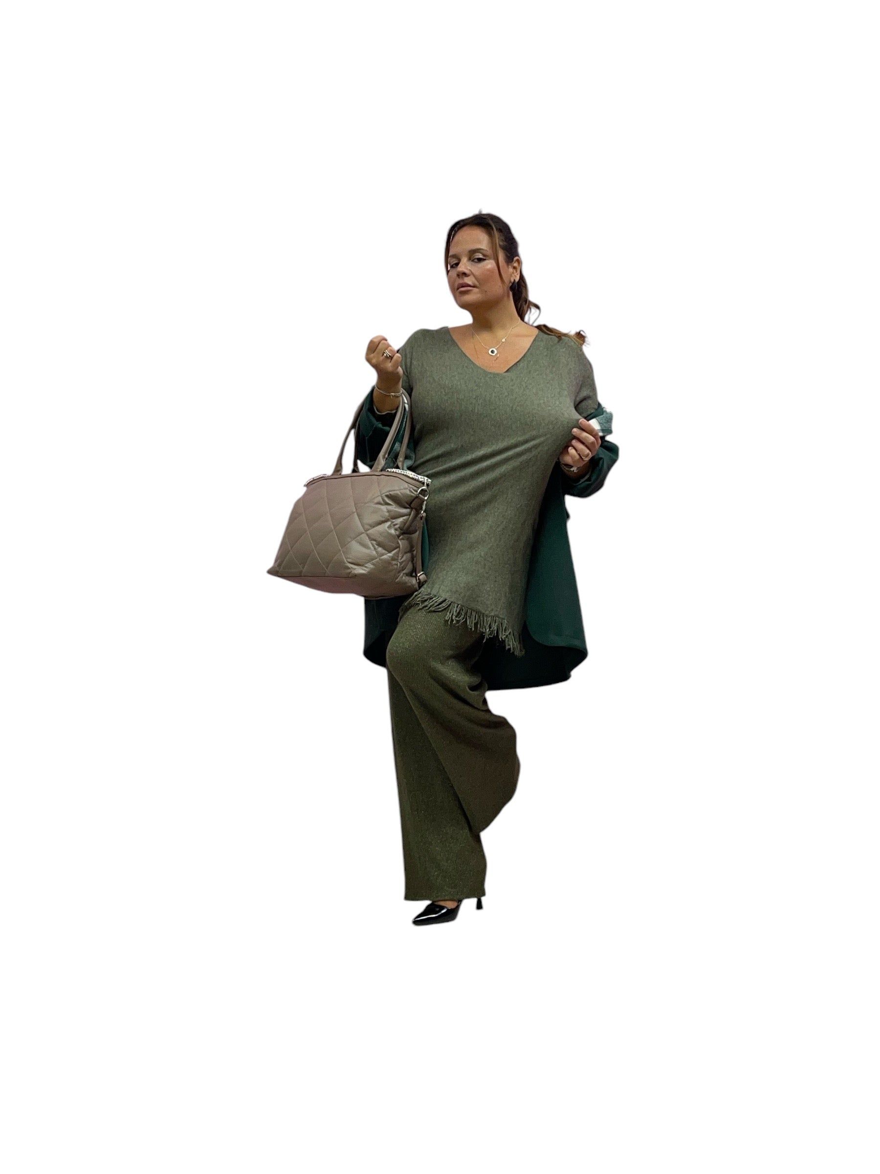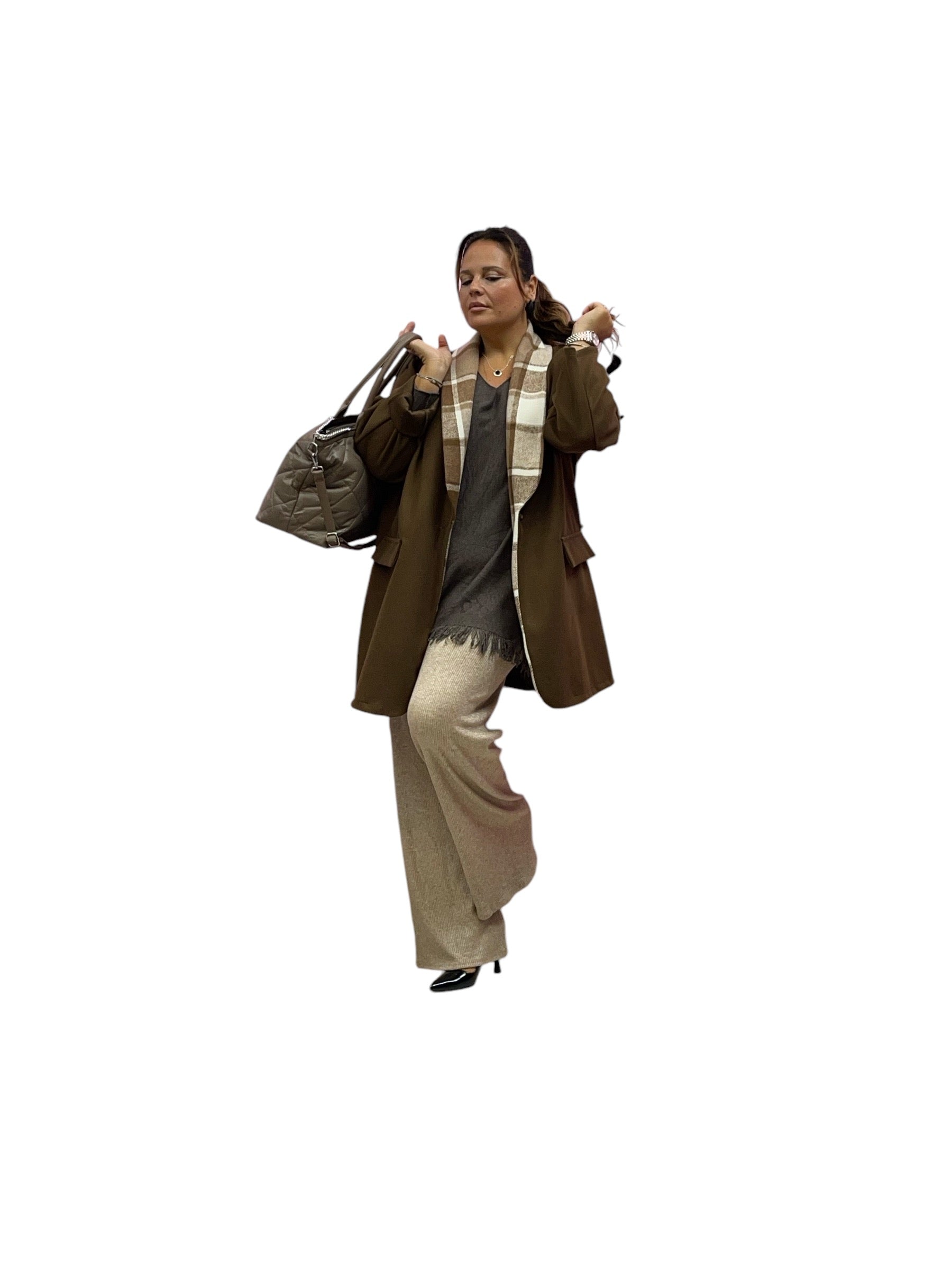 Pantaloni palazzo morbidi effetto a costine con elastico in vita tessuto brillantinato