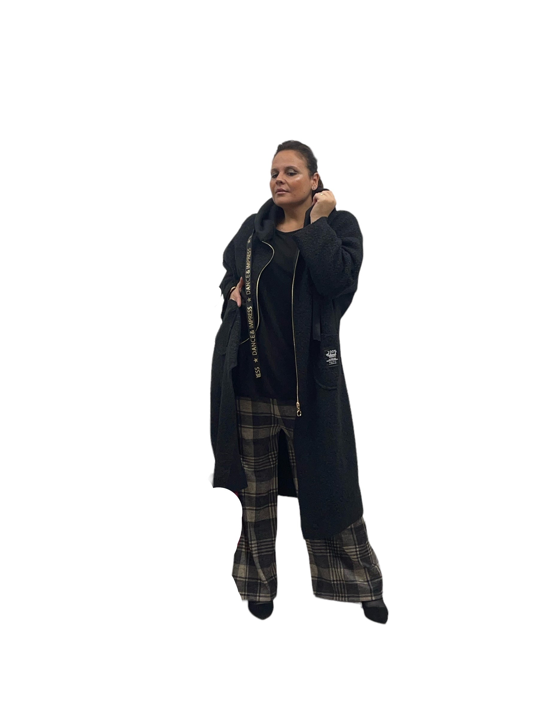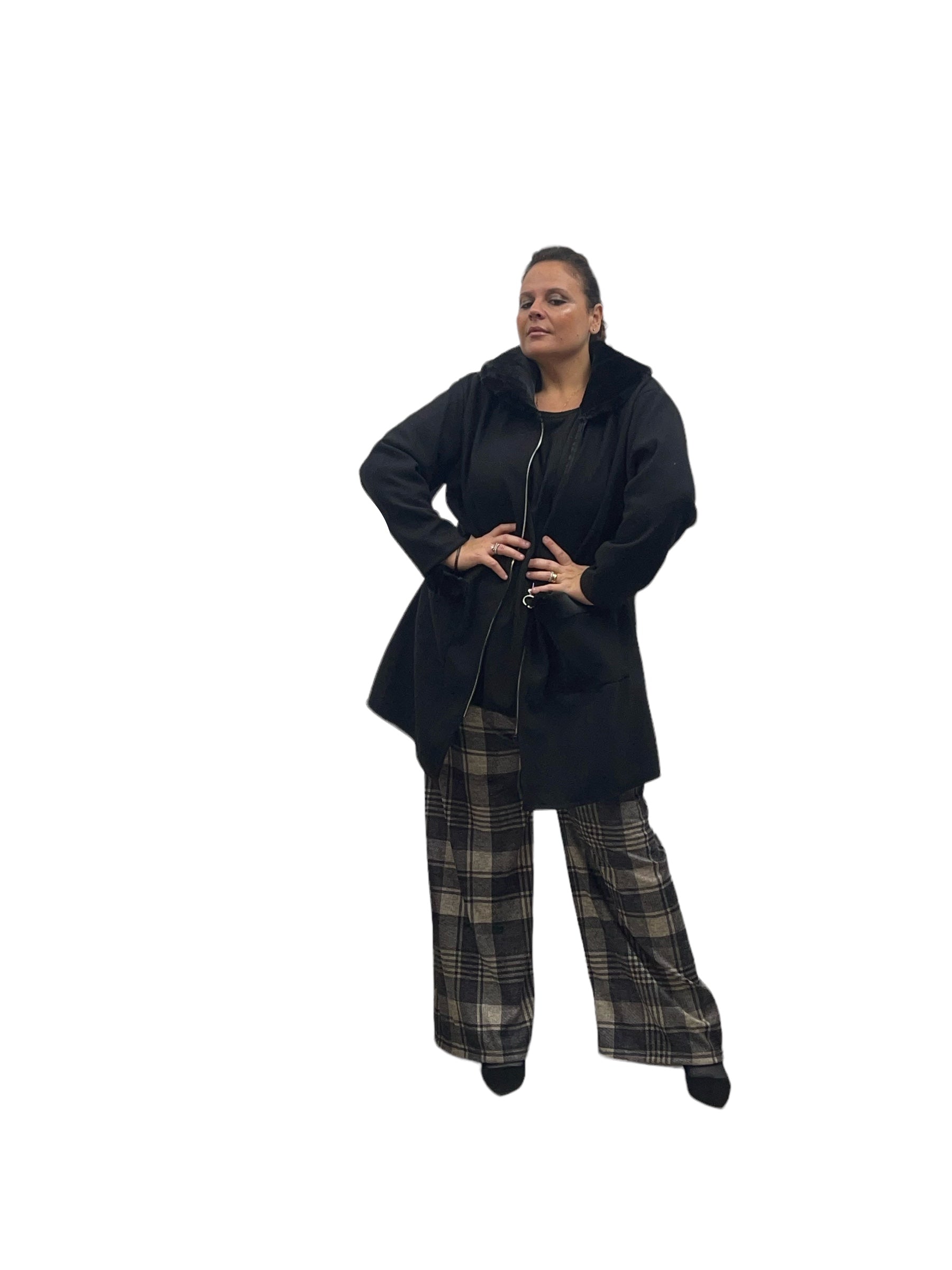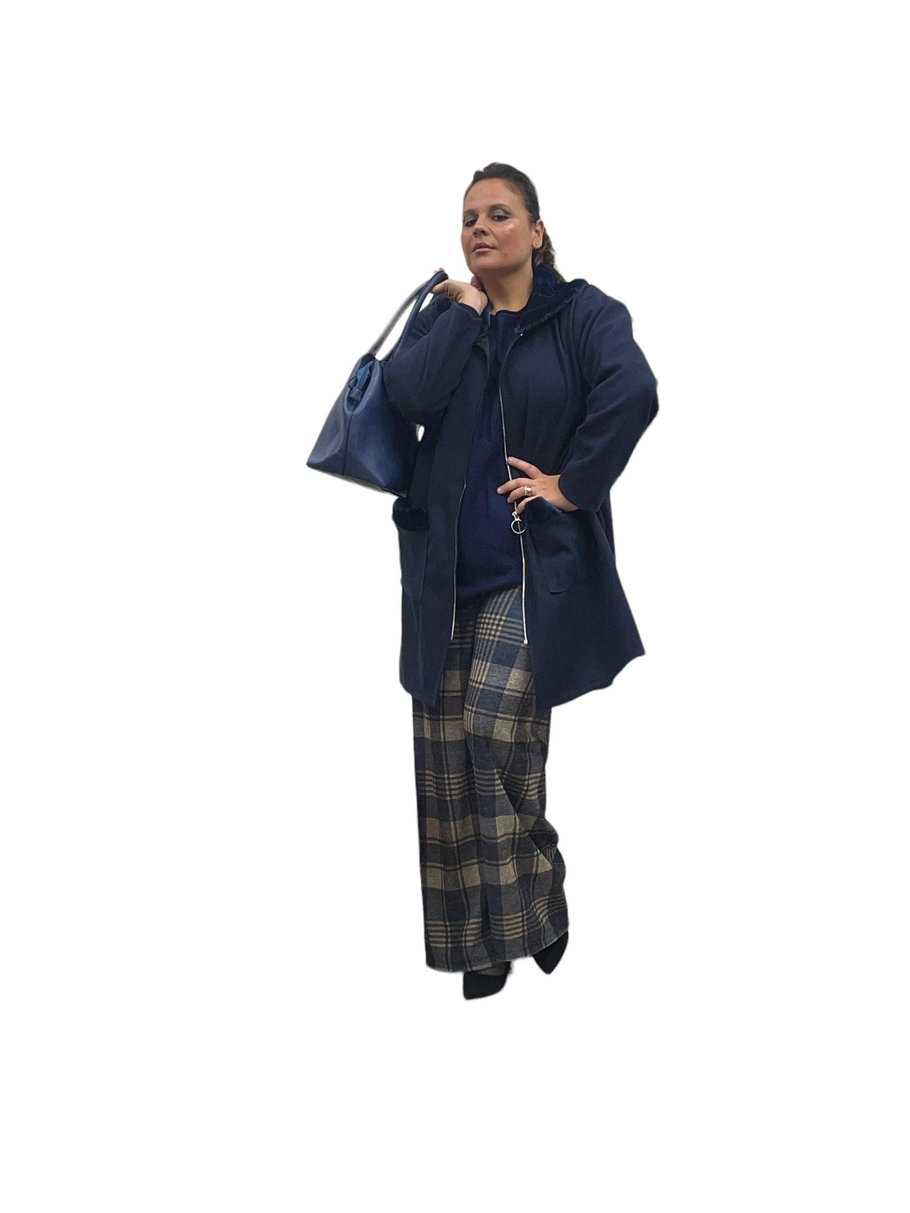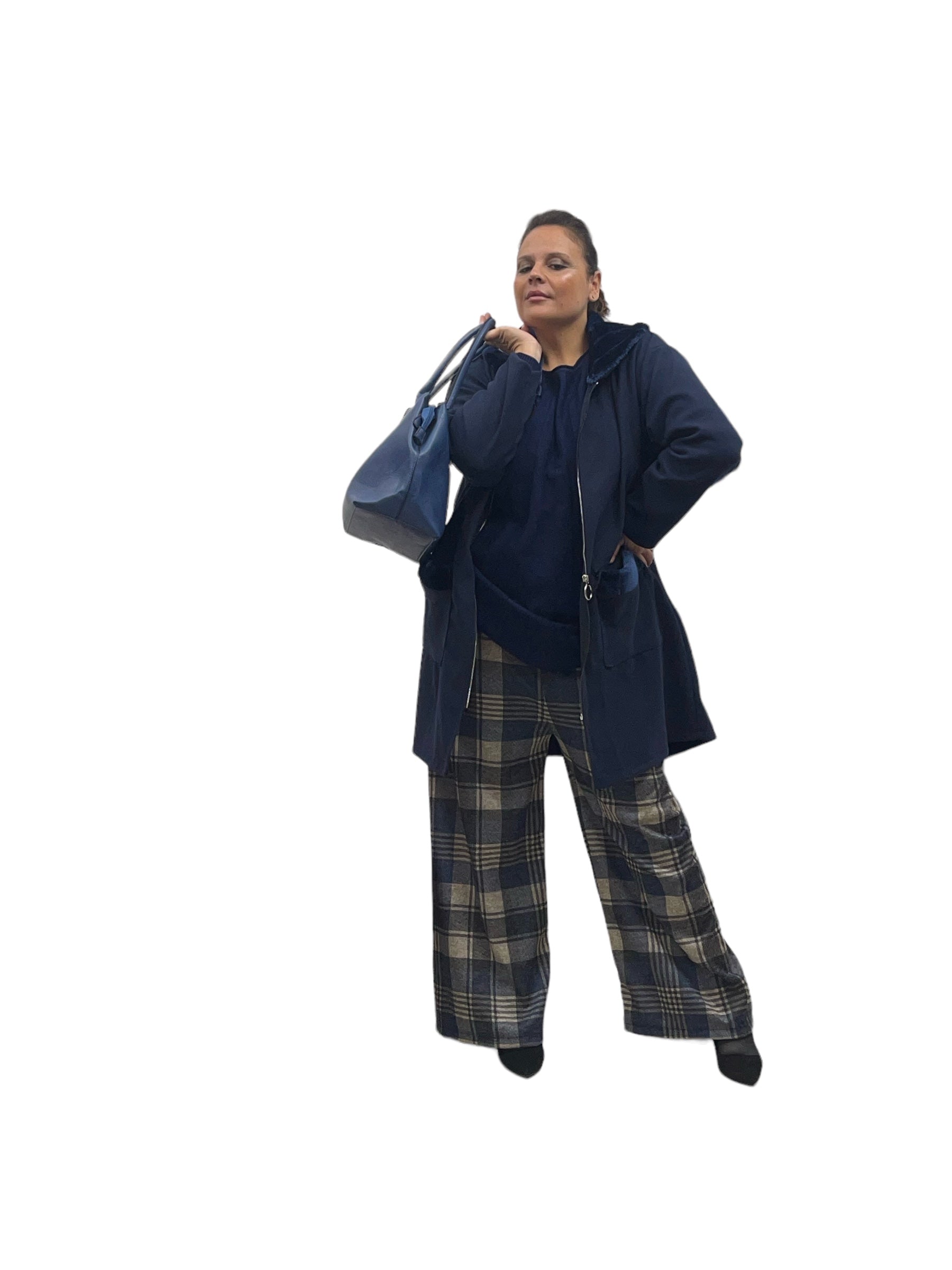 Pantaloni palazzo quadri con elastico in vita lunghezza 7/8