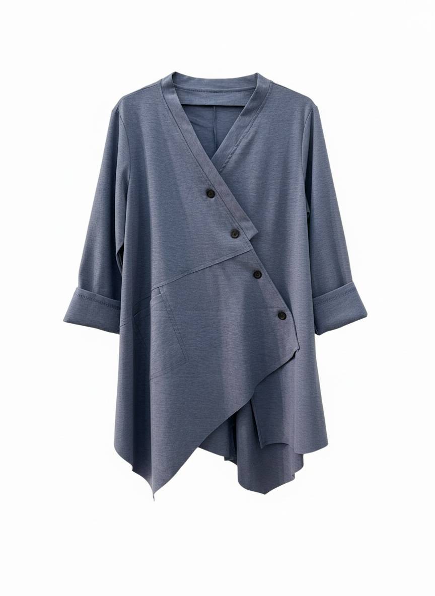 Magliettone/ spolverino over in felpa leggera con bottoni asimmetrica e scollo a v