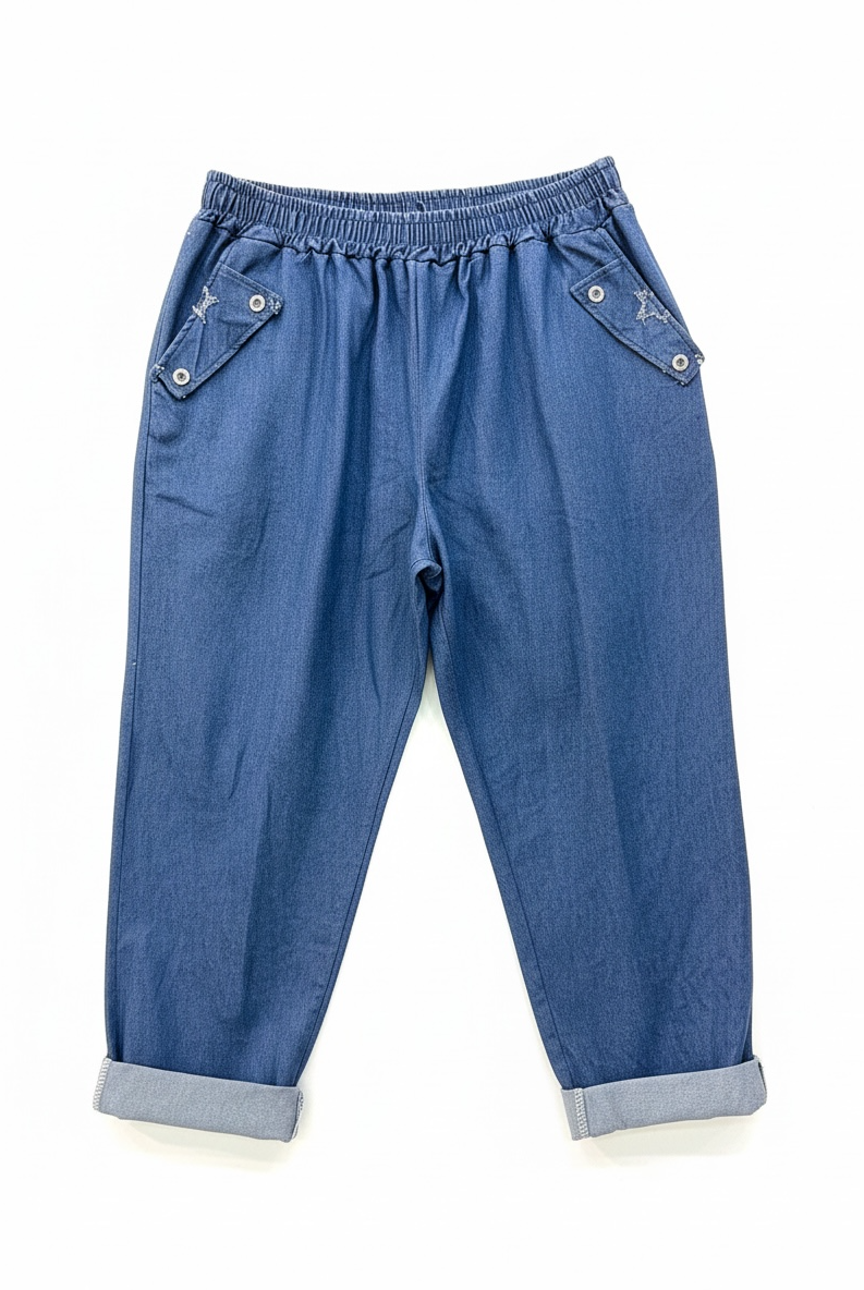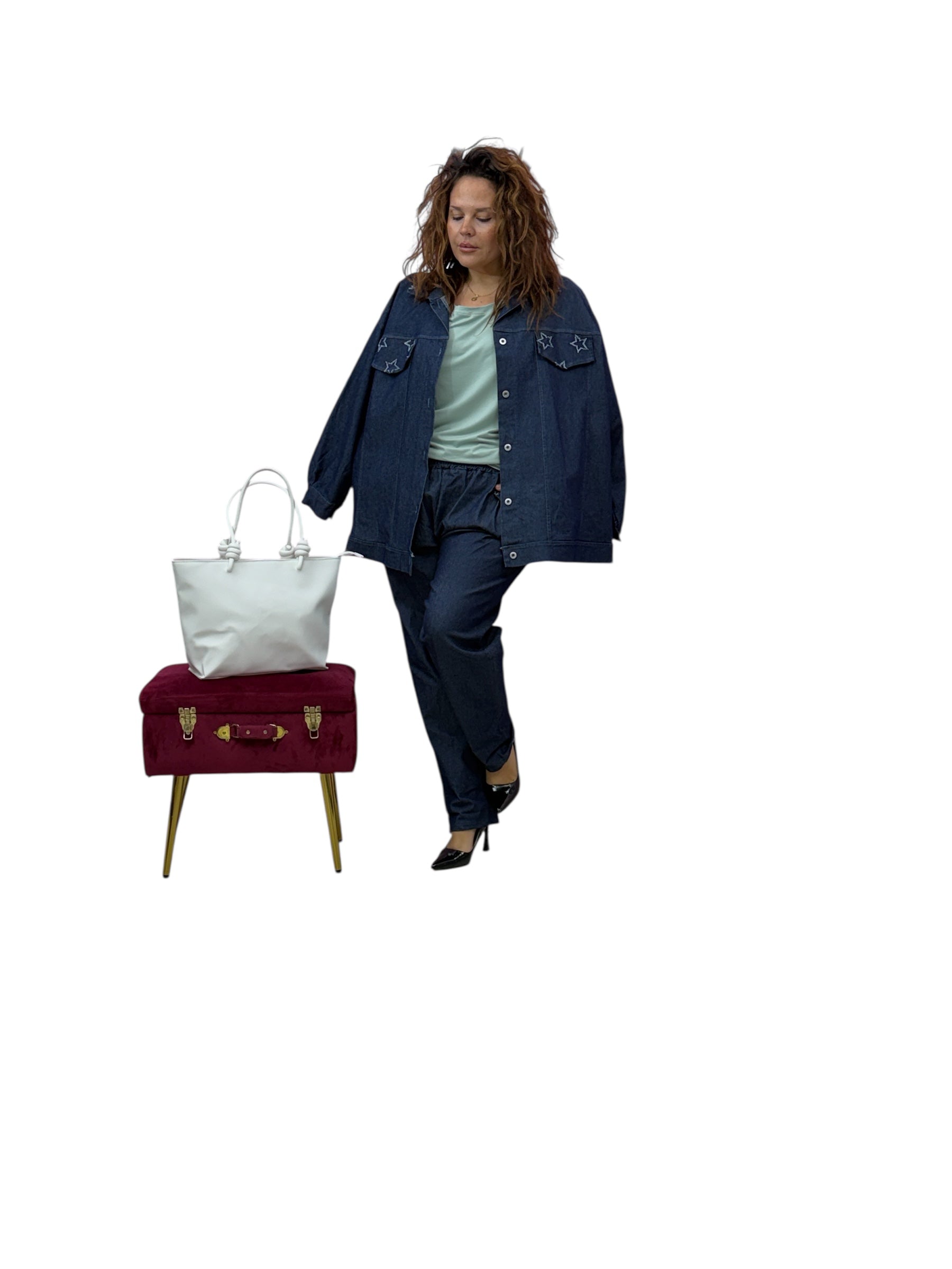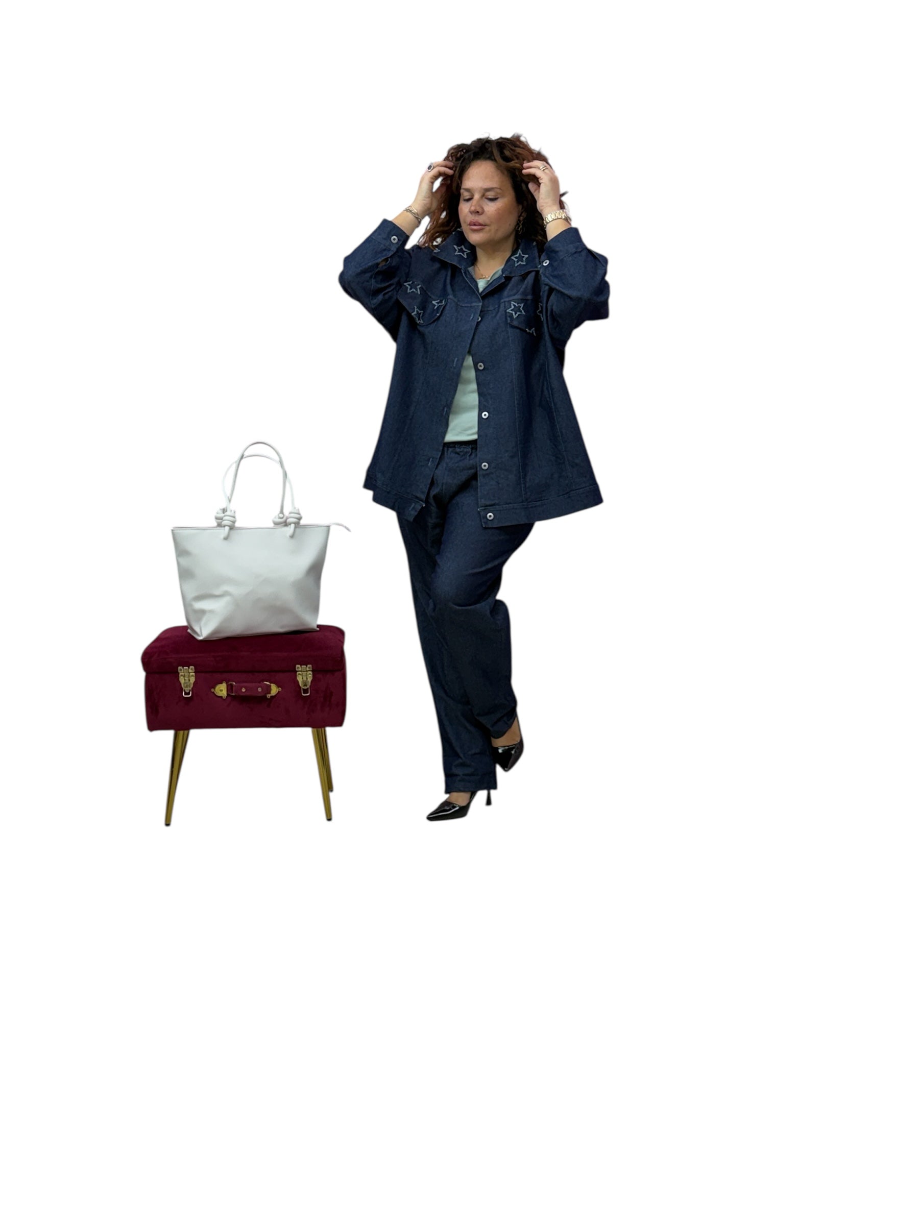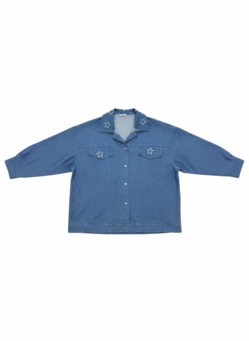 Spolverino over in jeans con stelle ricamate