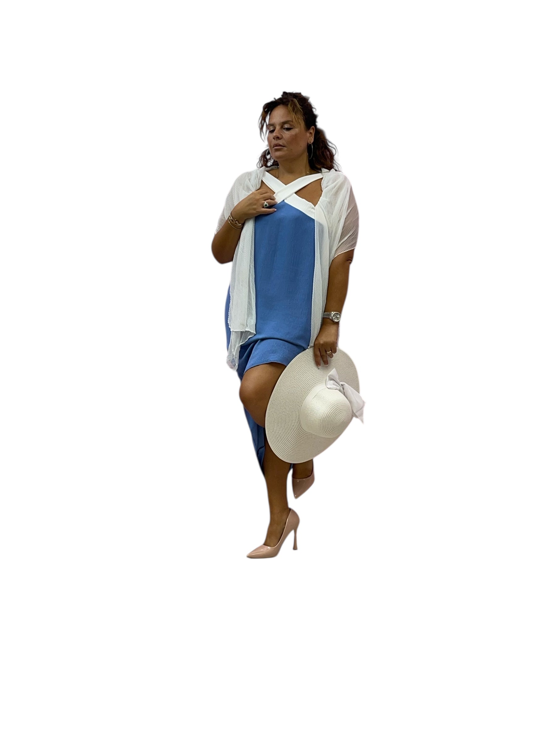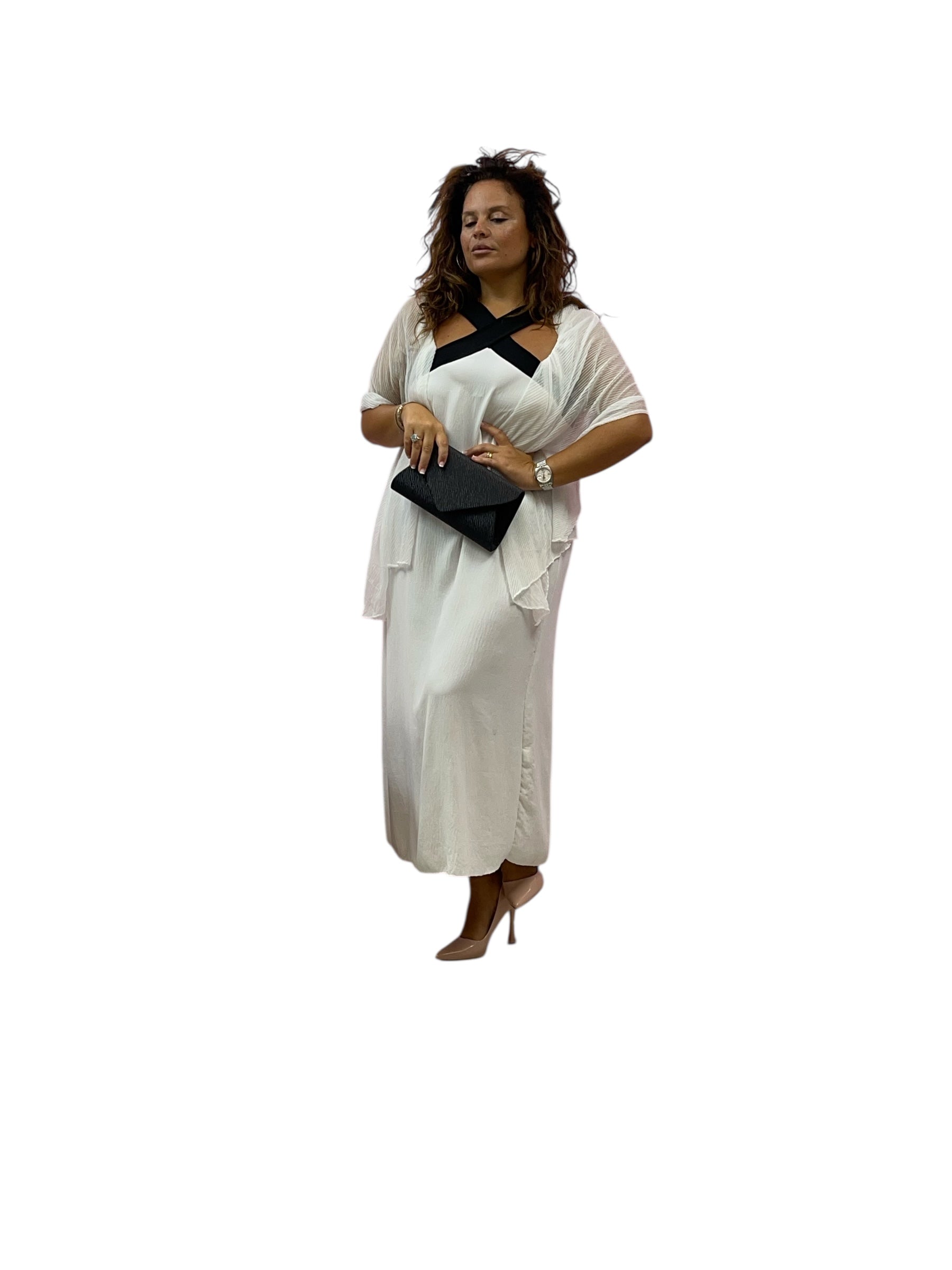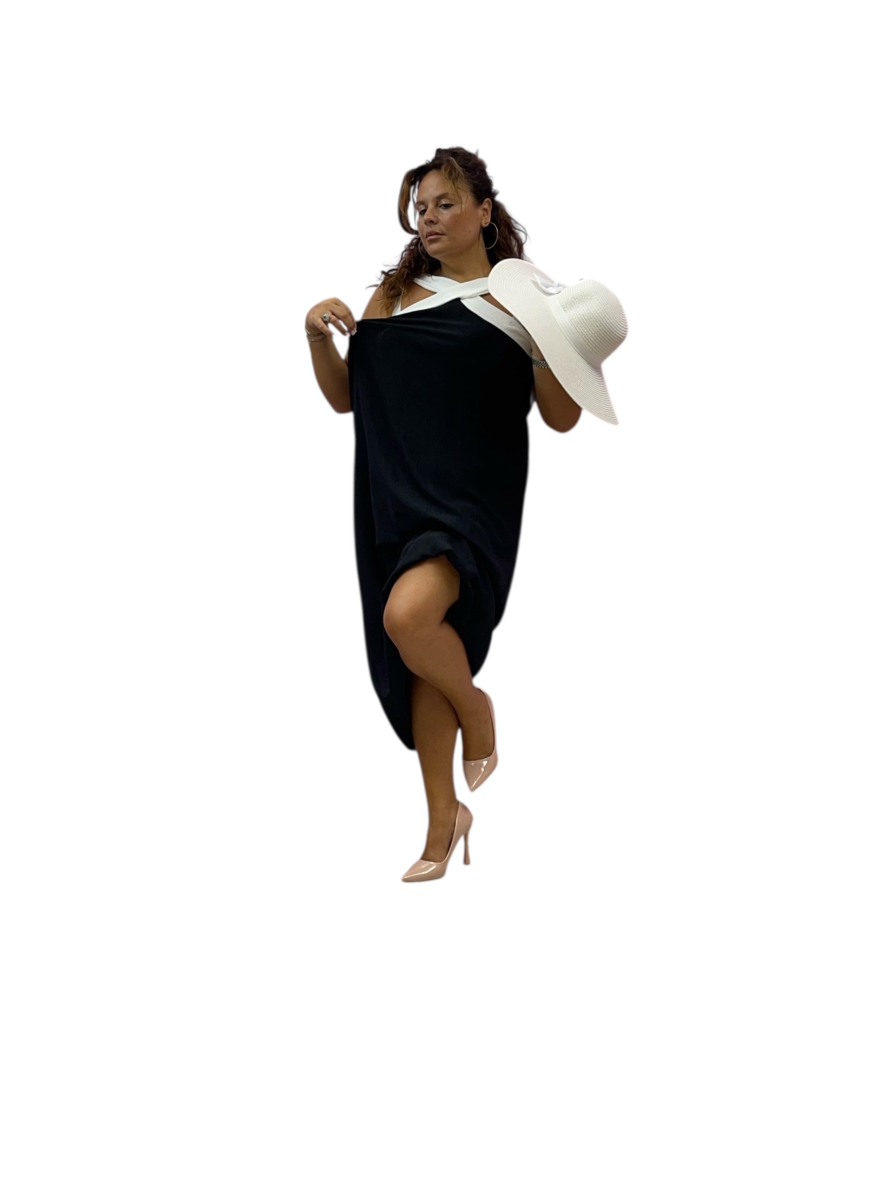 Abito over con bretelle ad incrocio ed elastico sul retro