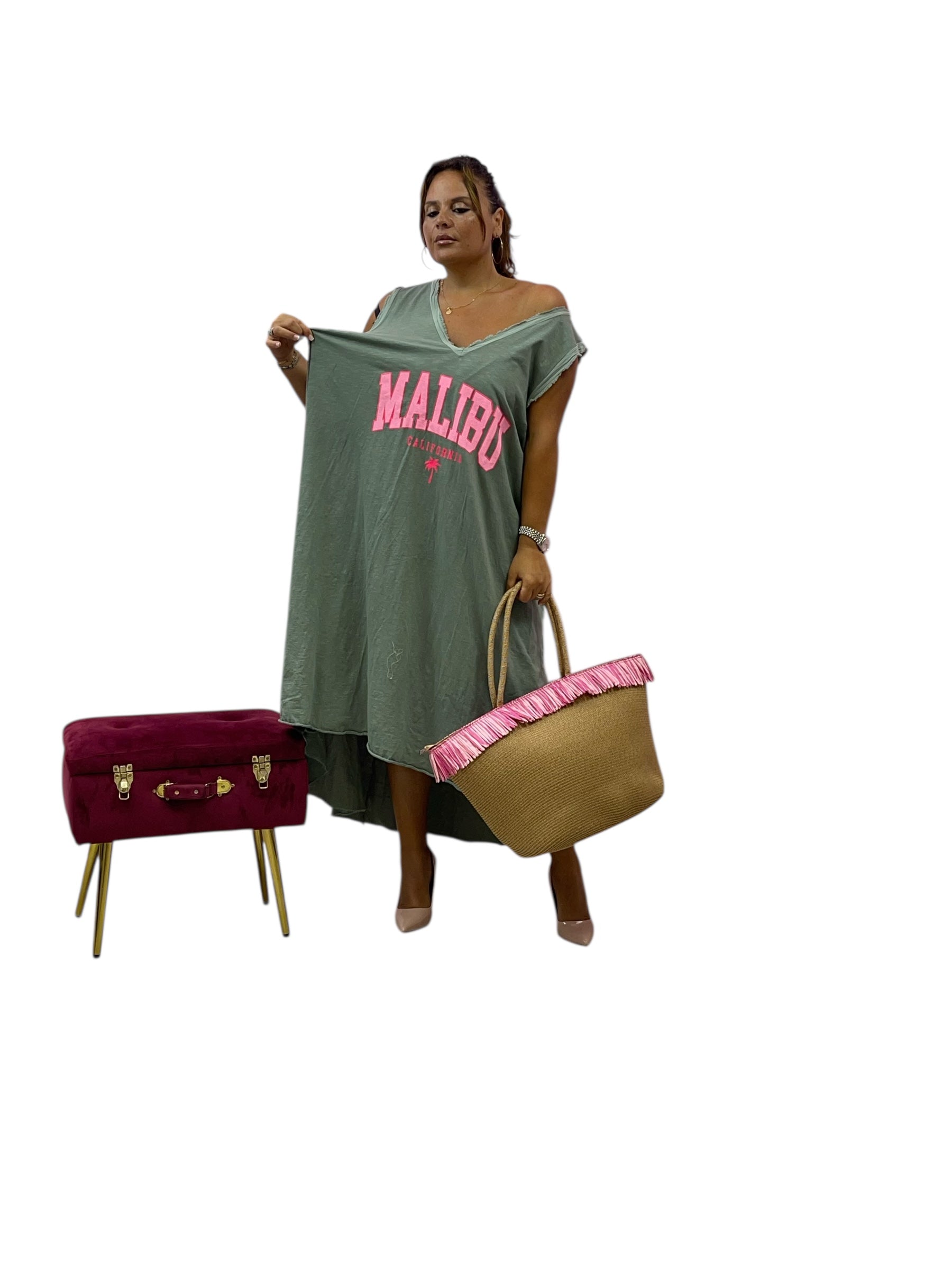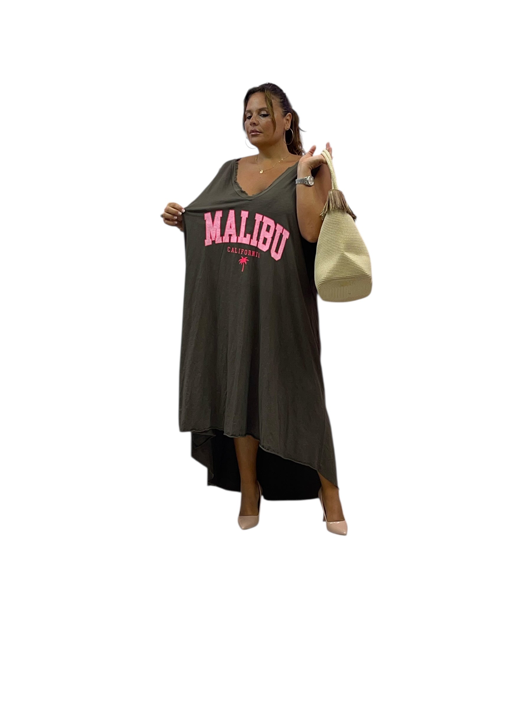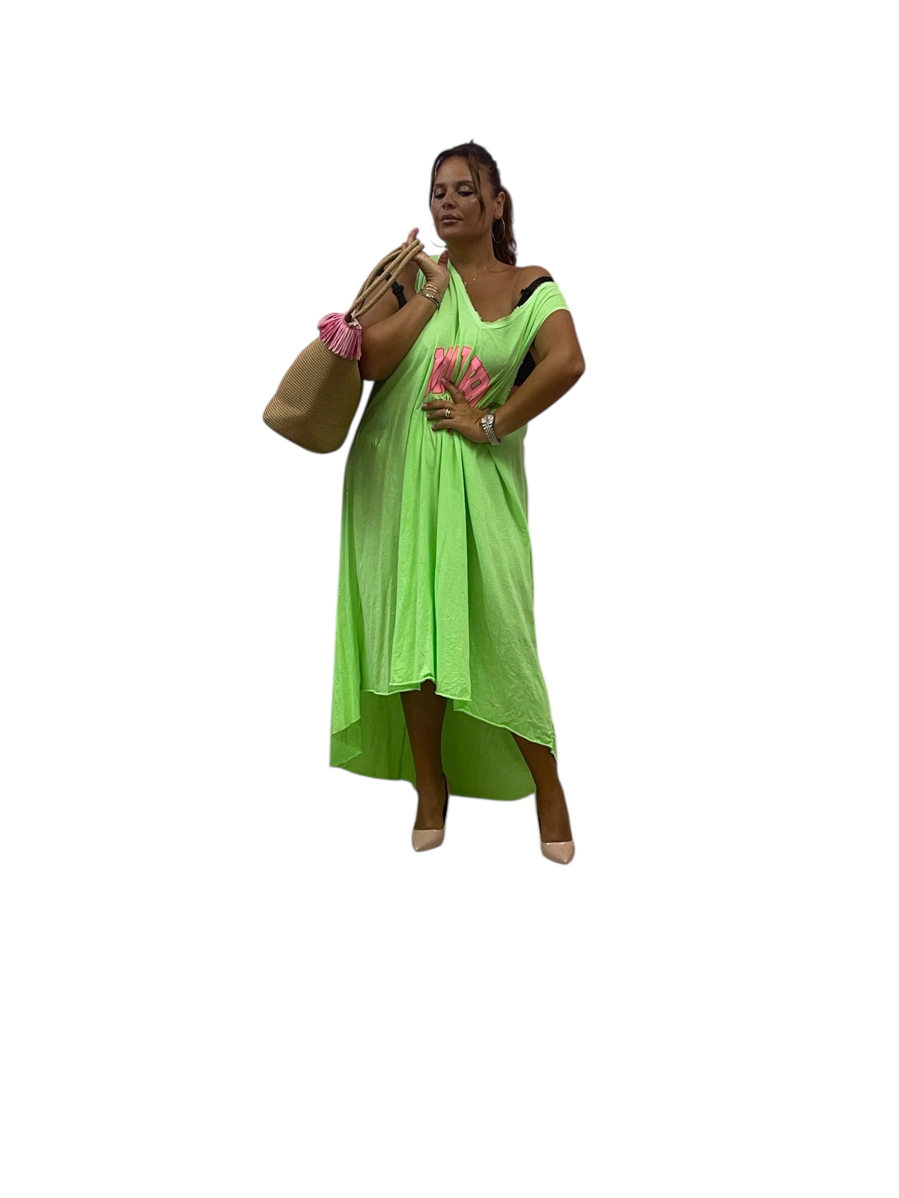 Abito over lungo giro manica con scollo a v effetto sfrangiato e stampa fluo