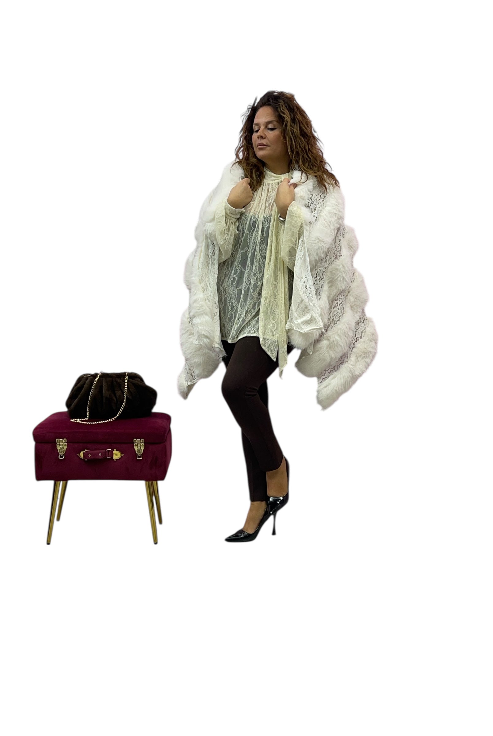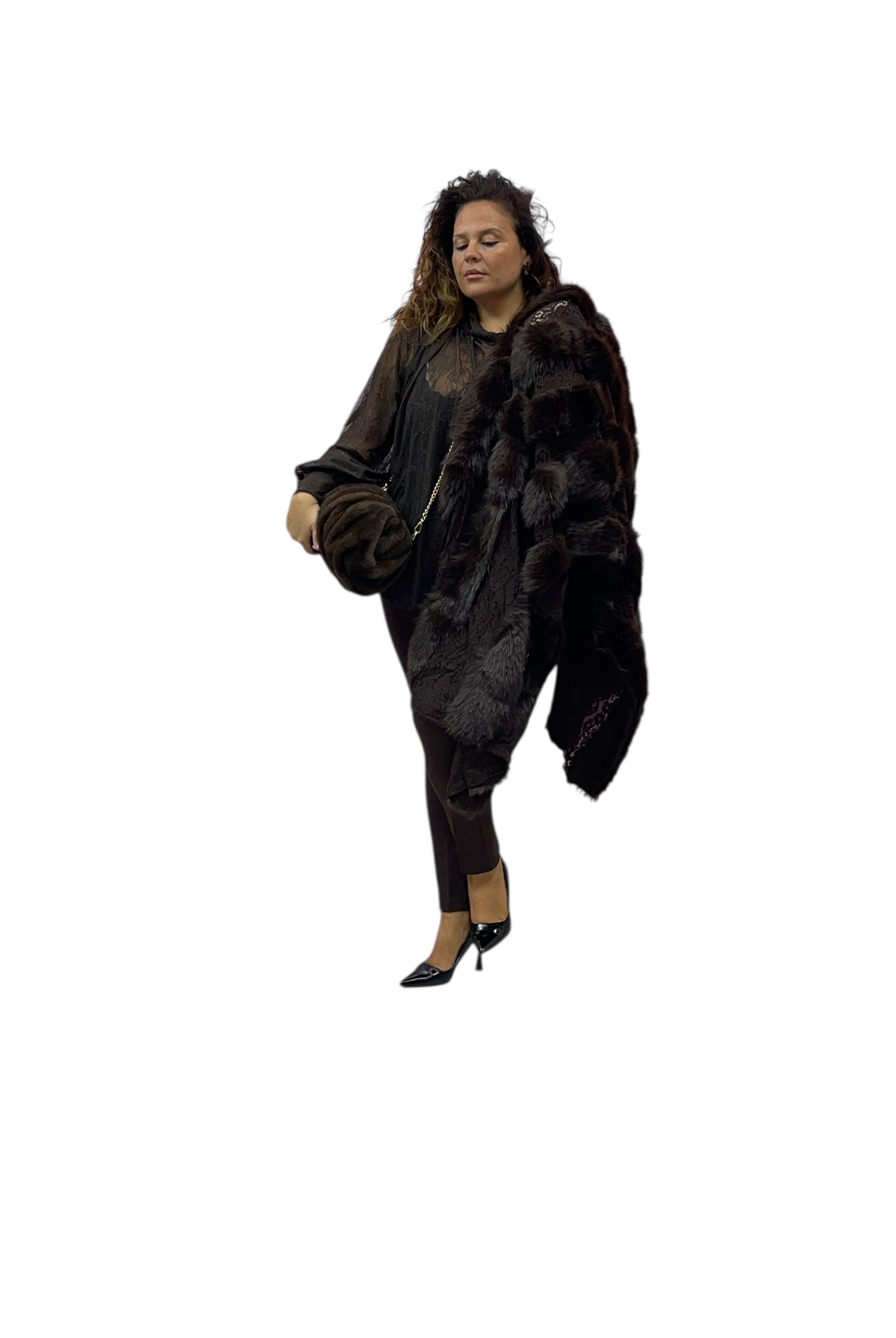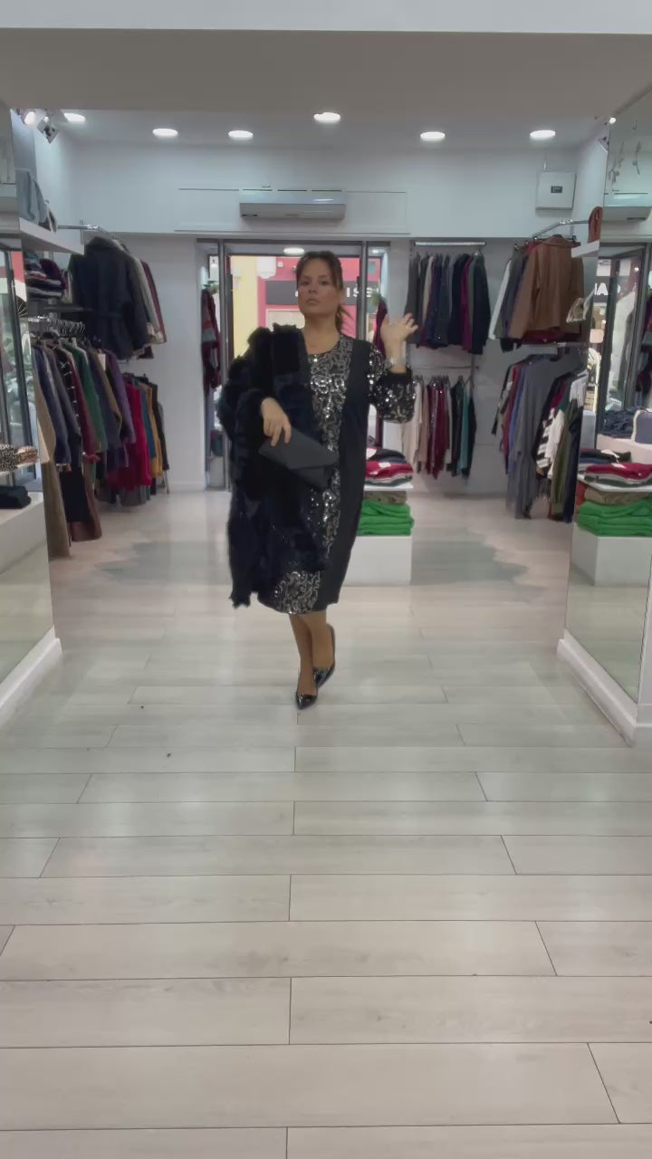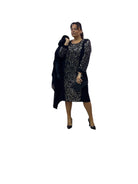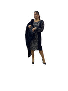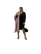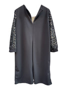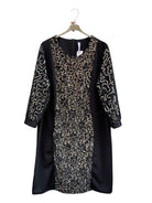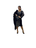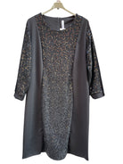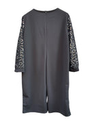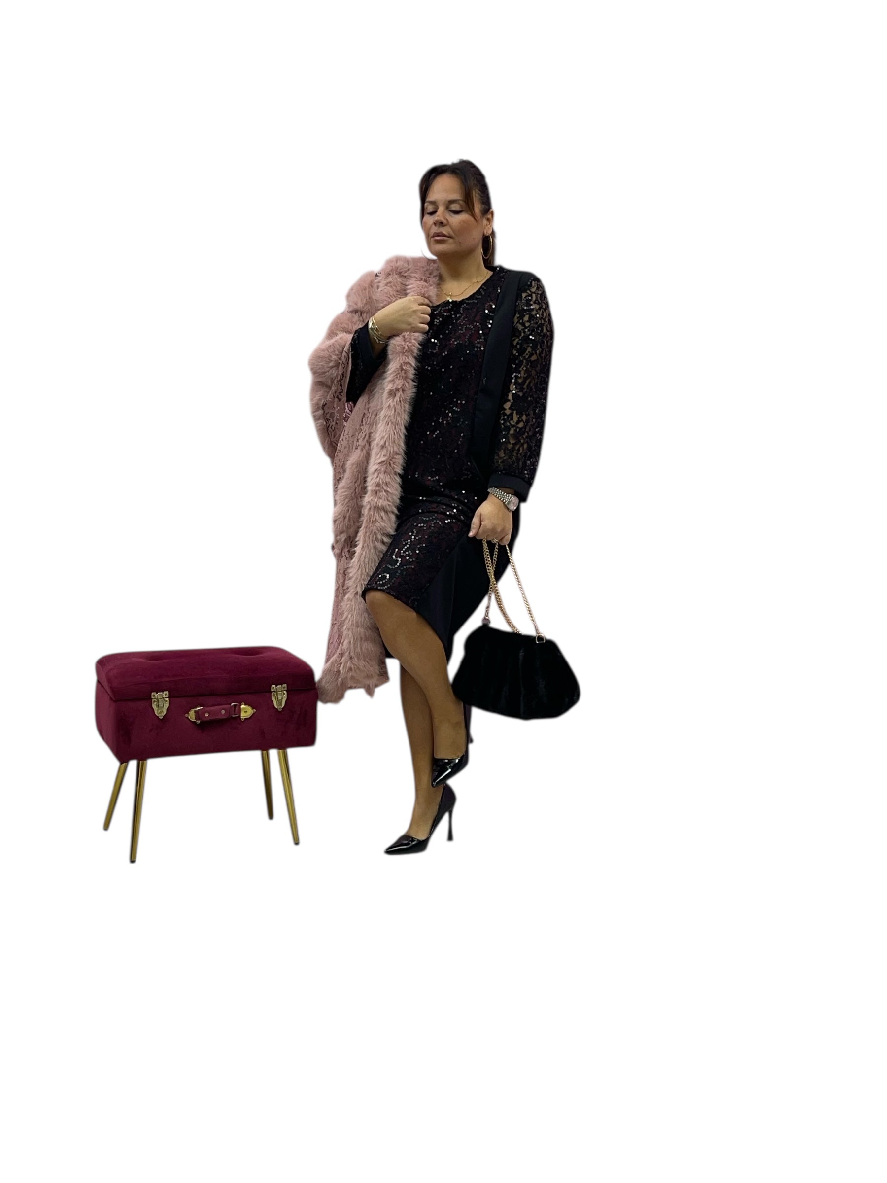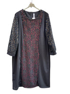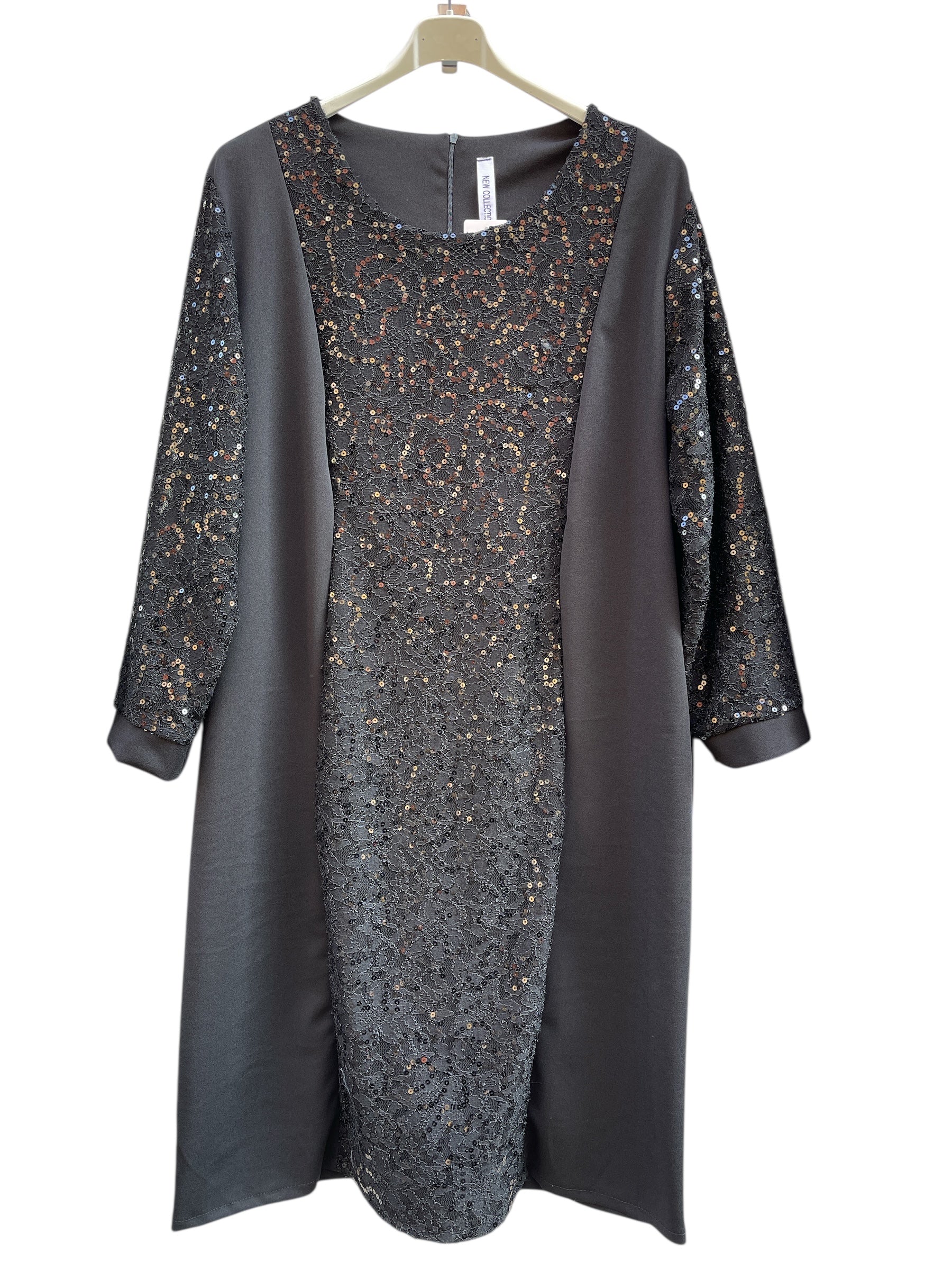 Abito over pizzo e paiette con maniche trasparente e fascia a colore