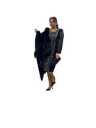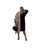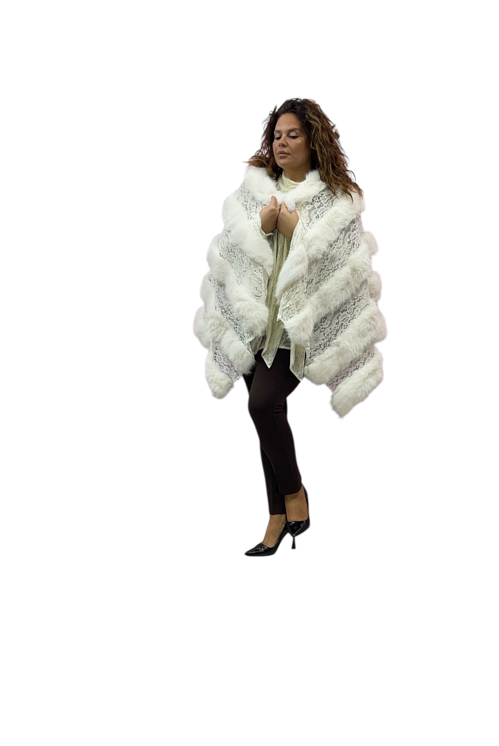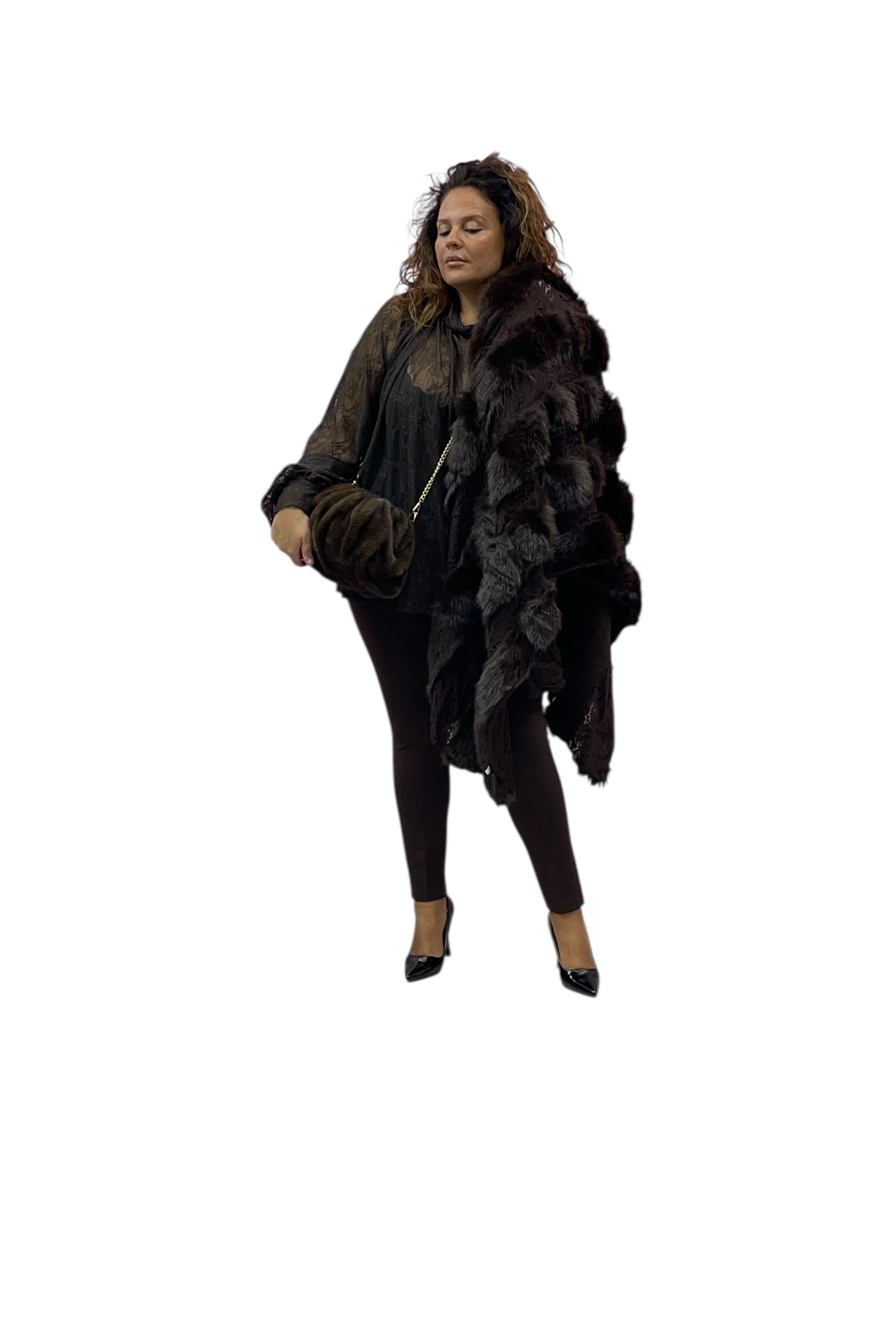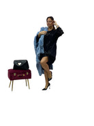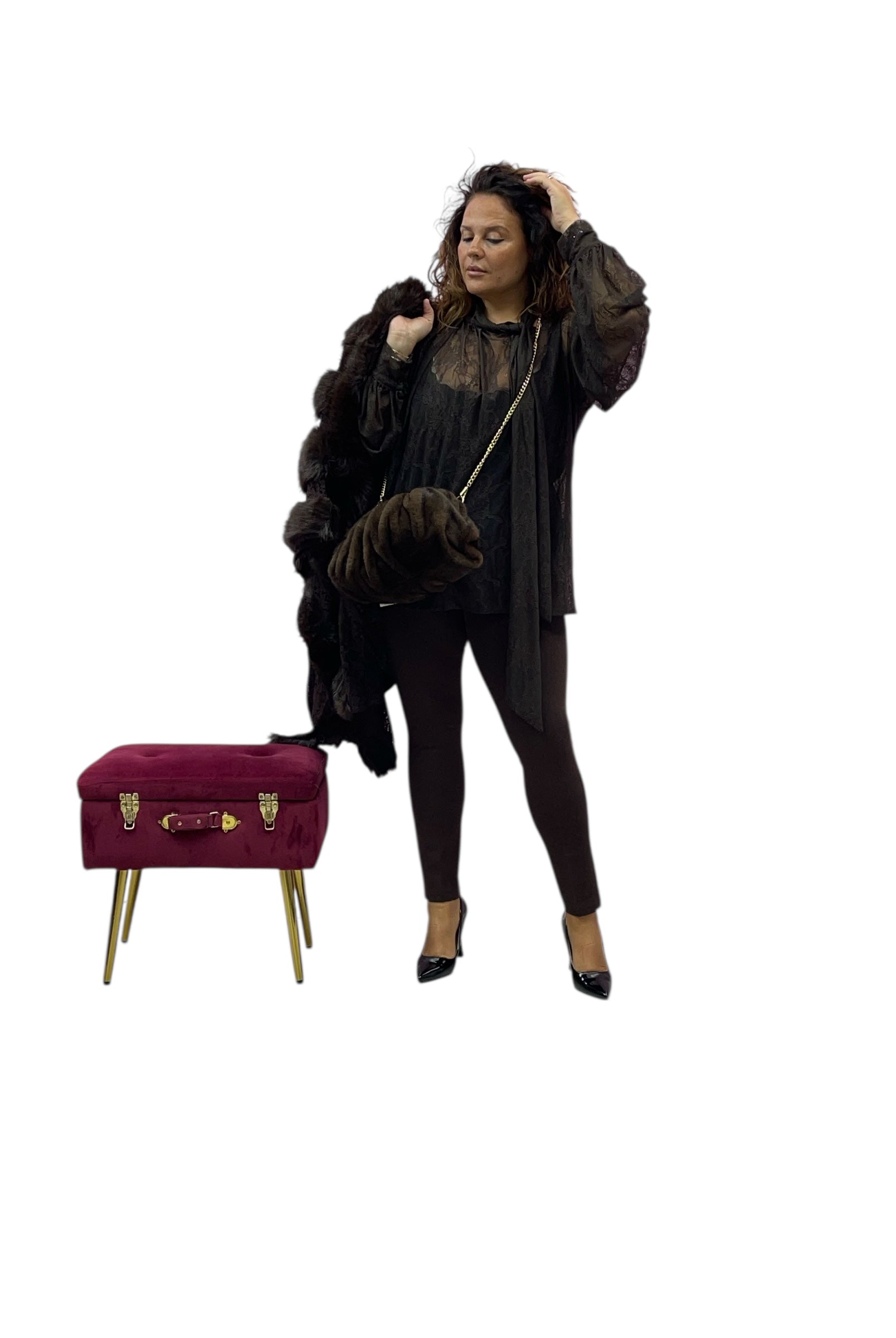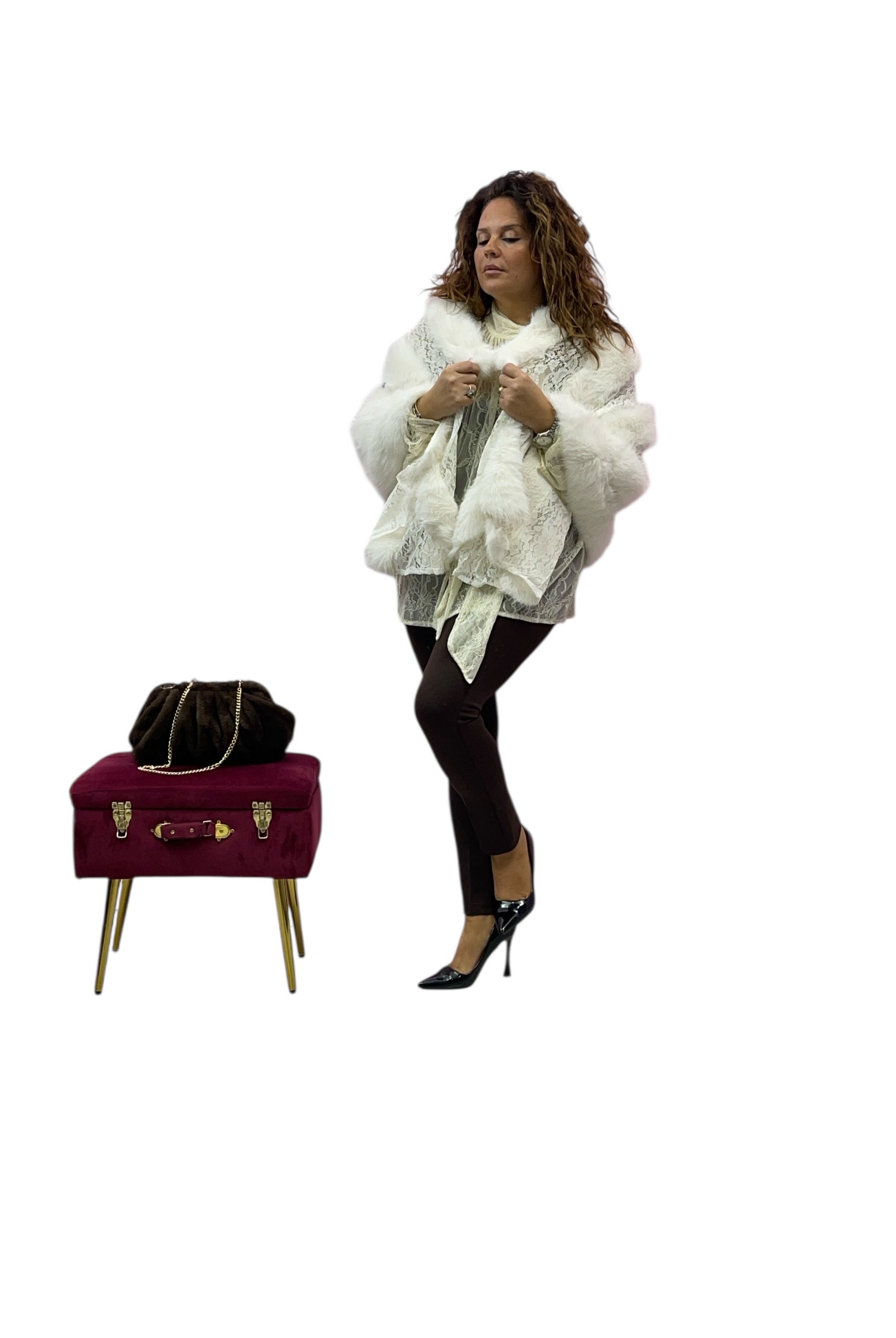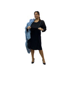 Abito over pizzo e paiette con maniche trasparente e fascia a colore