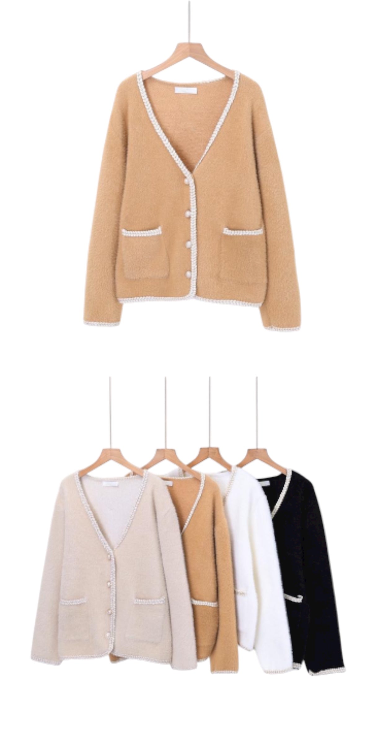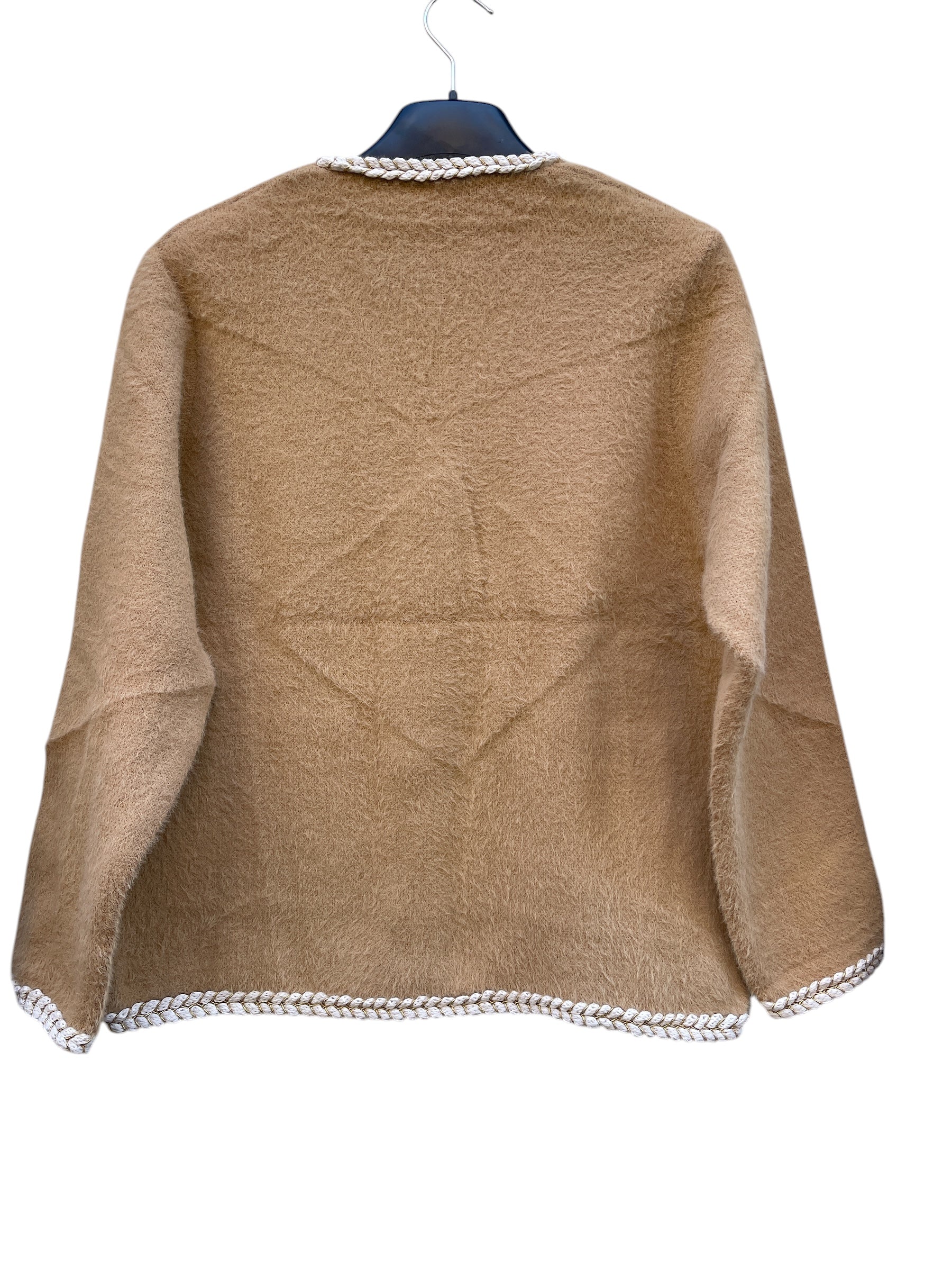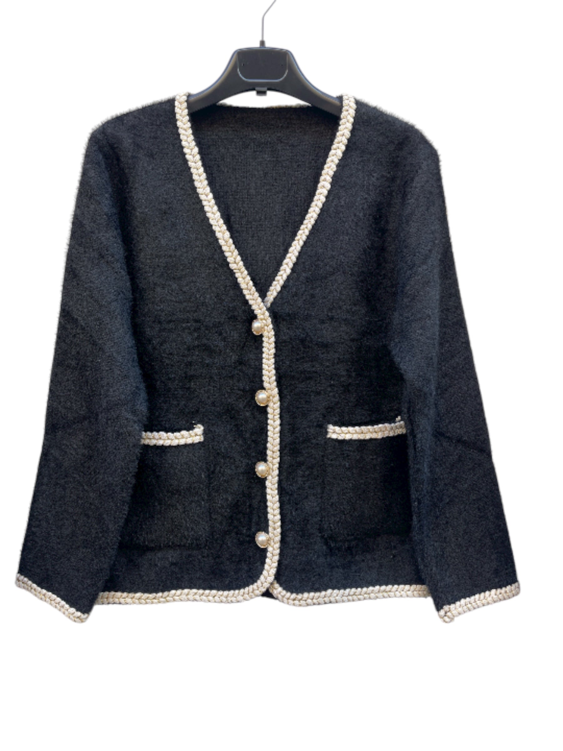 Cardigan con taschini e bordino in treccia con bottoni gioiello