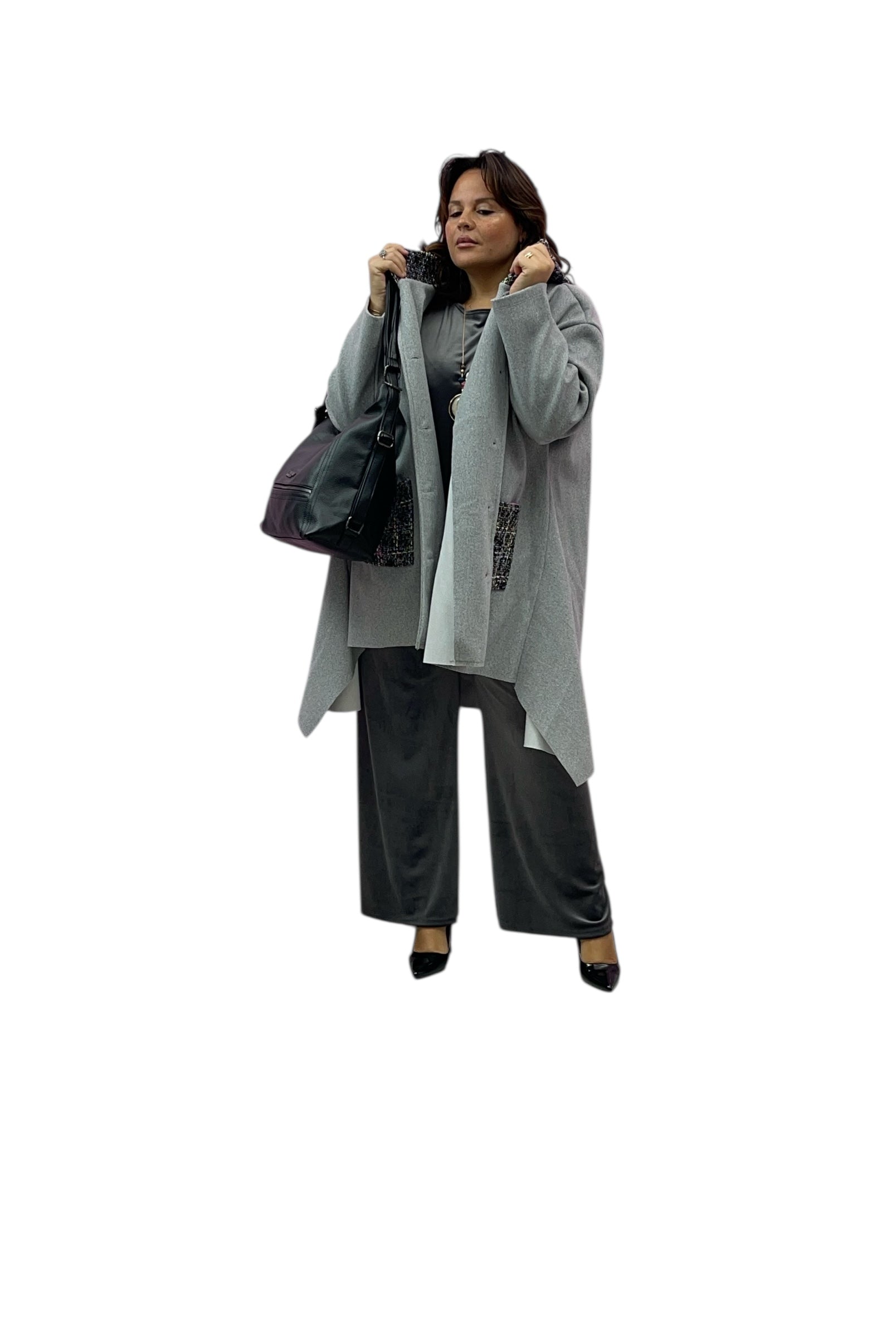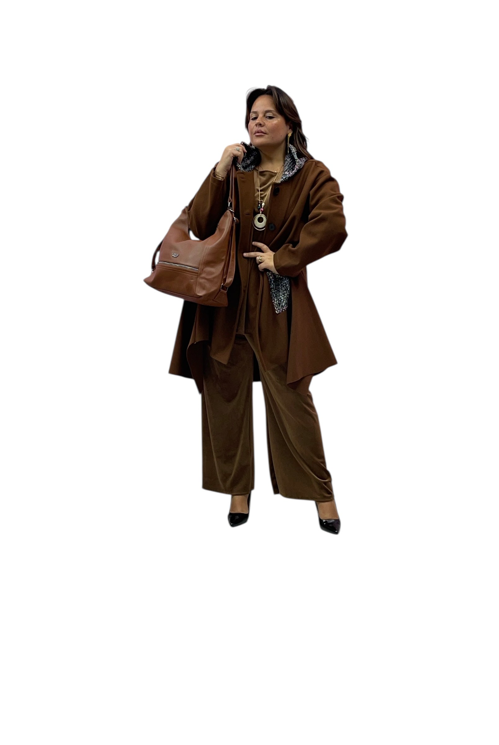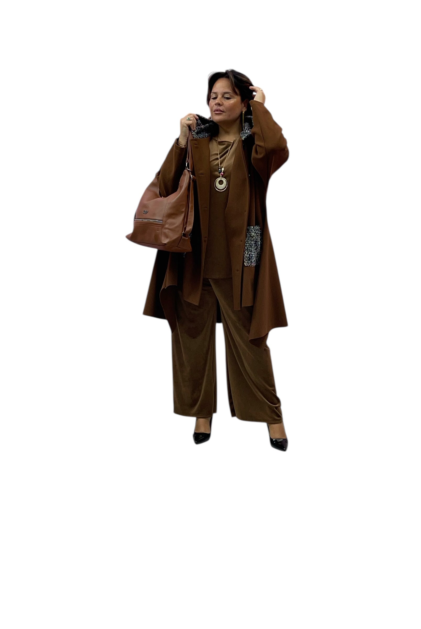 Completo over in ciniglia con casacca morbida e pantaloni con elastico in vita modello palazzo
