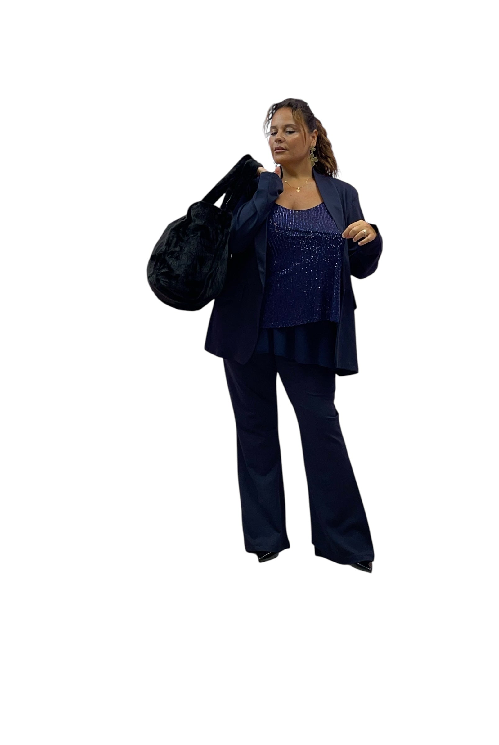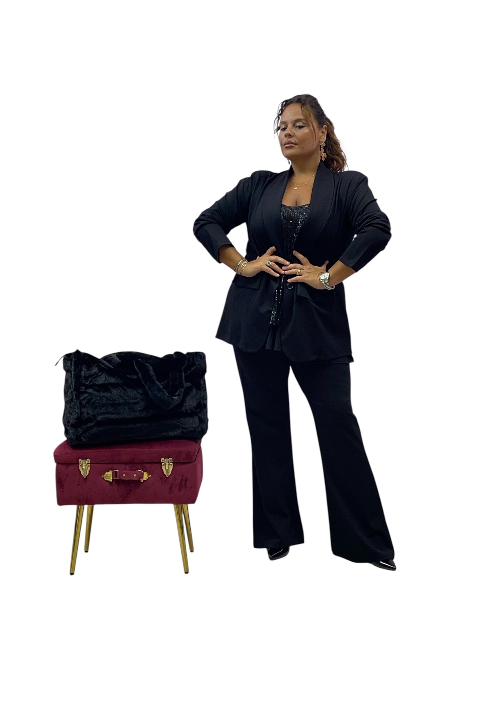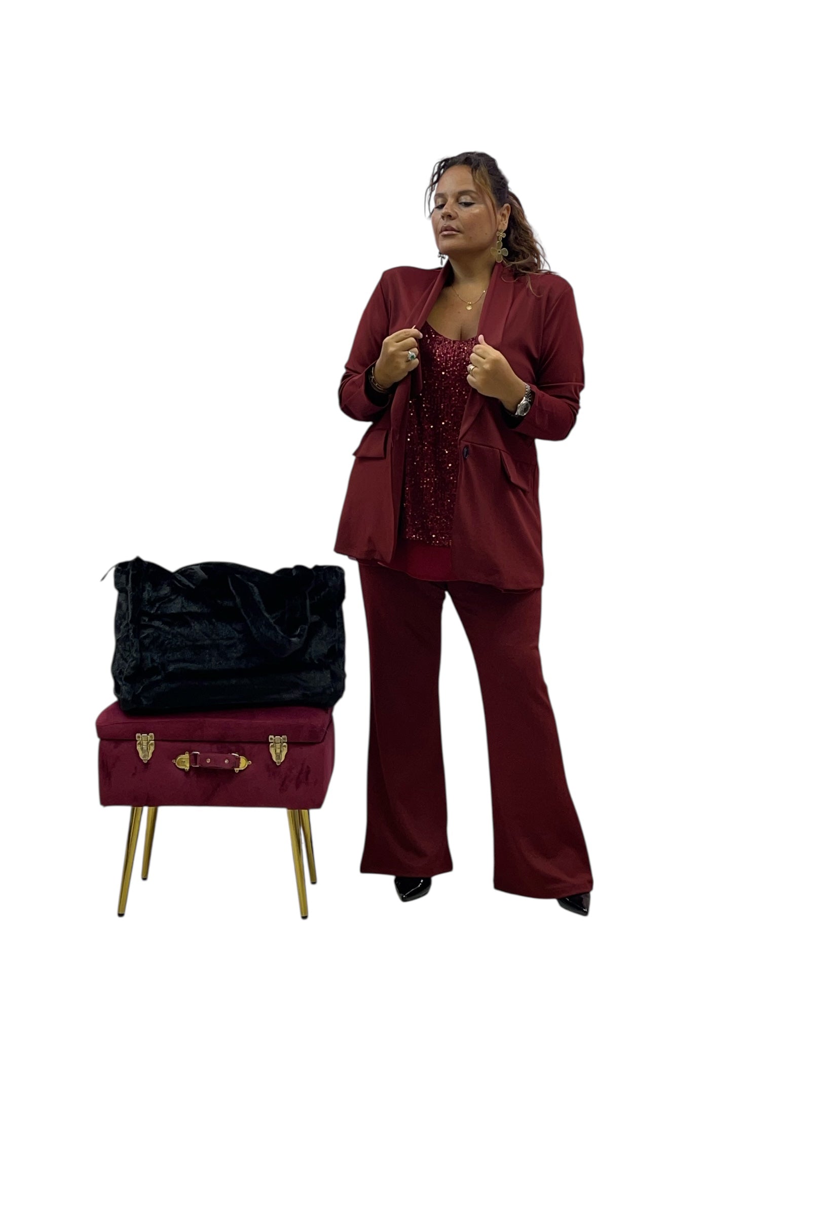 Completo over in punto milano con pantaloni a zampa con elastico in vita