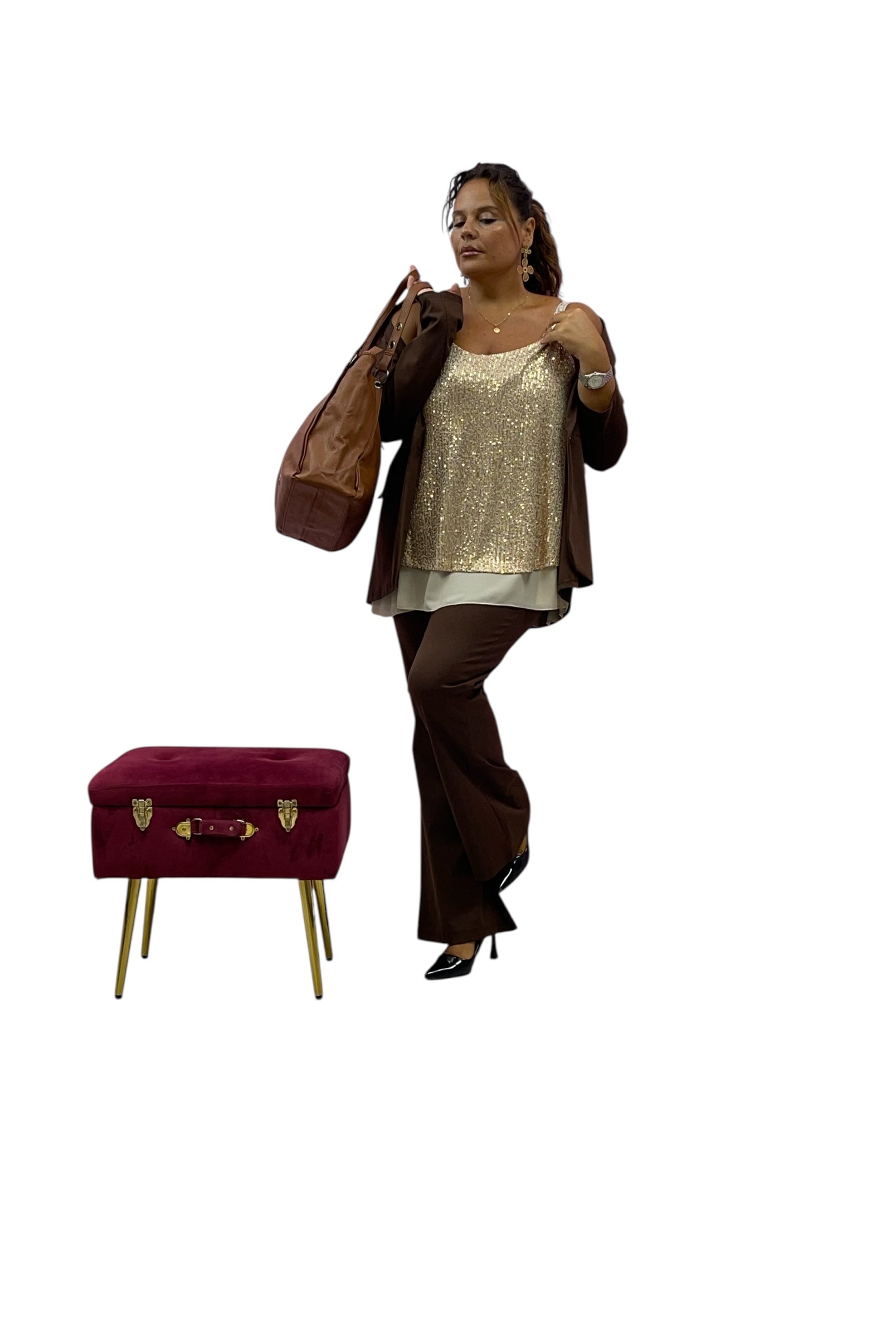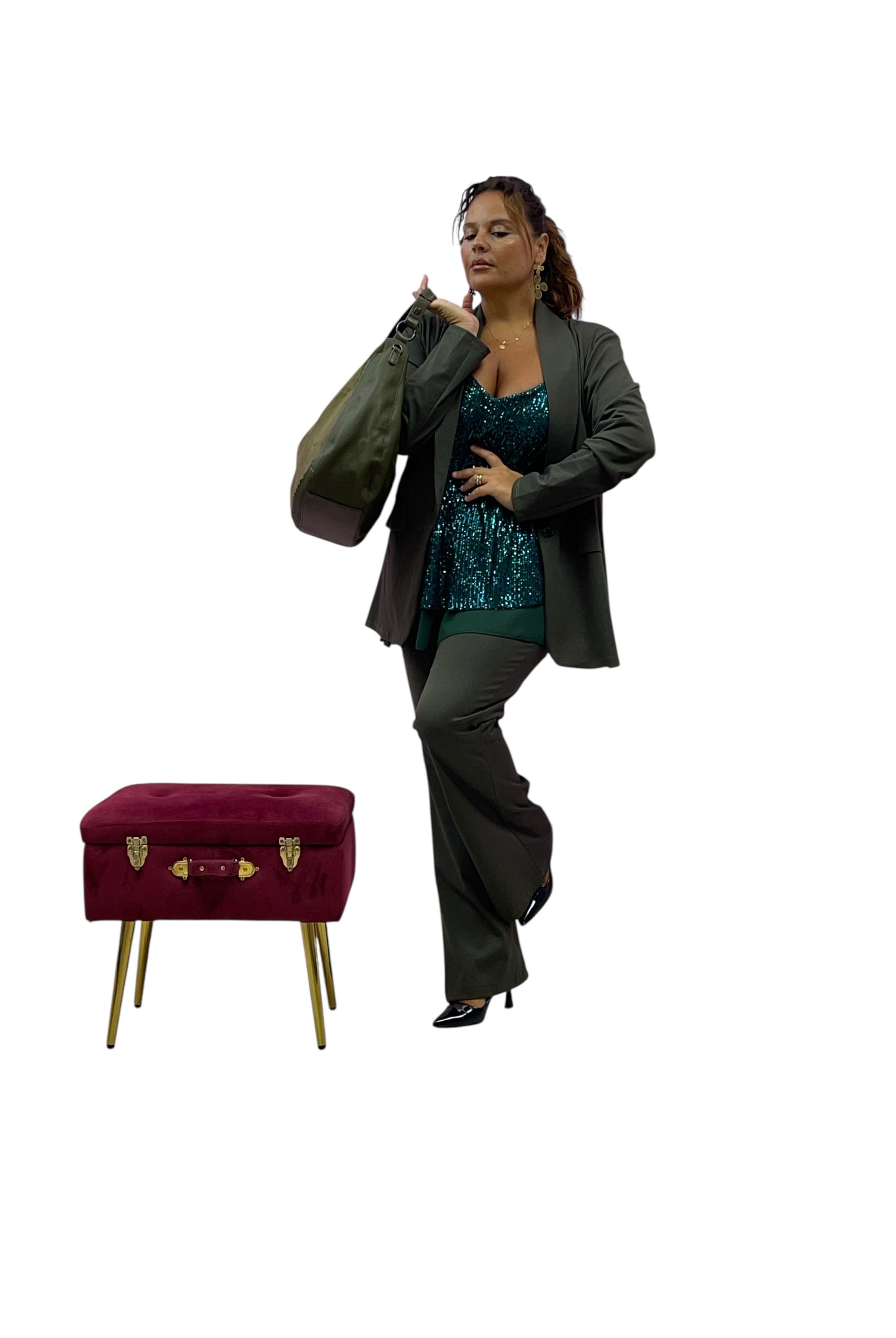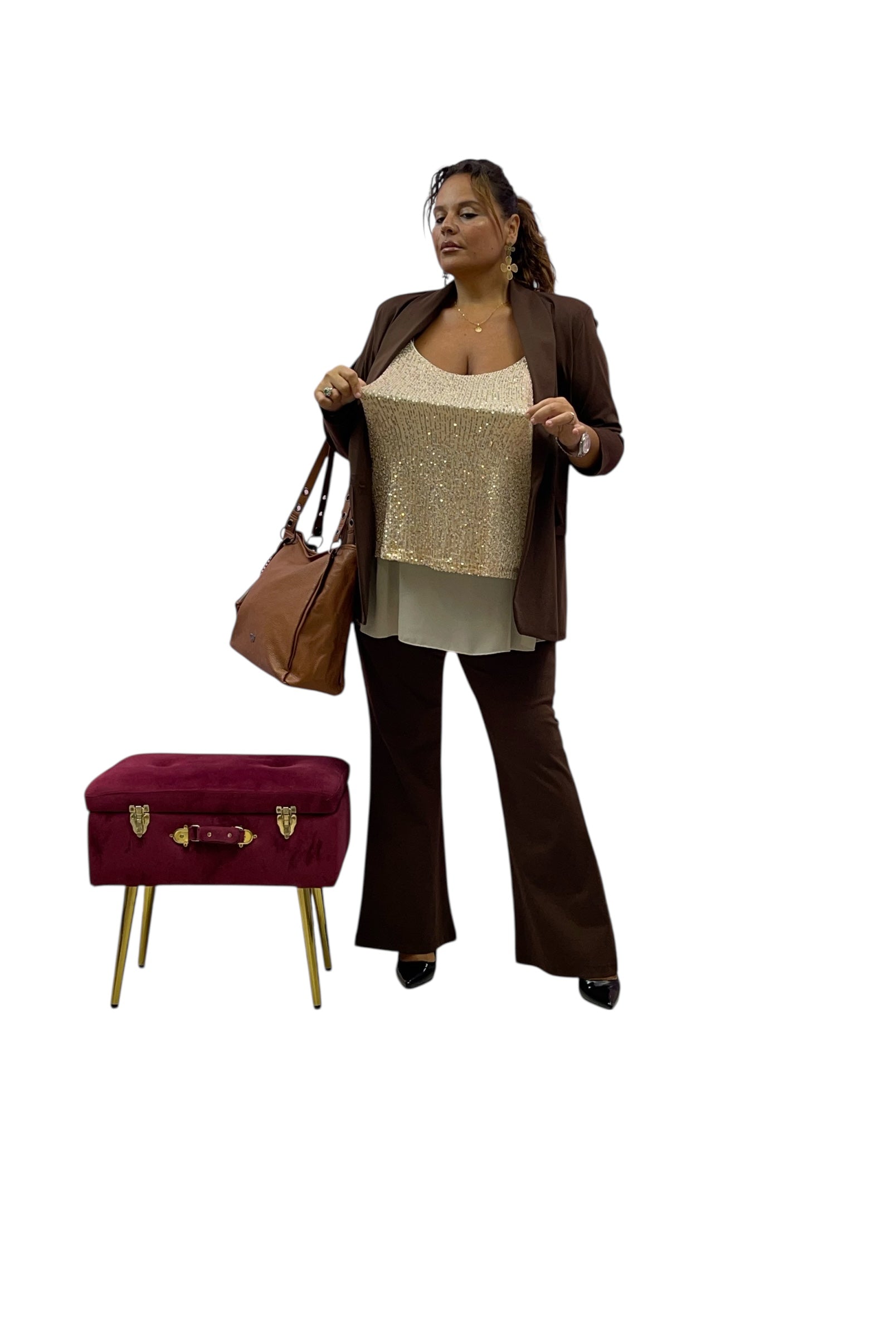 Completo over in punto milano con pantaloni a zampa con elastico in vita