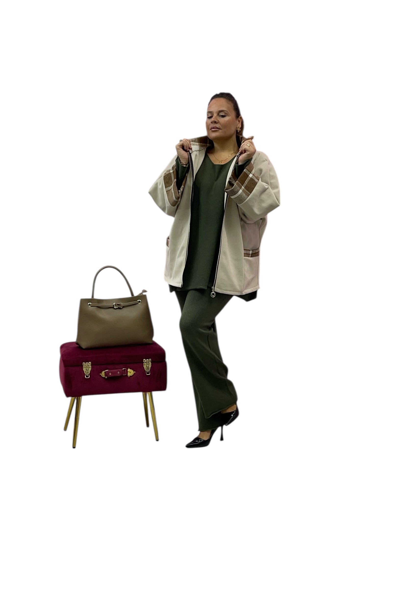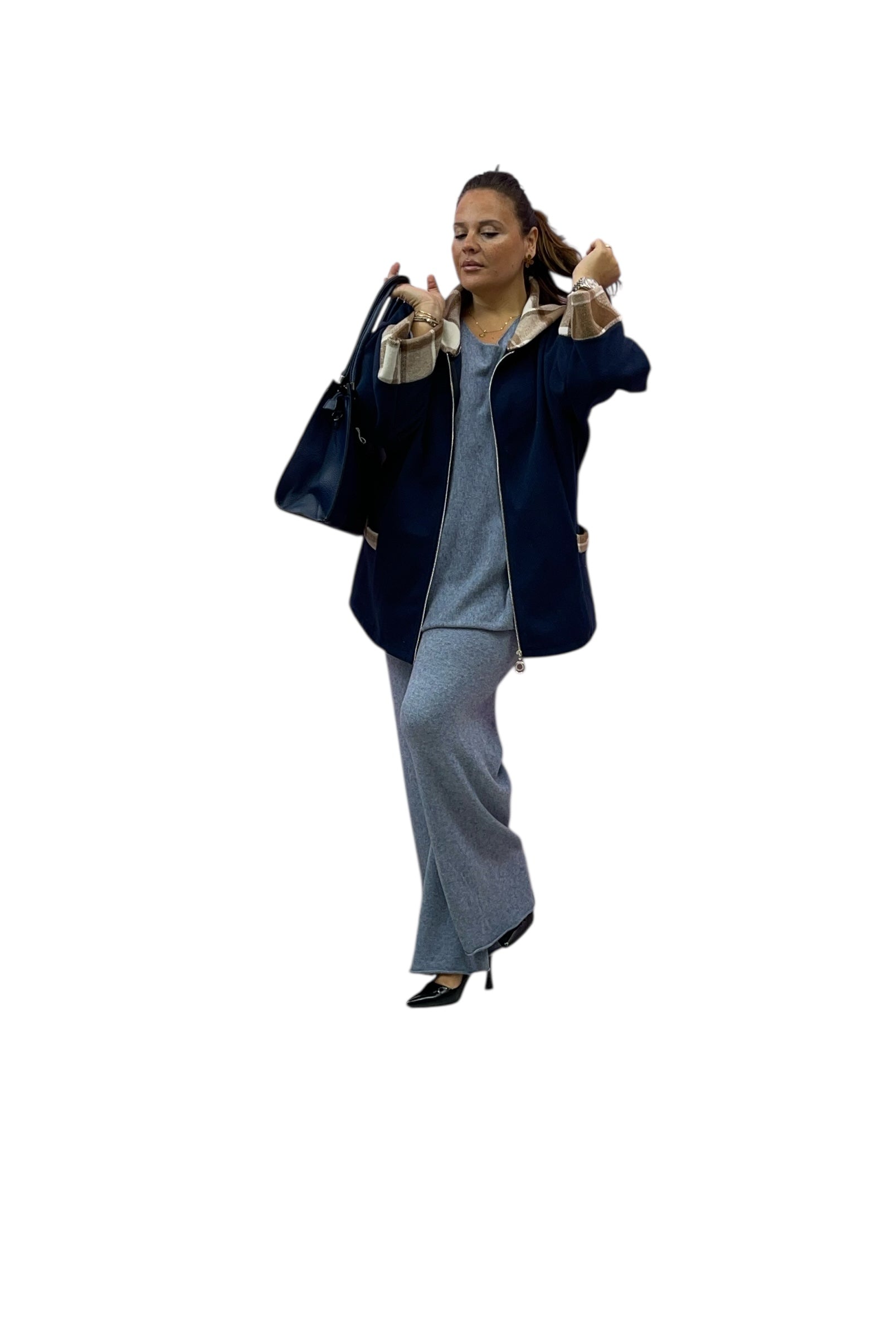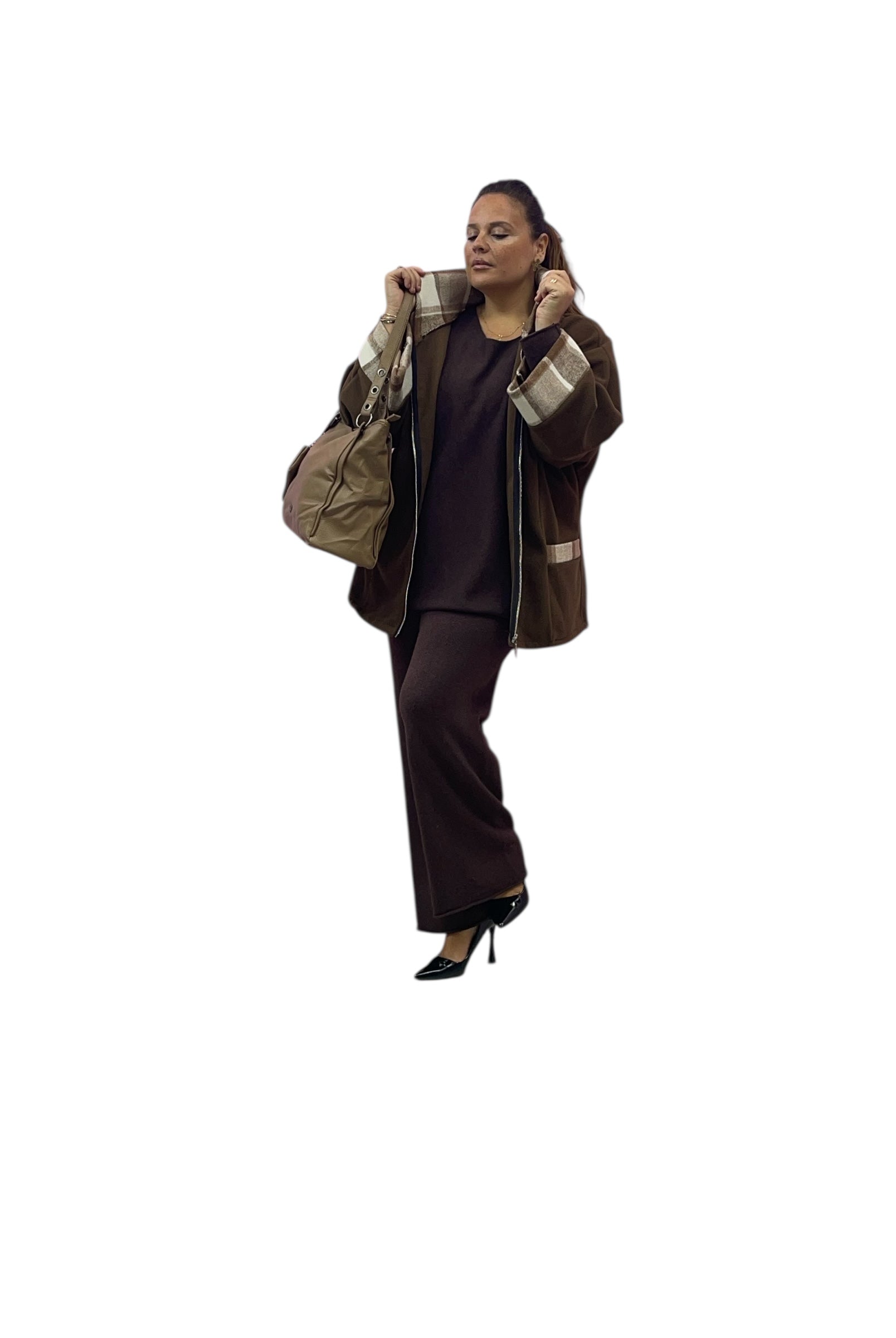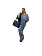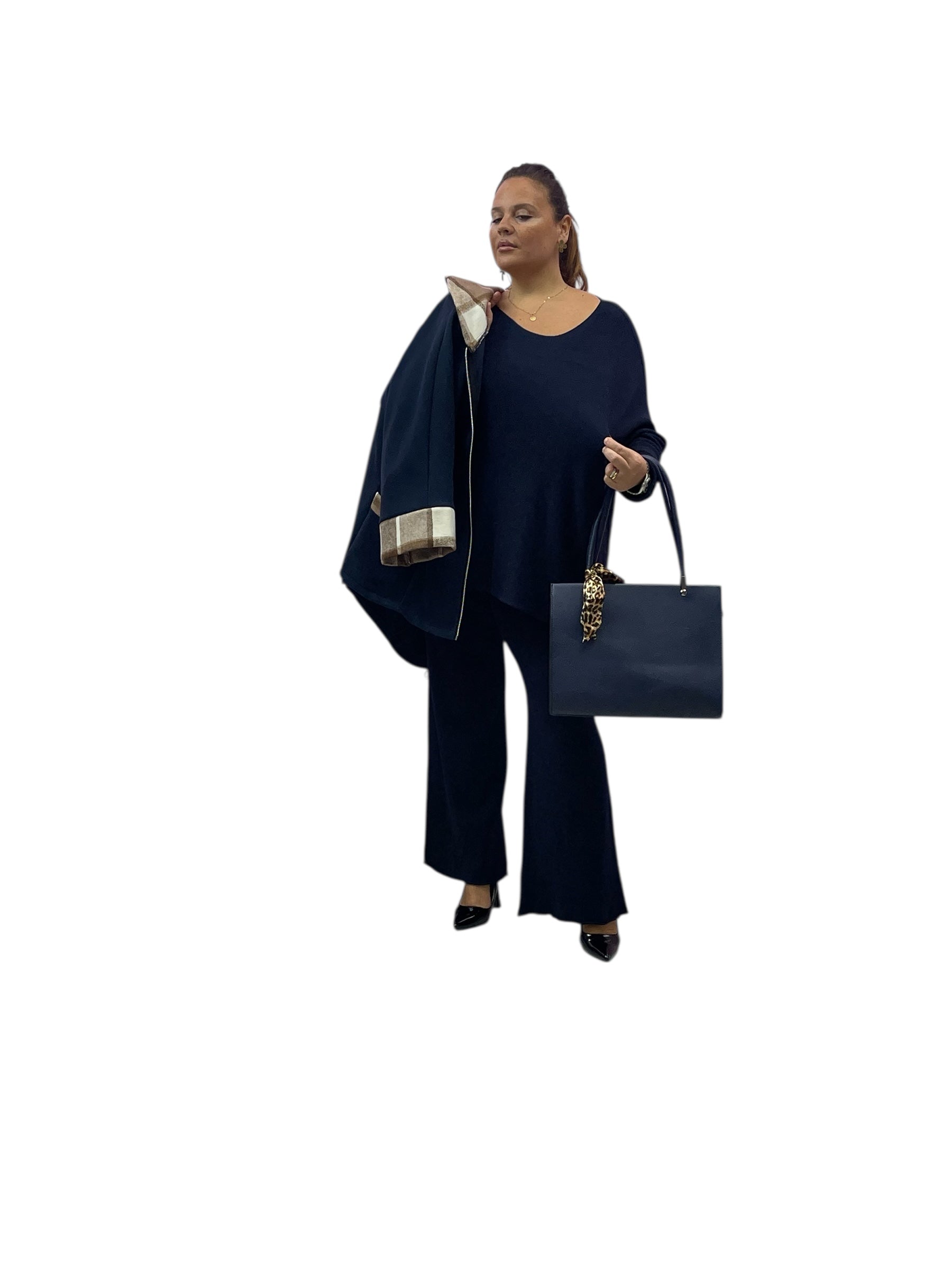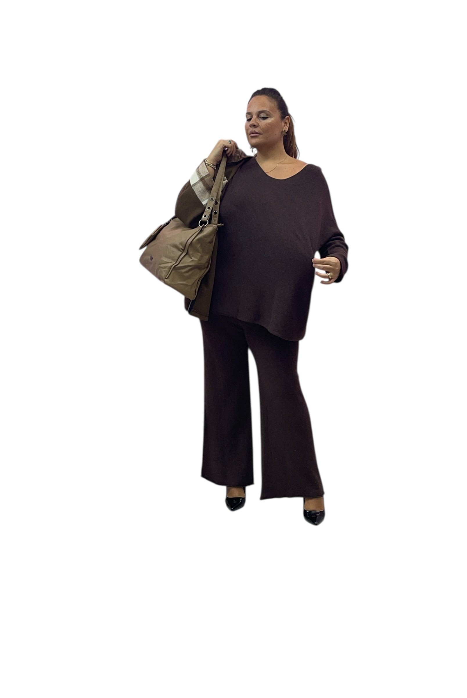 Completo over a maglia con magliettone e pantaloni palazzo con elastico in vita