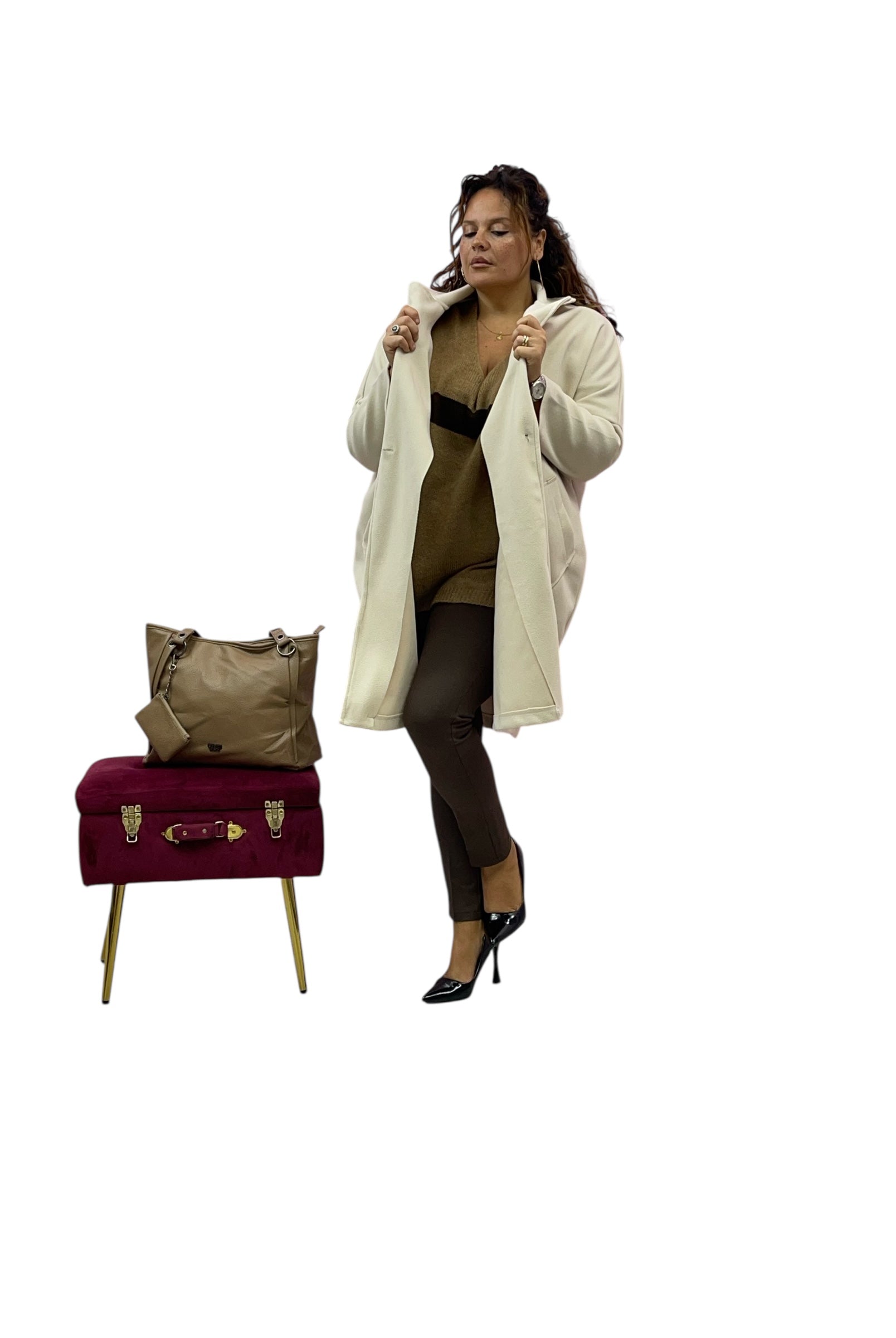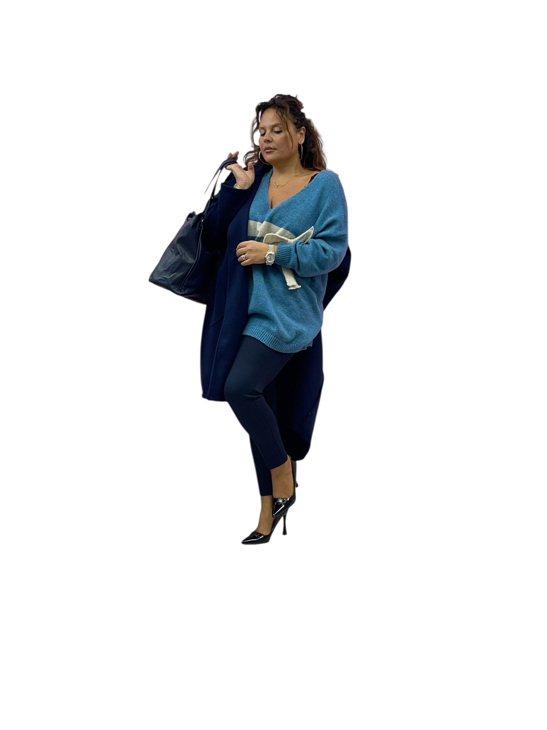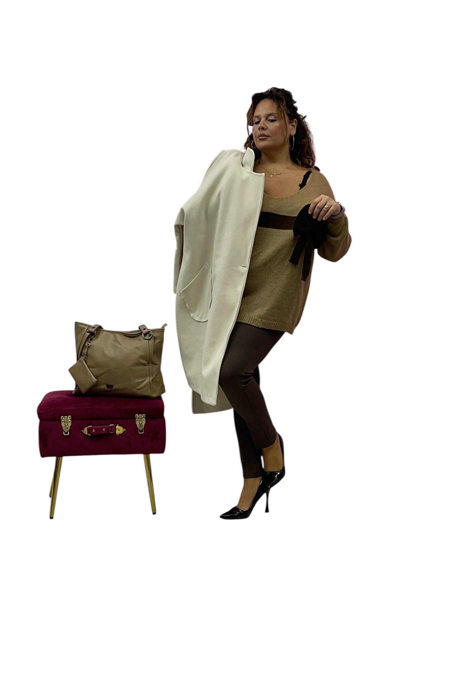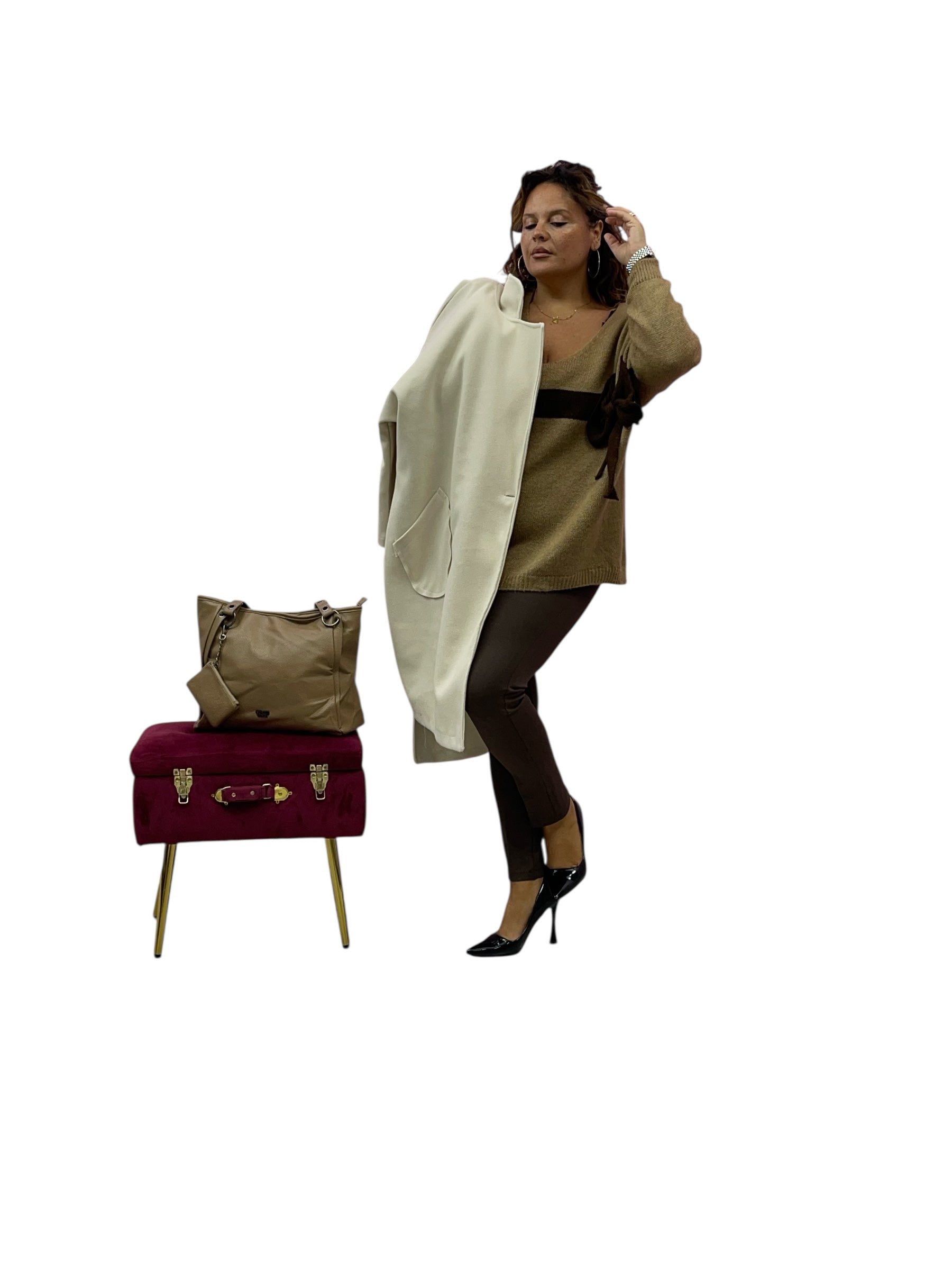 Magliettone over in lana grossa scollo a v e fiocco grande
