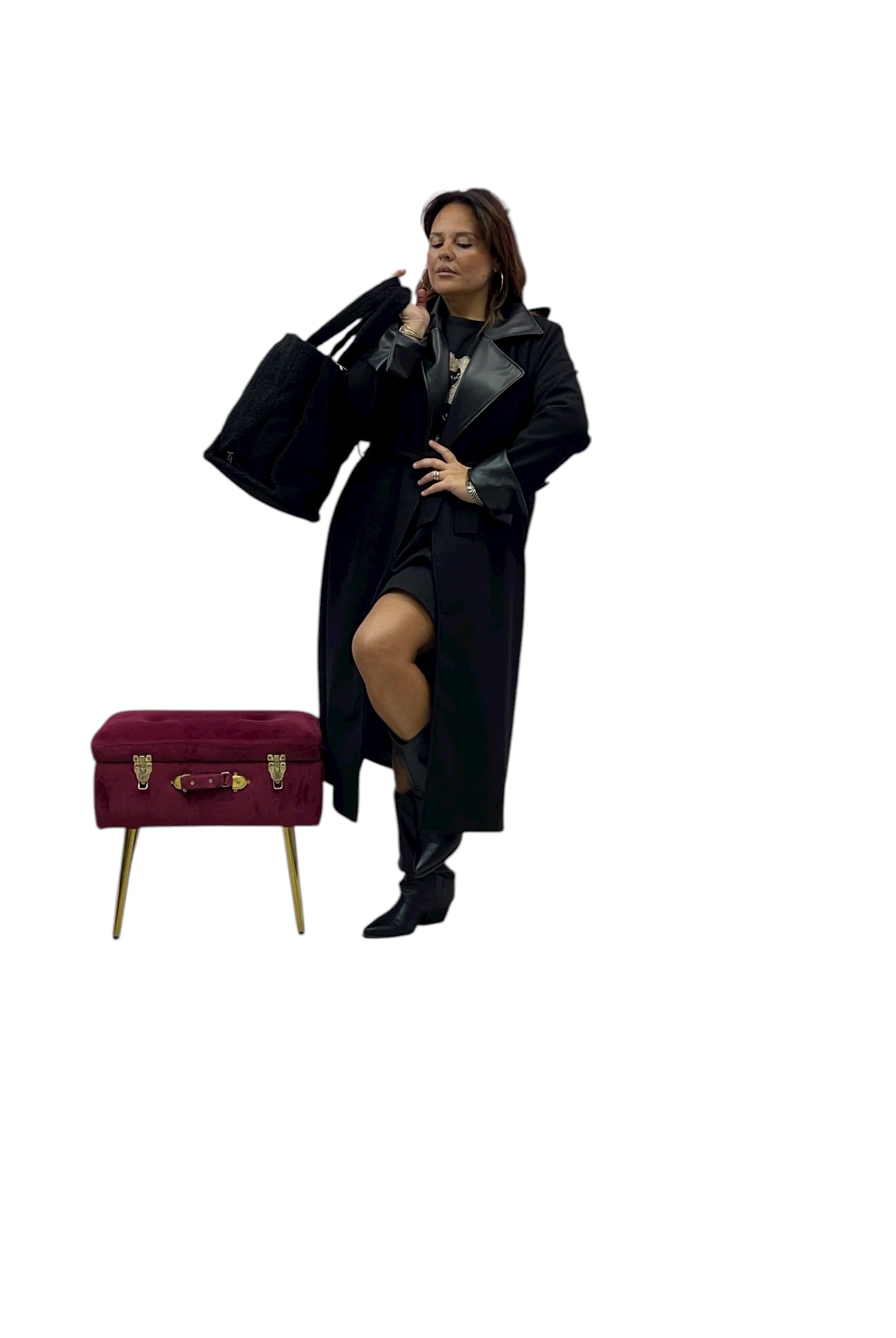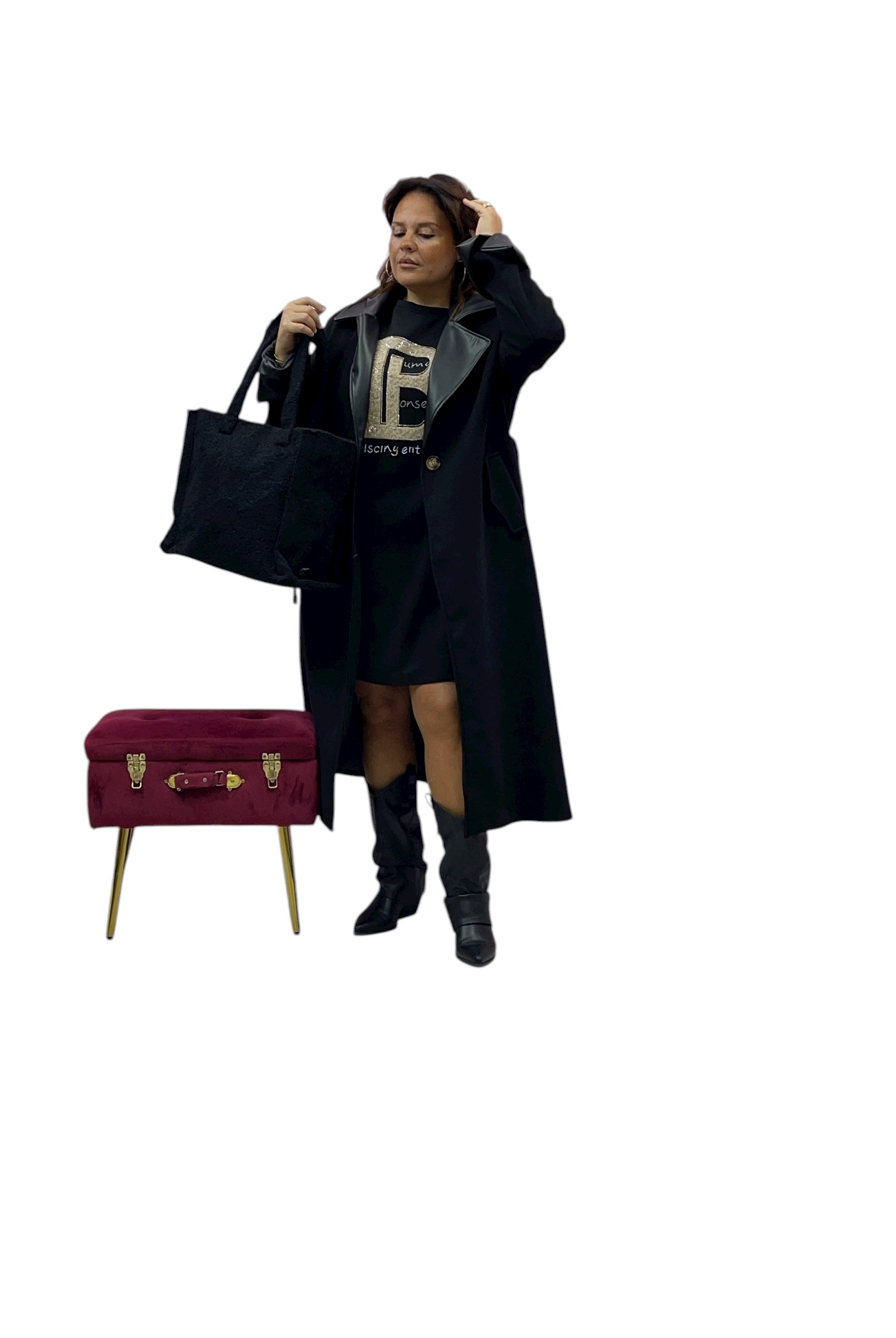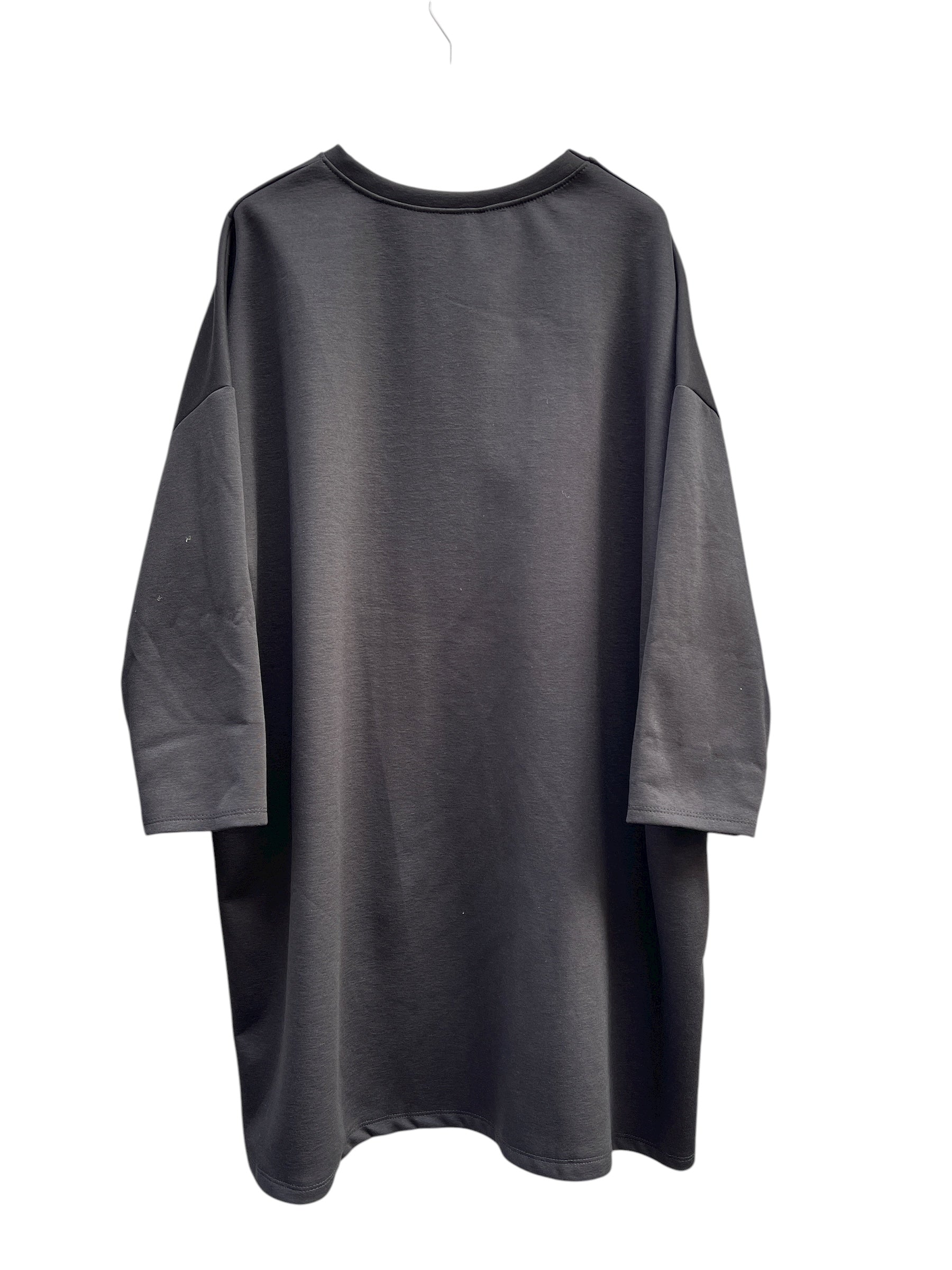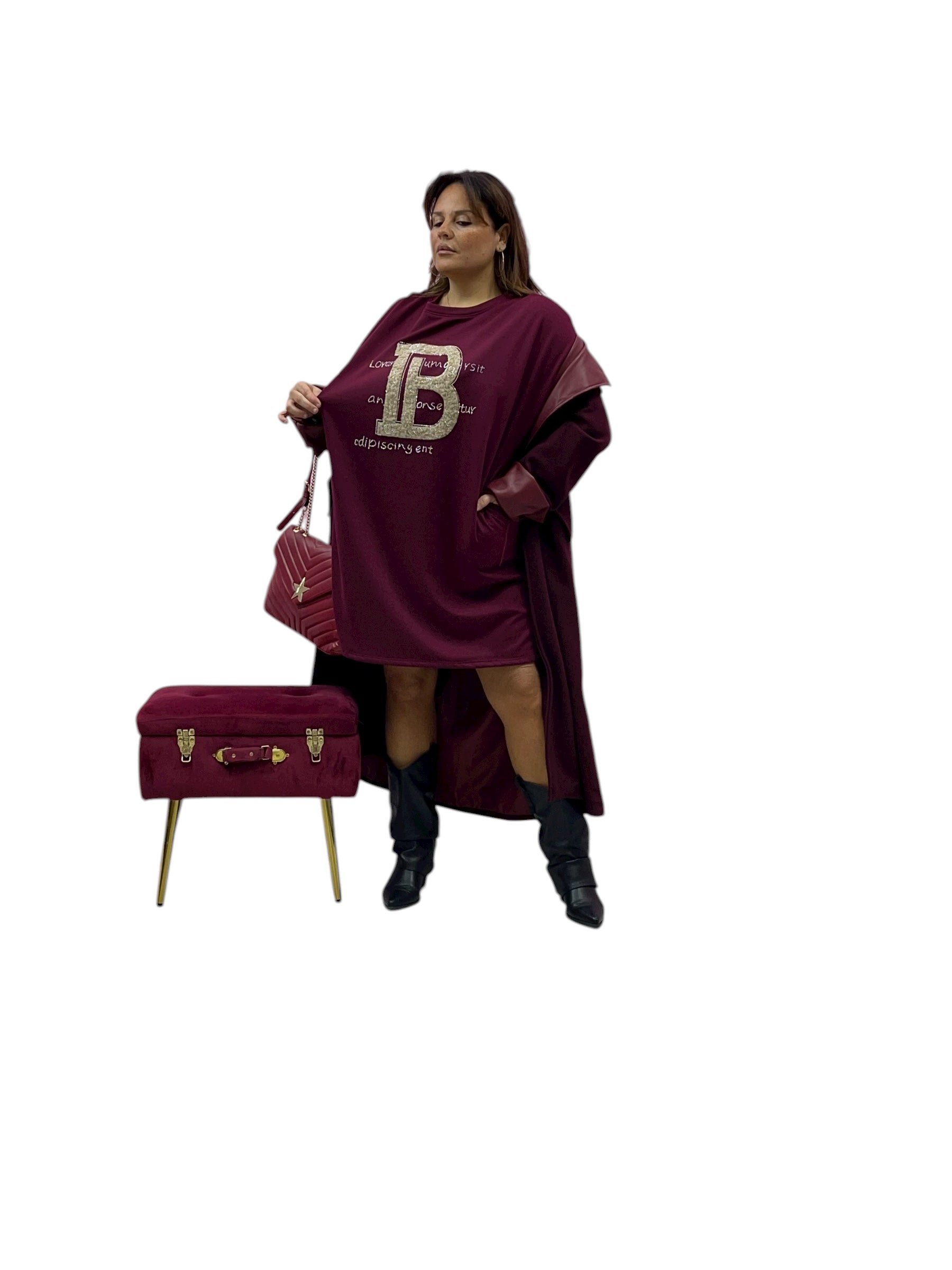Magliettone/abito over in felpa con lettera in boucle, brillantini ed interno in pile