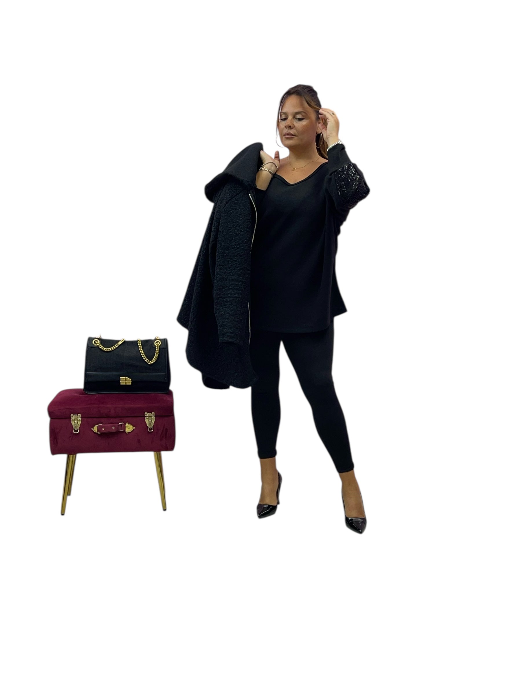 Magliettone over con doppio scollo e laccio in raso alle spalle