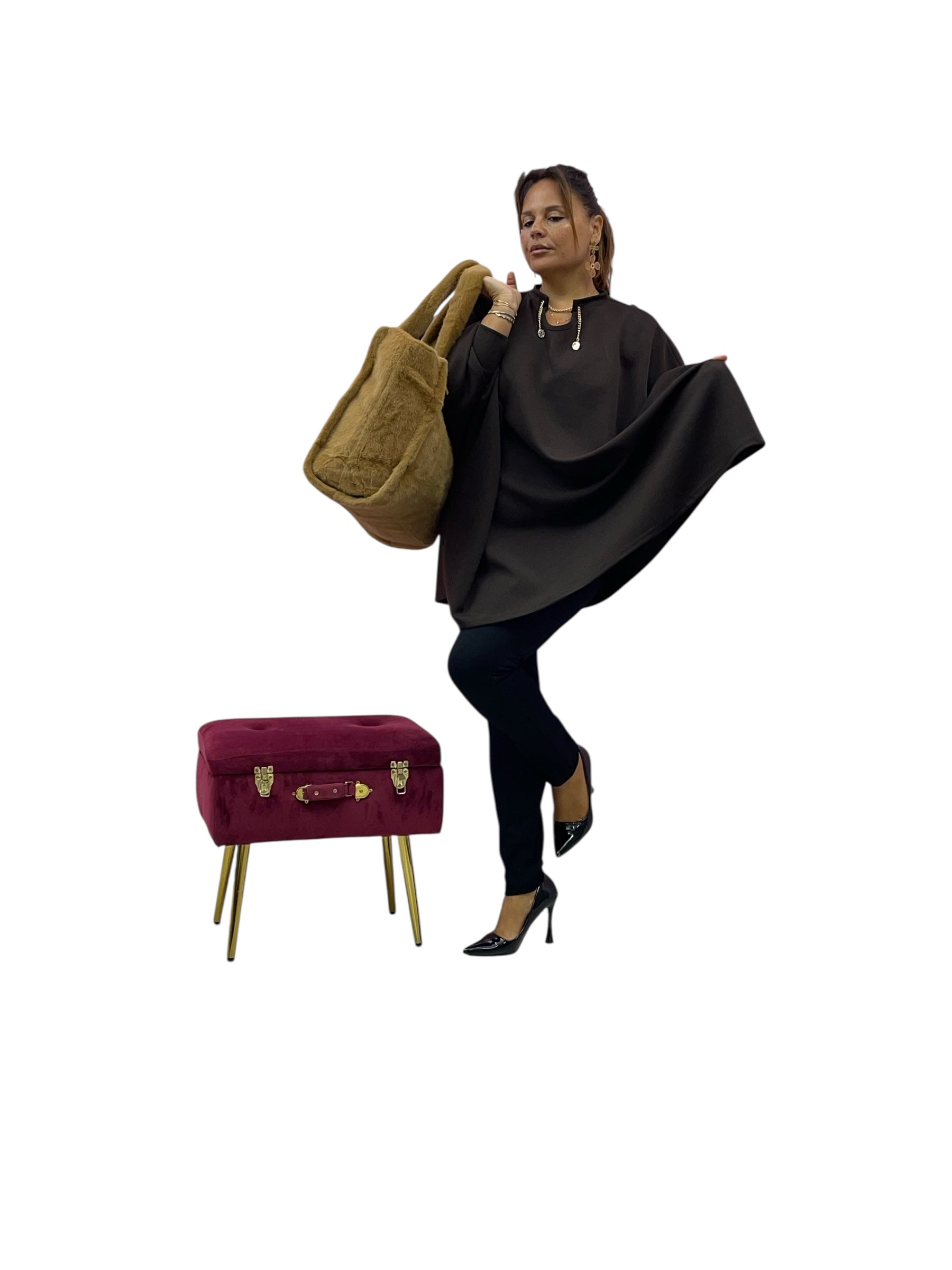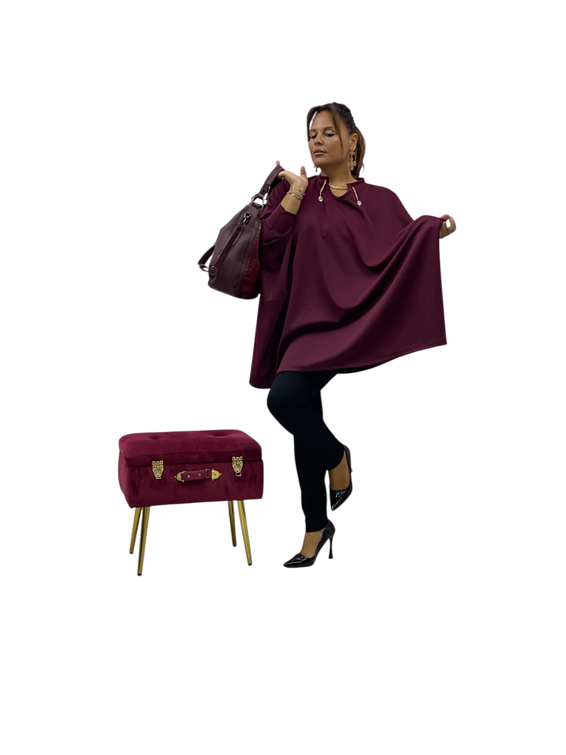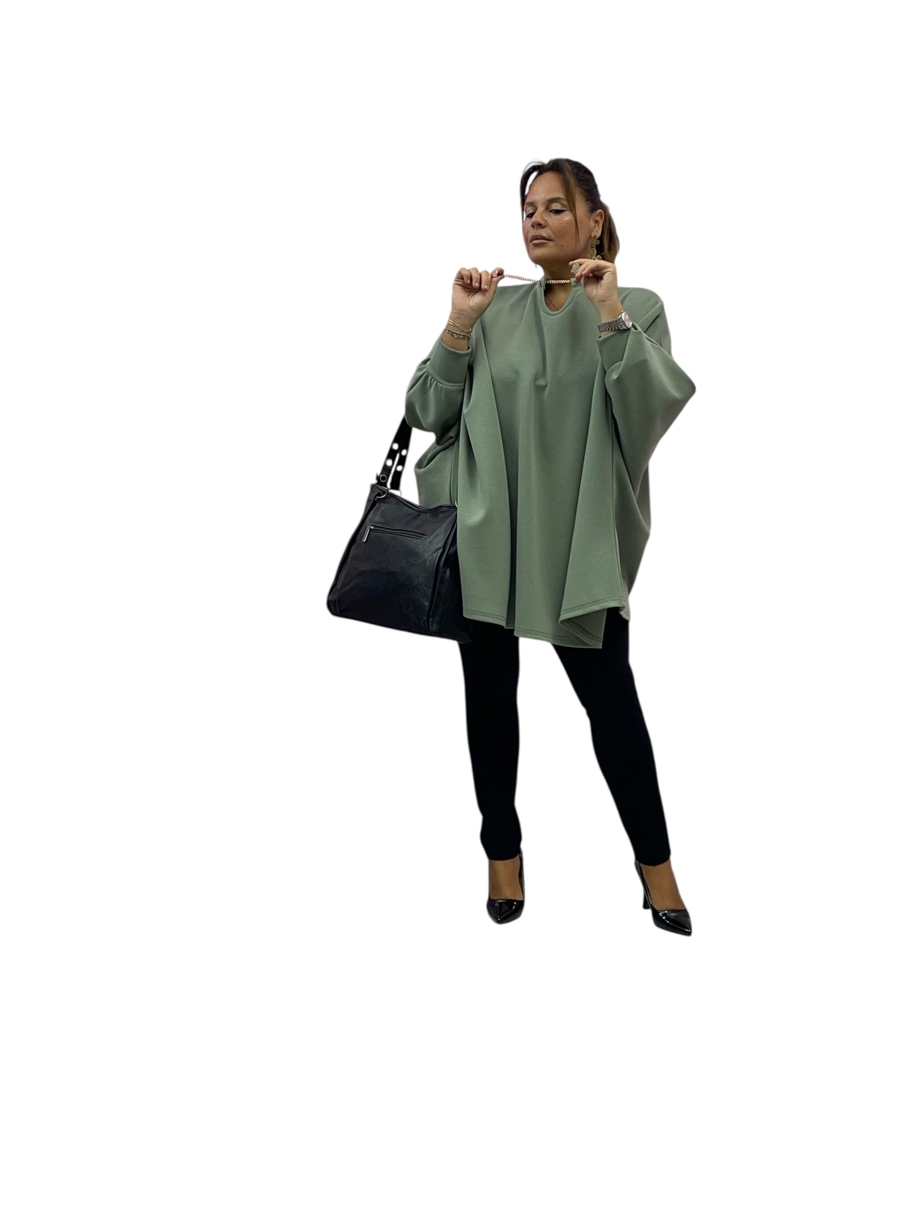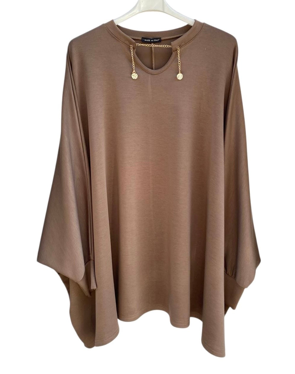 Magliettone over modello mantella in felpa e collo con catena