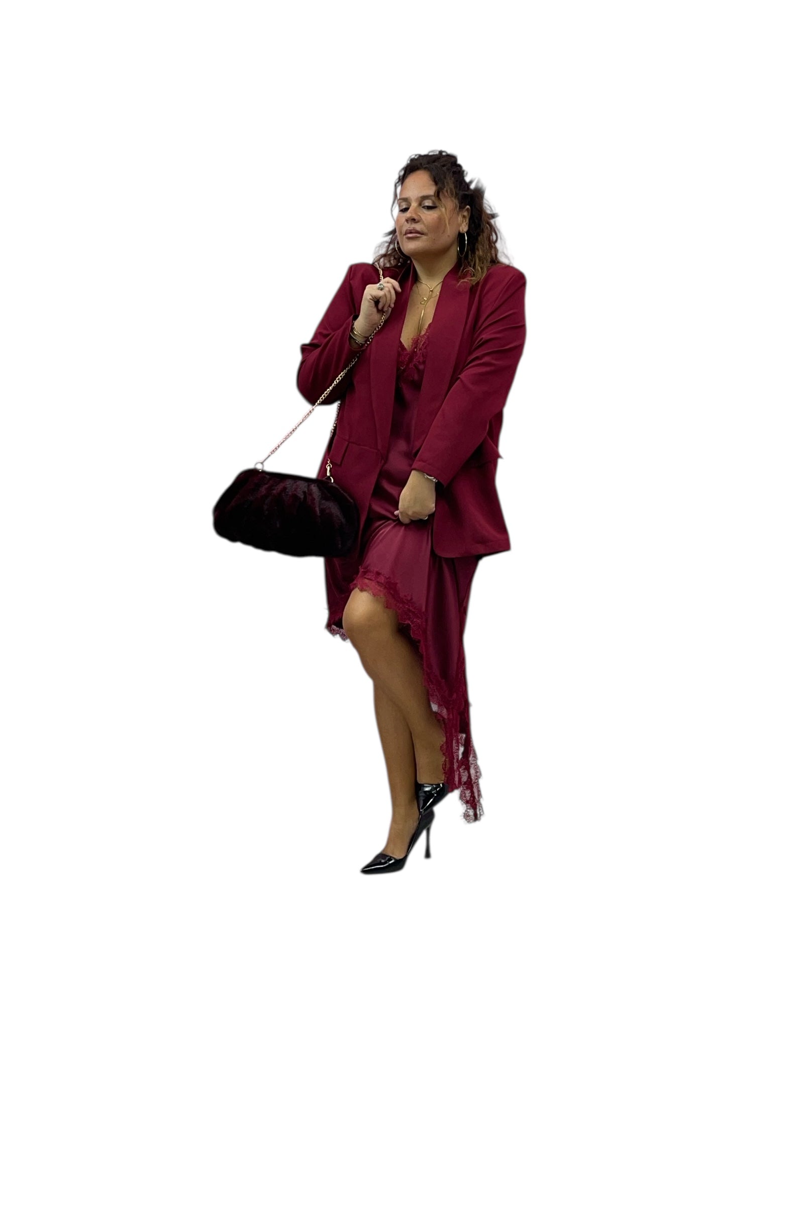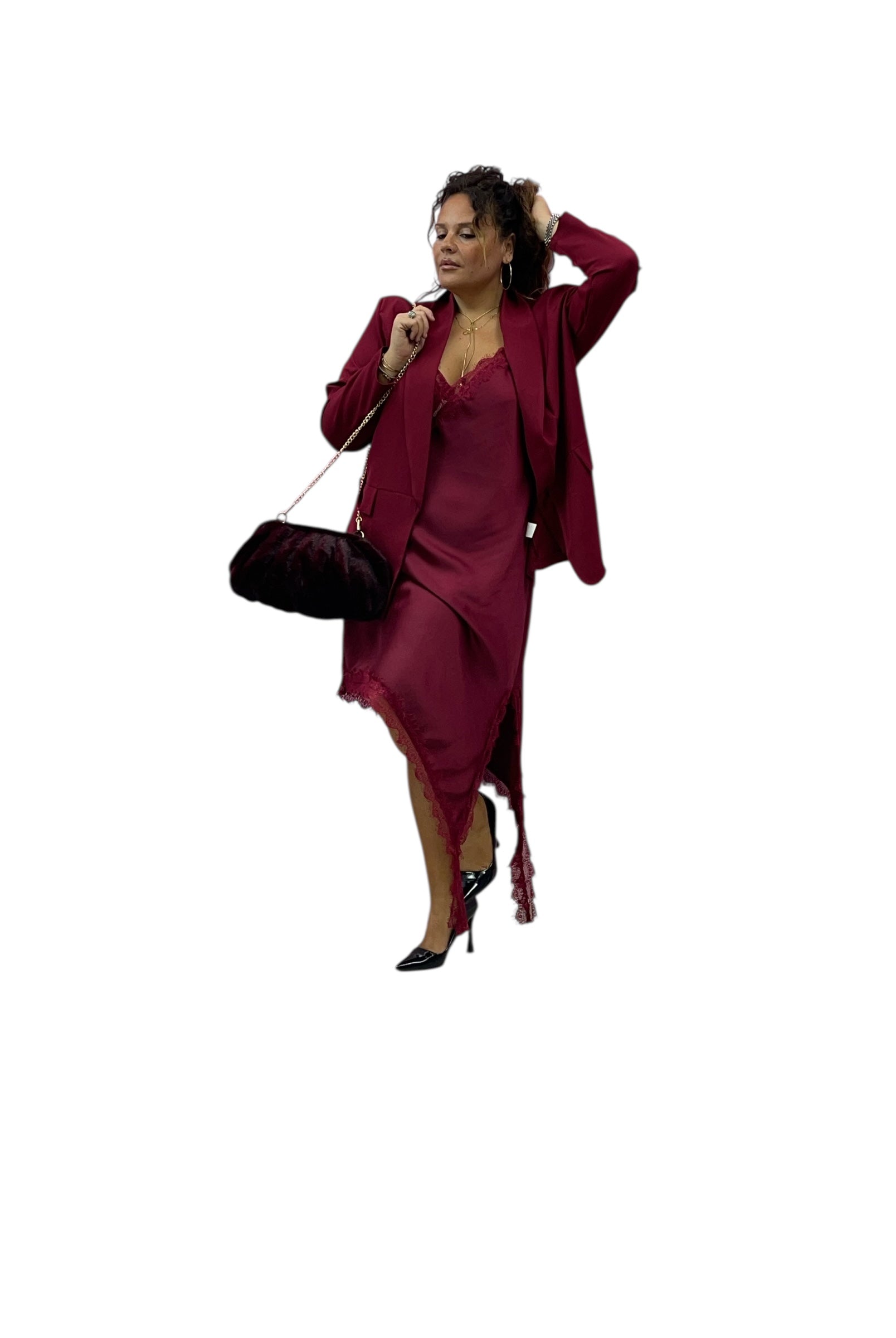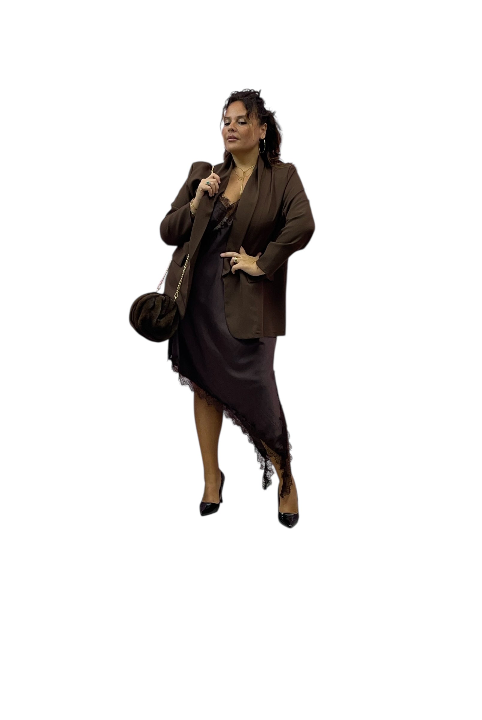 Abito over in raso con bretelline fascia di merletto  taglio di traversoe elastico indietro