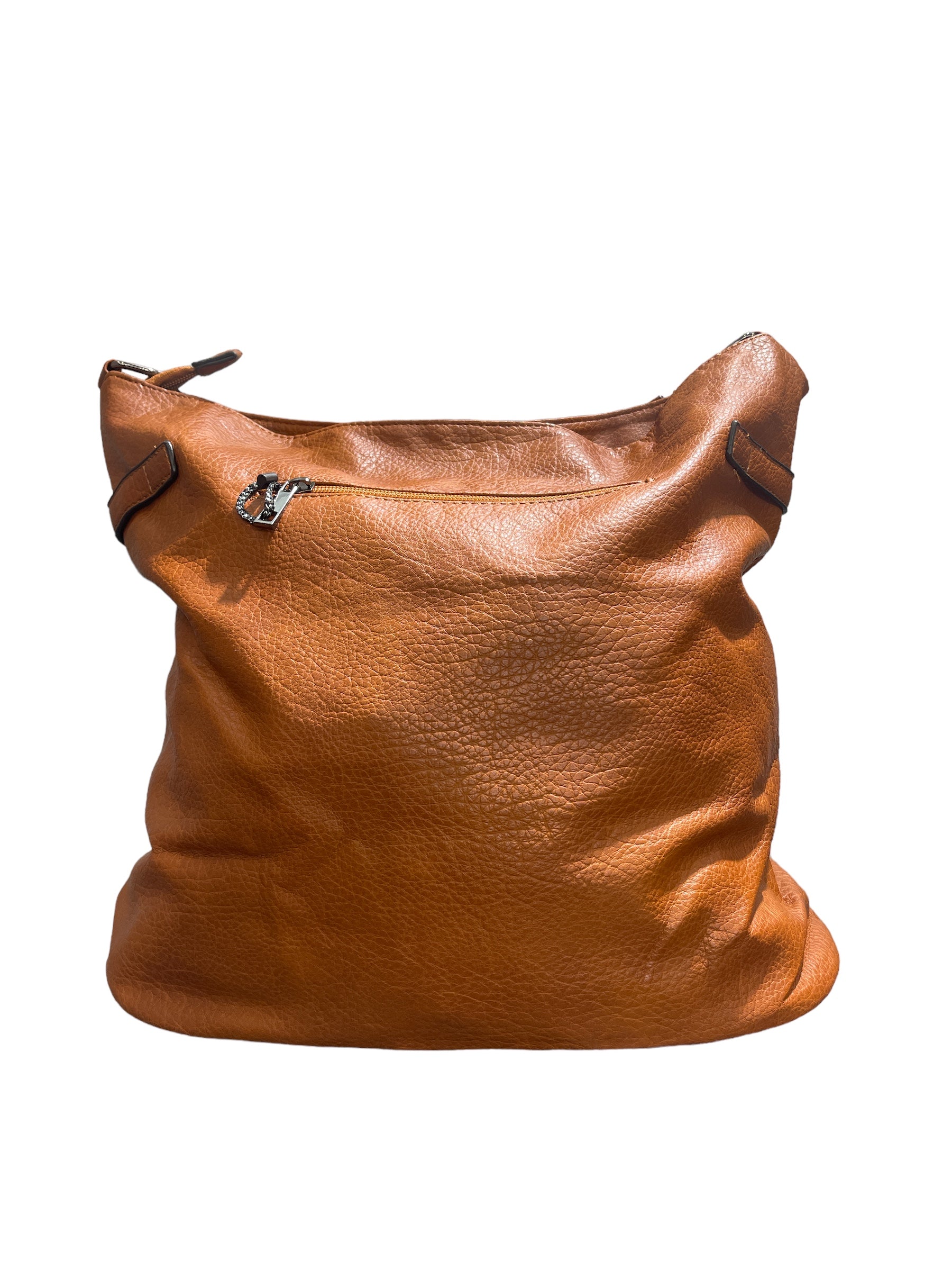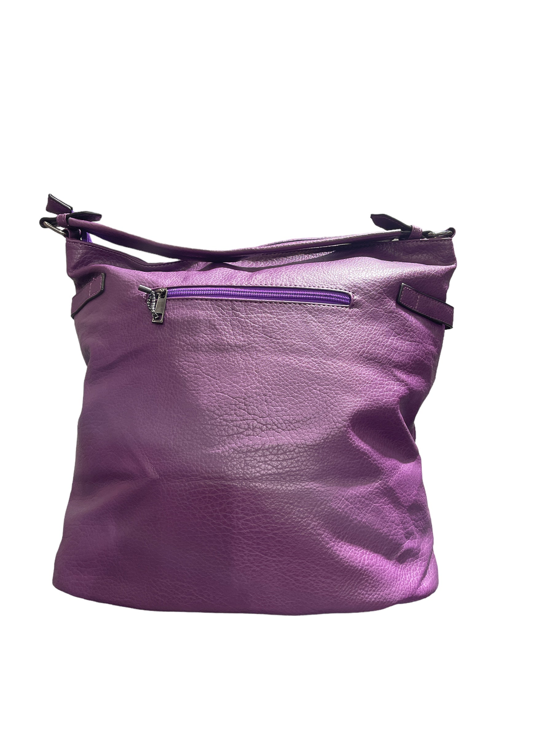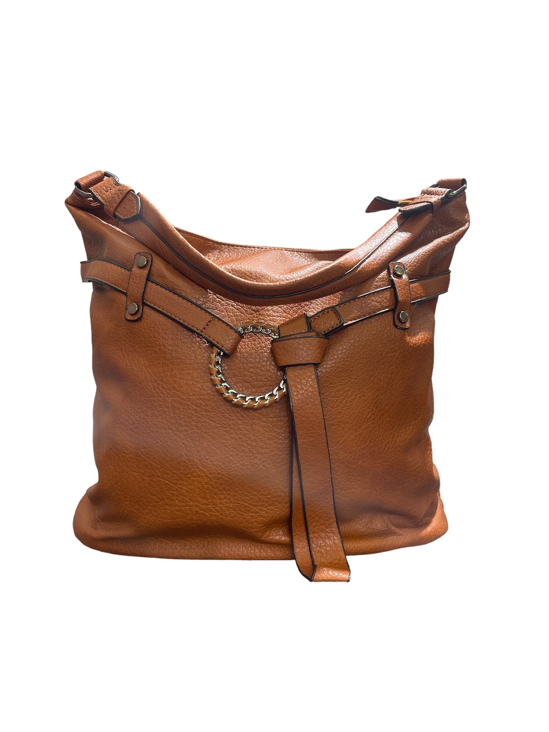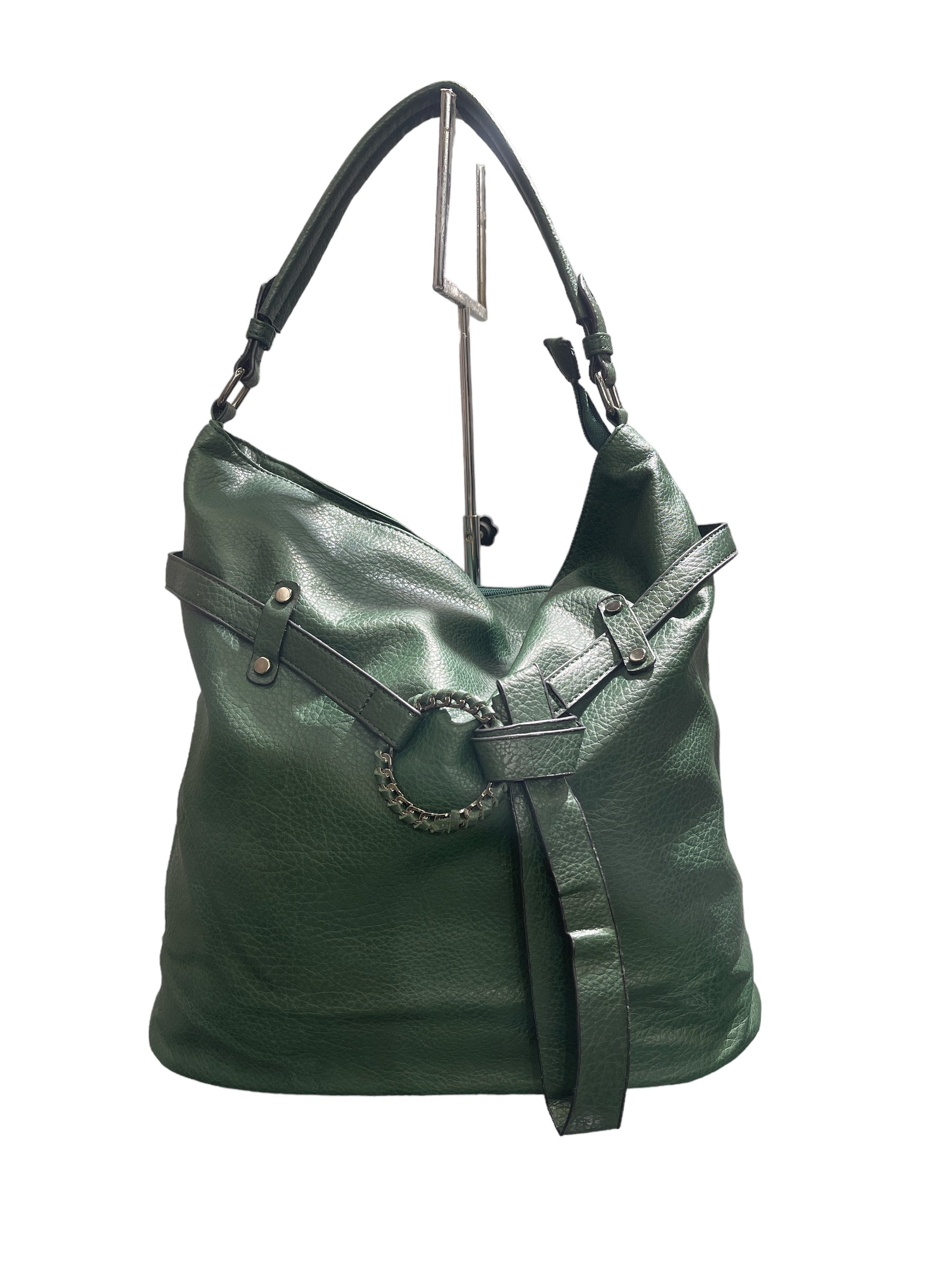 Borsa grande in ecopelle modello sacchetto con applicazione e tracolla