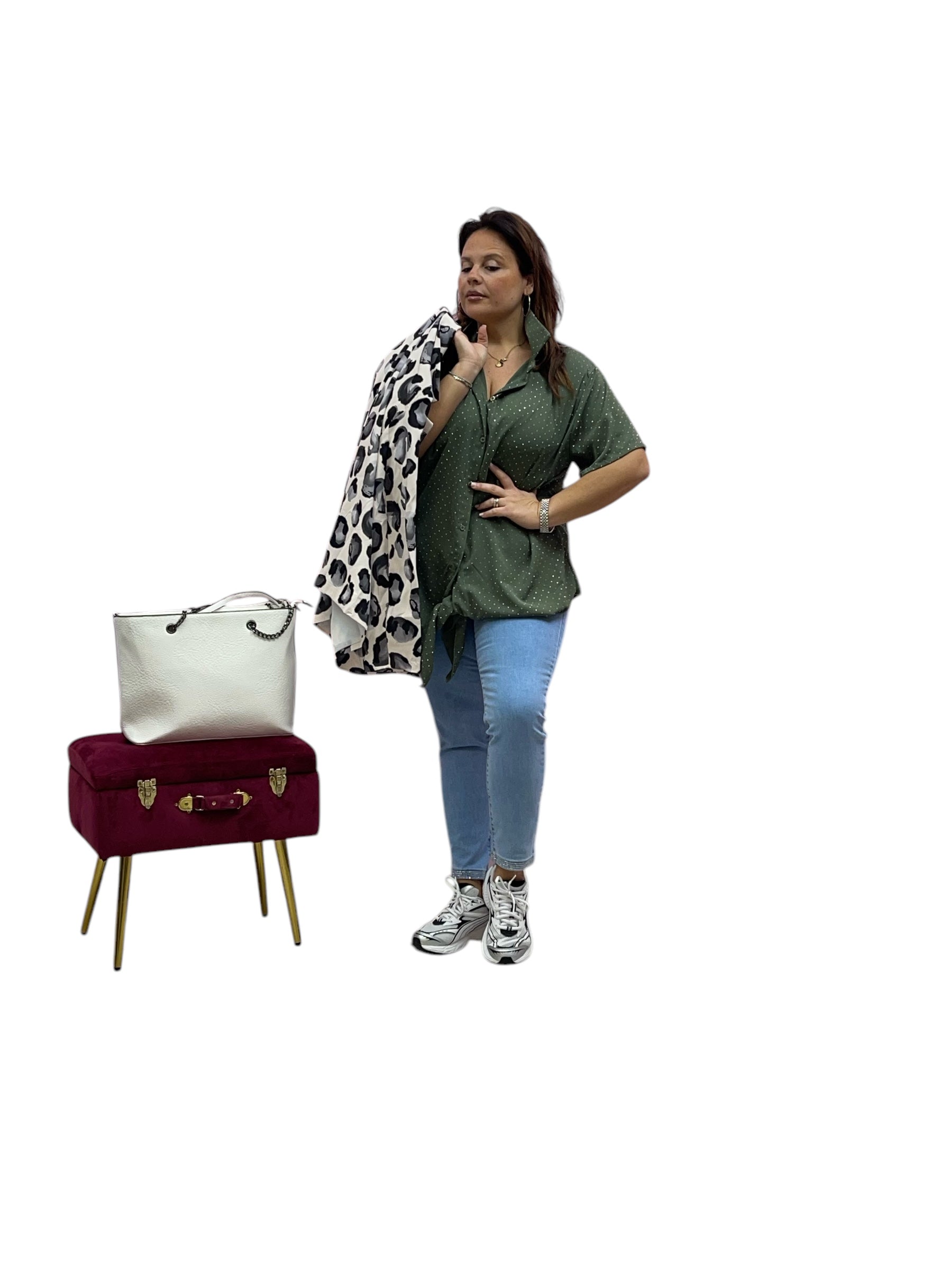 Camicia over mezza manica con brillantini e pizzi per fare nodo