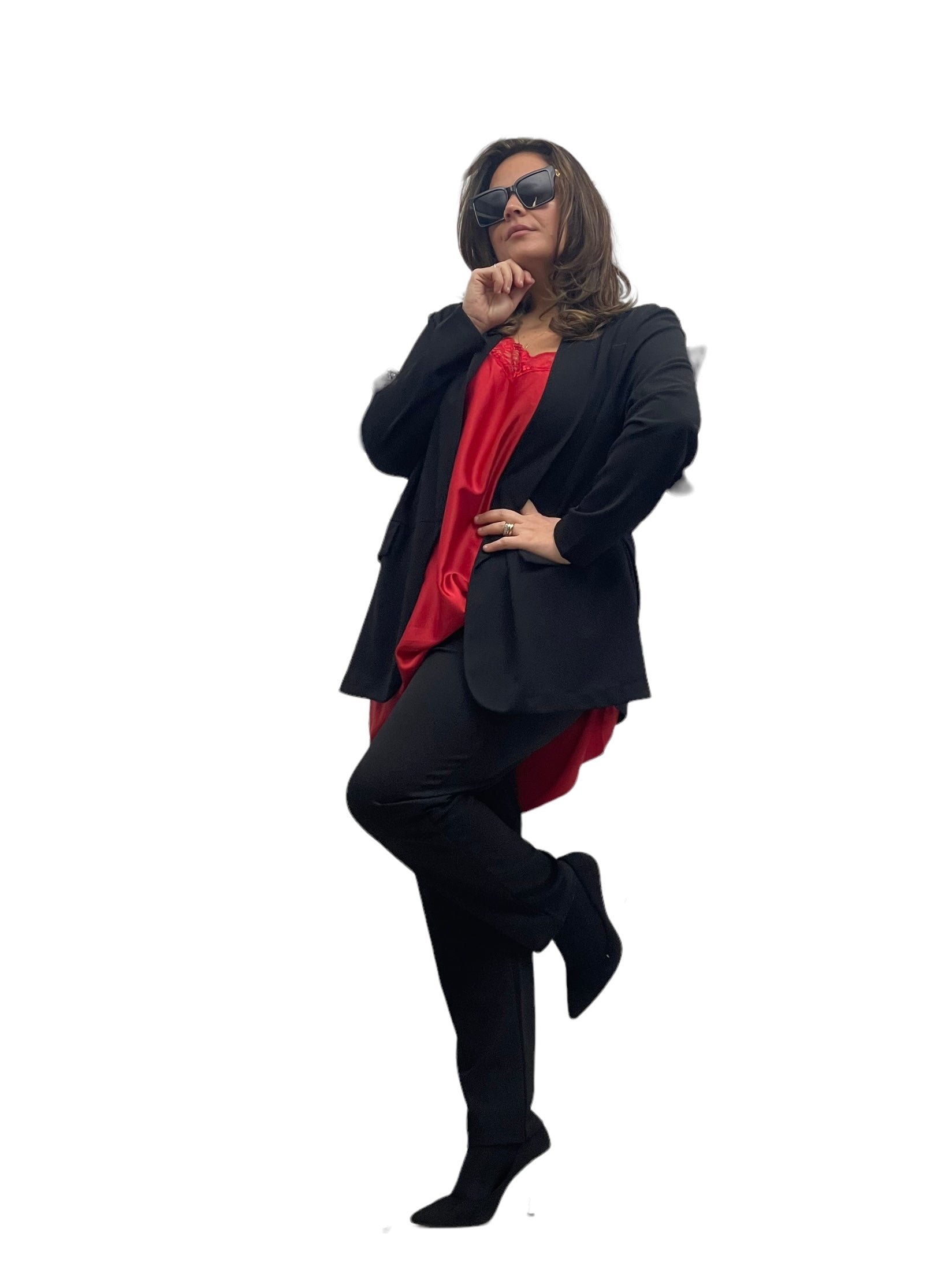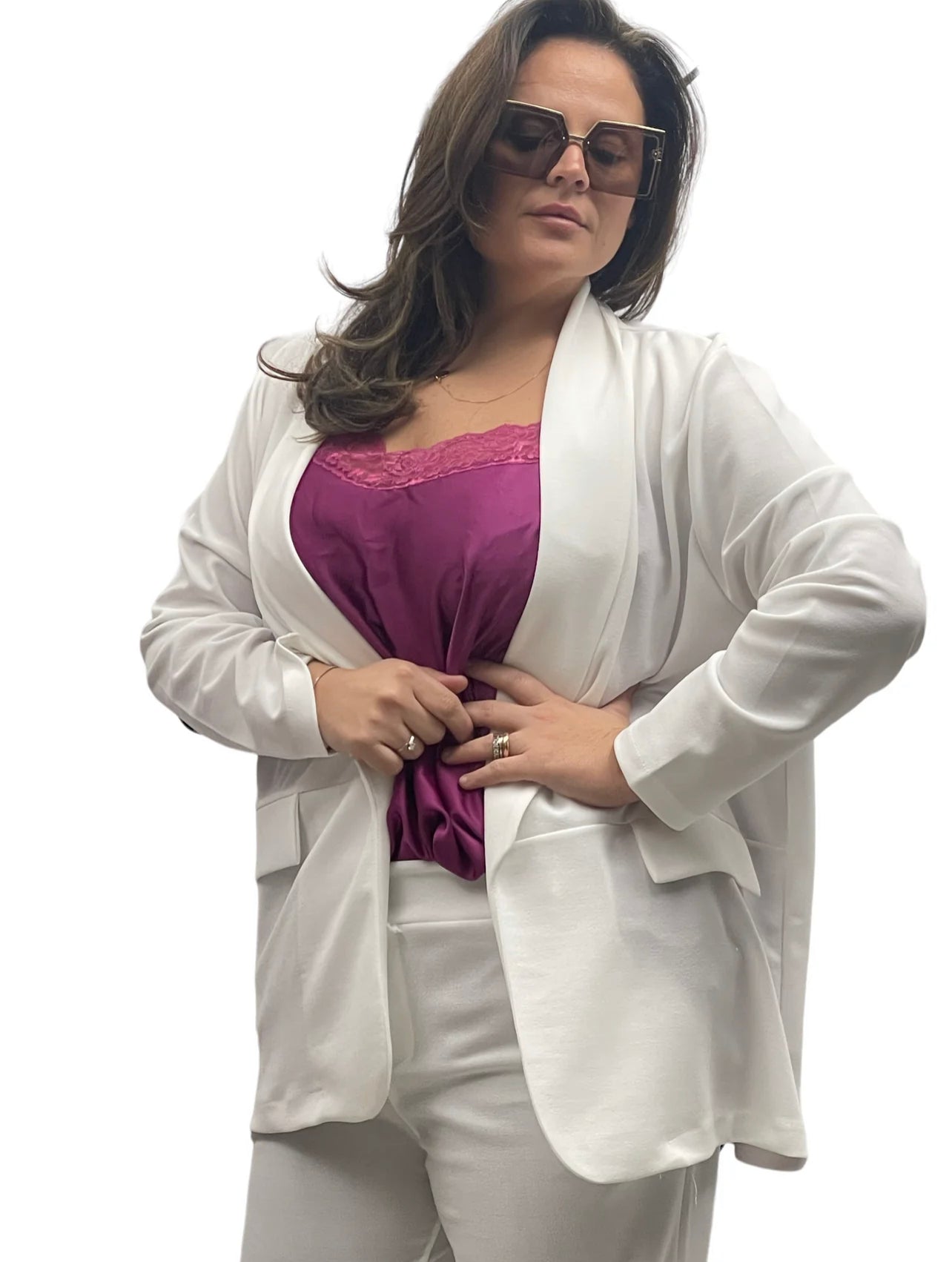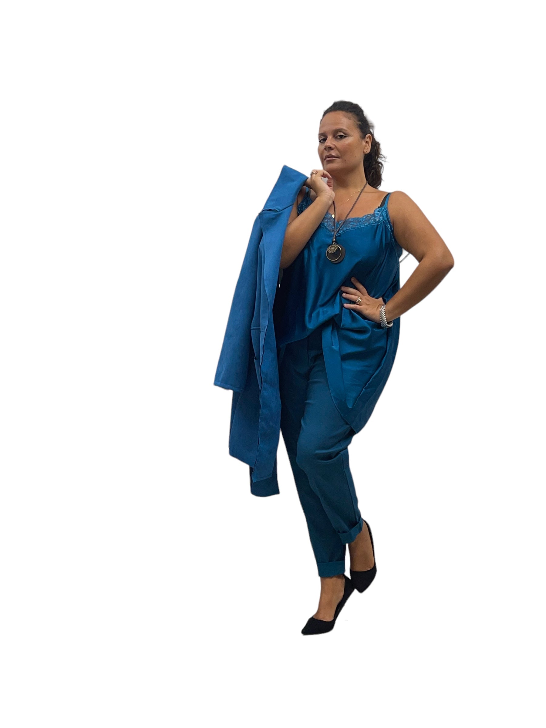Canotta over in raso lunga con fascia di merletto e bretellina