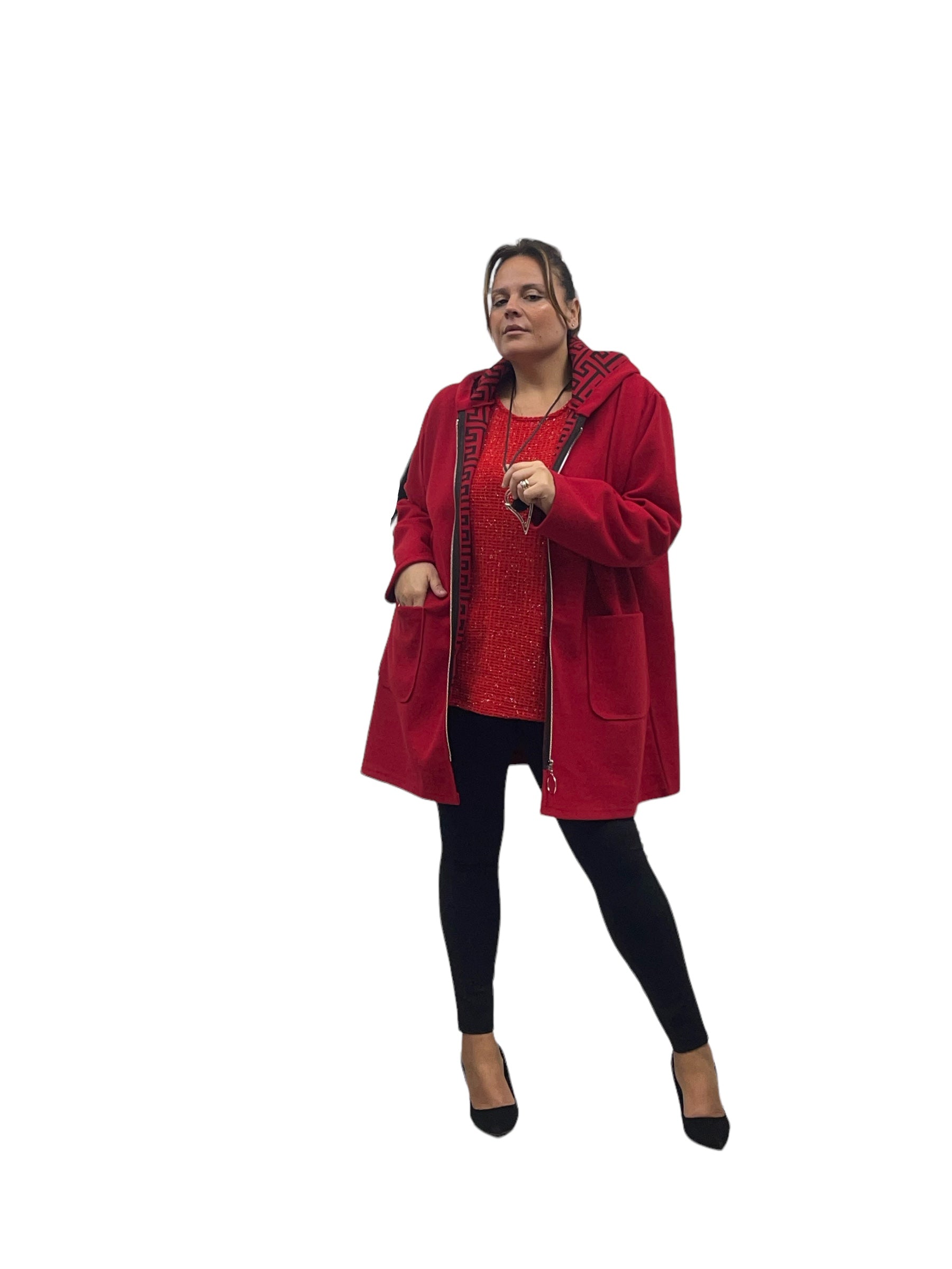 Cappotto over in panno con cappuccio e zip ed interno stampato labirinto