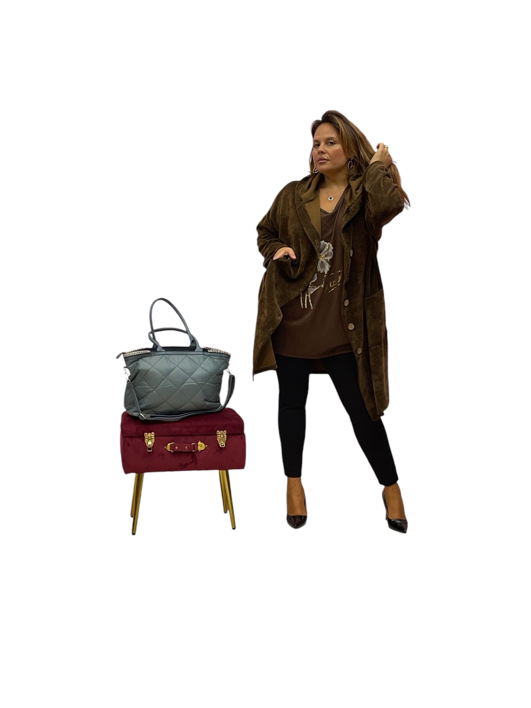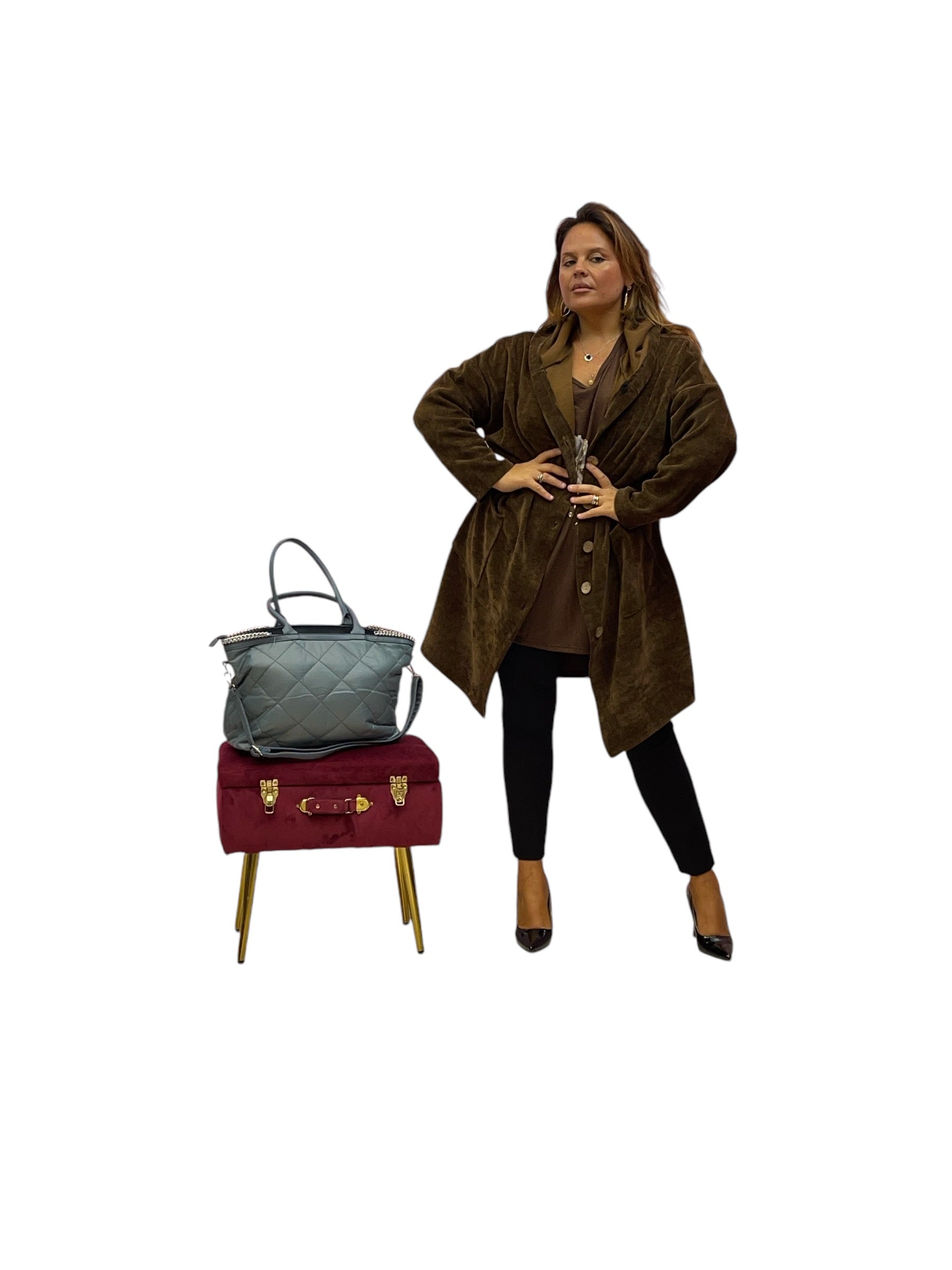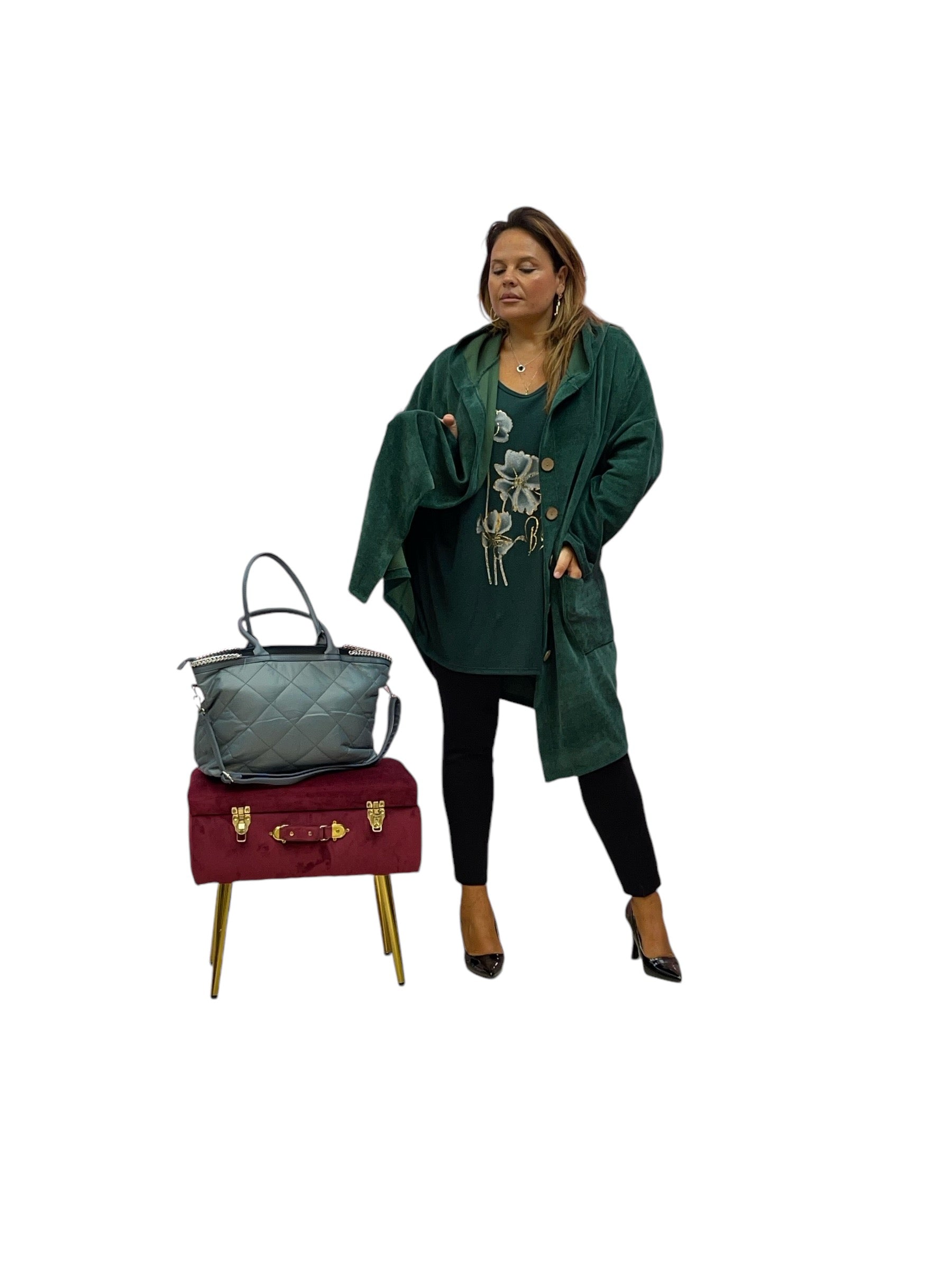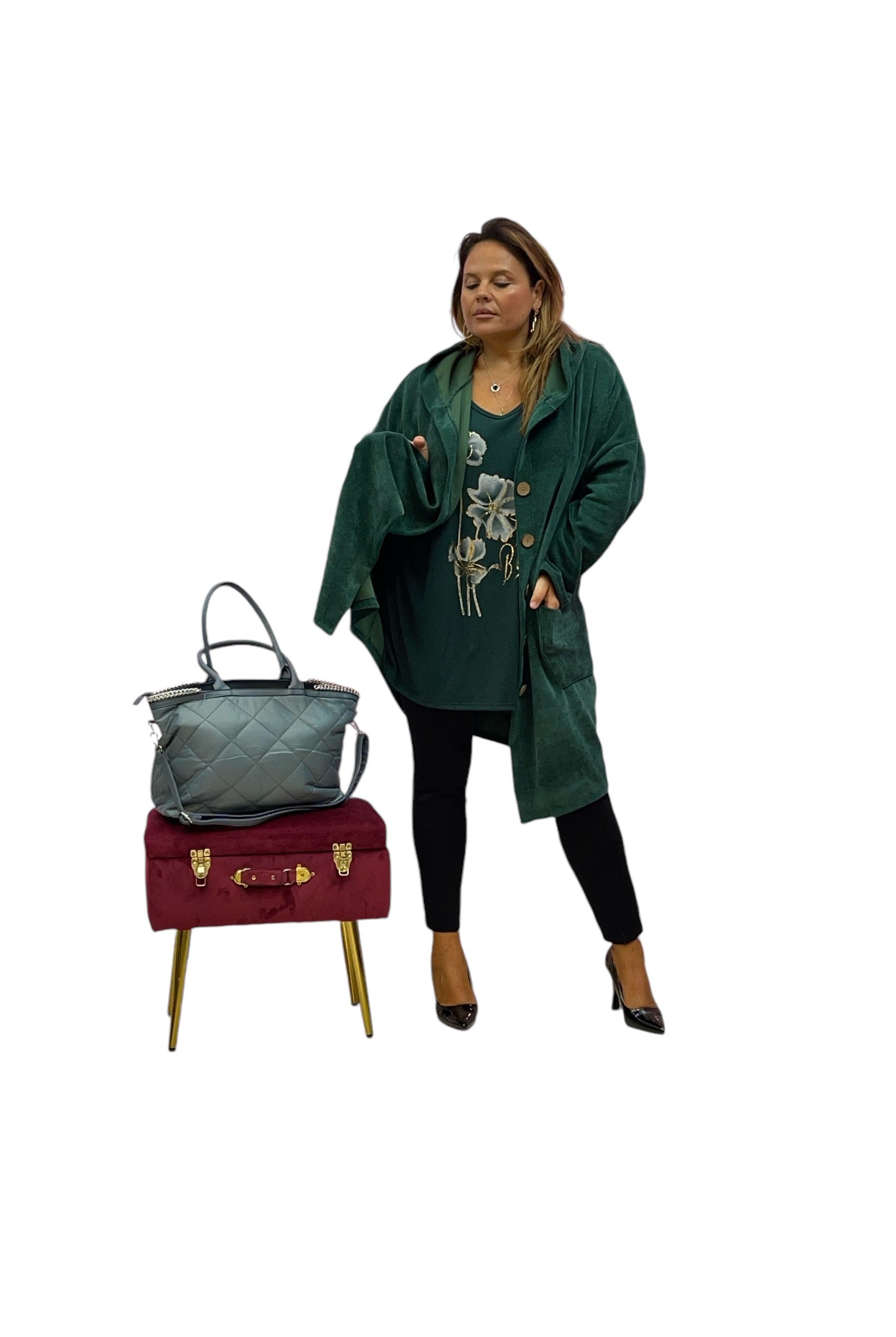 Cappotto over con cappuccio tessuto a costine e tasconi