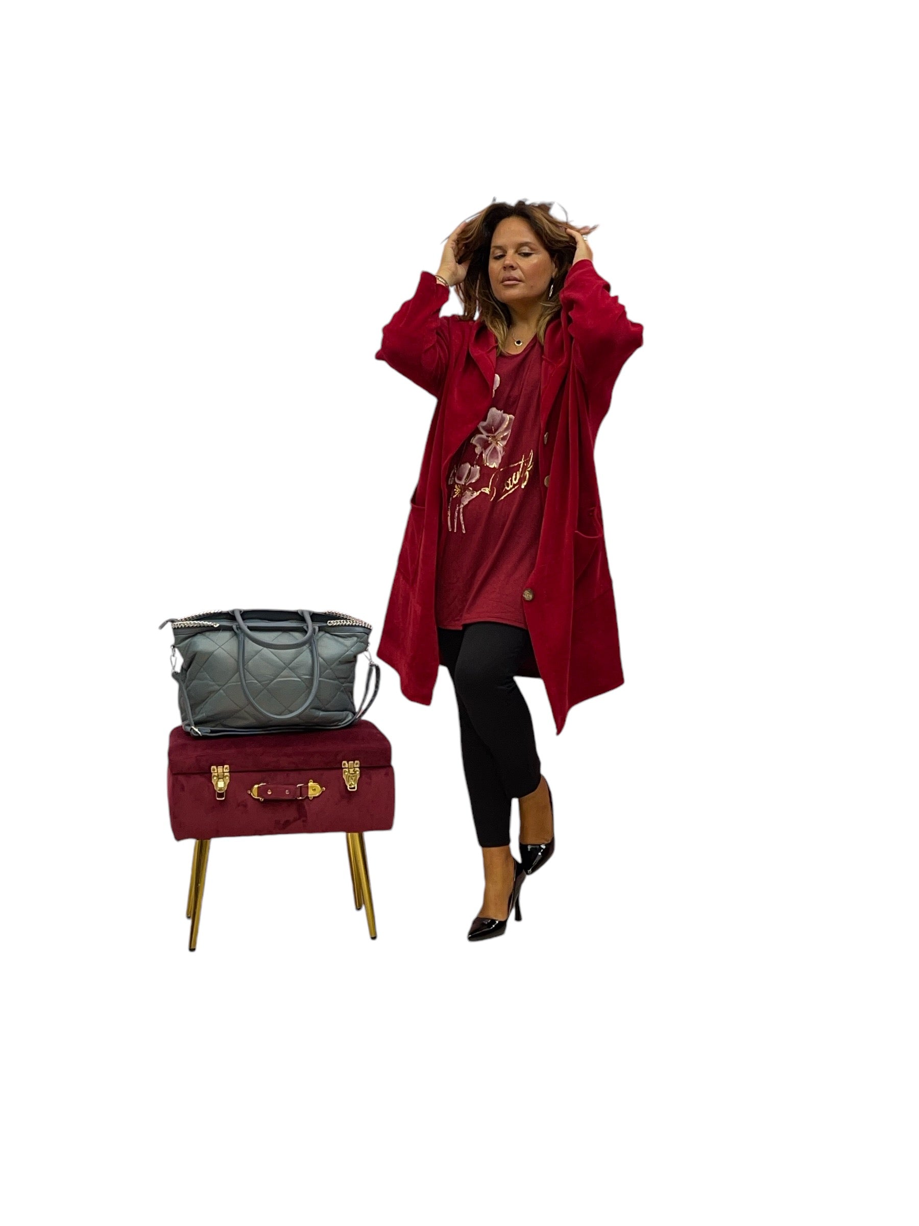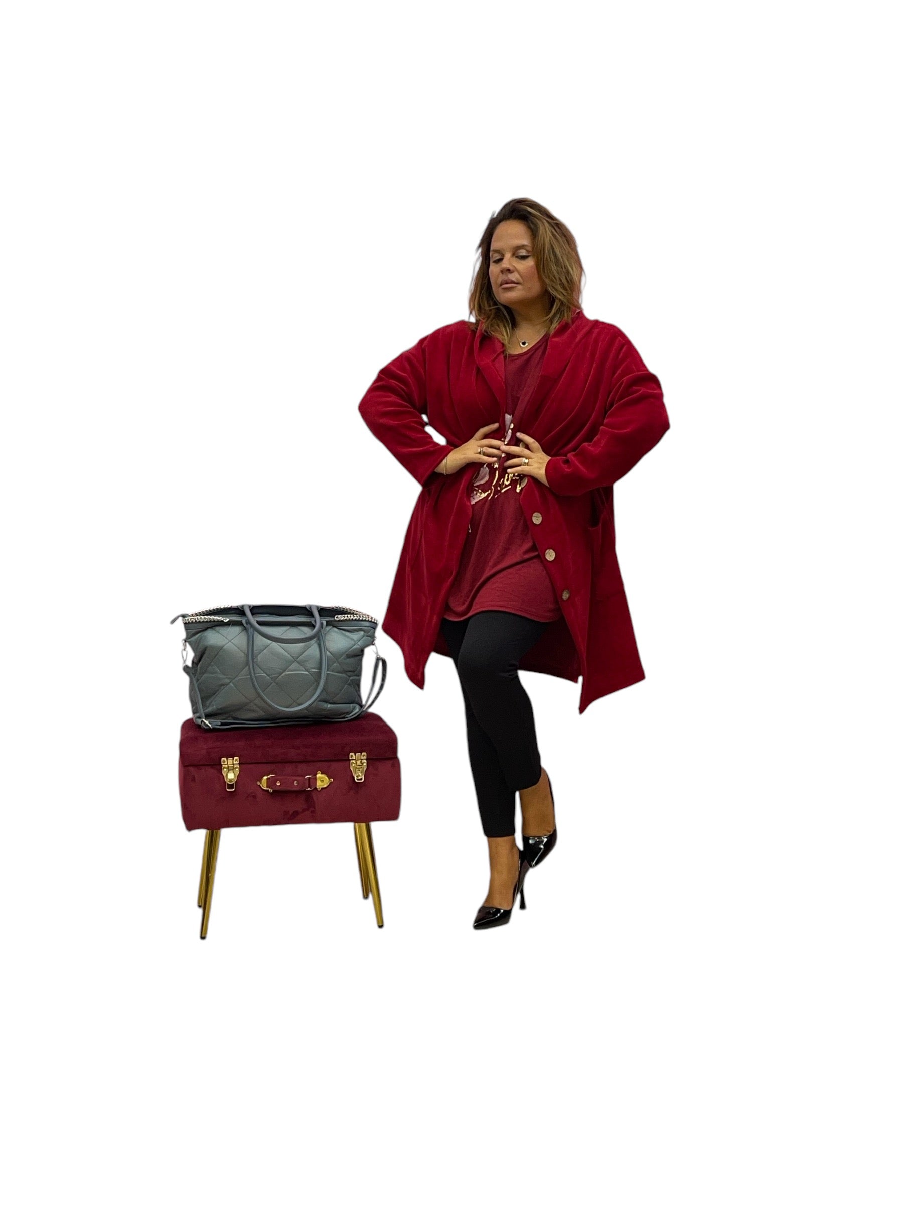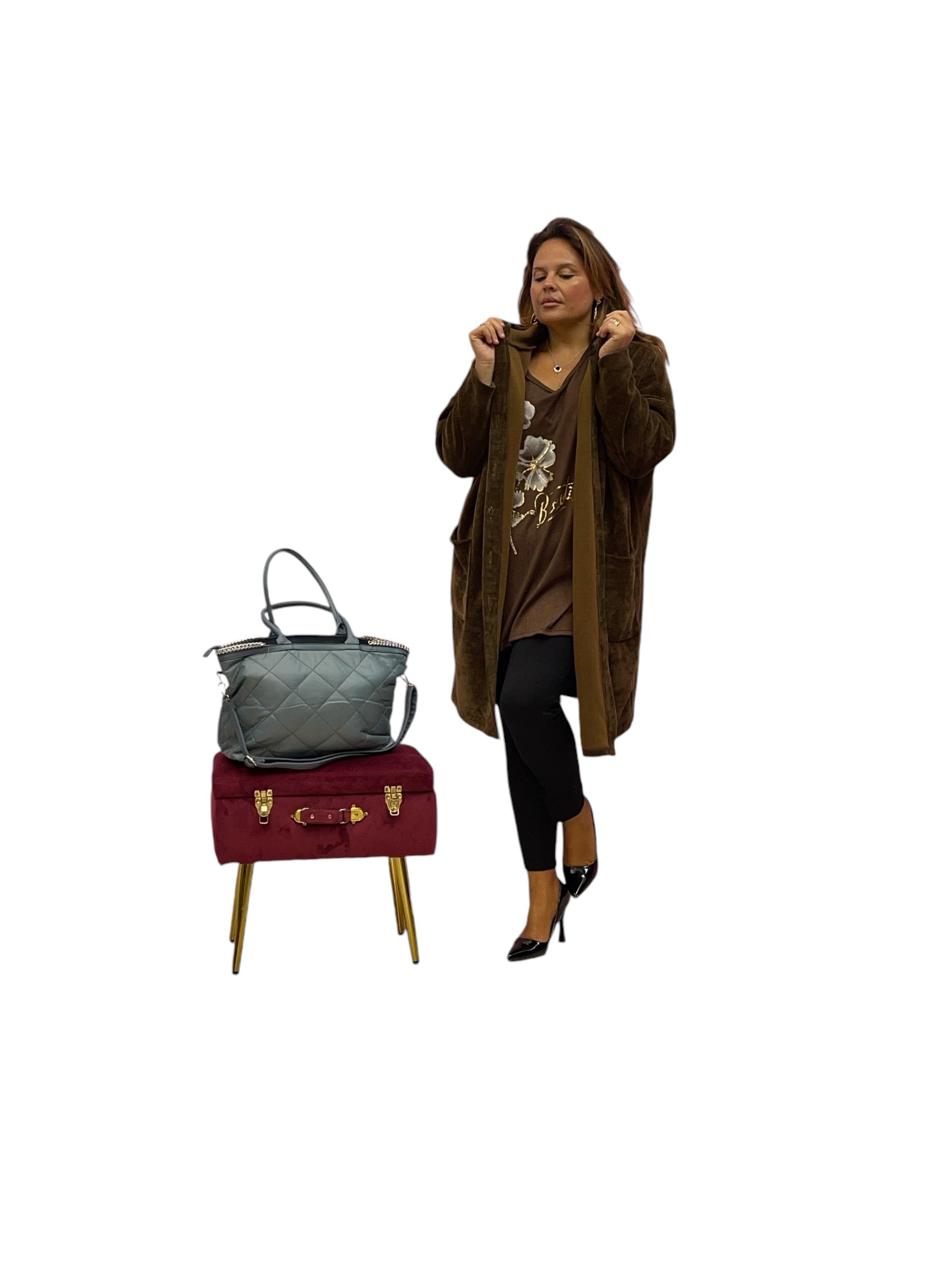 Cappotto over con cappuccio tessuto a costine e tasconi
