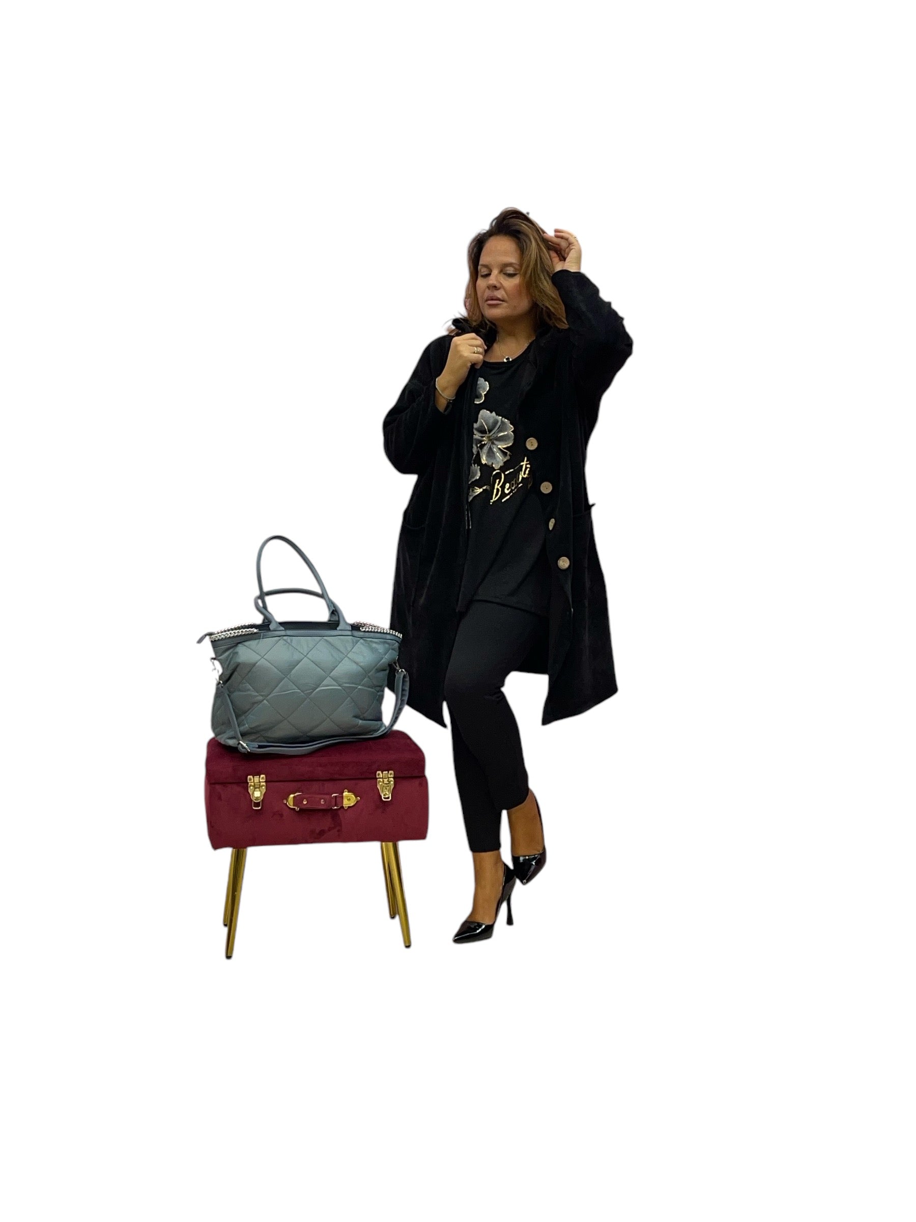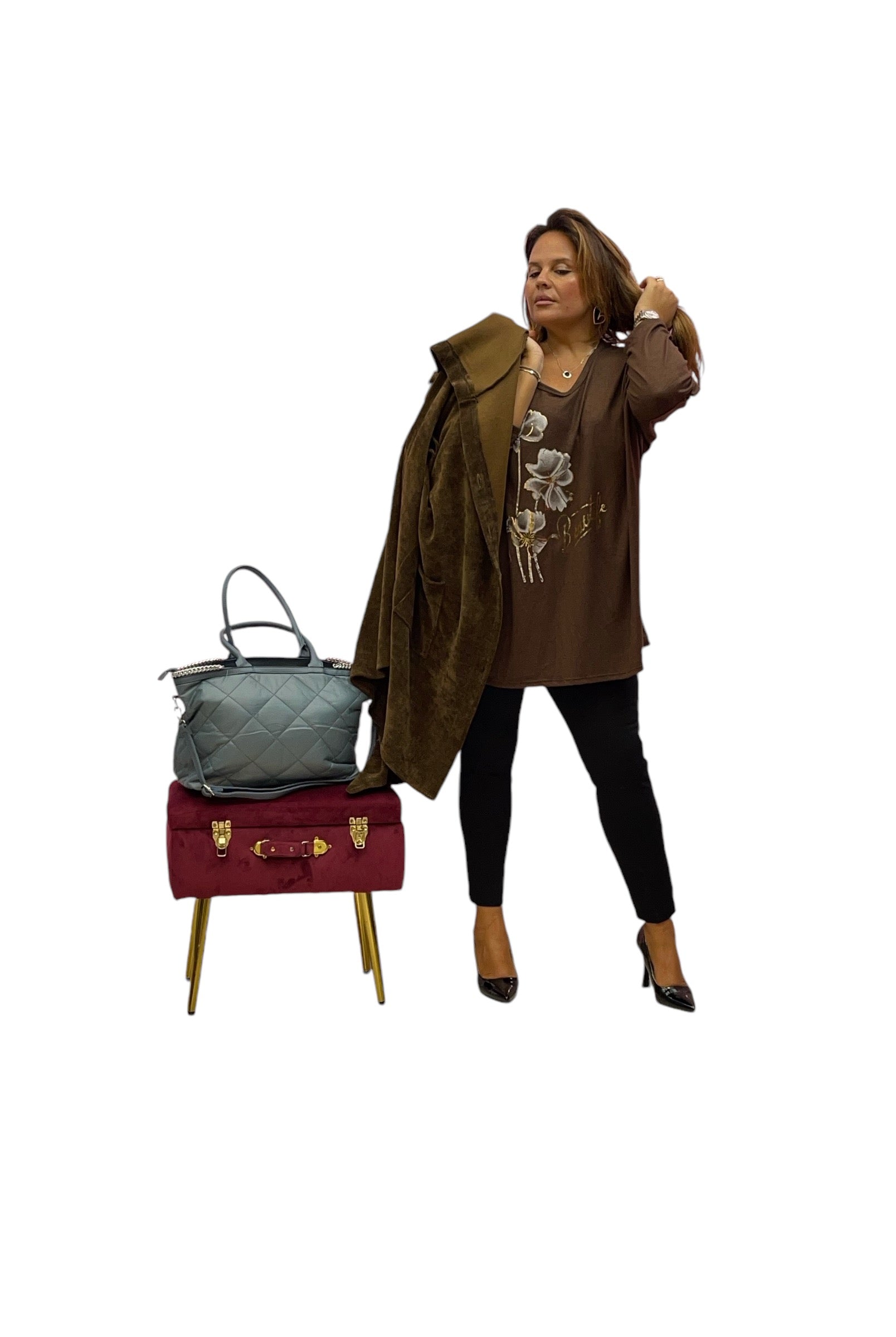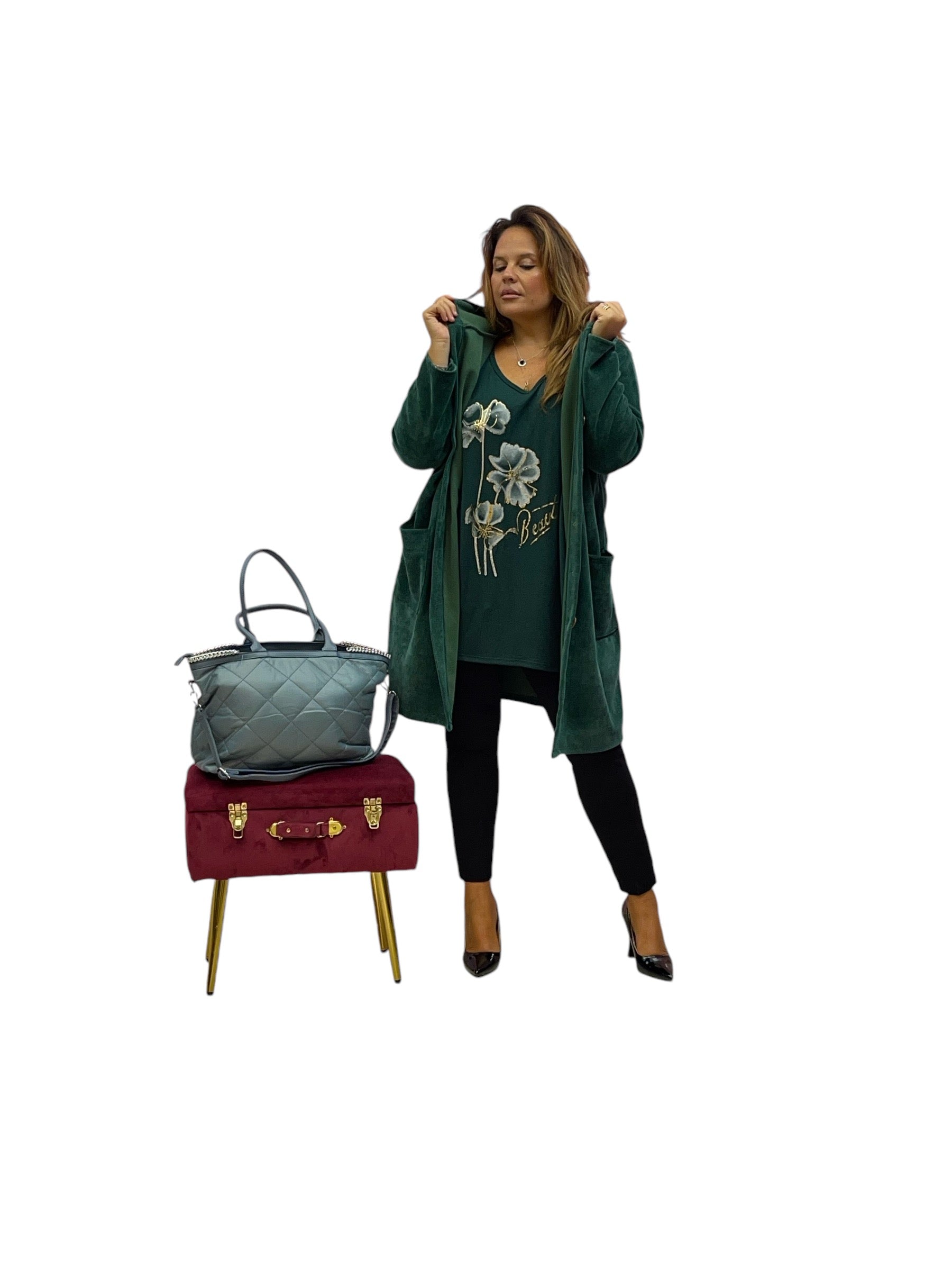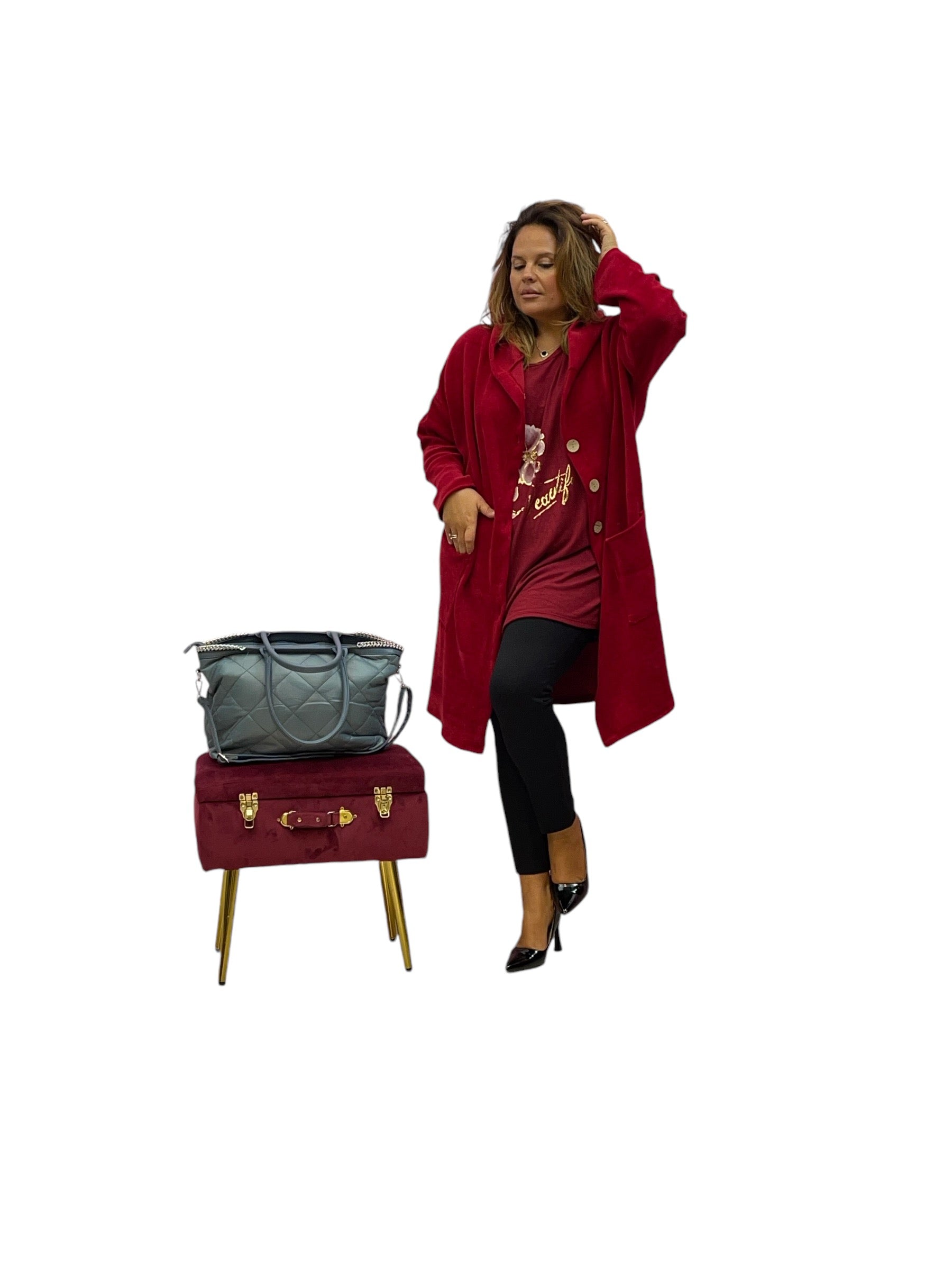 Cappotto over con cappuccio tessuto a costine e tasconi