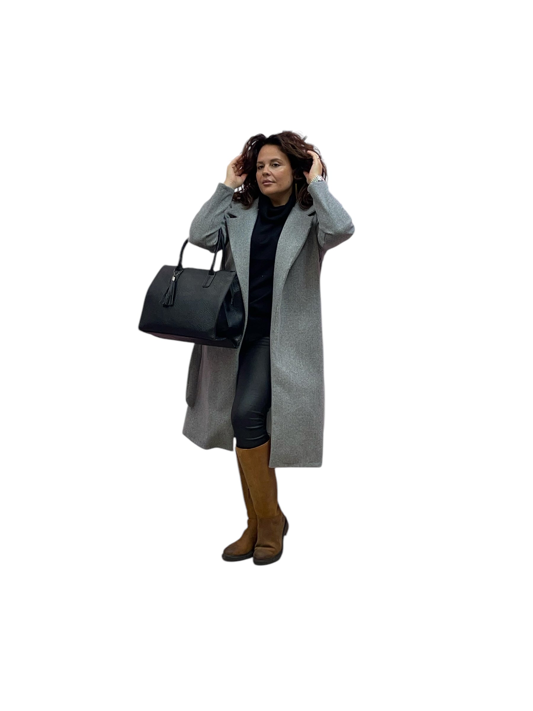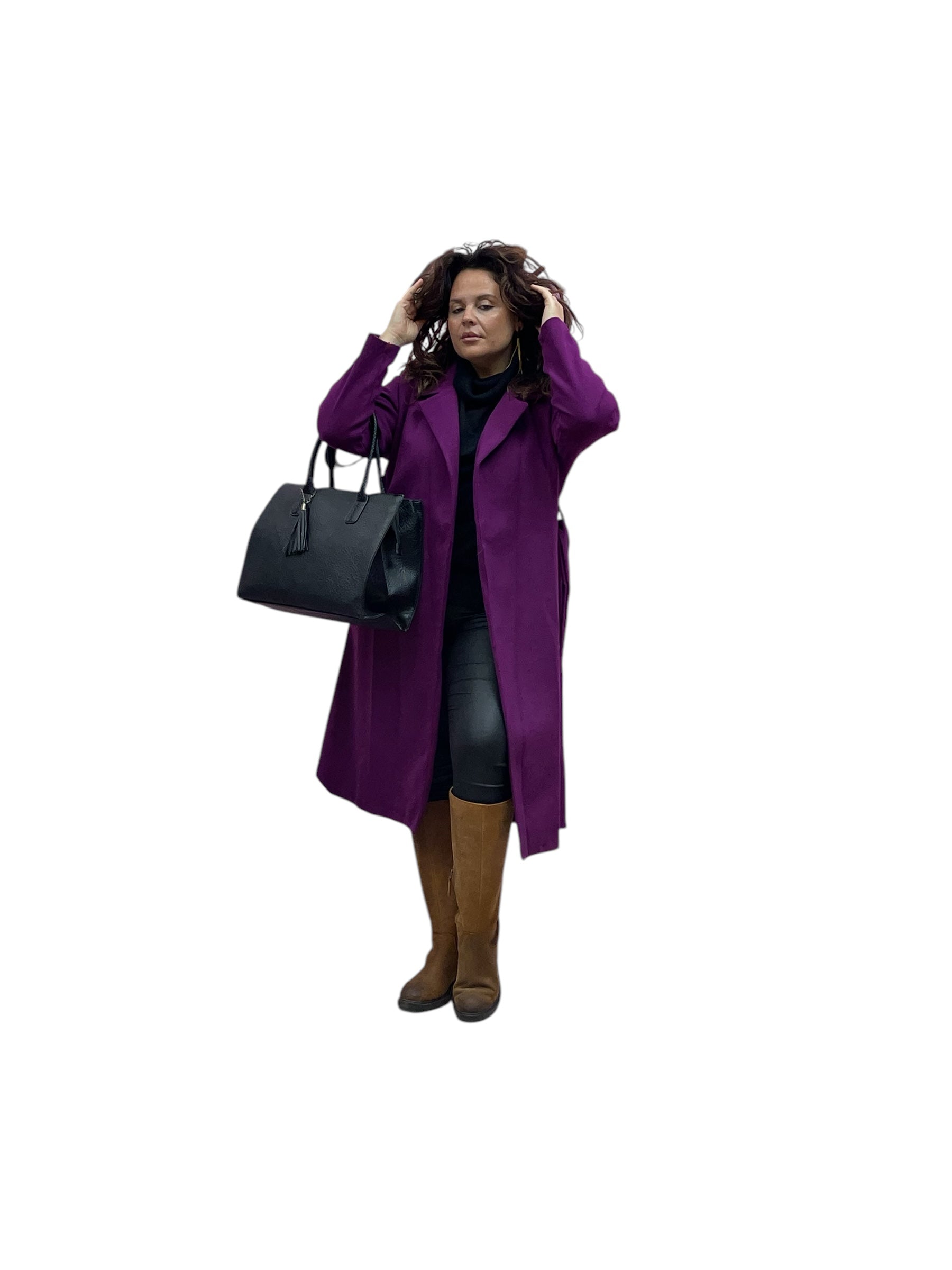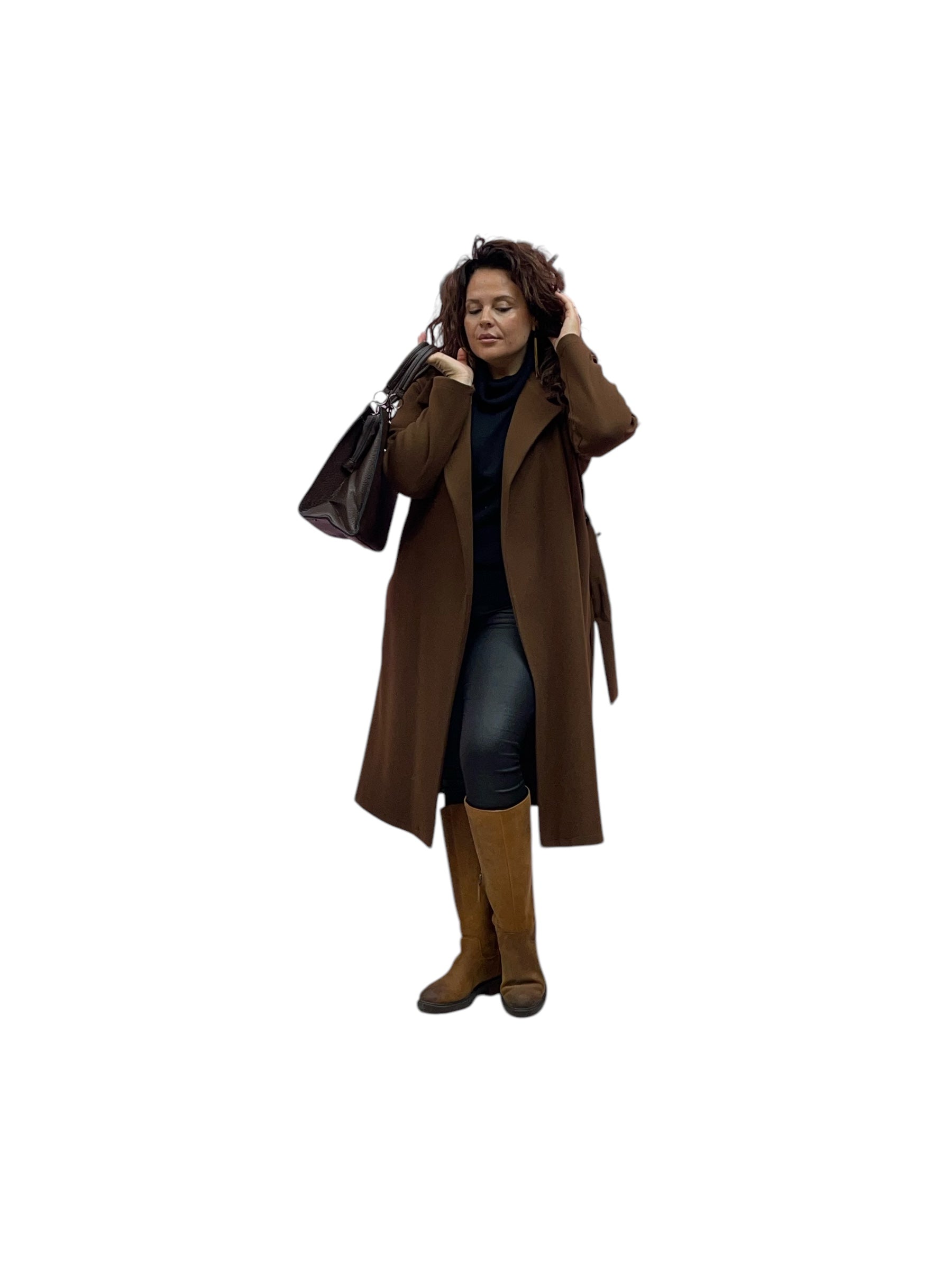 Cappotto lungo in panno con cintura
