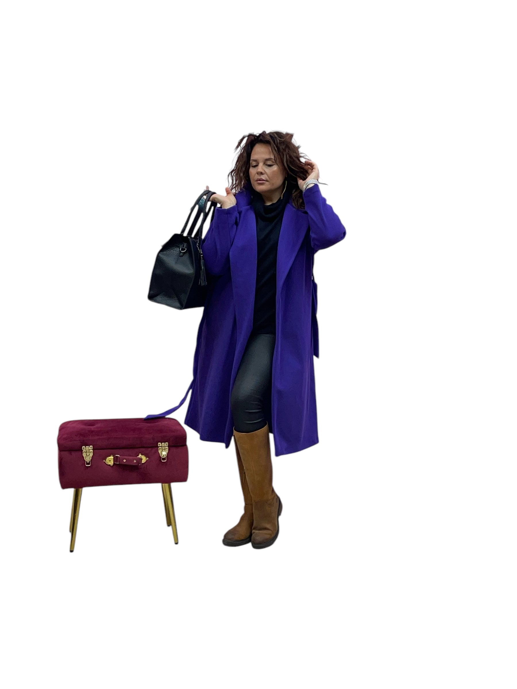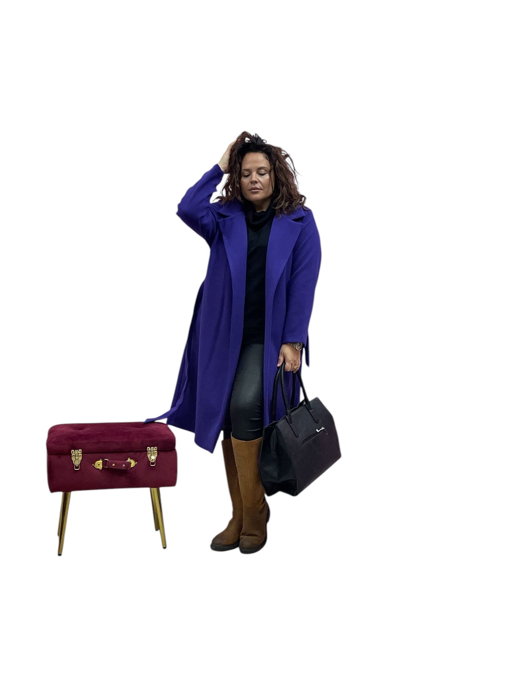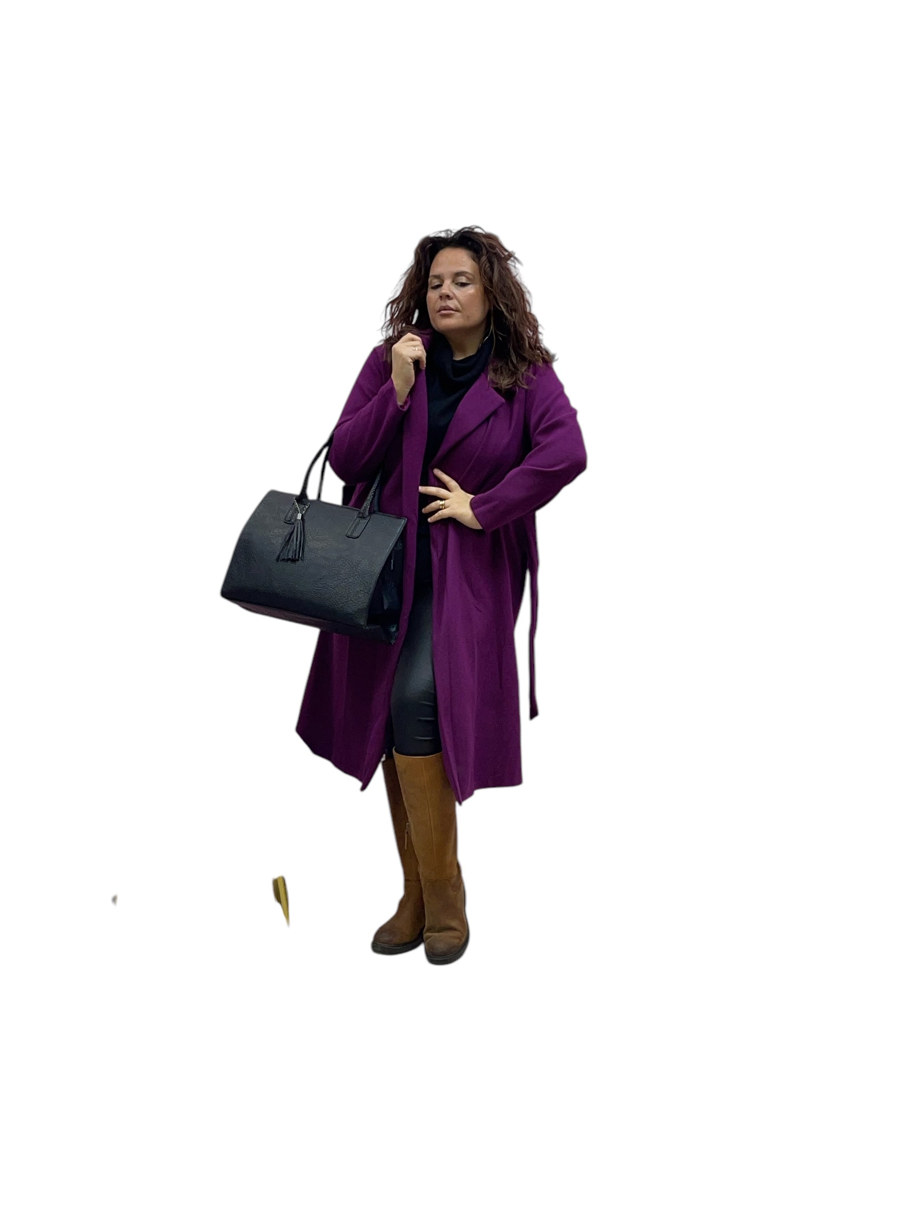 Cappotto lungo in panno con cintura