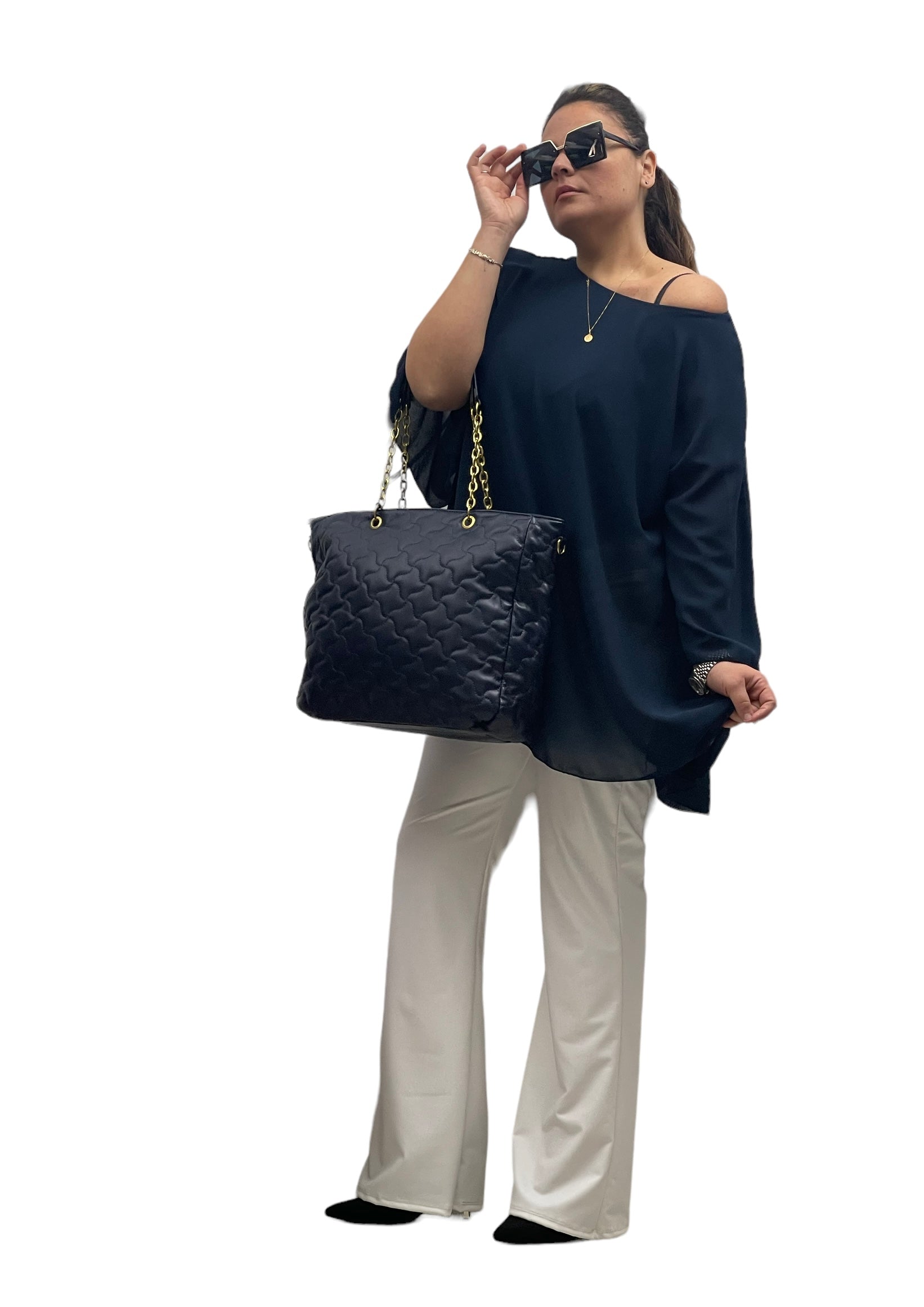 Casacca lunga over in georgette con manica a campana