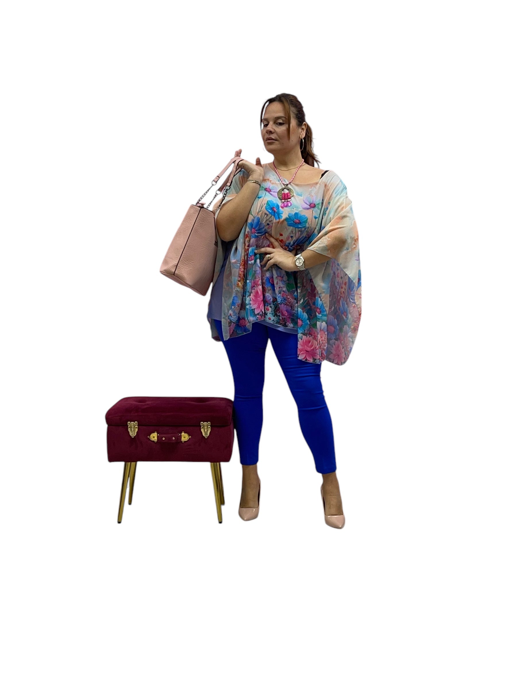Casacca over in georgette fantasia modello fazzoletto con top in maglina cucito