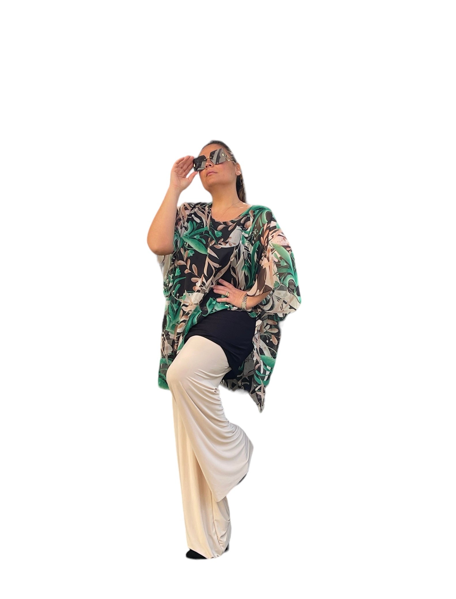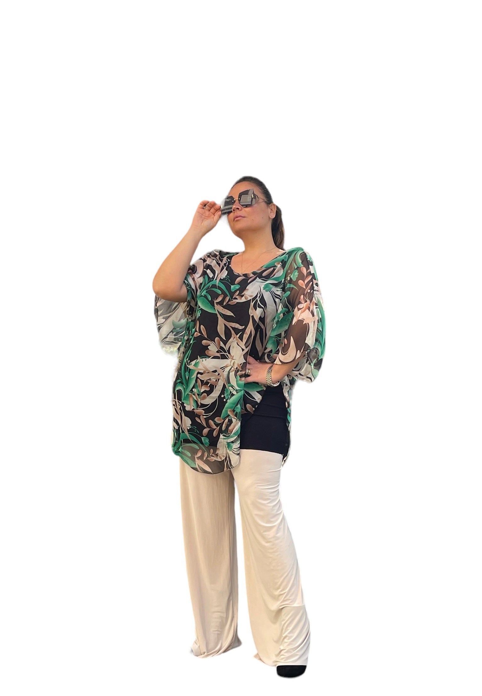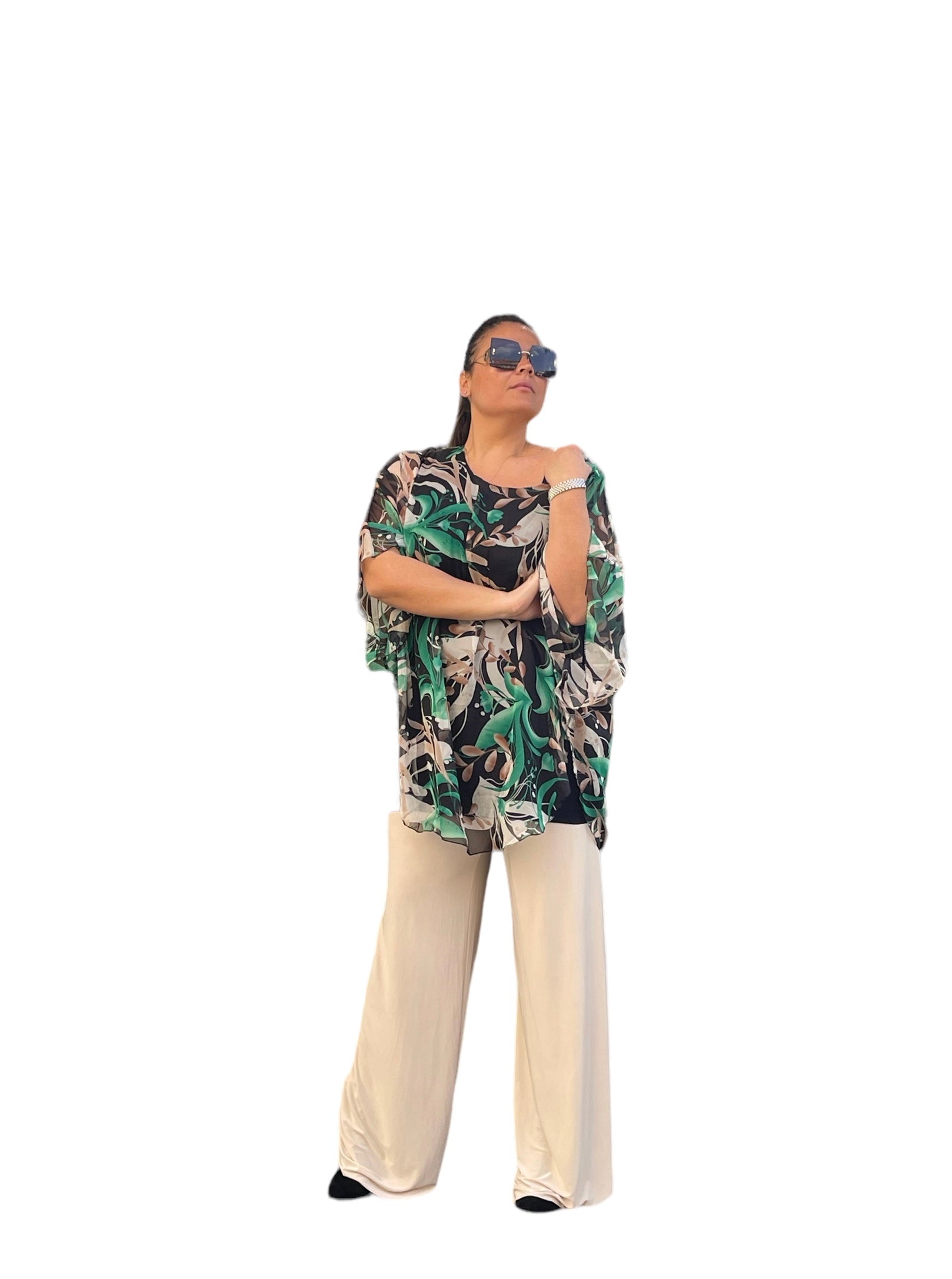 Casacca in georgette over fantasia morbida con top lungo in poliviscosa