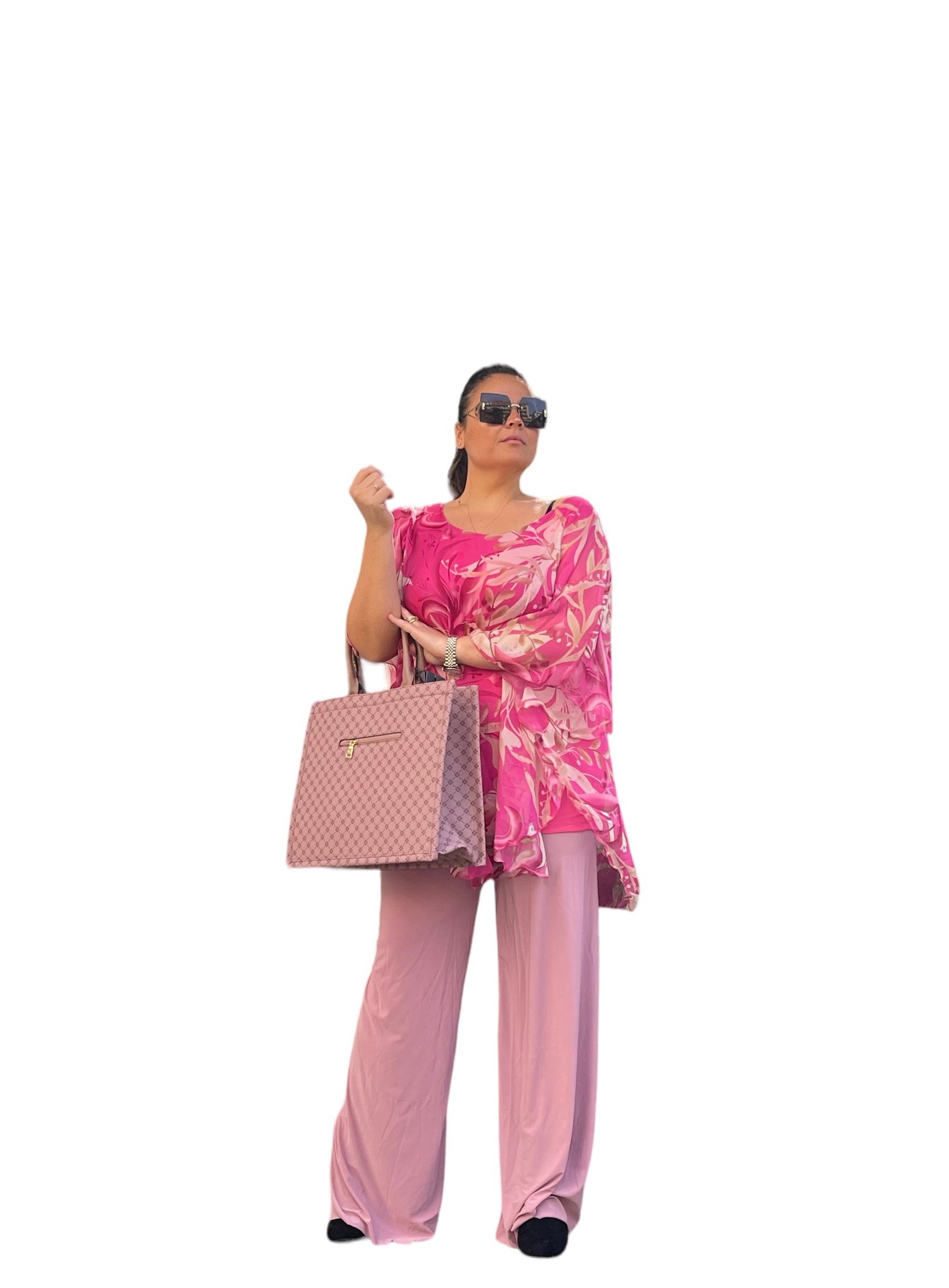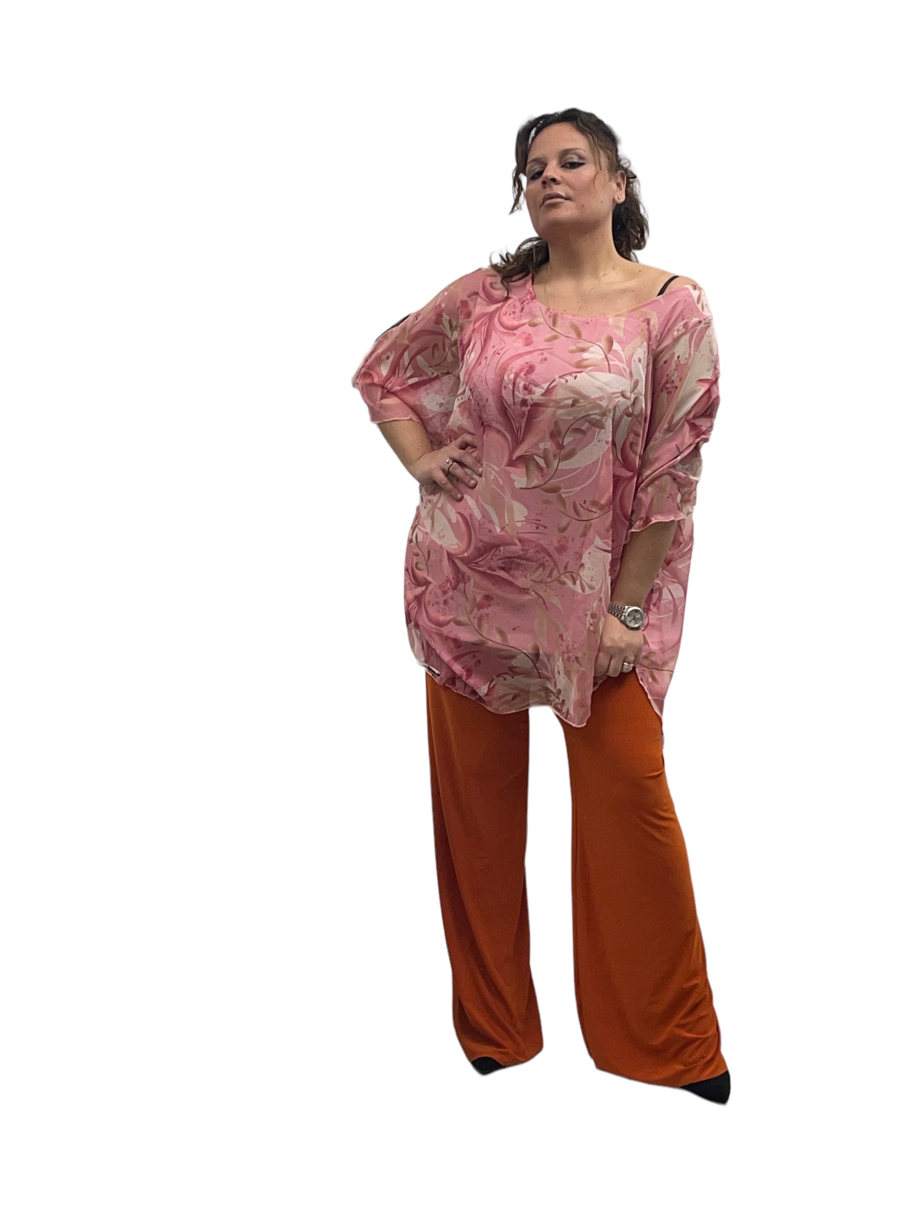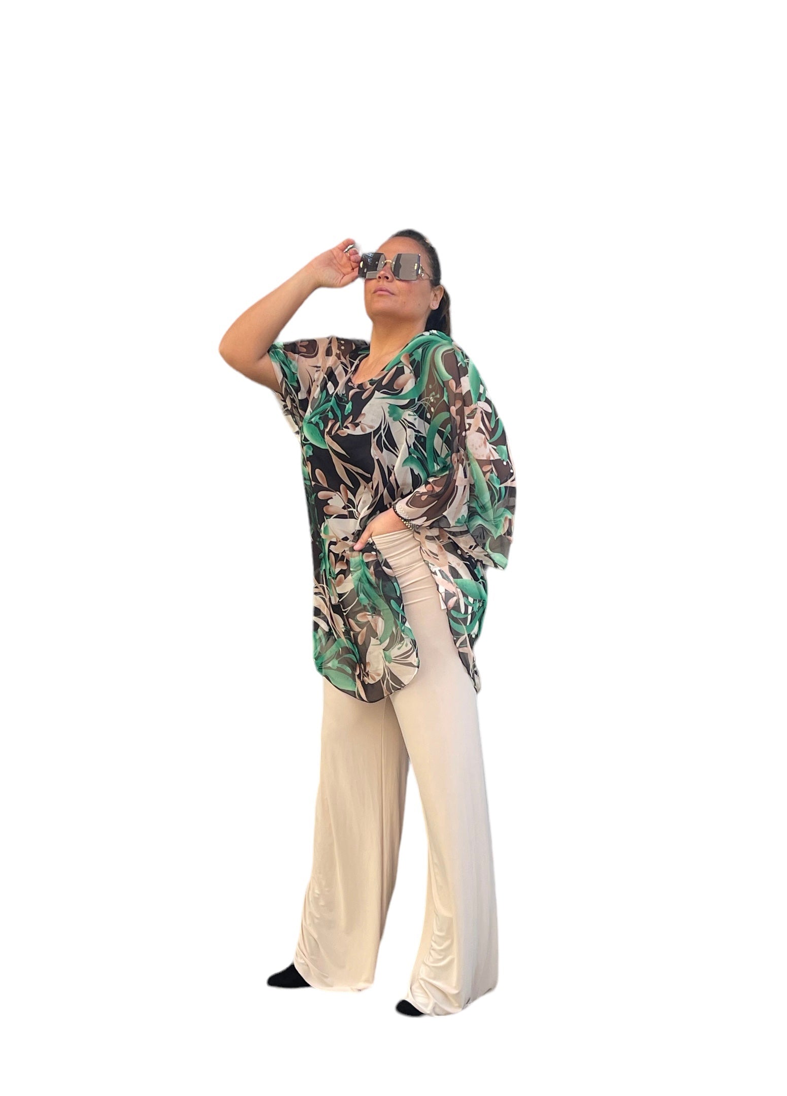 Casacca in georgette over fantasia morbida con top lungo in poliviscosa