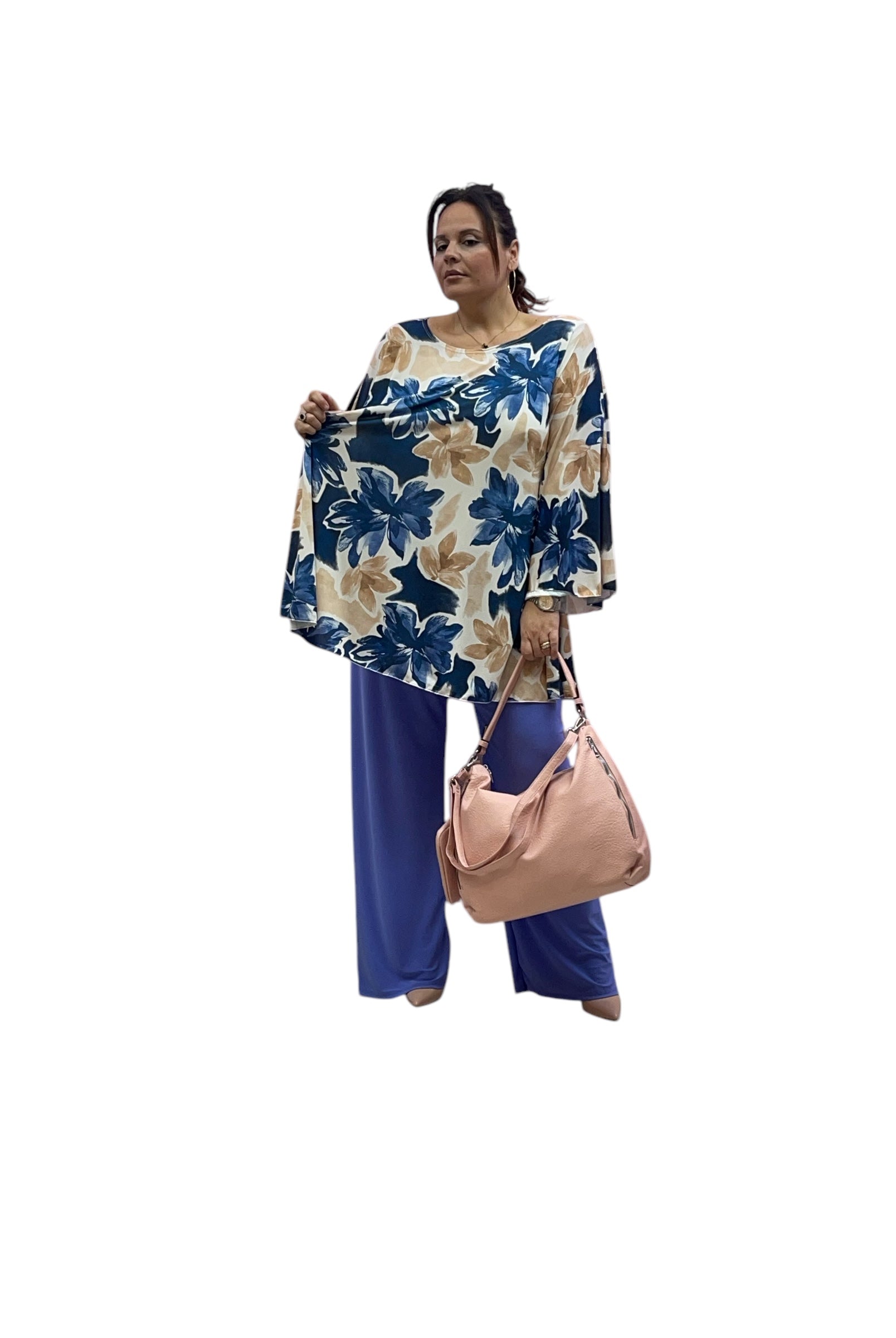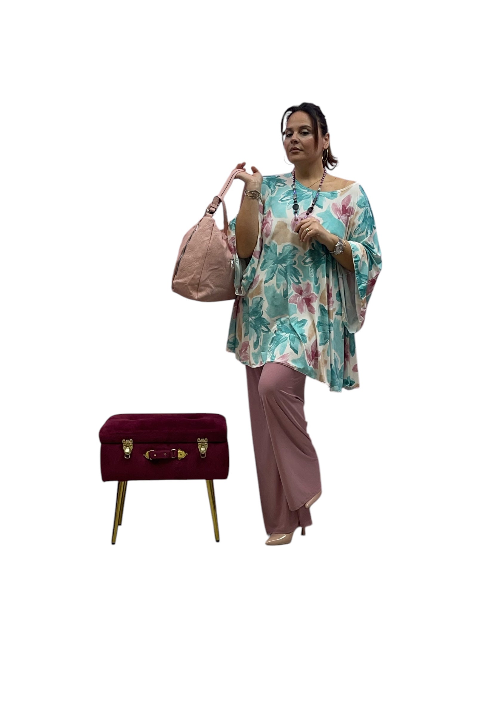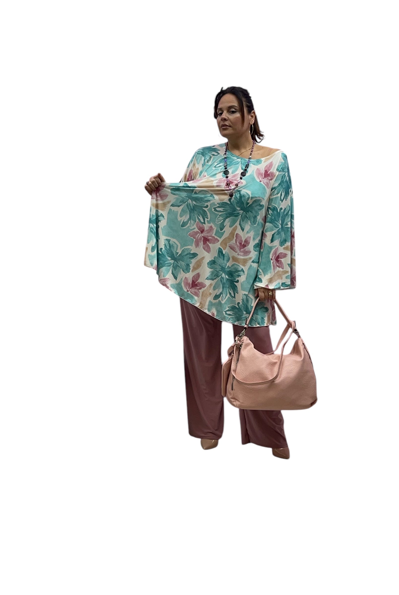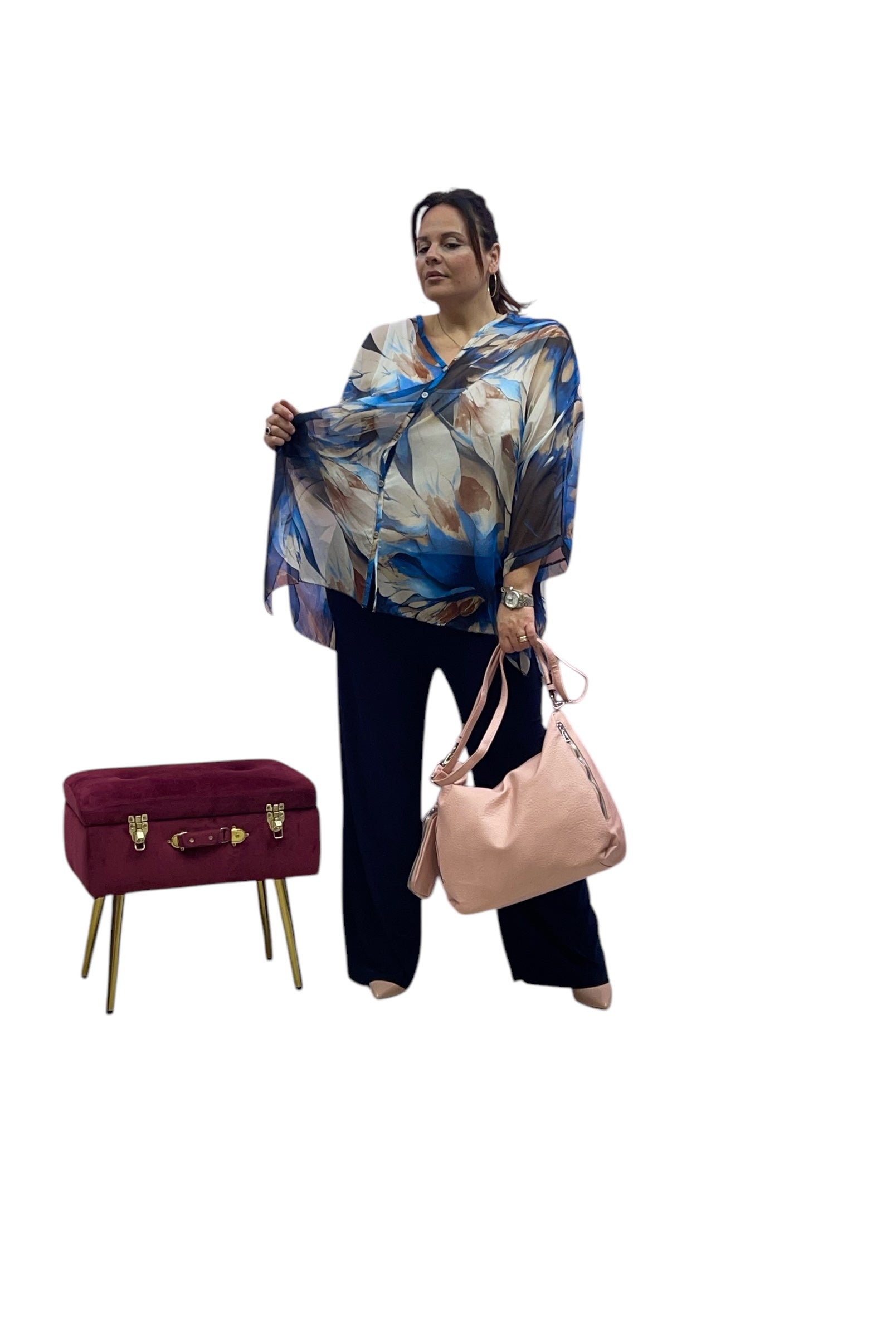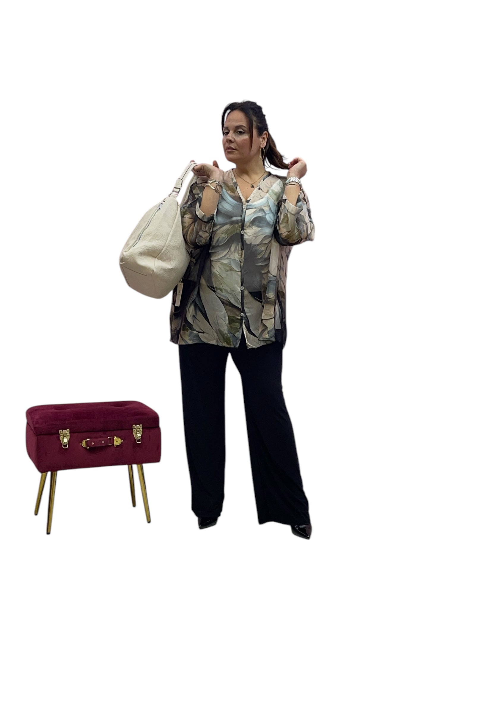 Casacca over in georgette fantasia con top in maglina cucito modello fazzoletto