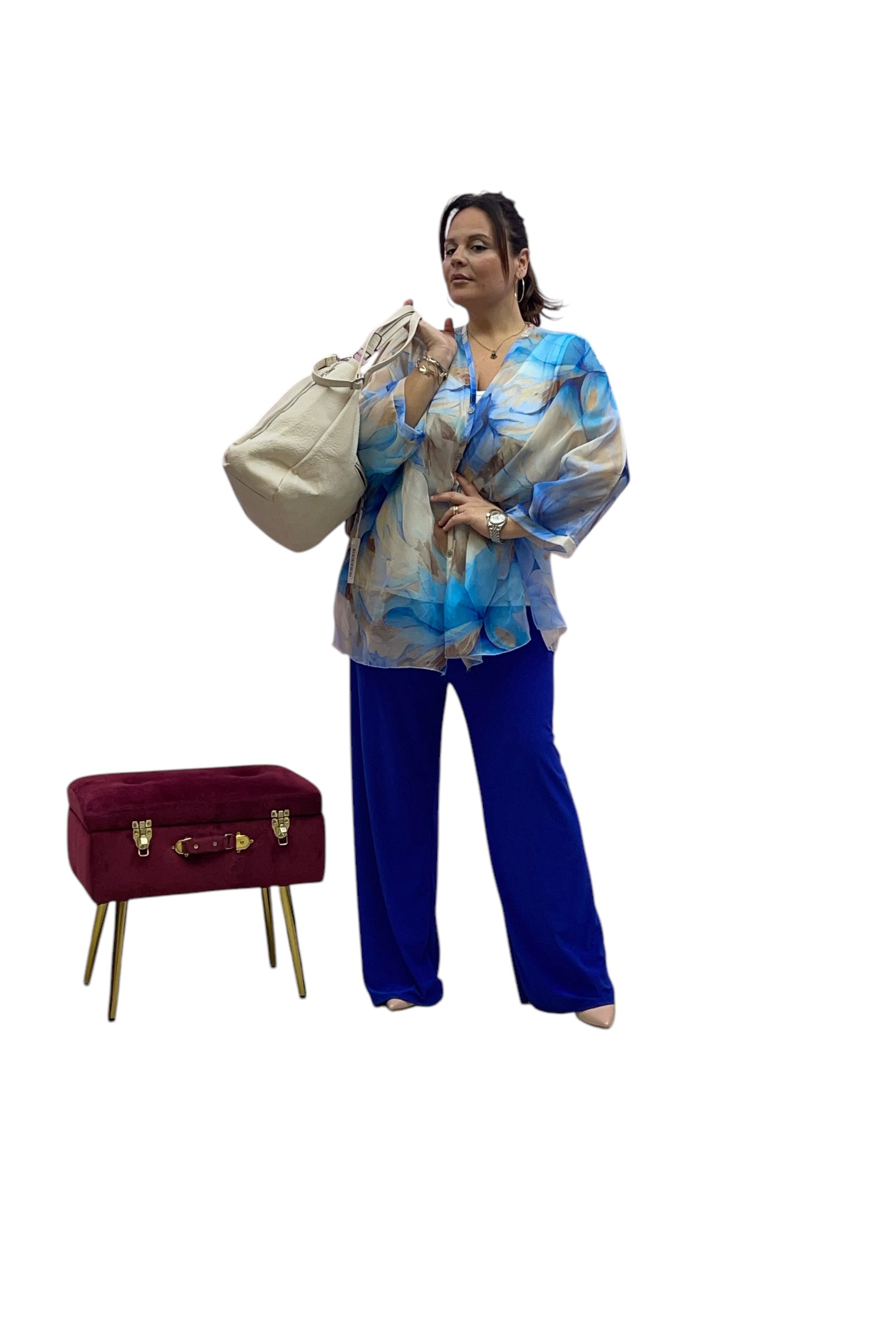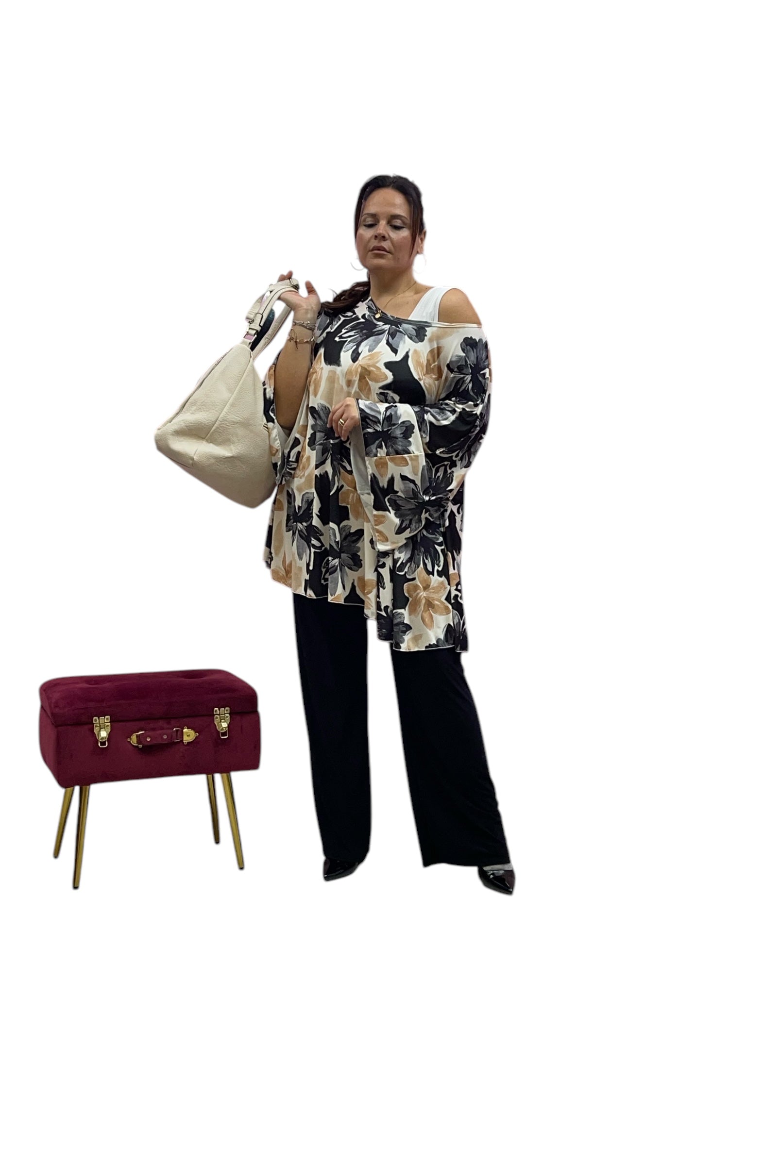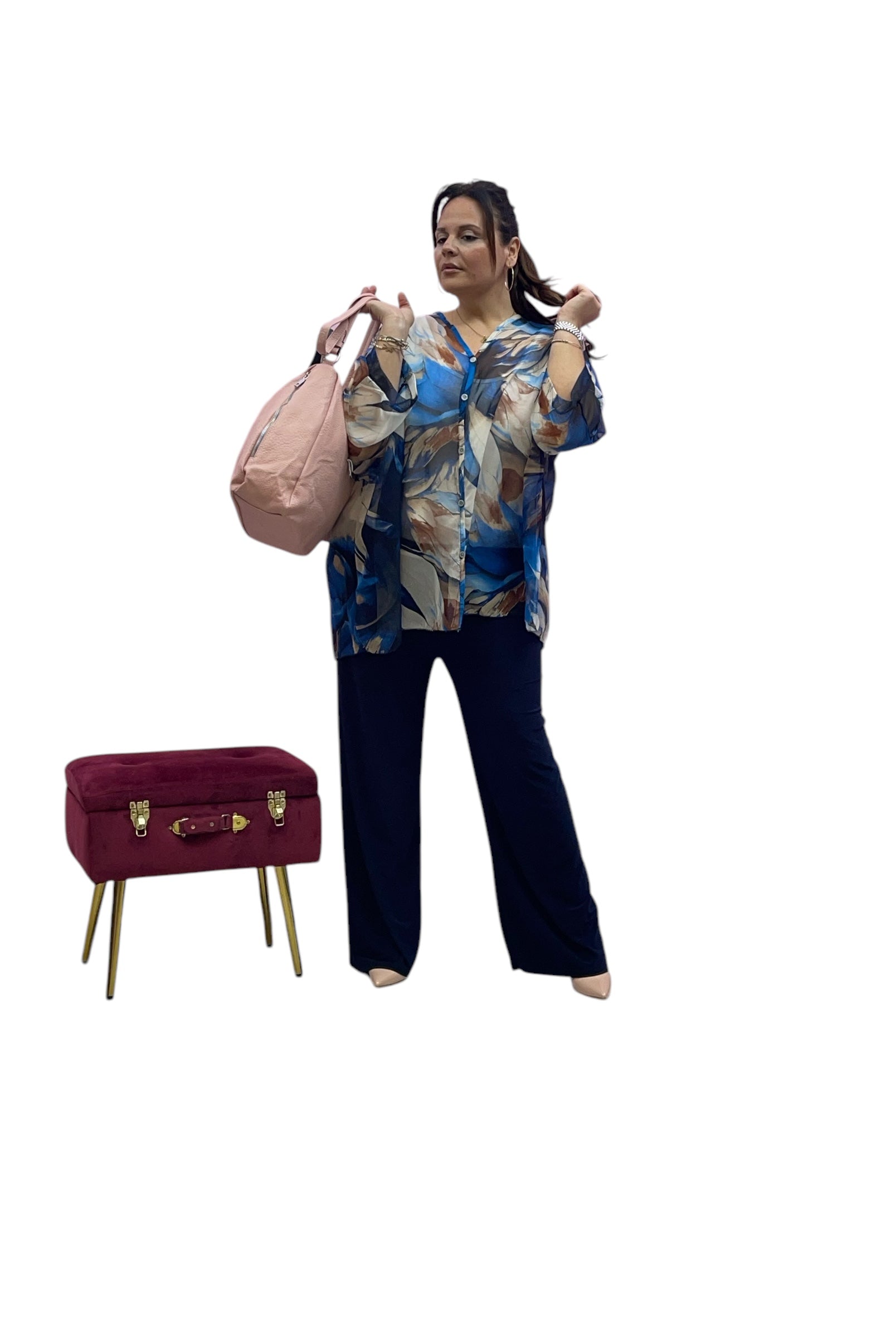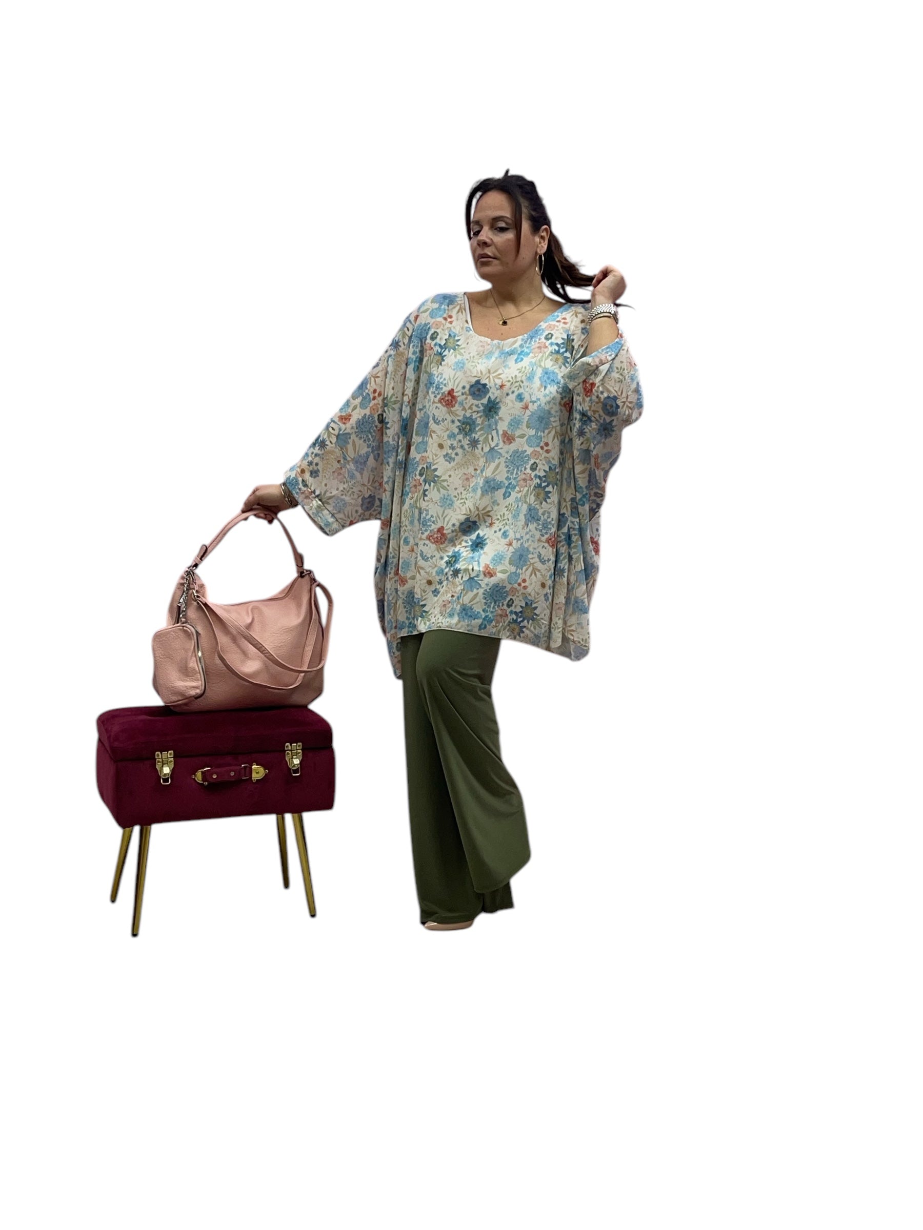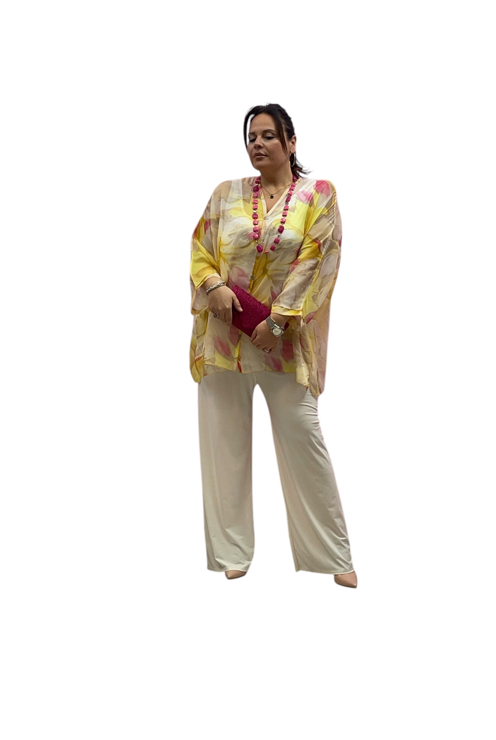 Casacca over in georgette fantasia con top in maglina cucito modello fazzoletto