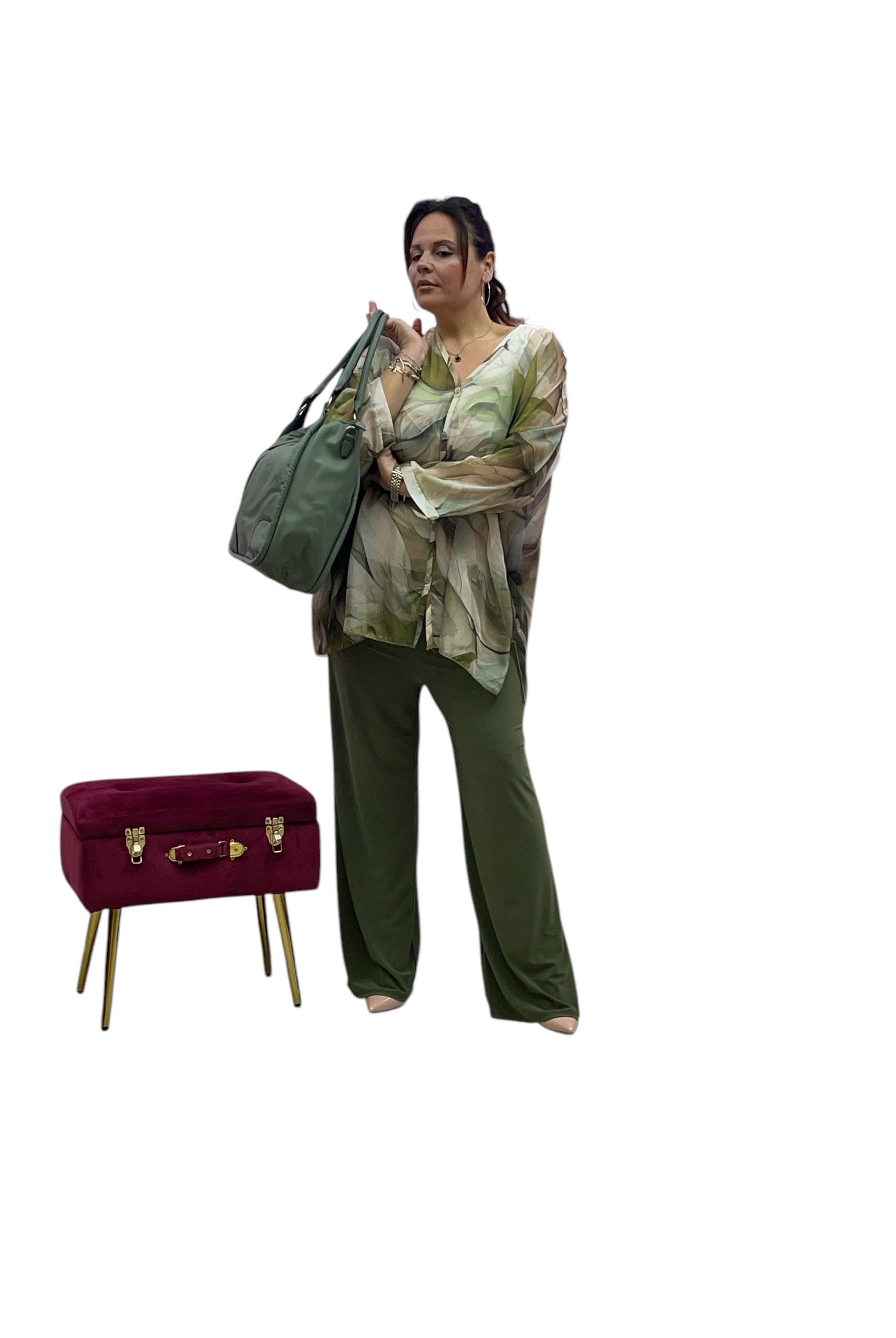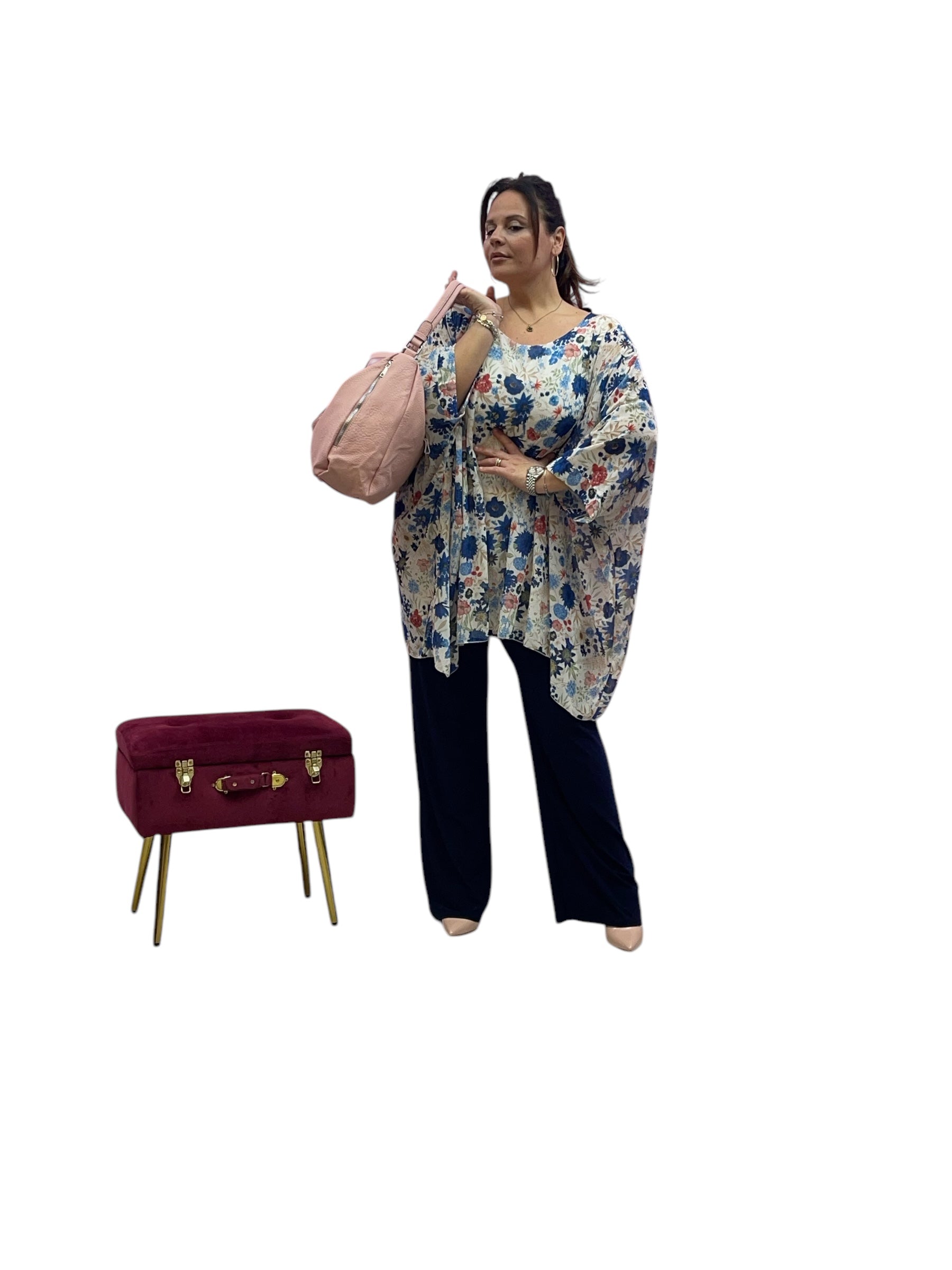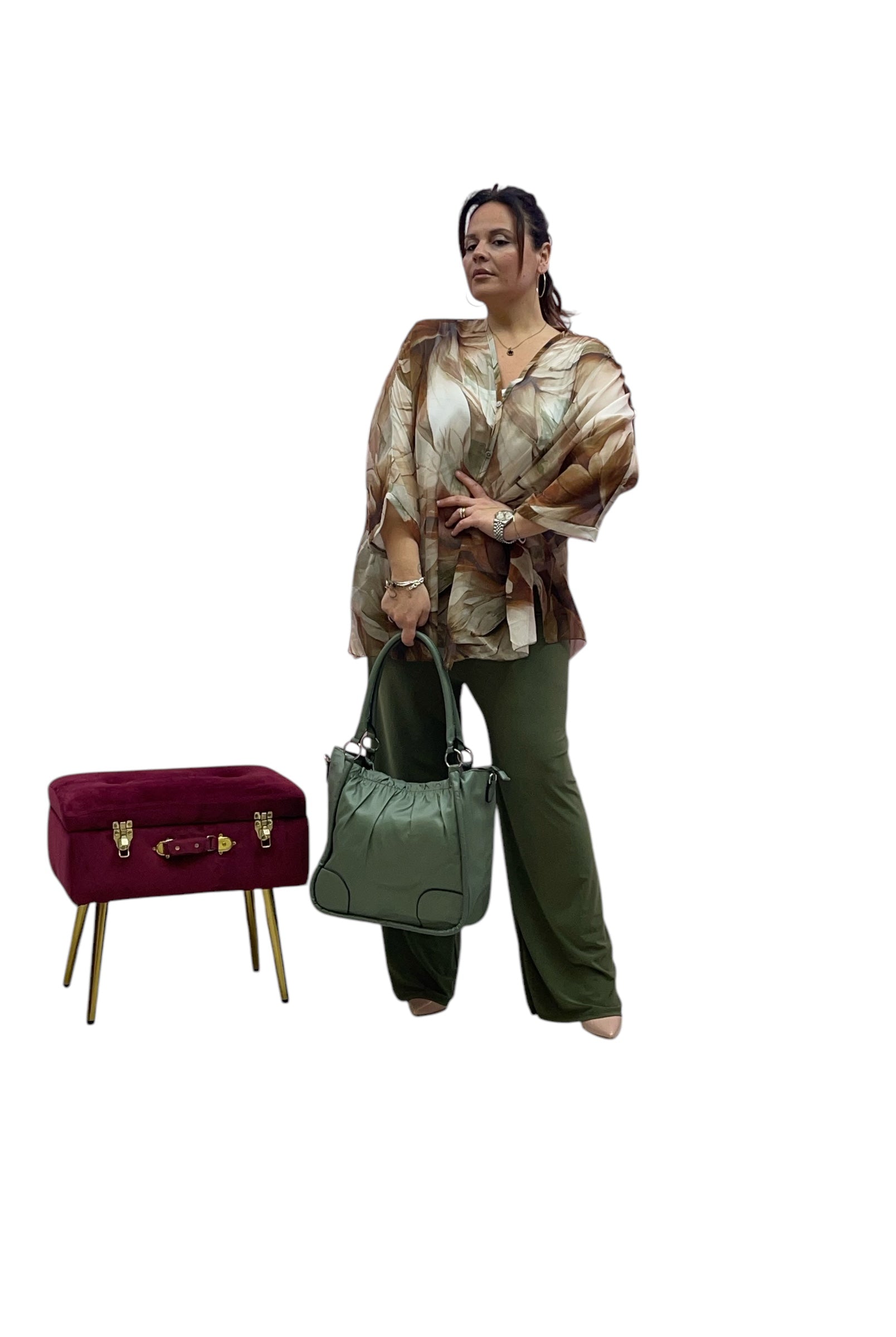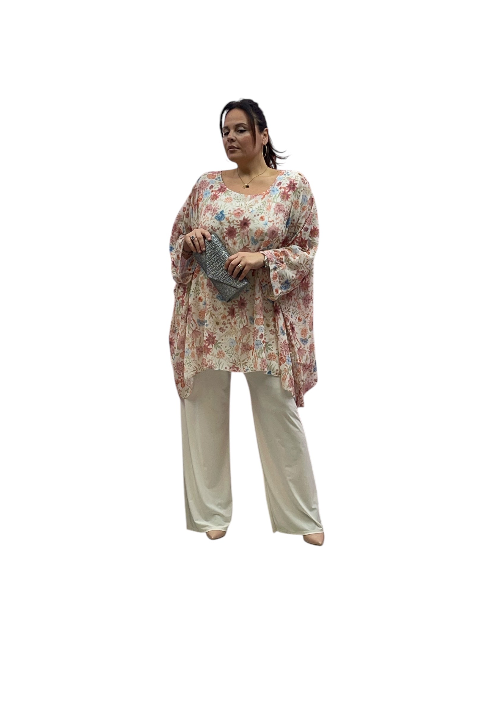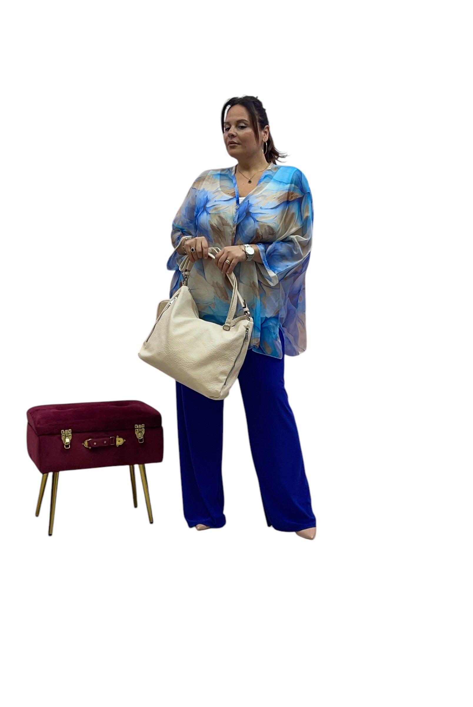 Casacca over in georgette fantasia con top in maglina cucito modello fazzoletto