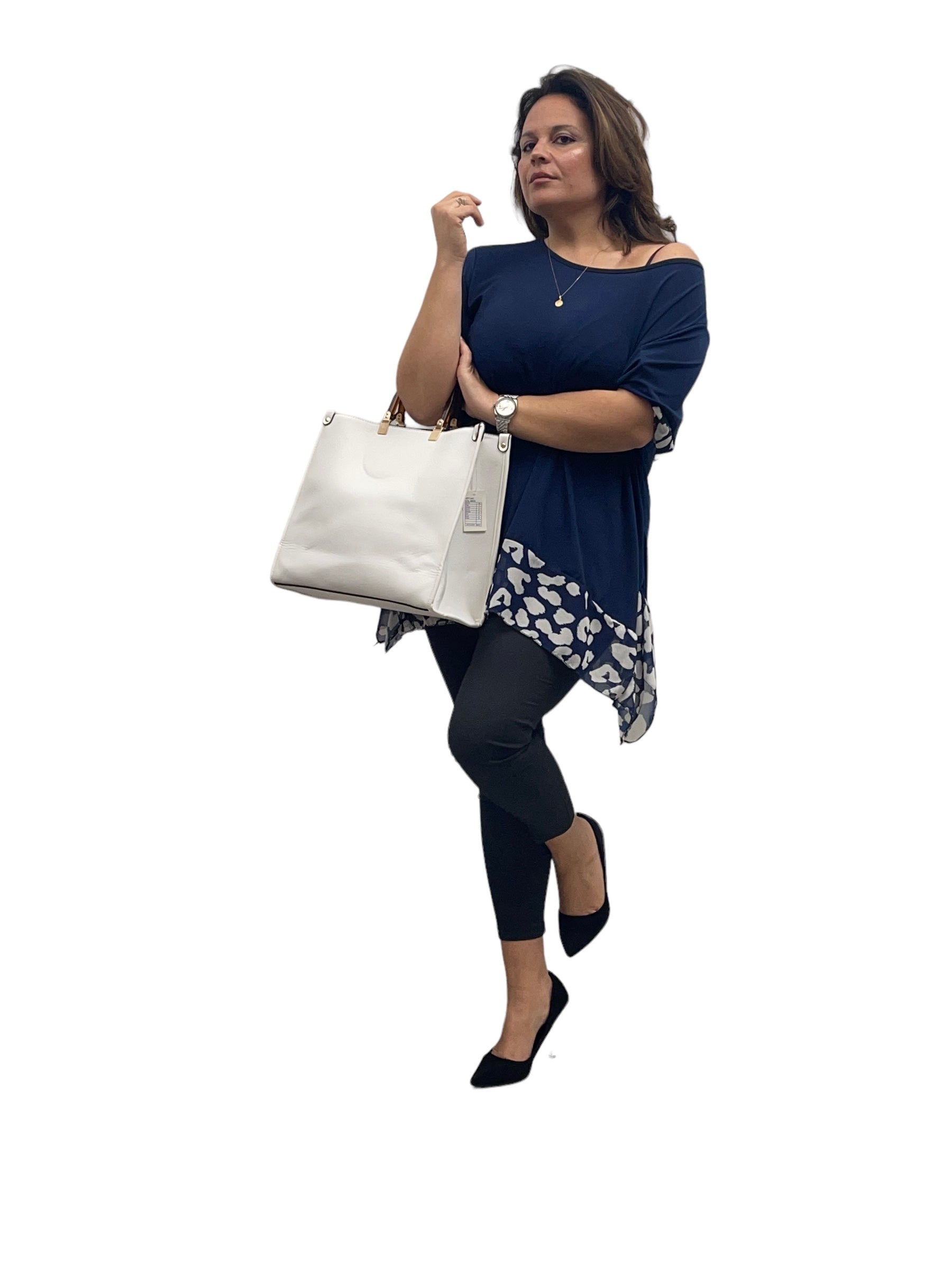 Casacca in jersey con fascia e pizzi in georgette leopardati
