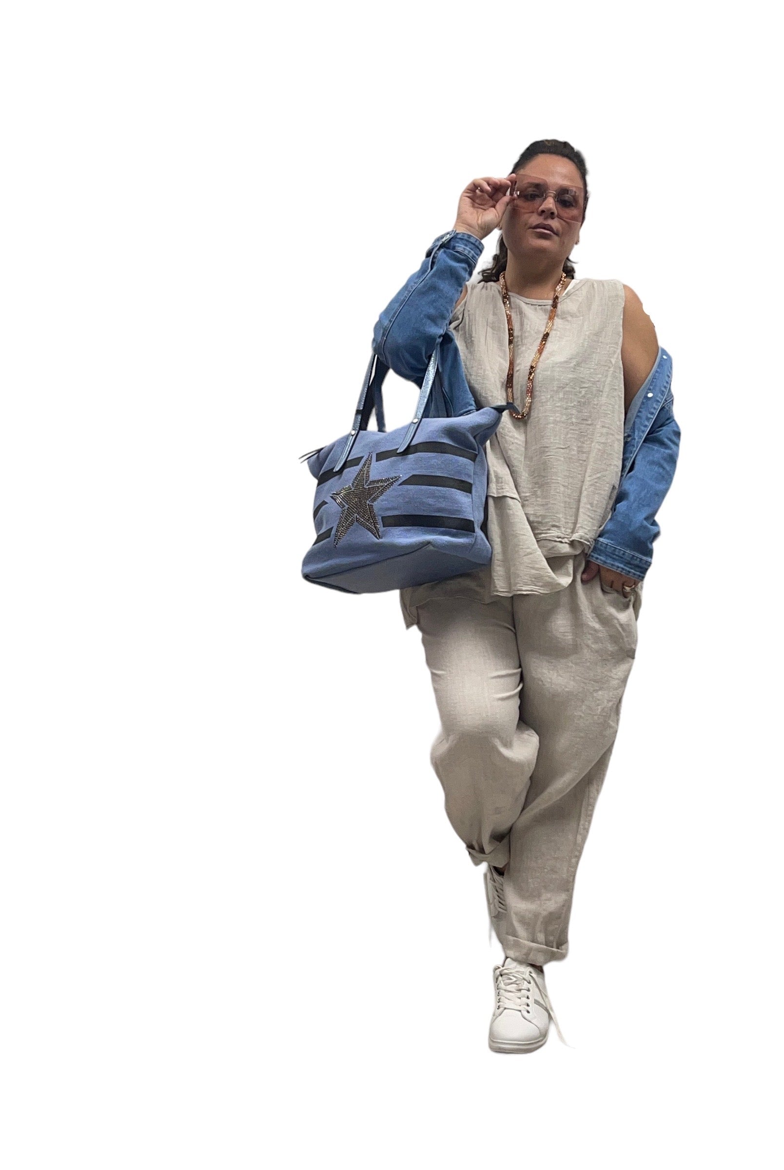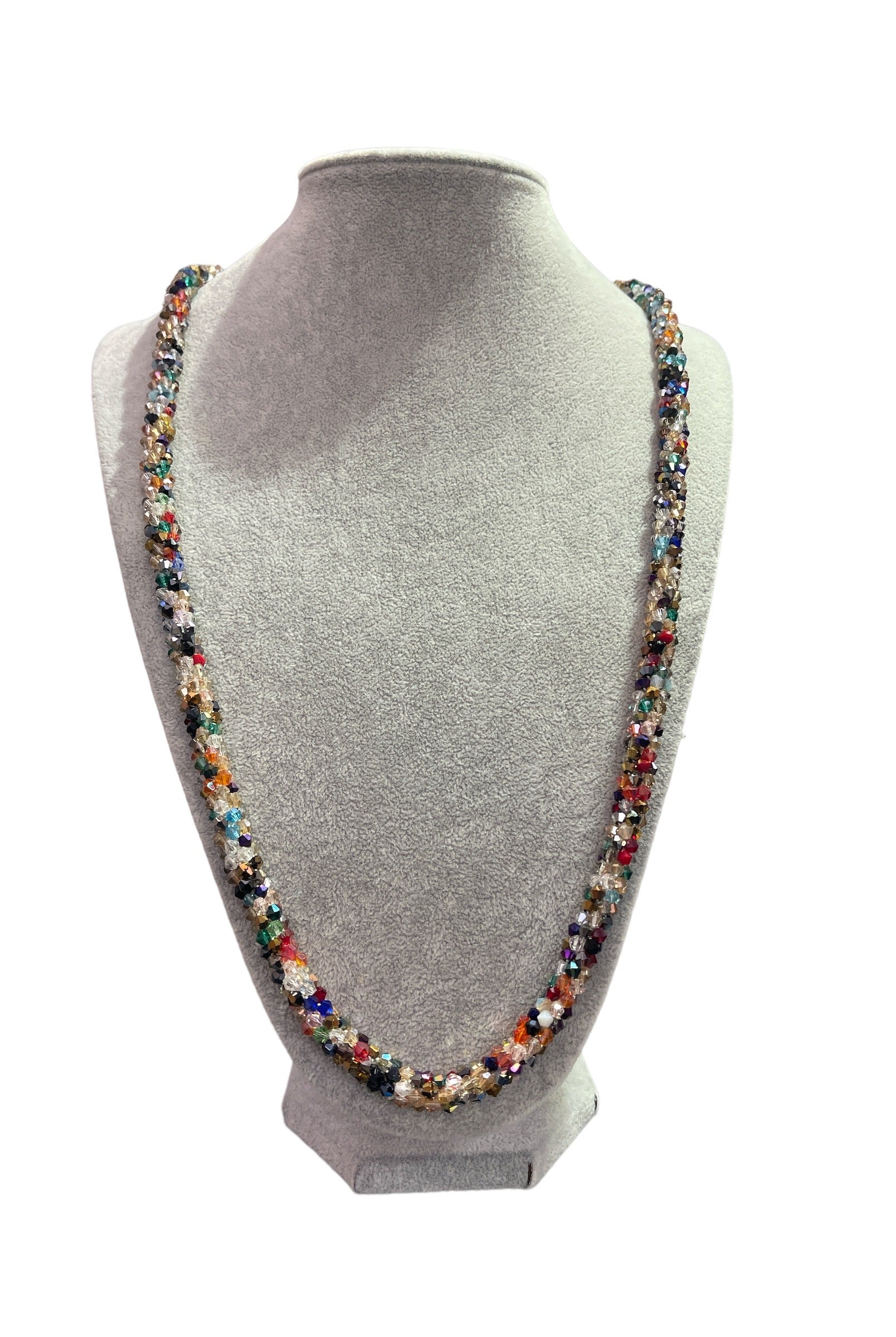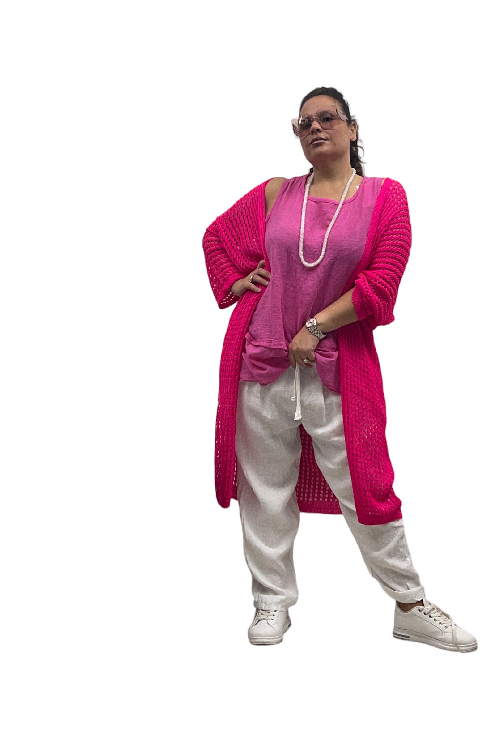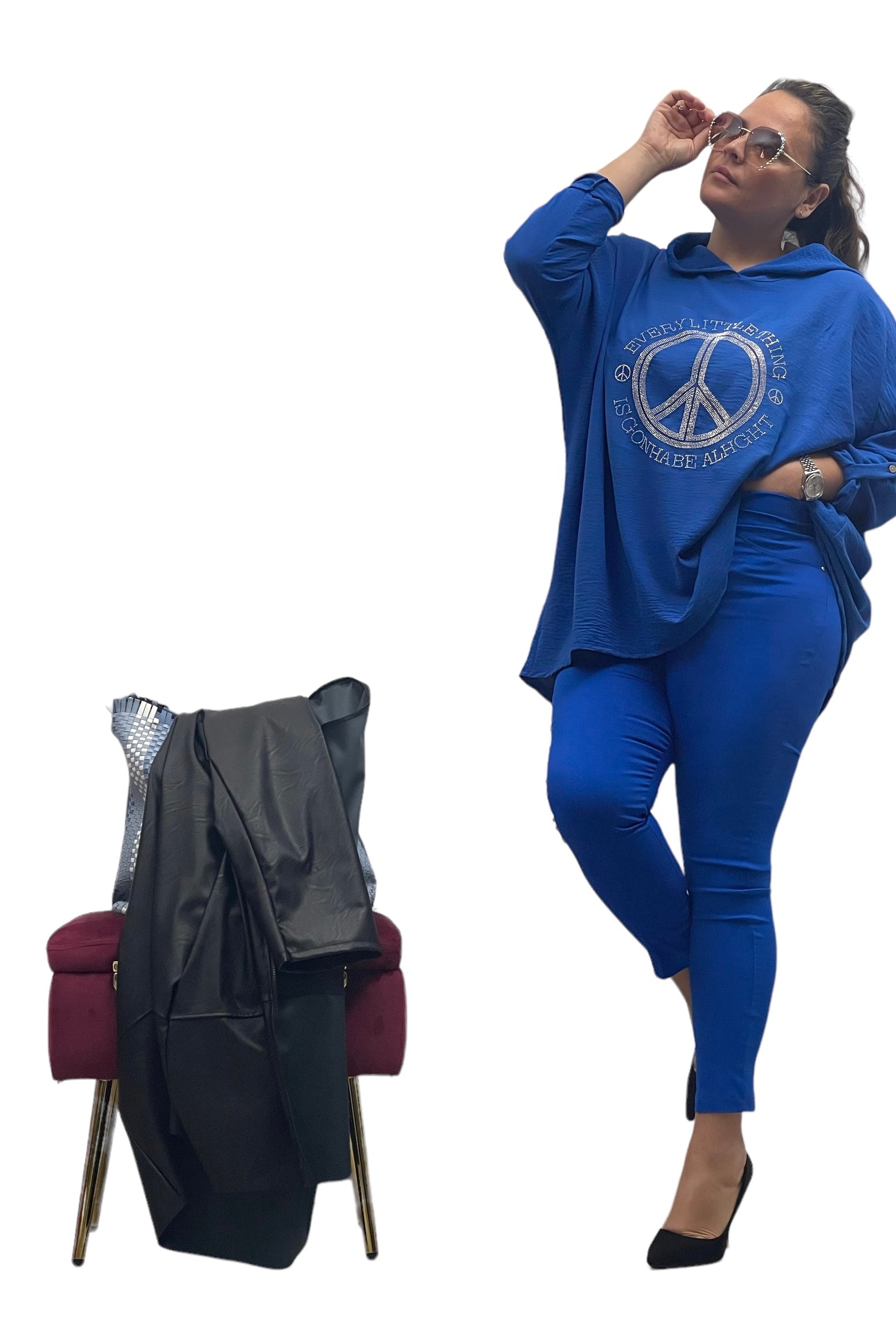 Casacca over fantasia in georgette con spillone e top in maglina cucito alle spalle e fascia di paiette
