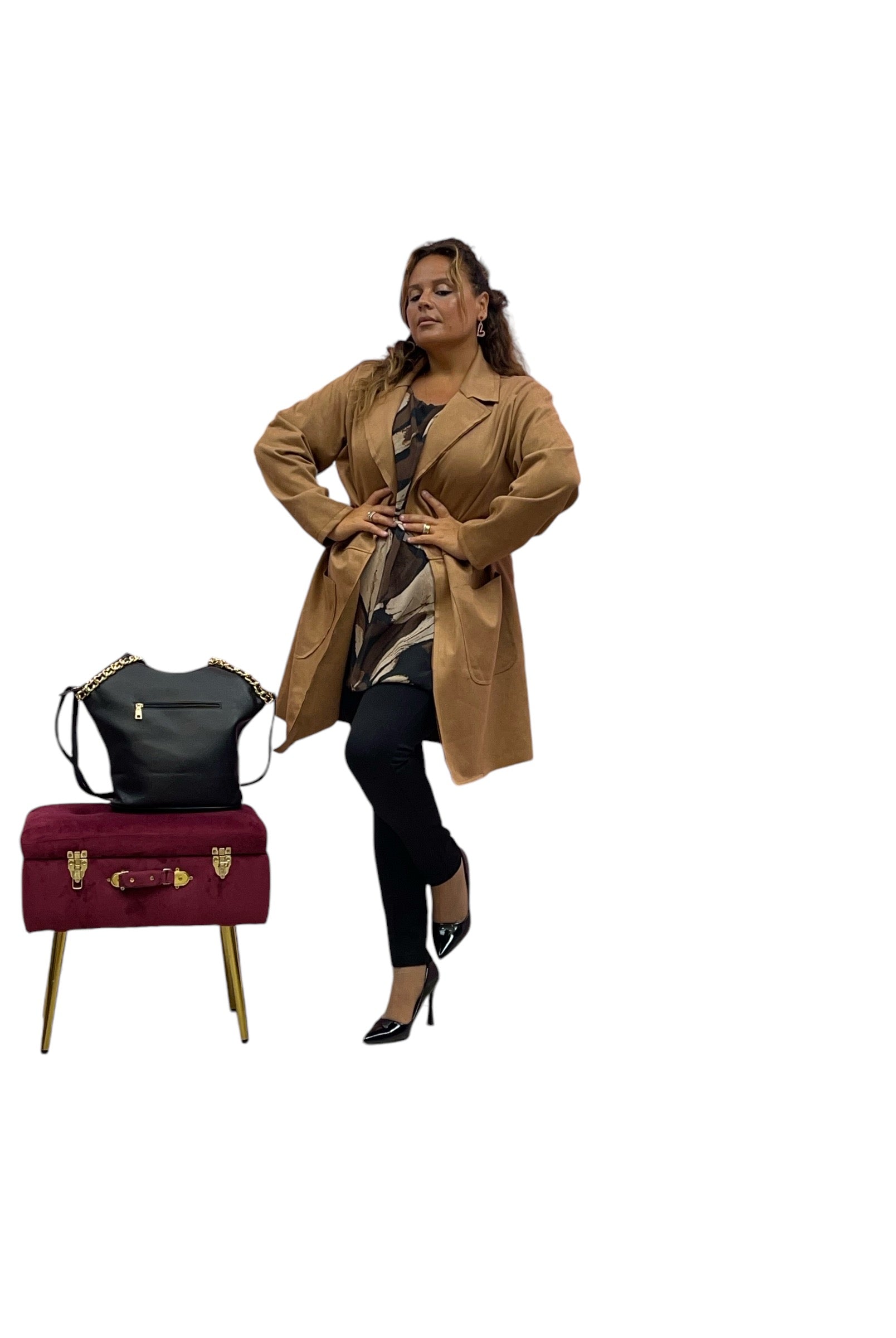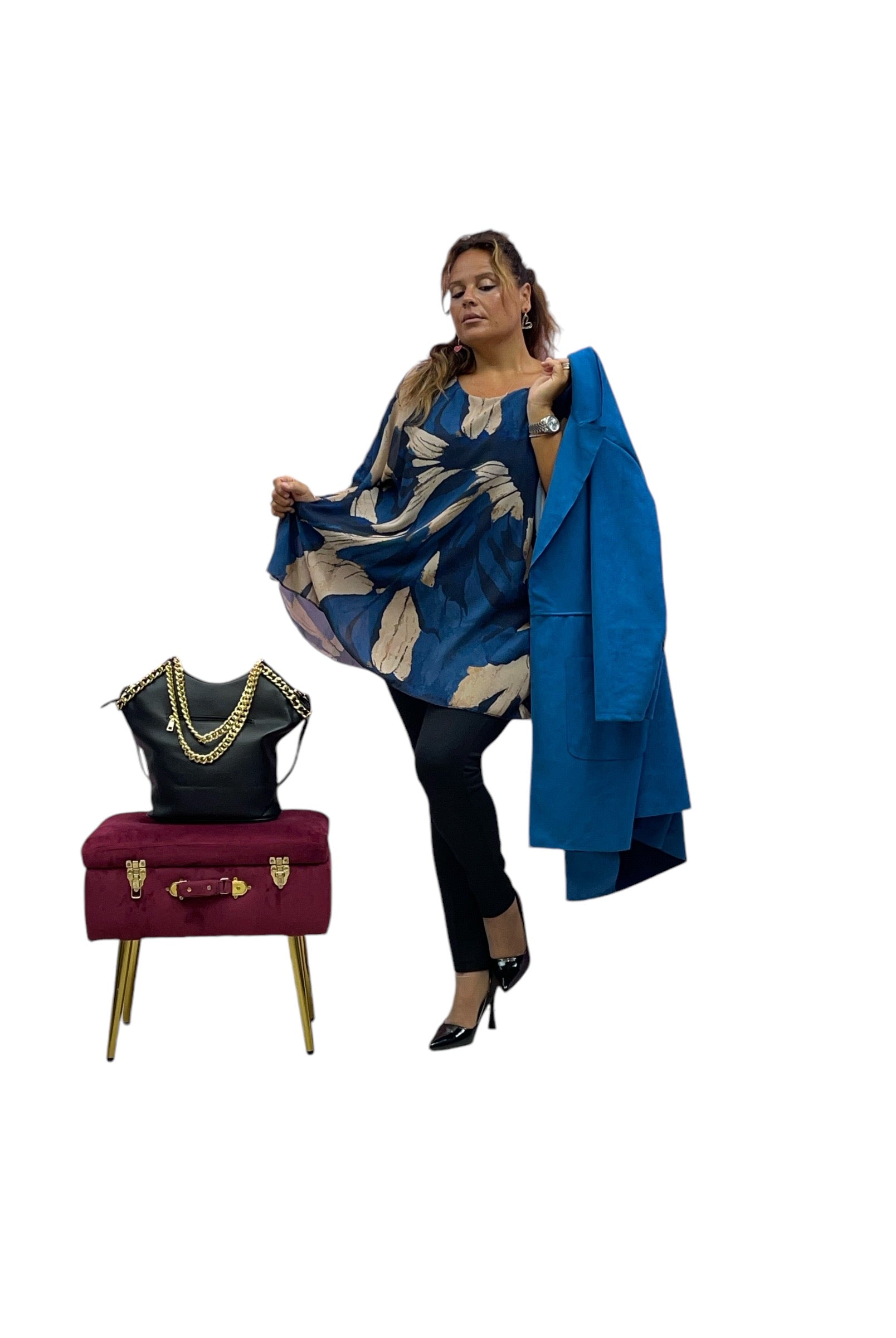 Casacca over in georgette fantasia svasata con top in maglina cucito